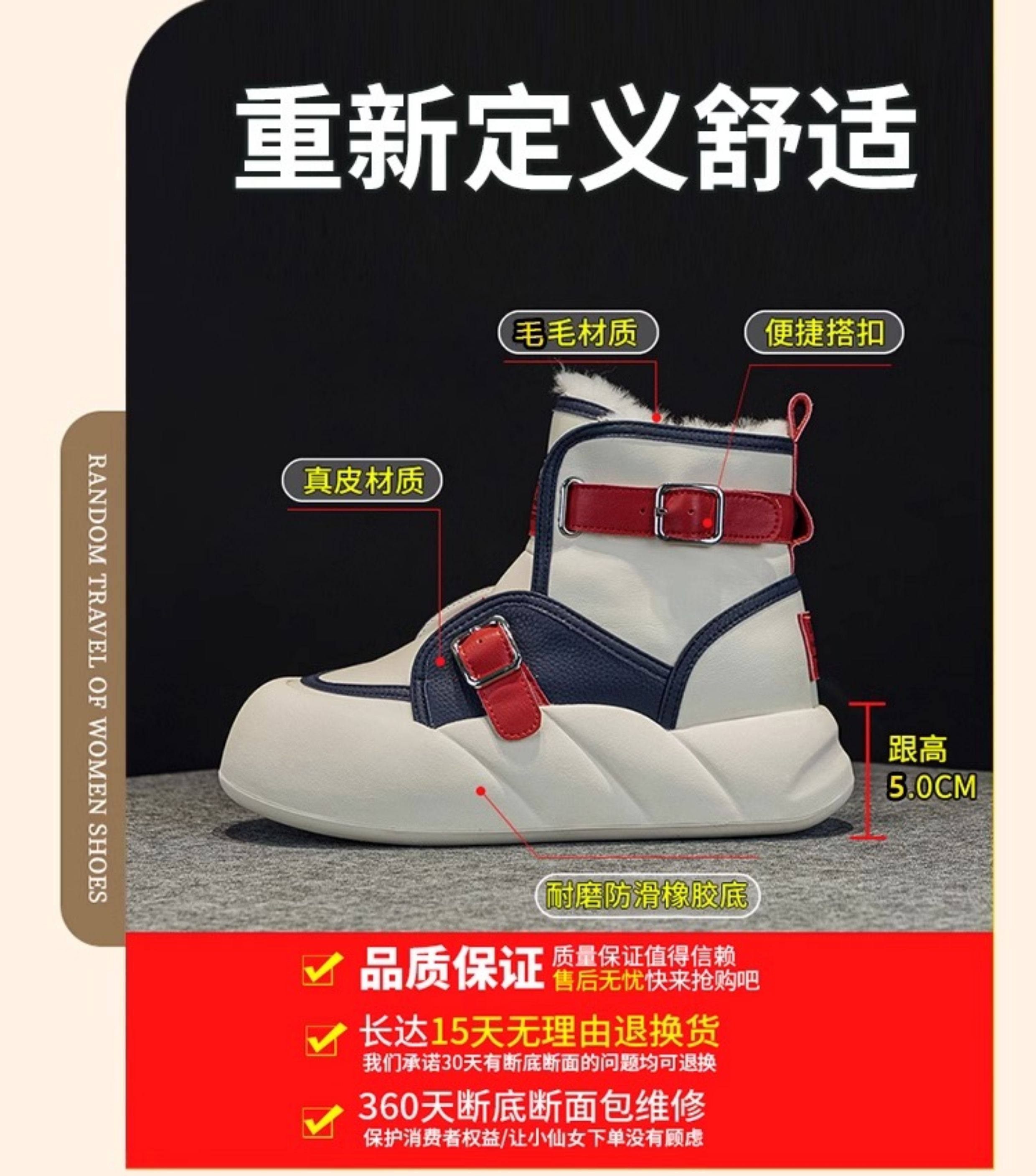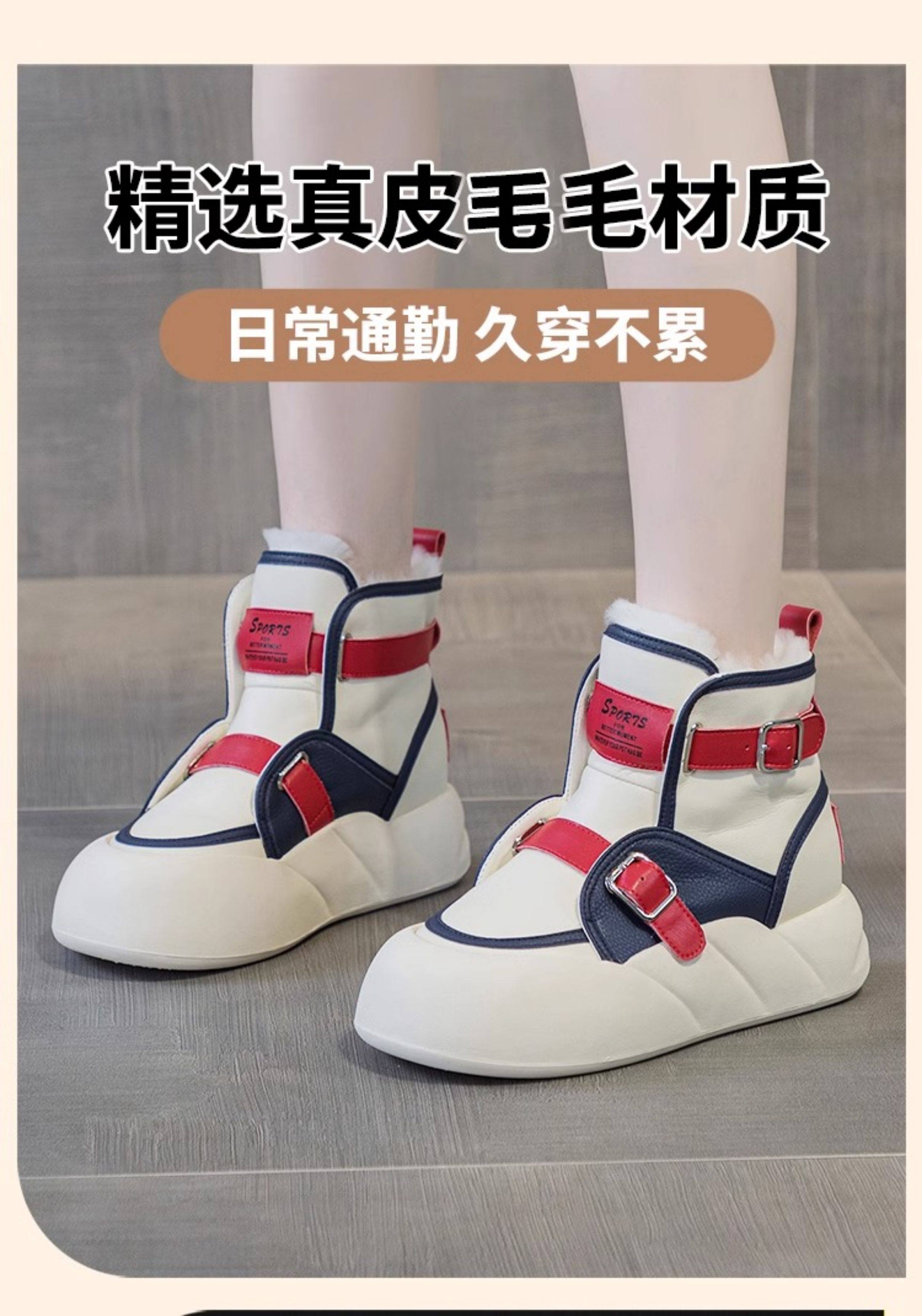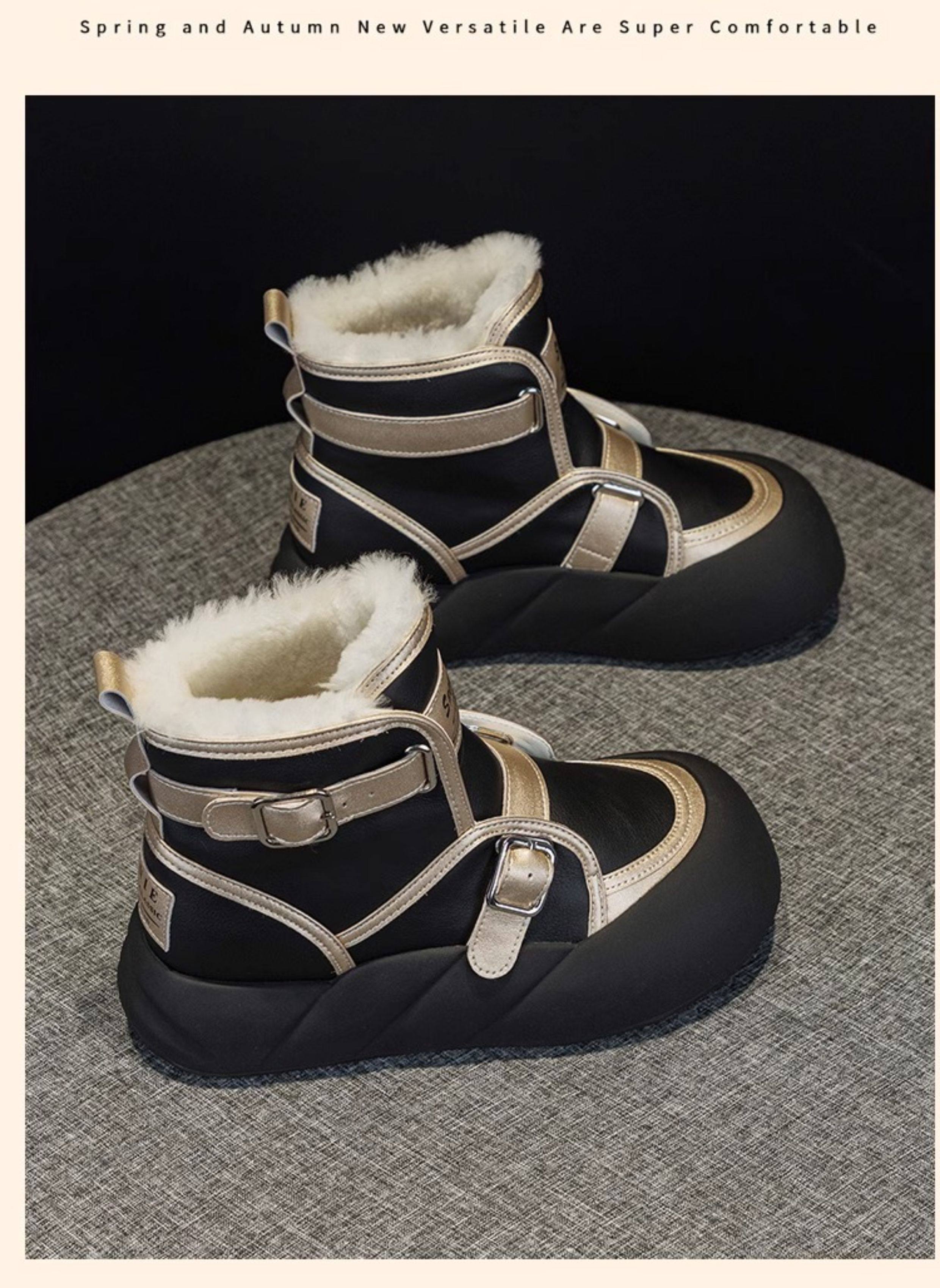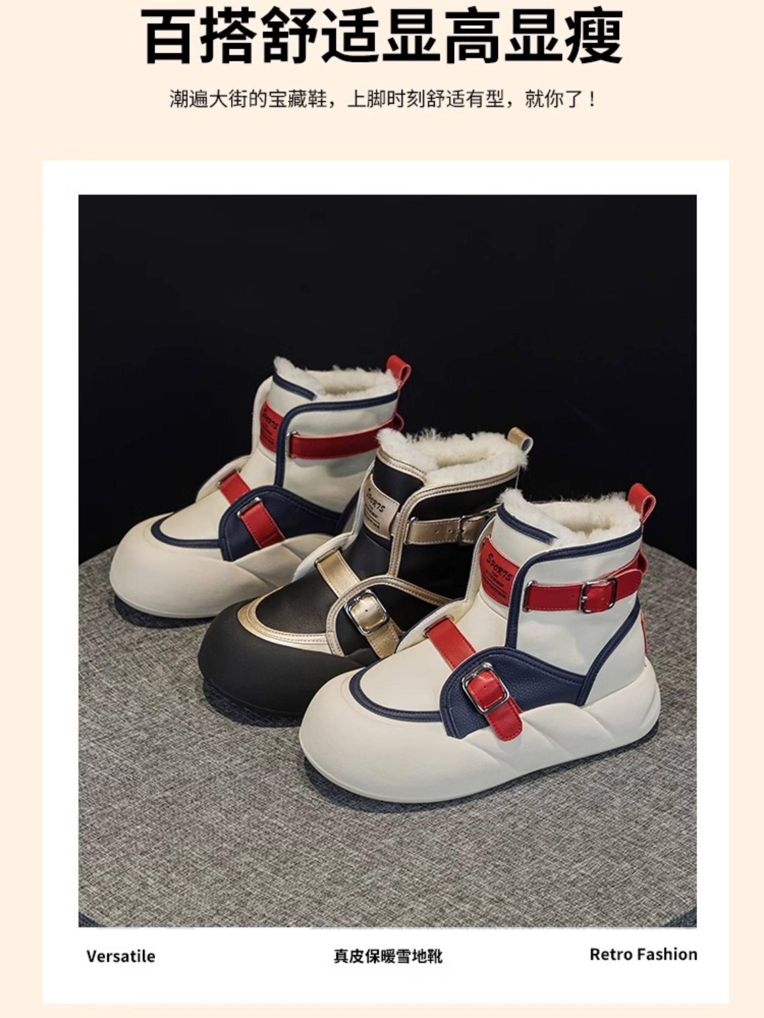 Hong Kong Genuine Leather Snow Boots for Women, Fur Integrated, 2025 Winter New Style, Large Toe, Thick Sole, Thickened High-Top Cotton Shoes