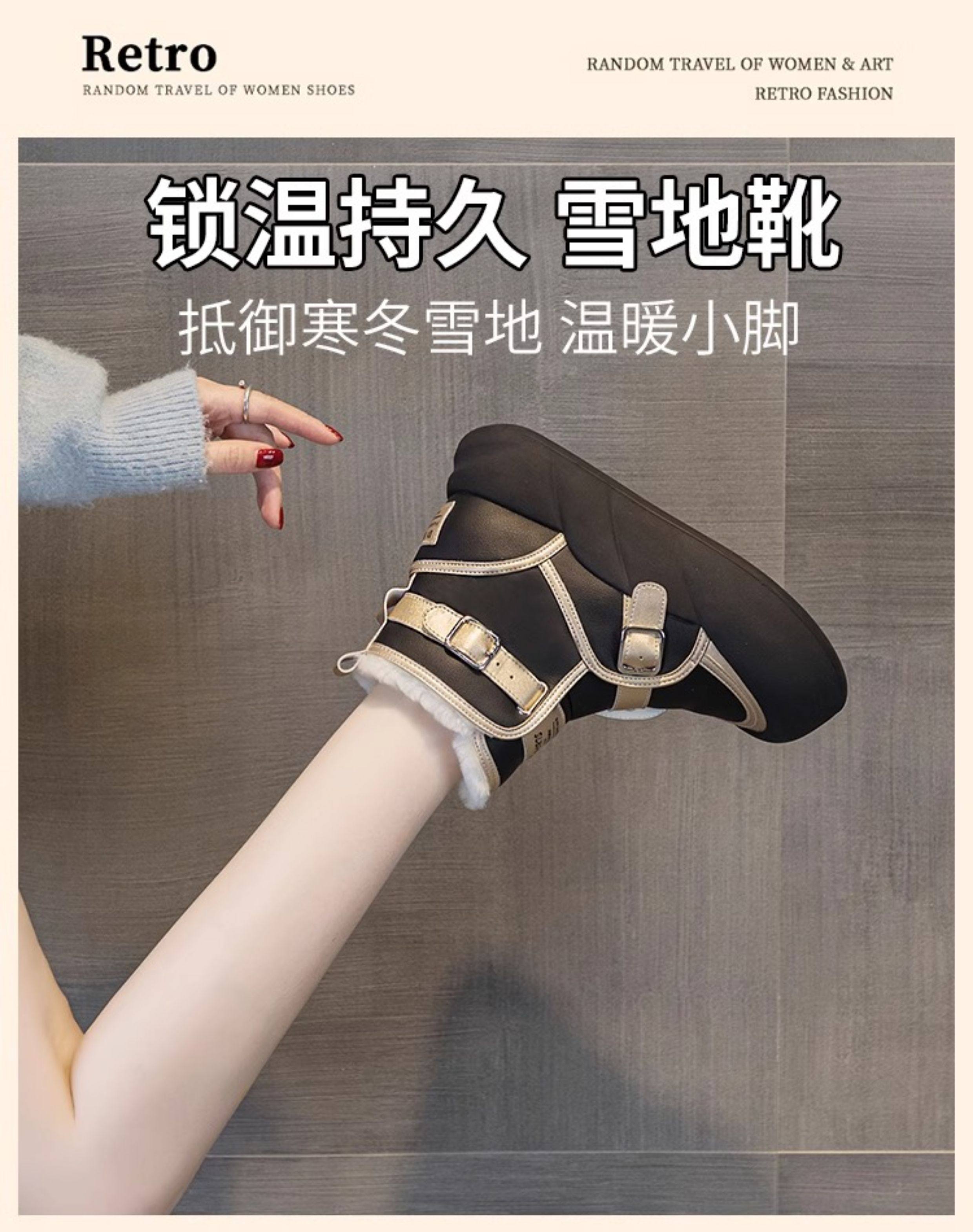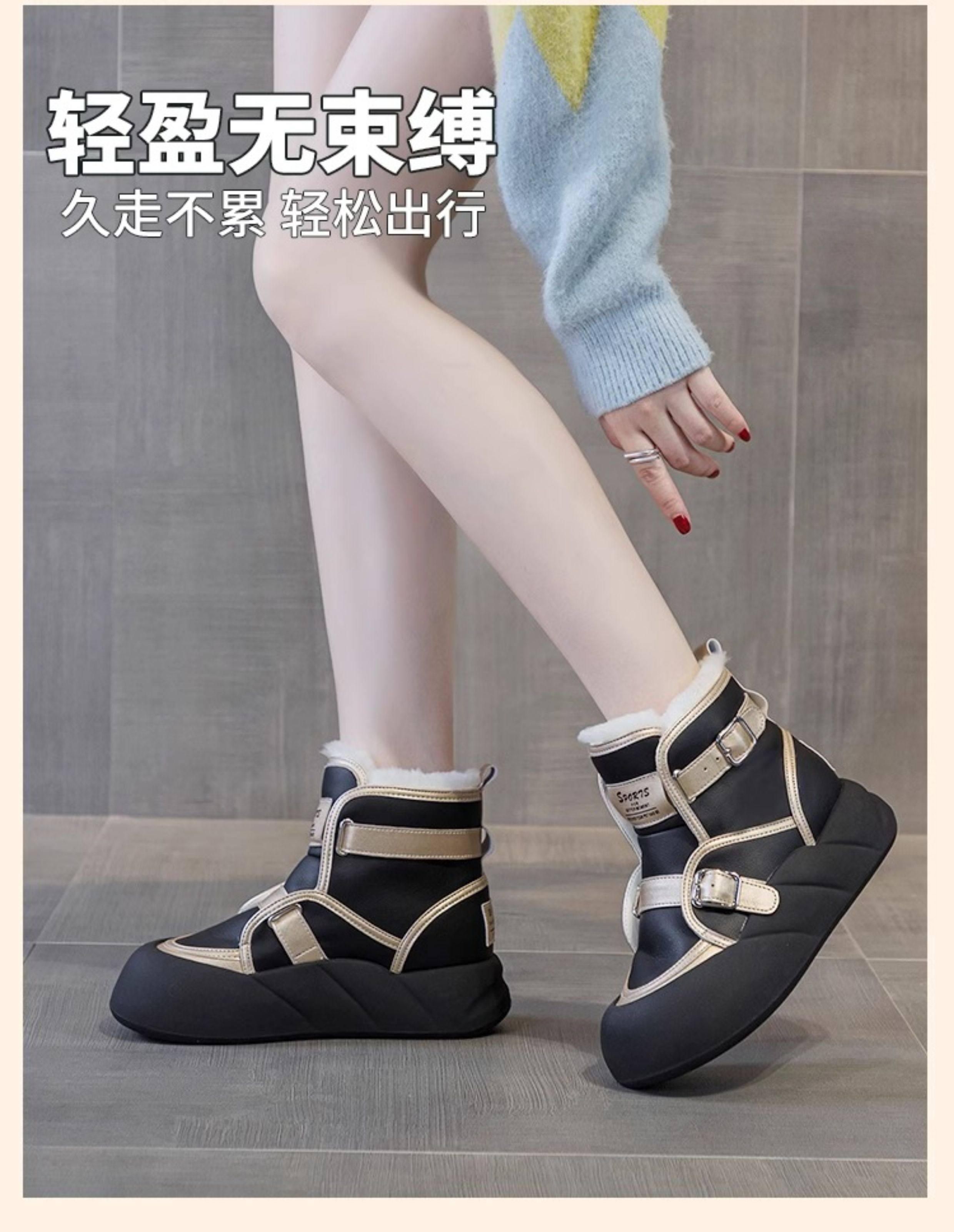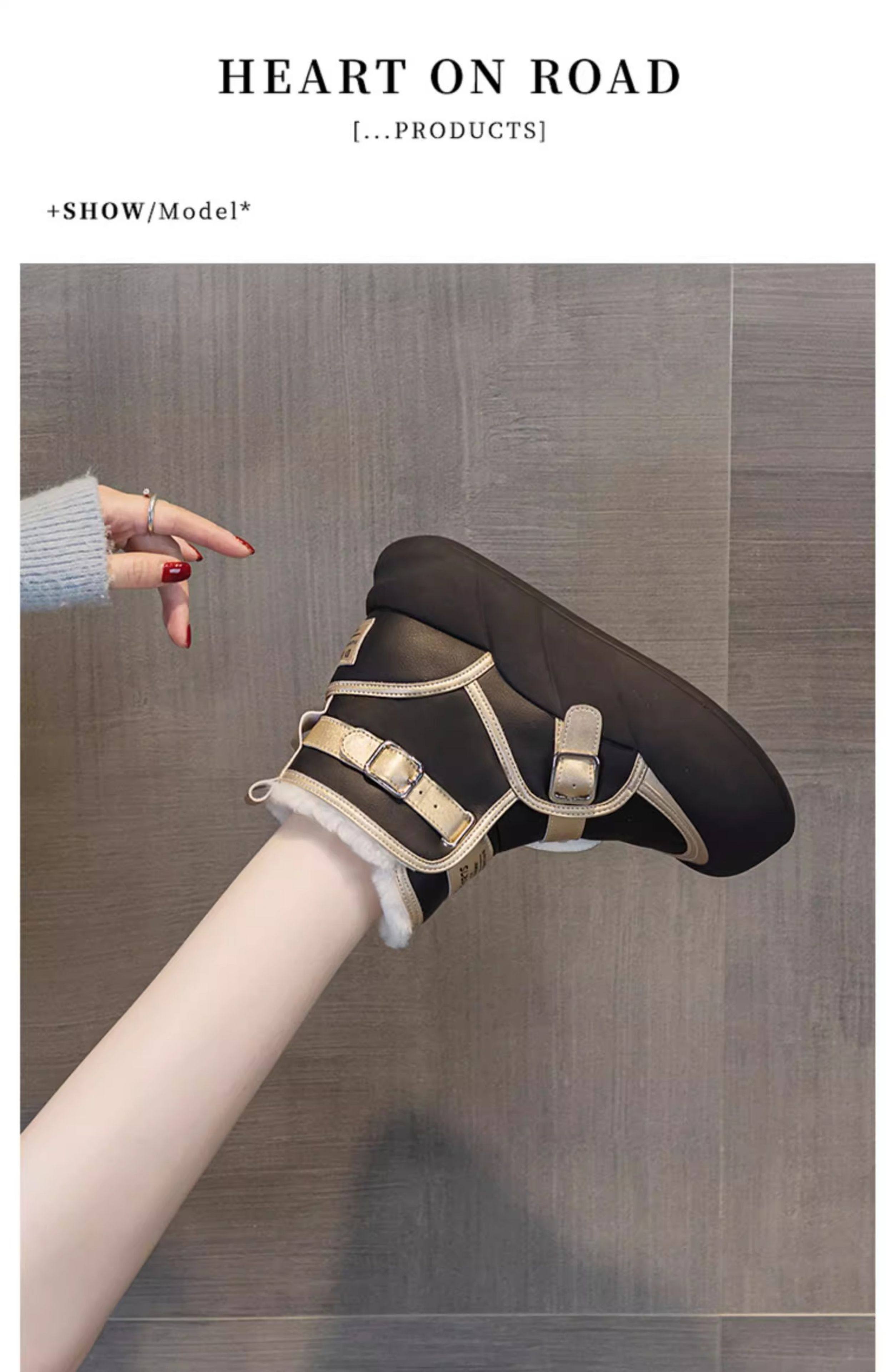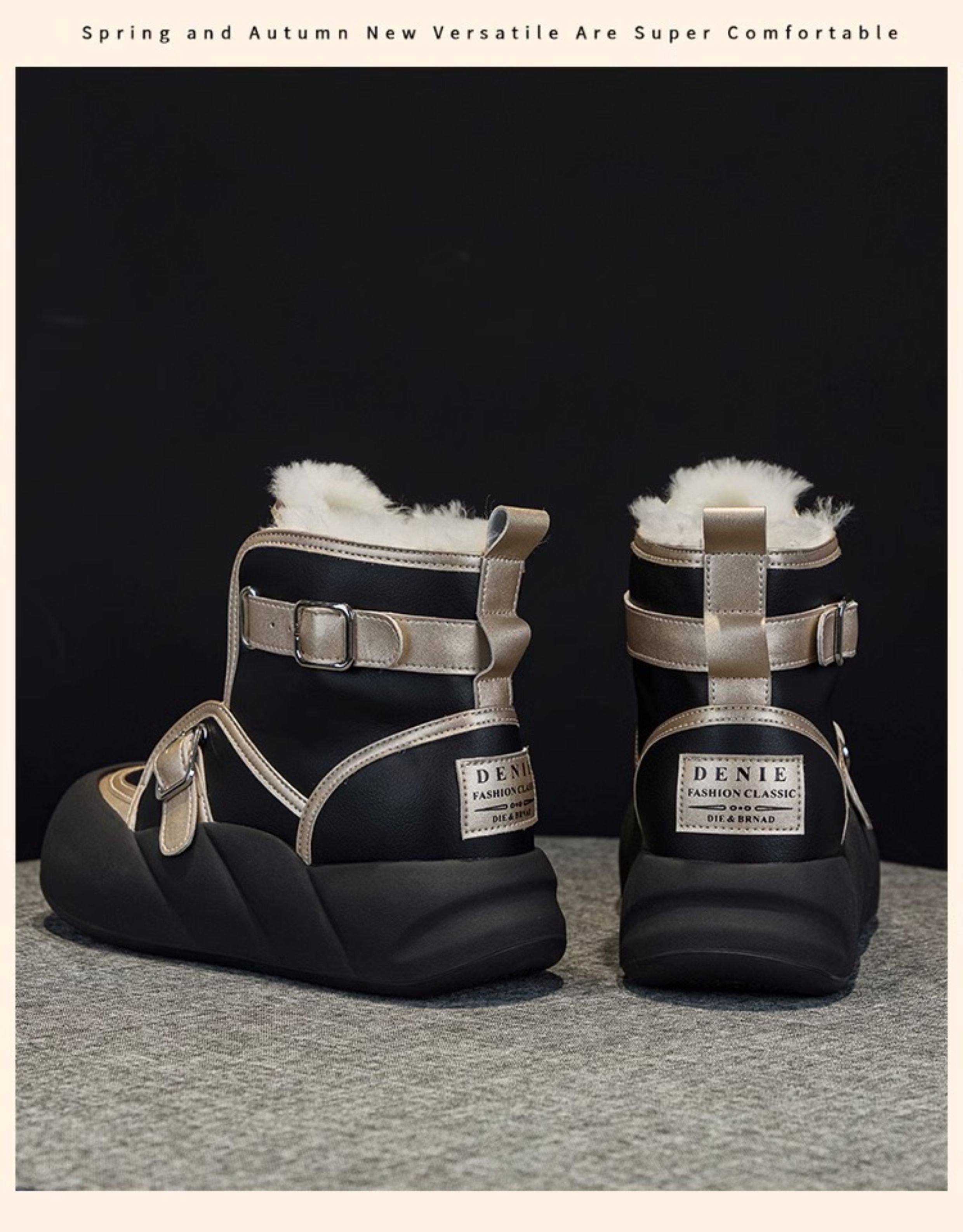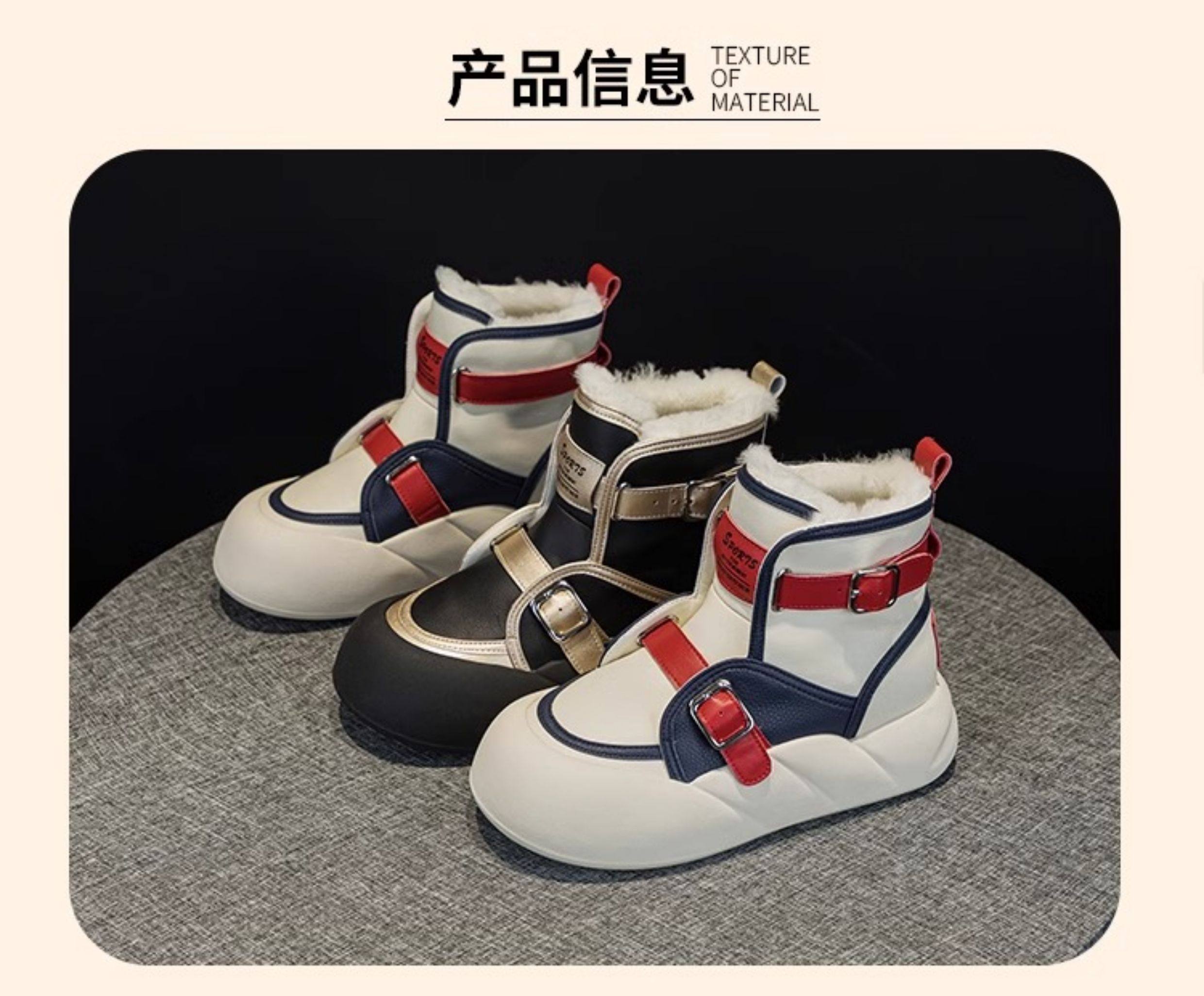 Hong Kong Genuine Leather Snow Boots for Women, Fur Integrated, 2025 Winter New Style, Large Toe, Thick Sole, Thickened High-Top Cotton Shoes