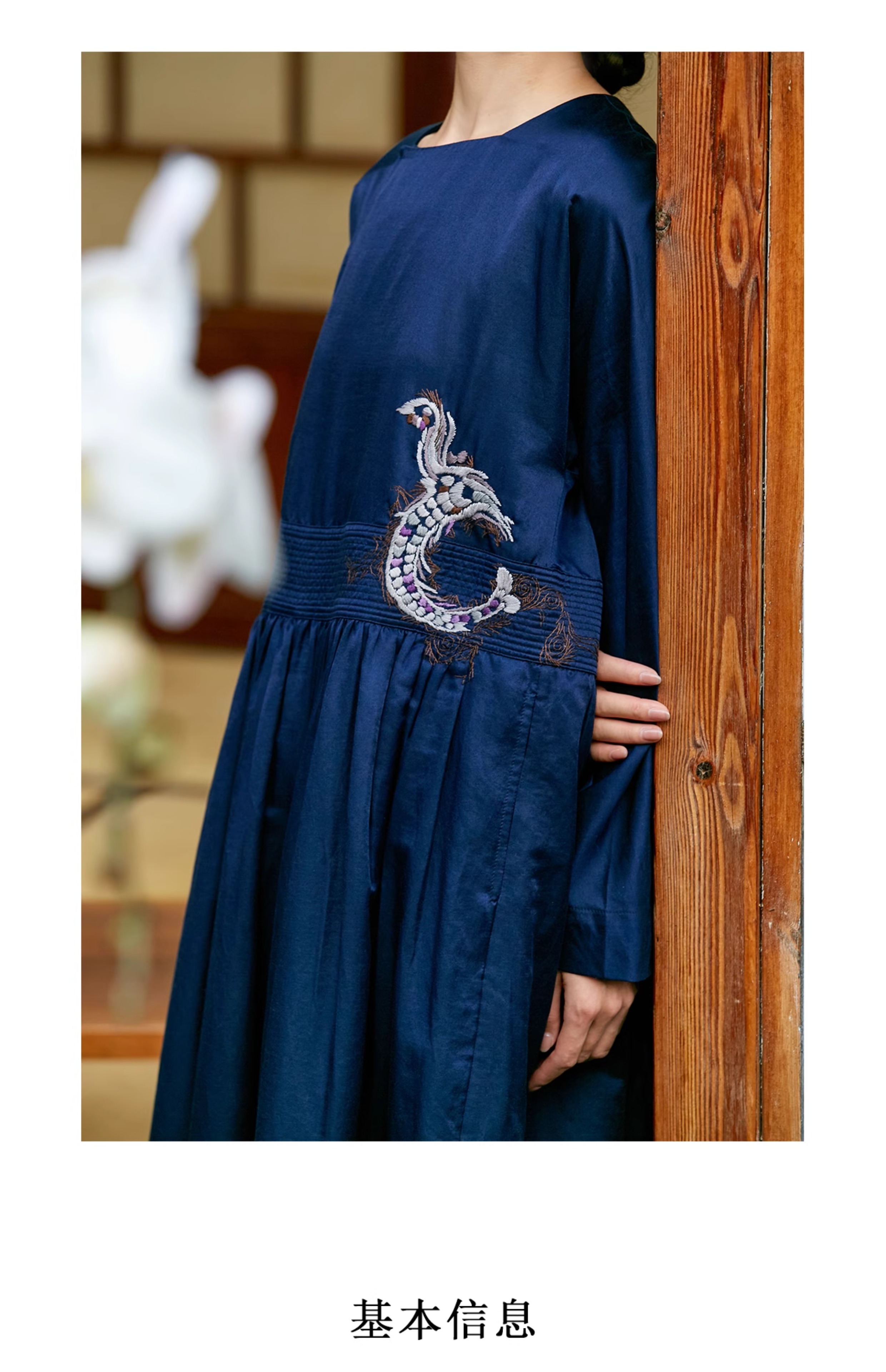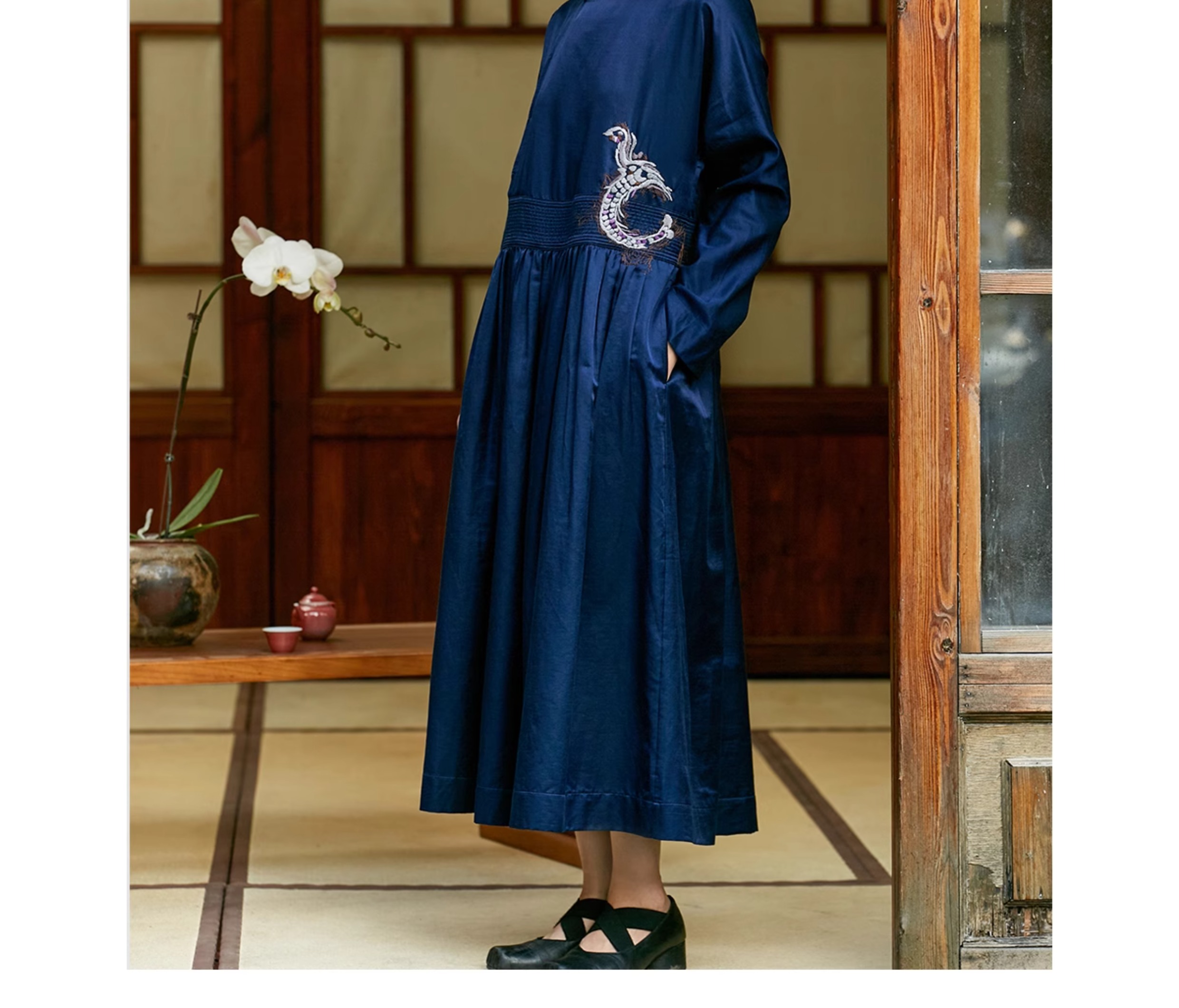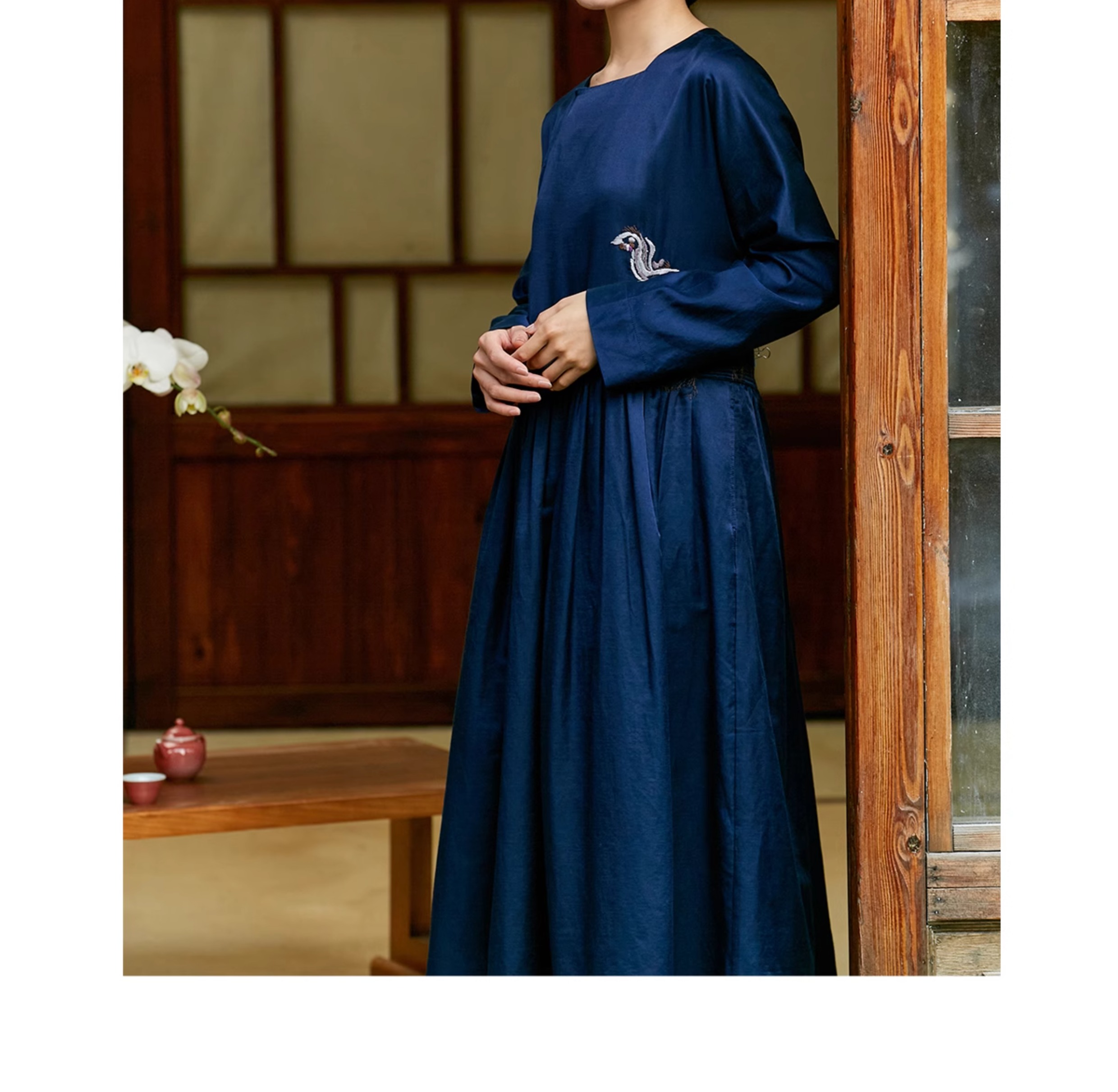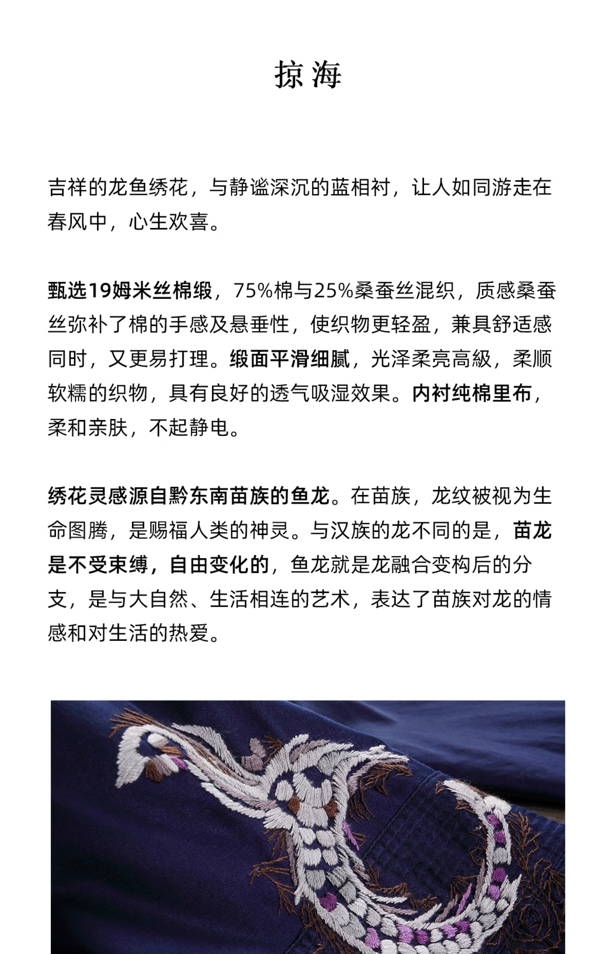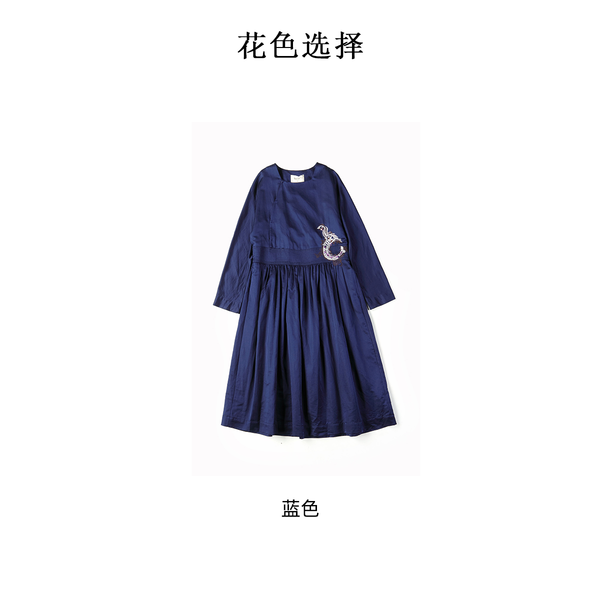 【Skimming the Sea】Jixiang Yuer's Original 19mm Silk Cotton Satin Fish and Dragon Embroidered Straight-Front Square-Neck Large Hem A-Line Dress