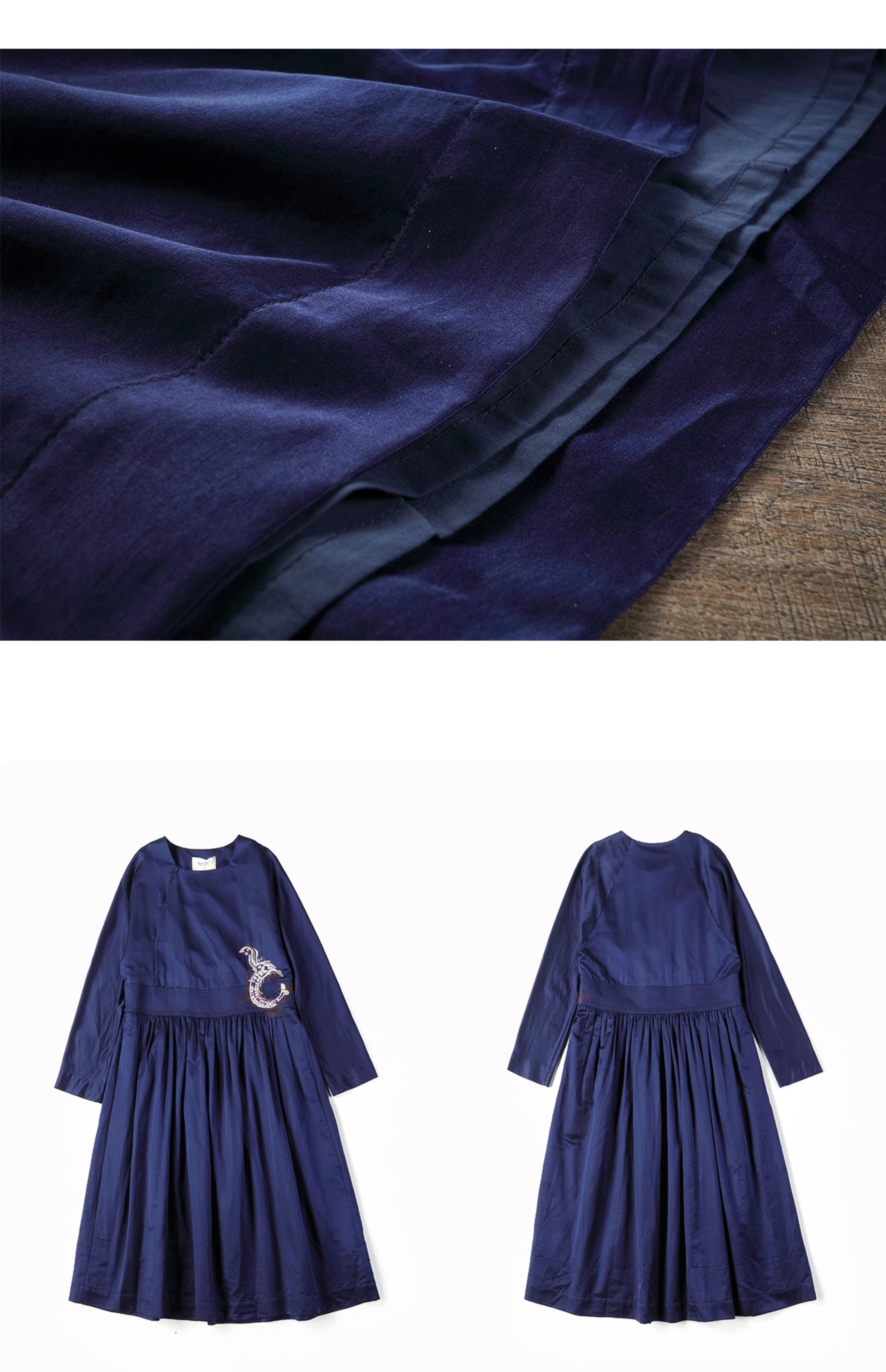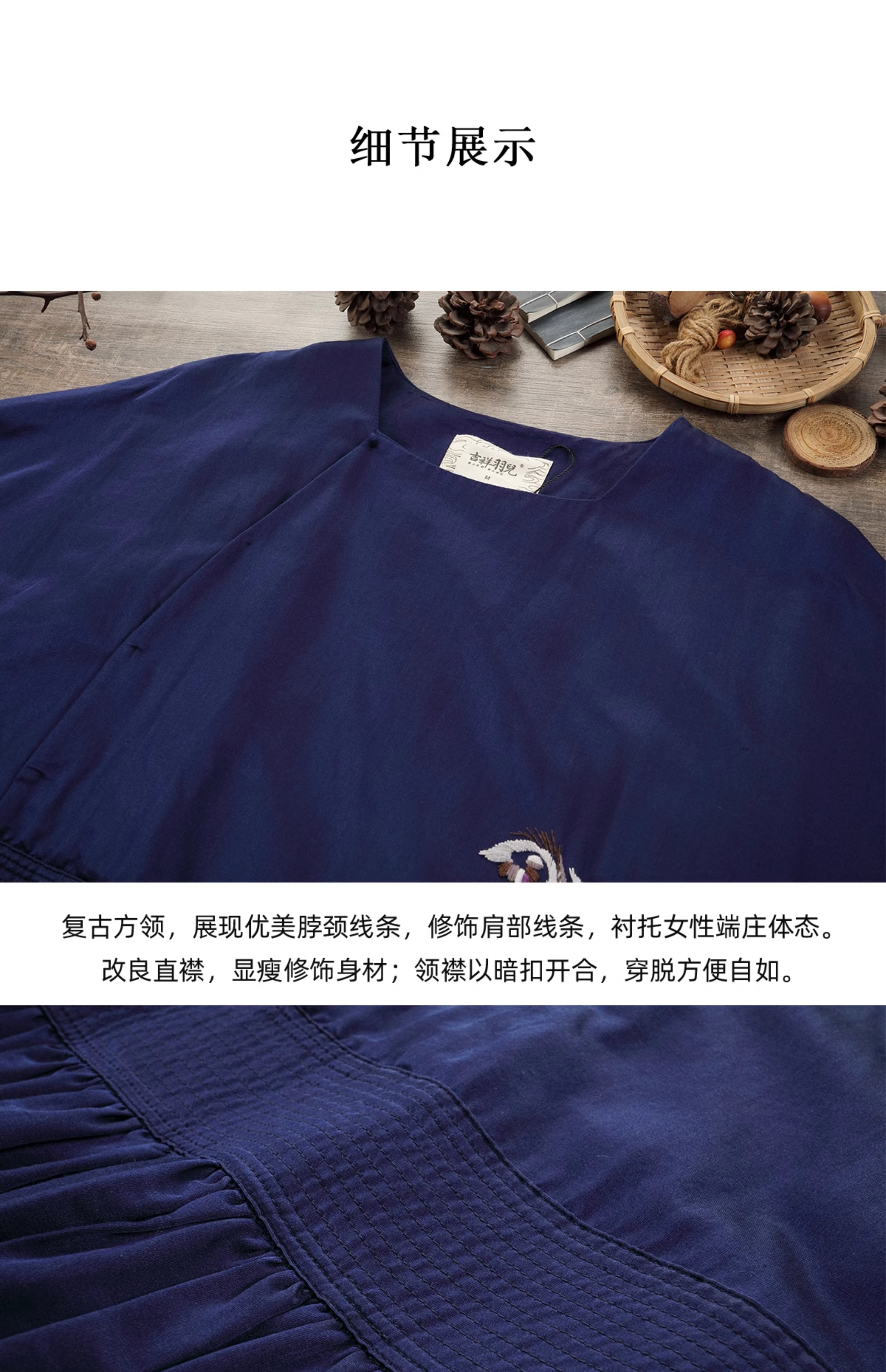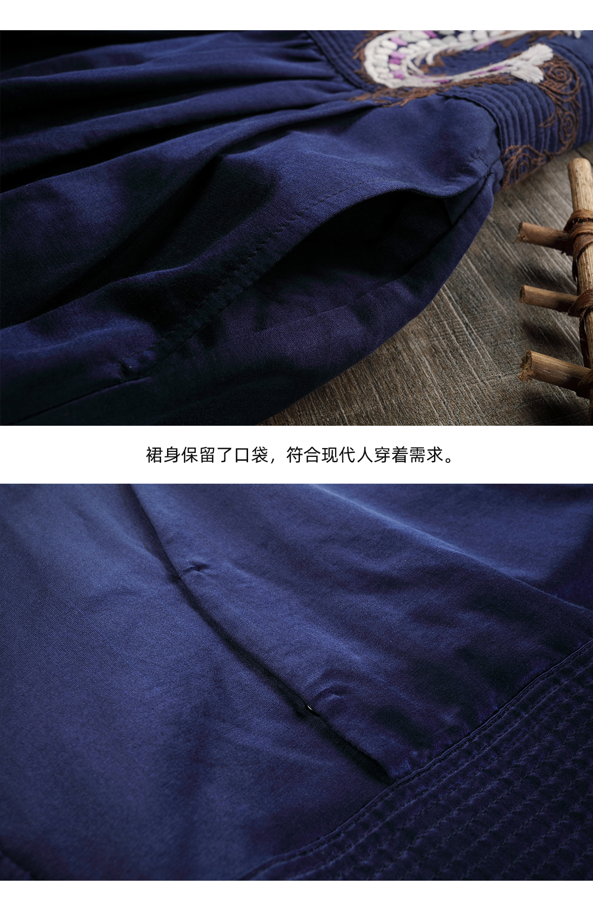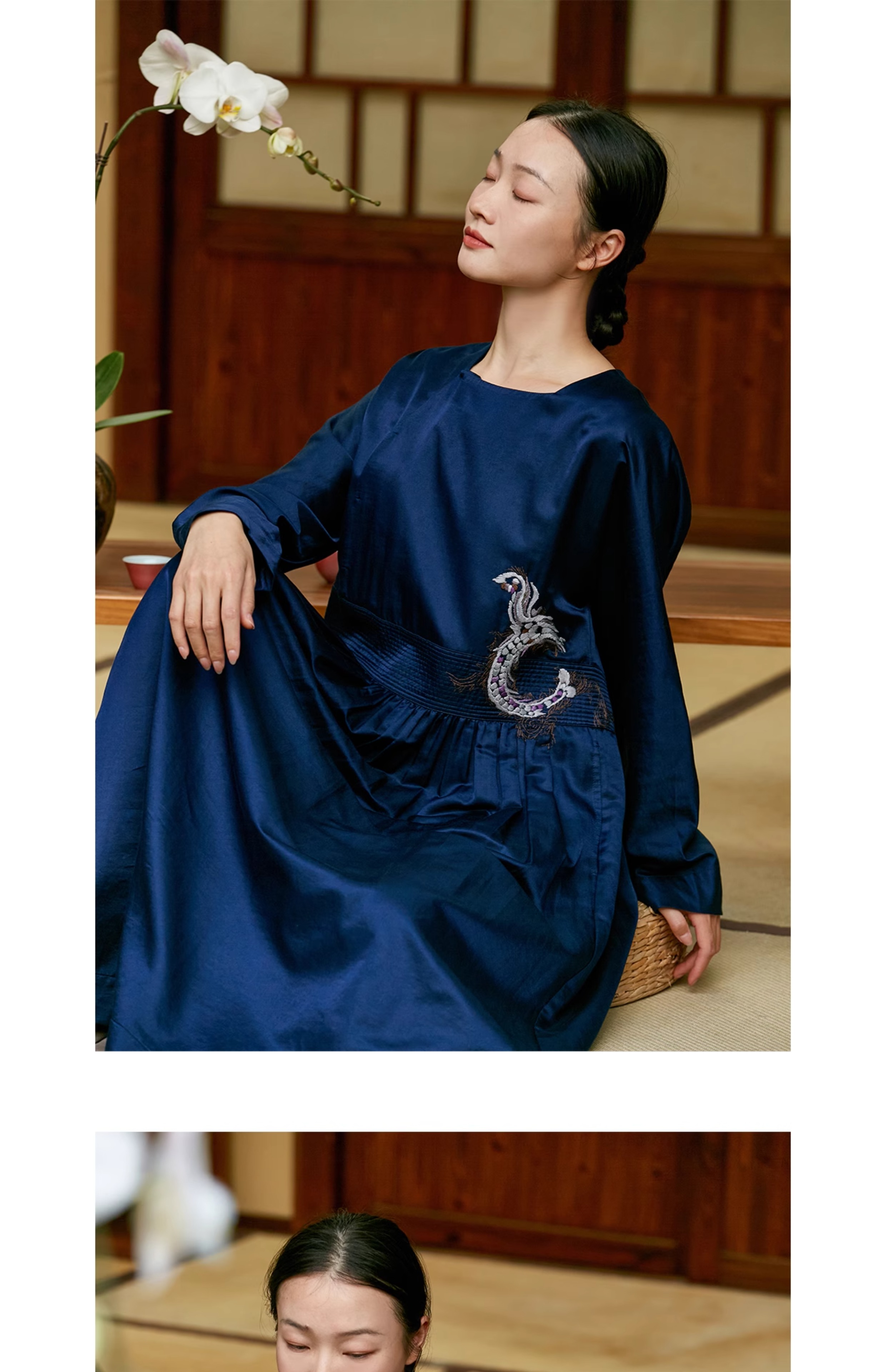 【Skimming the Sea】Jixiang Yuer's Original 19mm Silk Cotton Satin Fish and Dragon Embroidered Straight-Front Square-Neck Large Hem A-Line Dress