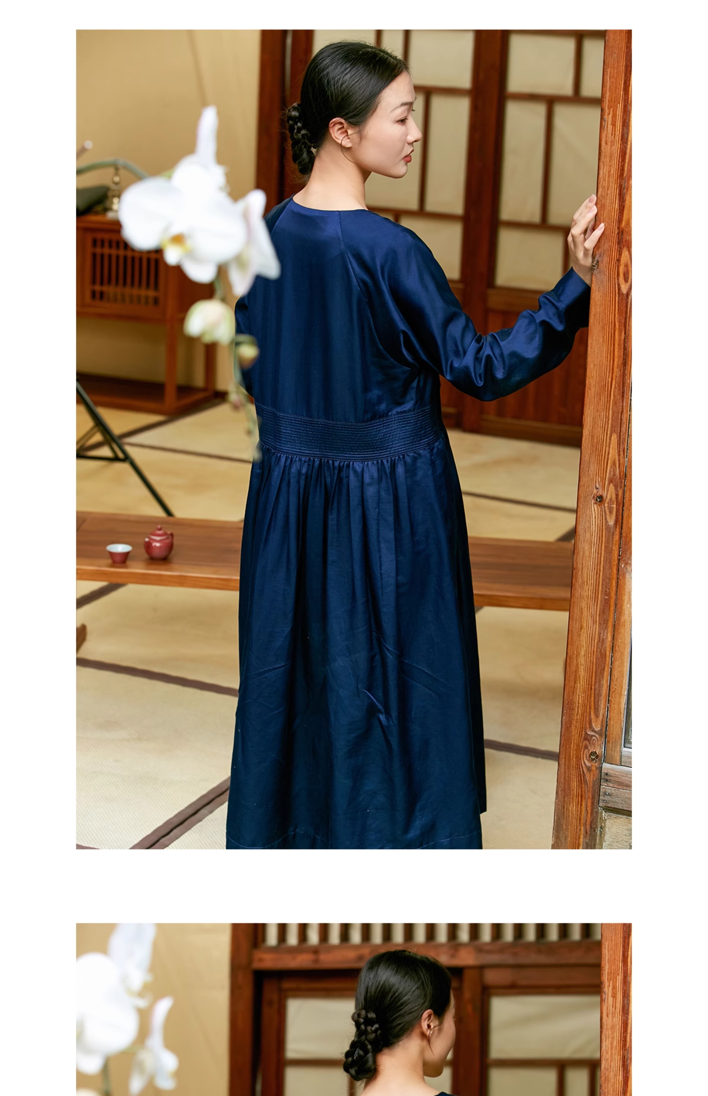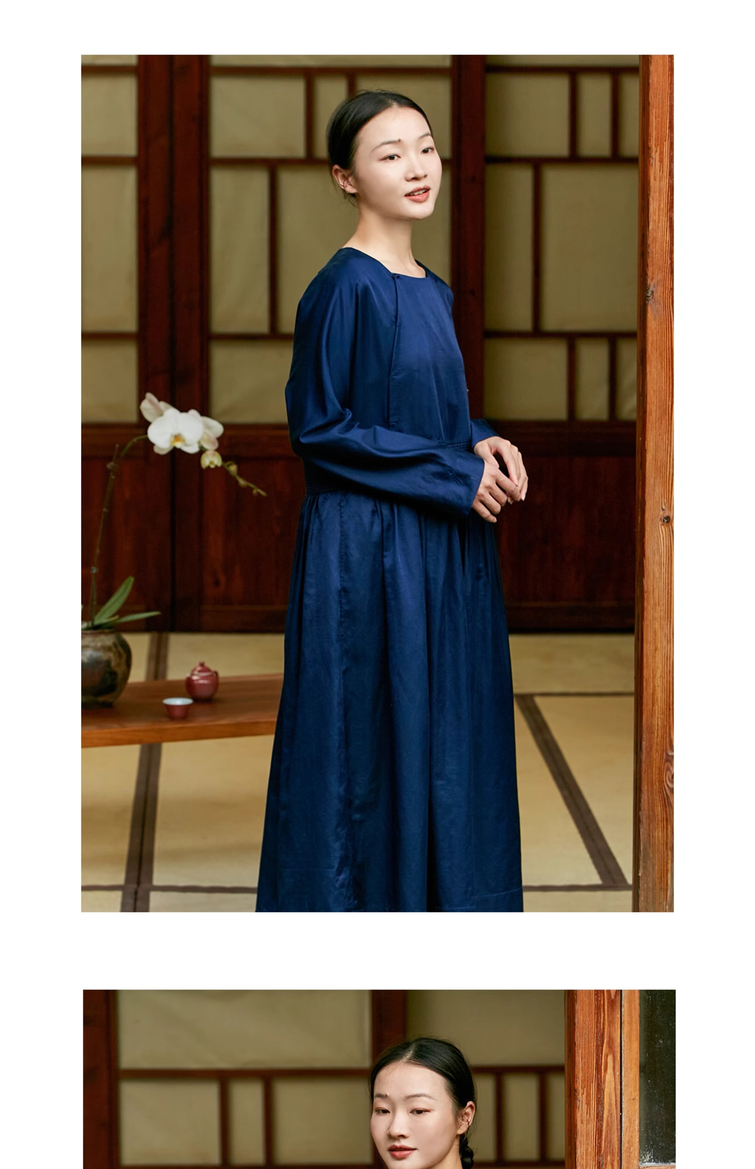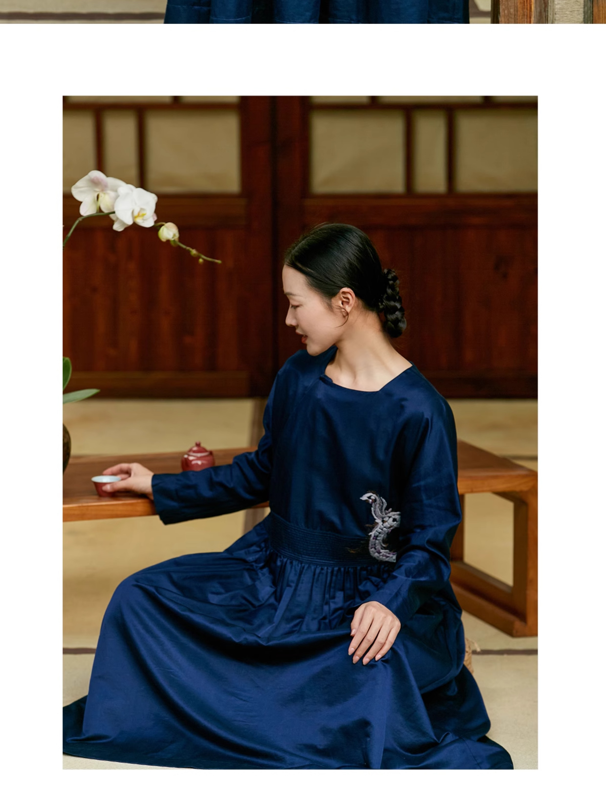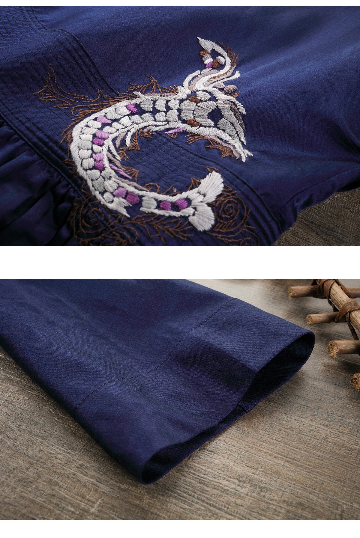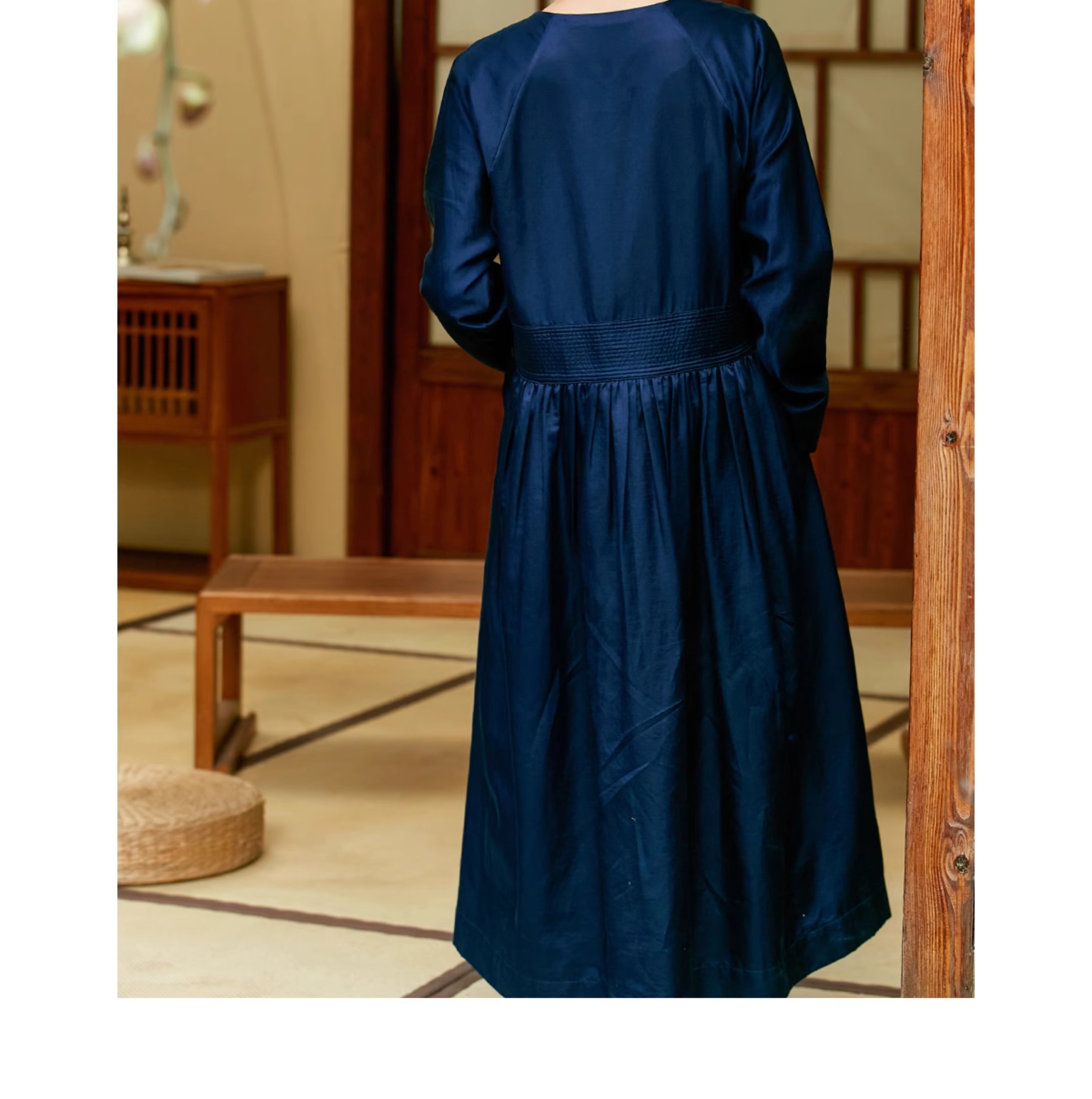 【Skimming the Sea】Jixiang Yuer's Original 19mm Silk Cotton Satin Fish and Dragon Embroidered Straight-Front Square-Neck Large Hem A-Line Dress