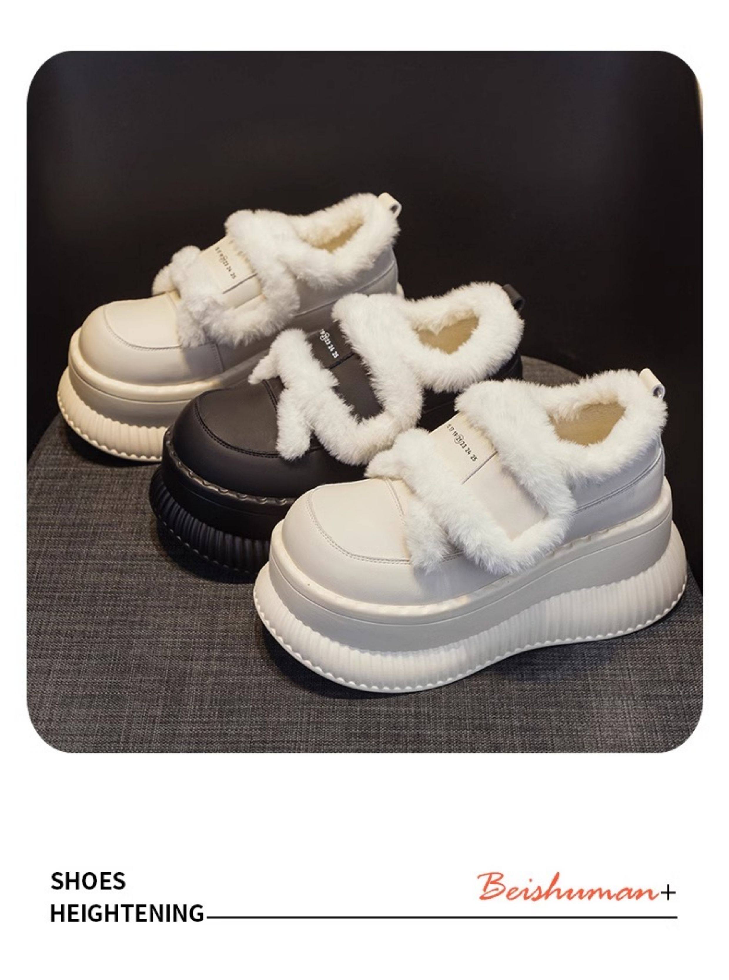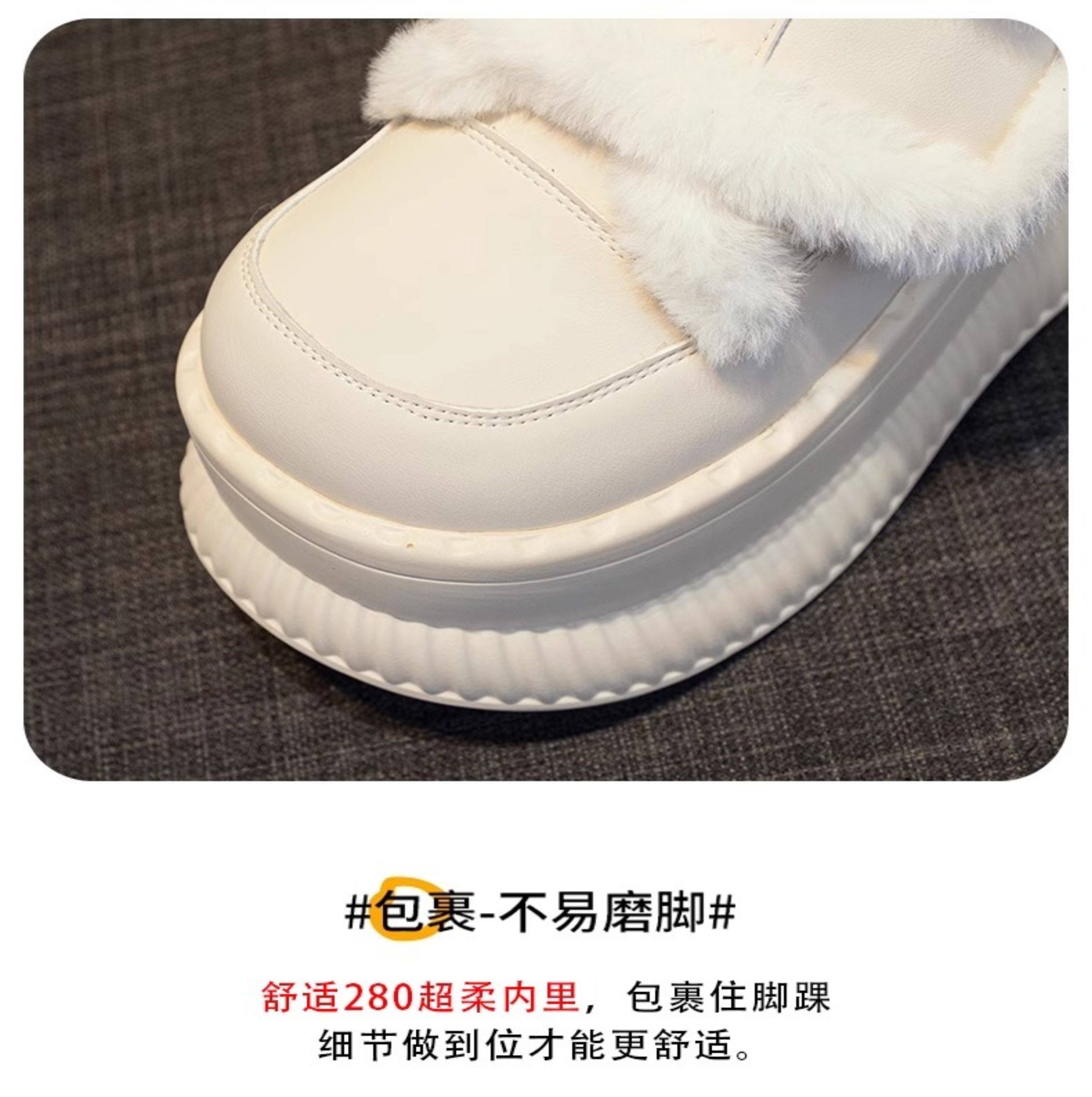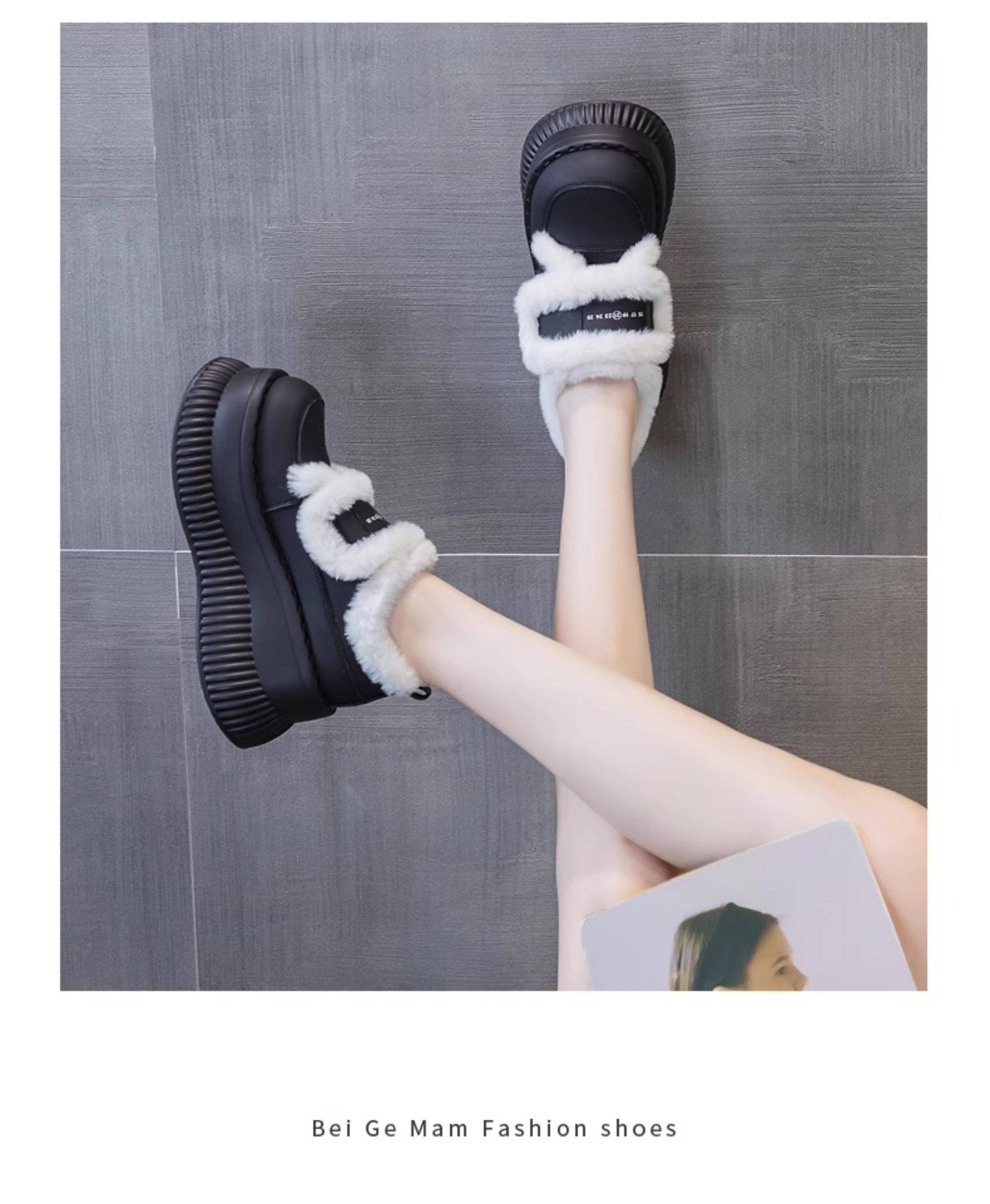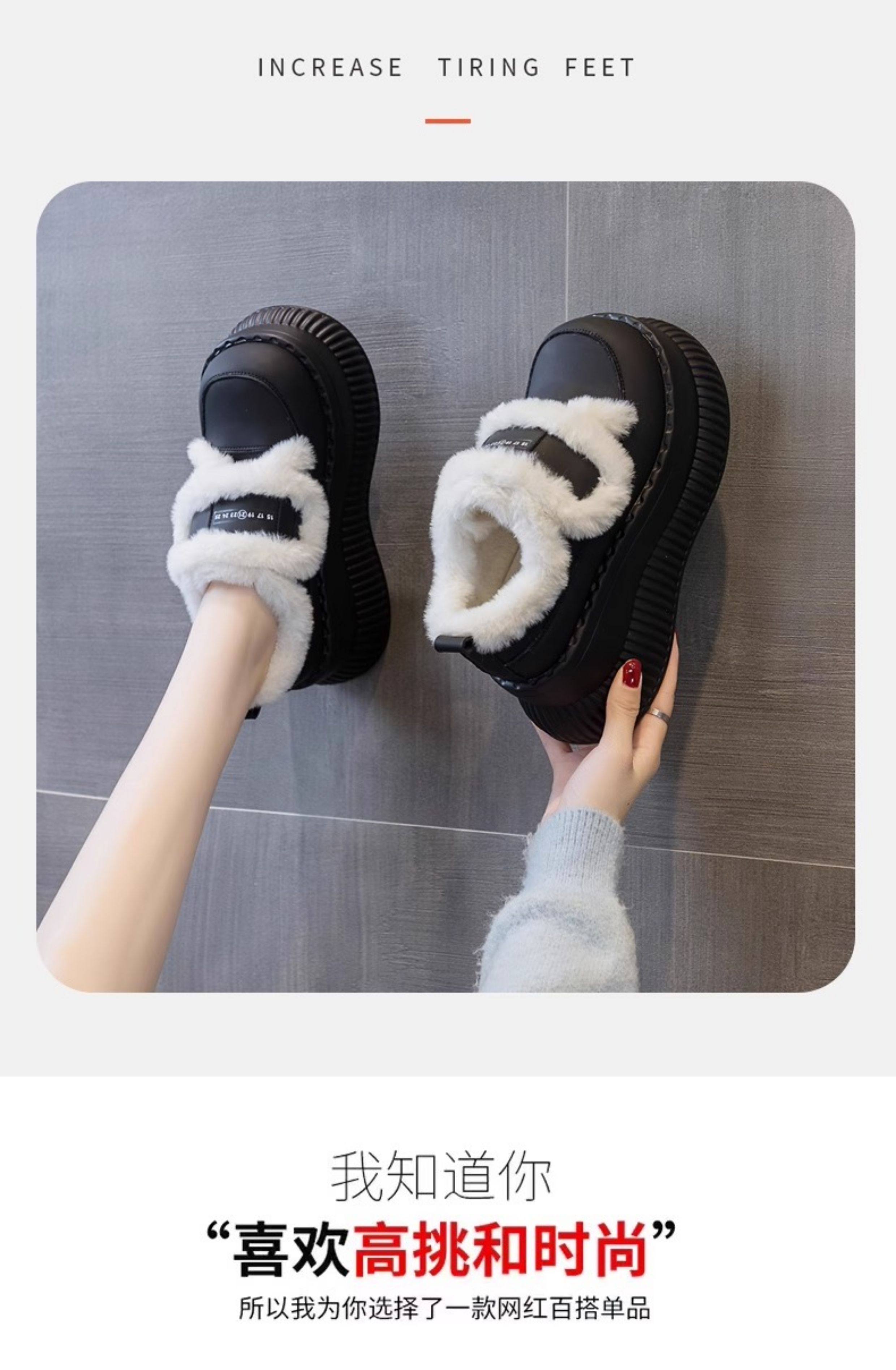 Hong Kong Women's Winter Cotton Shoes with Plush Lining and Thickened Design, 2025 New Model with Hidden Height Increase, Furry Snow Boots
