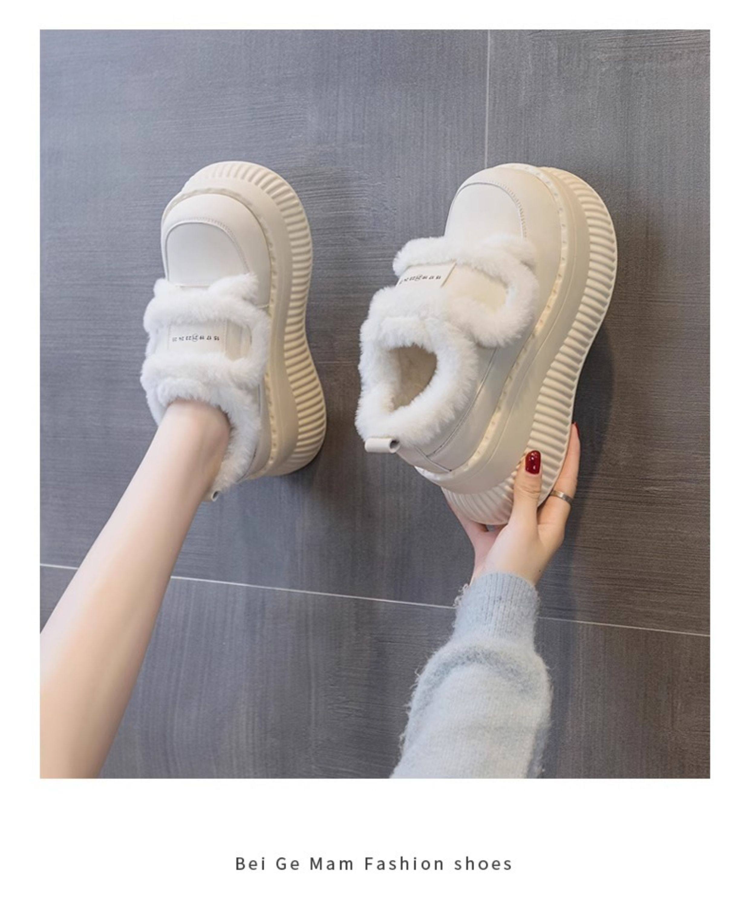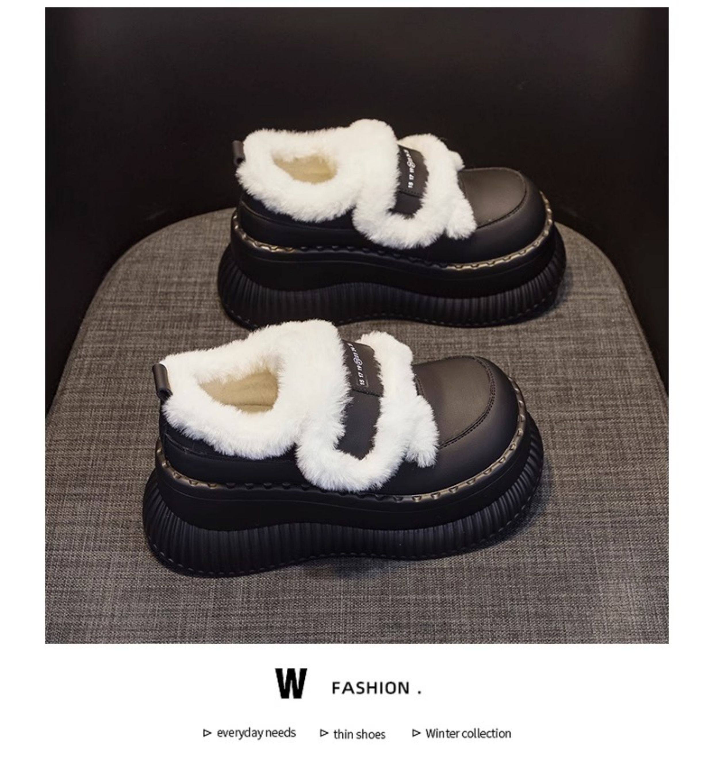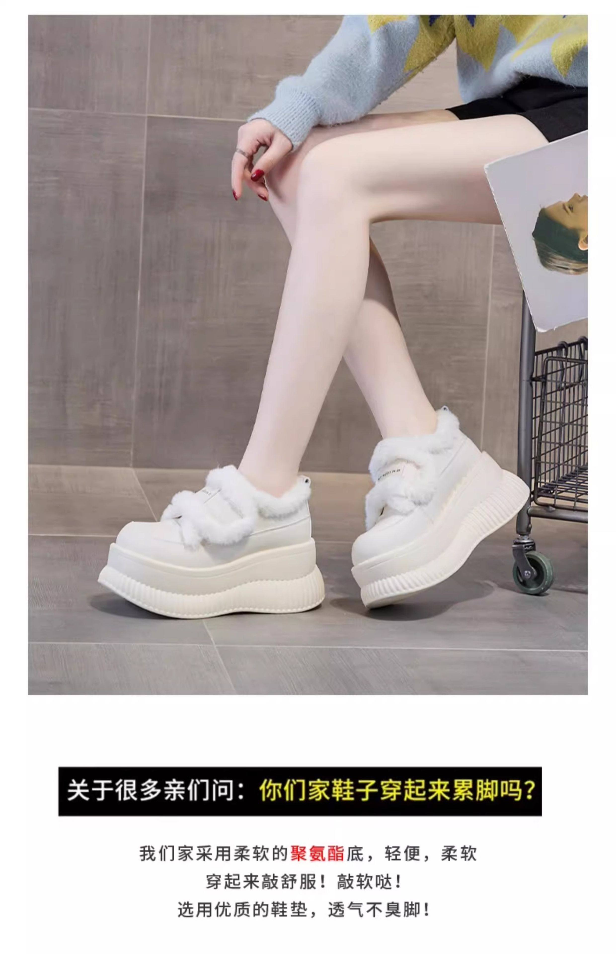 Hong Kong Women's Winter Cotton Shoes with Plush Lining and Thickened Design, 2025 New Model with Hidden Height Increase, Furry Snow Boots