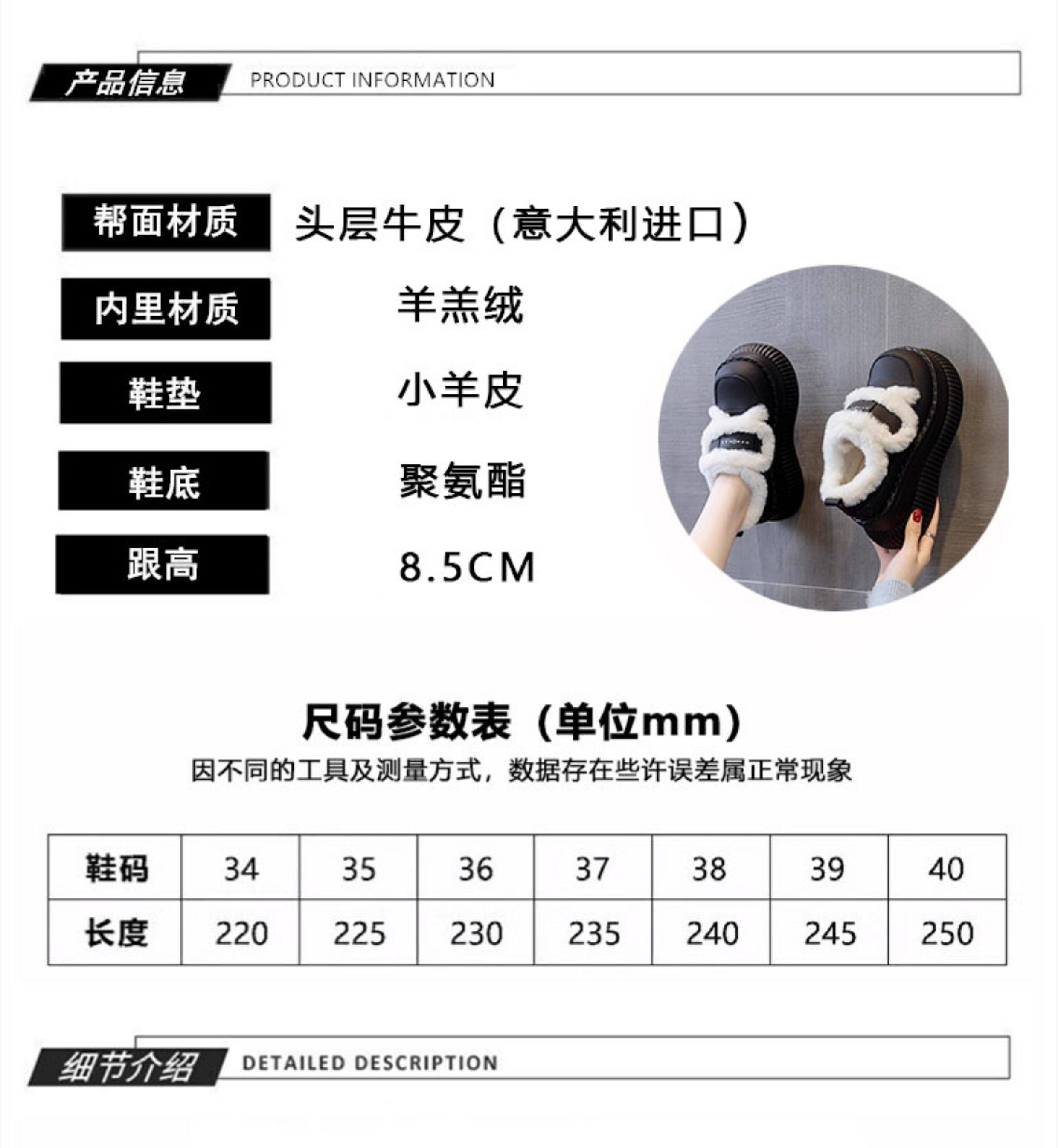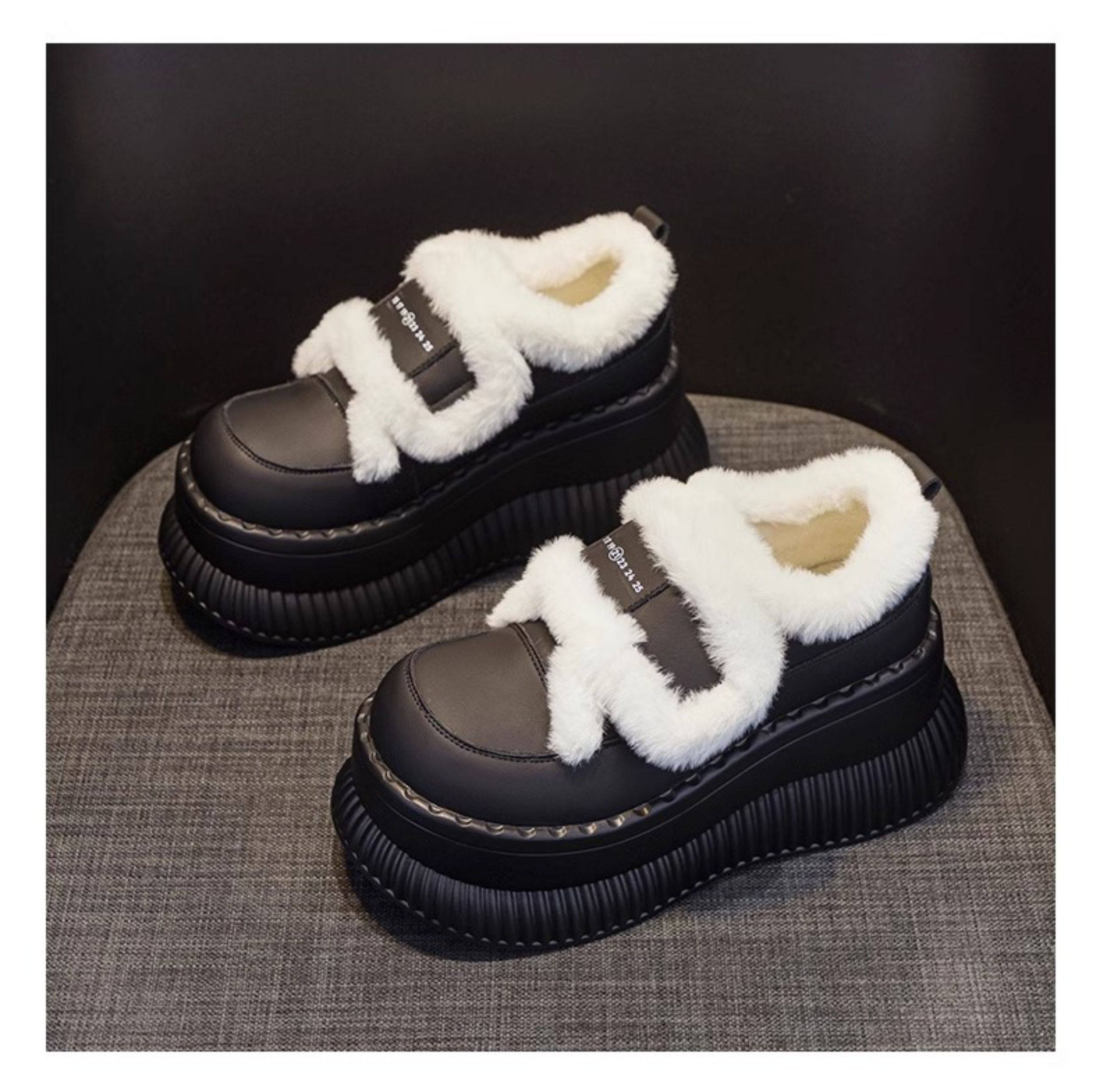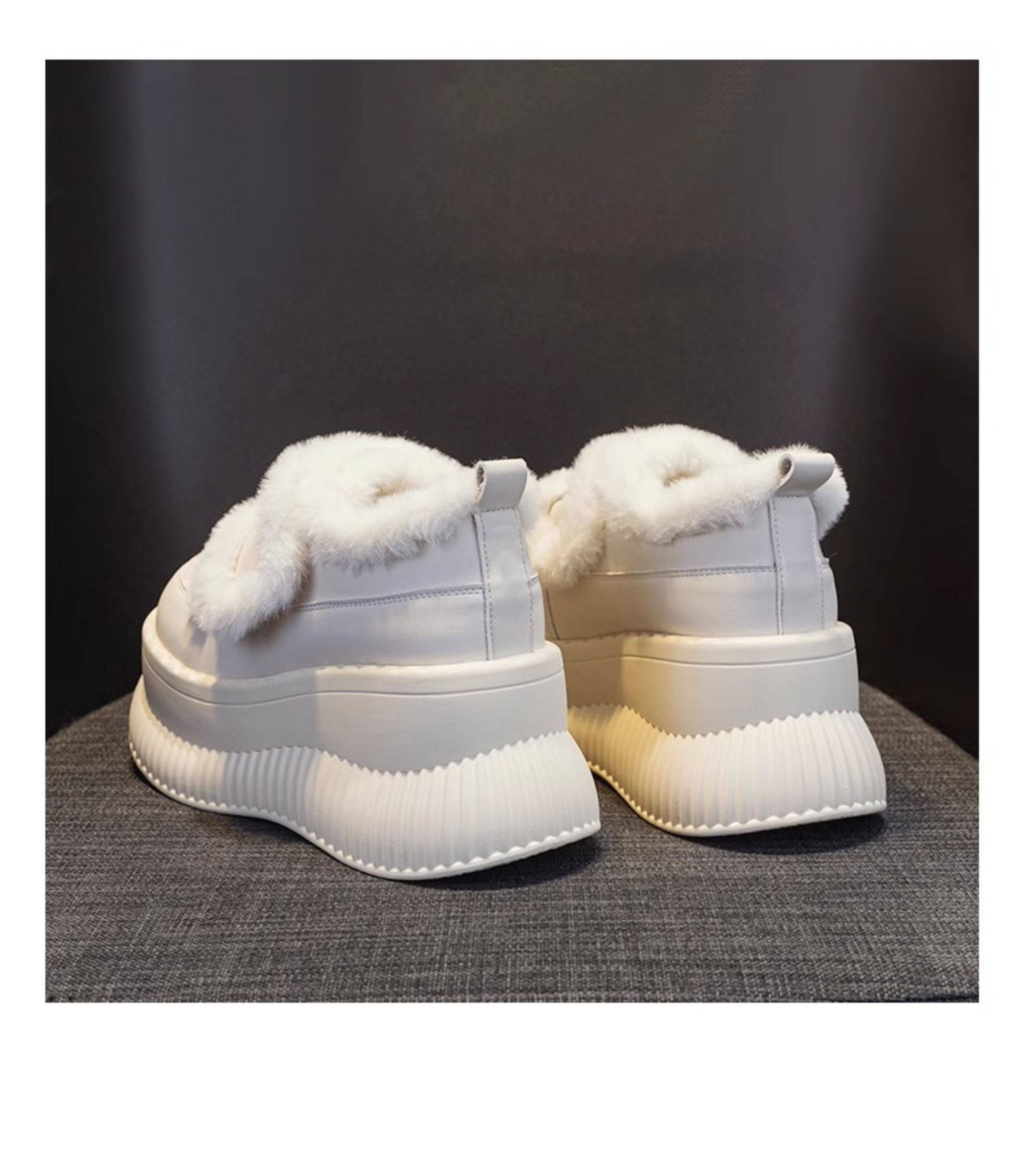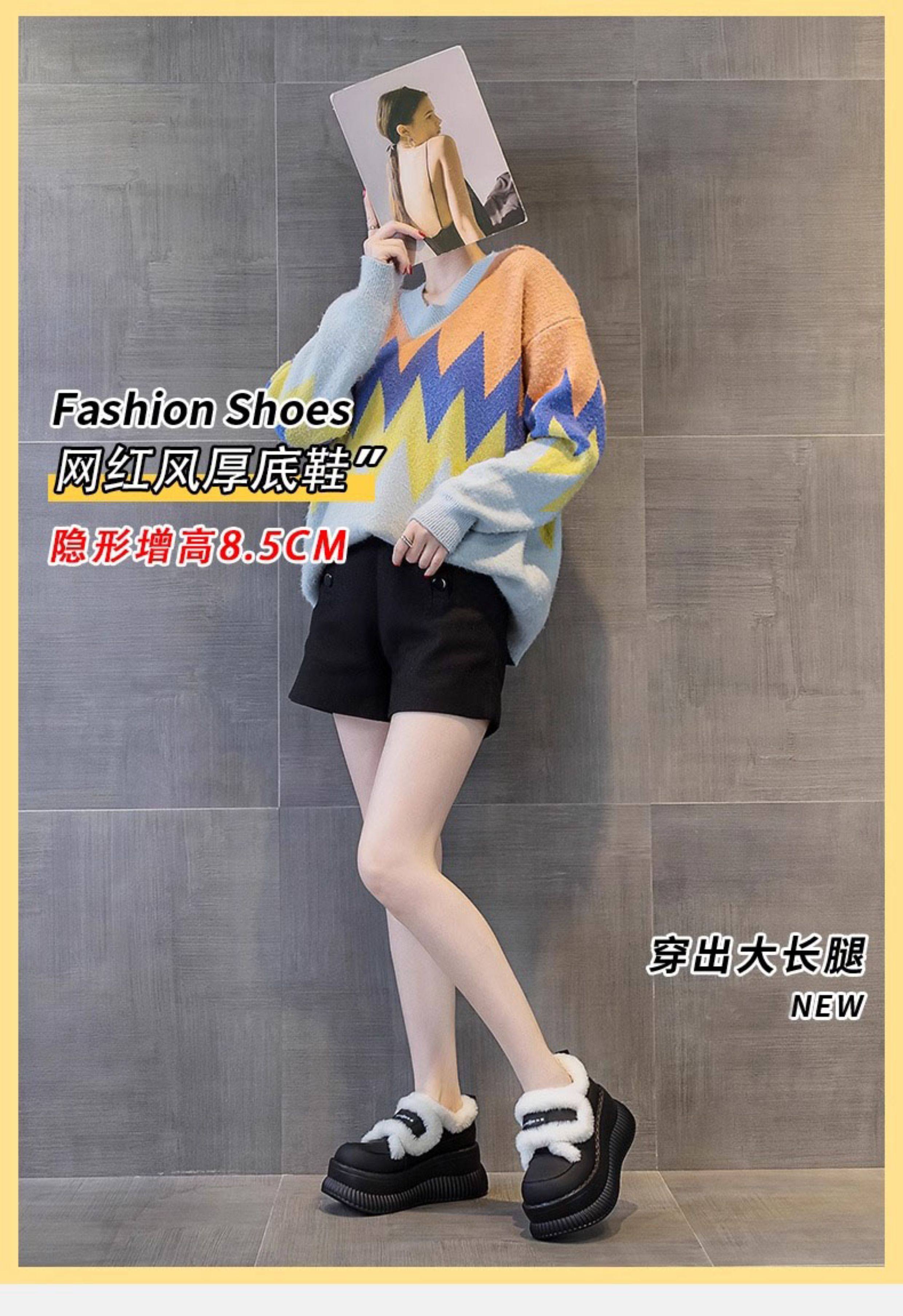 Hong Kong Women's Winter Cotton Shoes with Plush Lining and Thickened Design, 2025 New Model with Hidden Height Increase, Furry Snow Boots