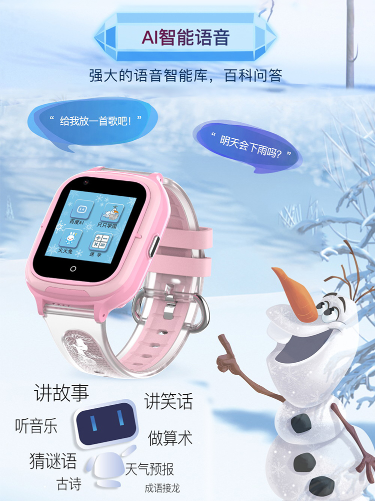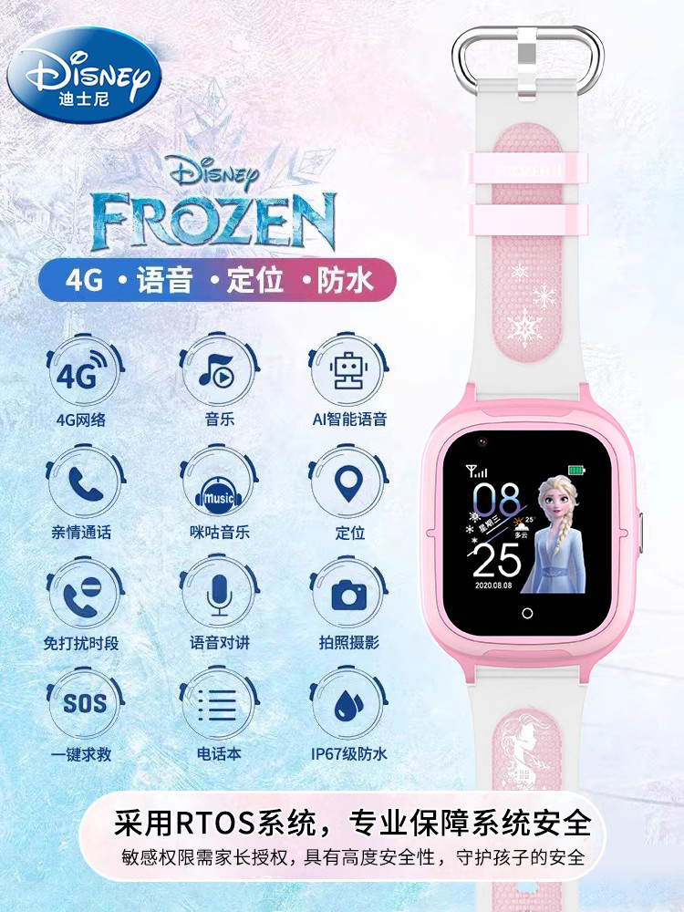 Disney Kidsren's Phone Watch for Girls, Primary School Students, 4g Full Network Card, Video, Smart Positioning, Waterproof for Girls