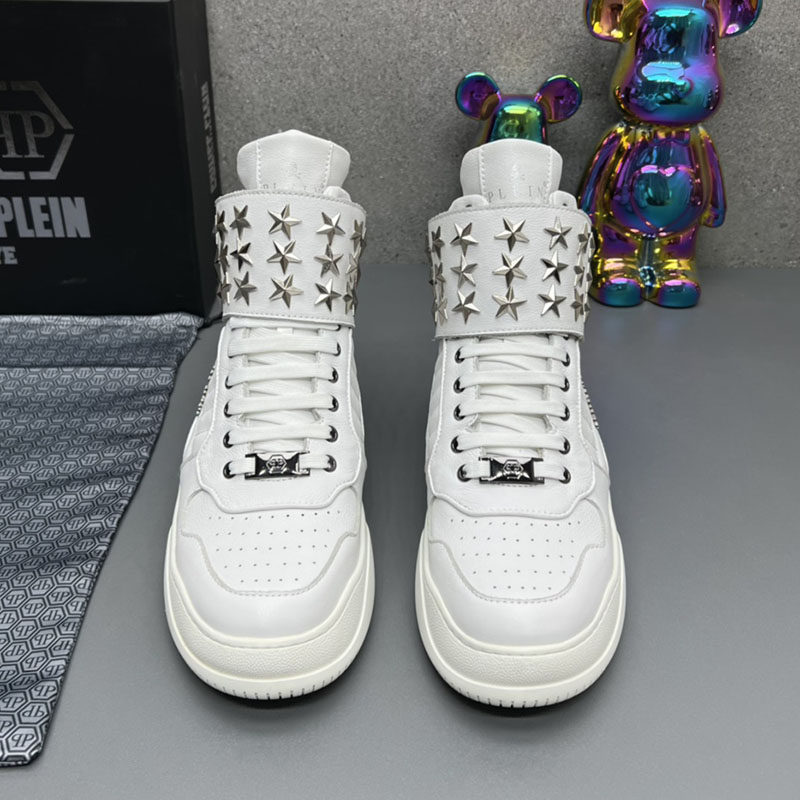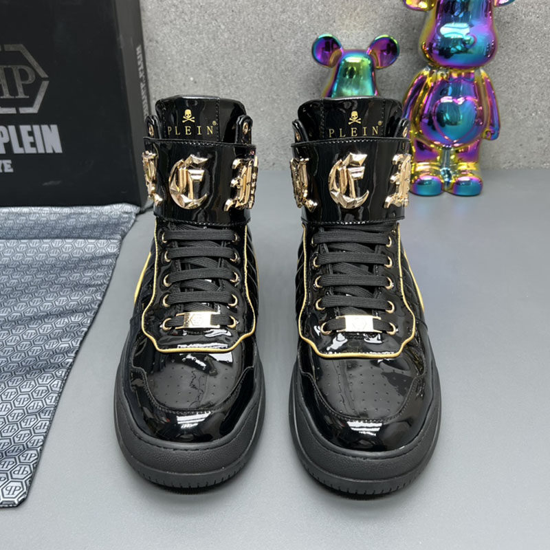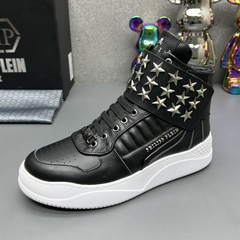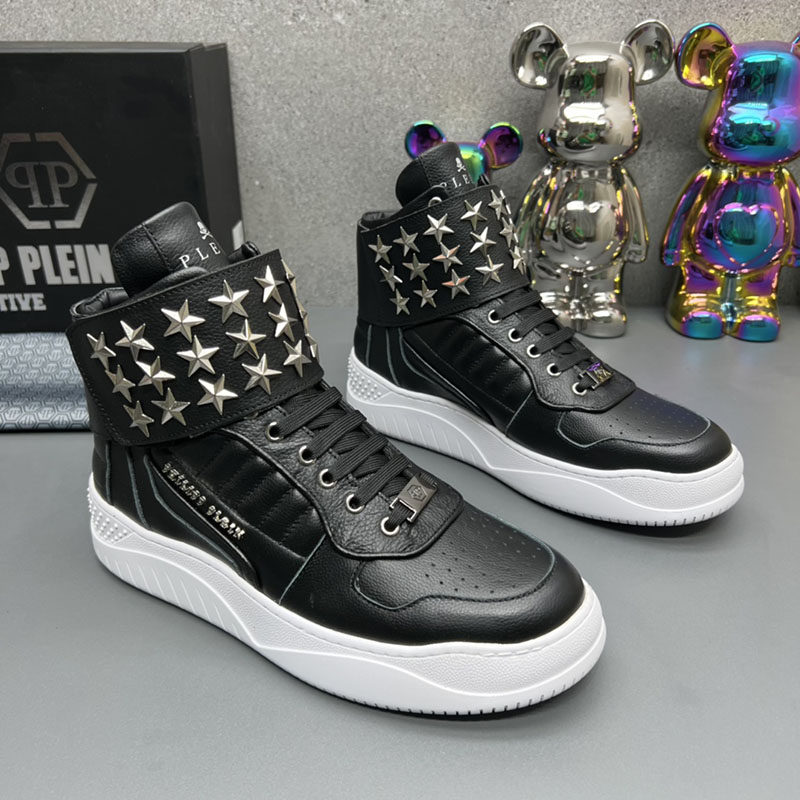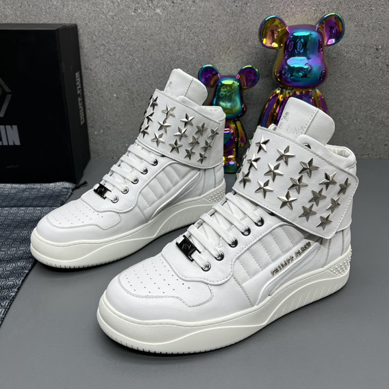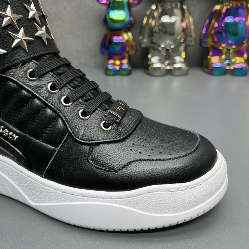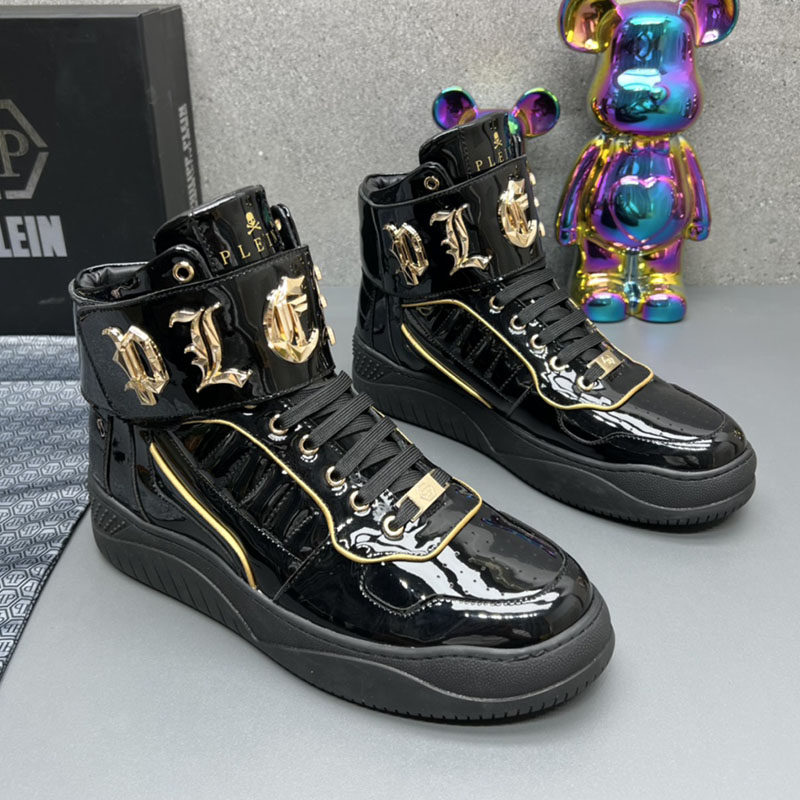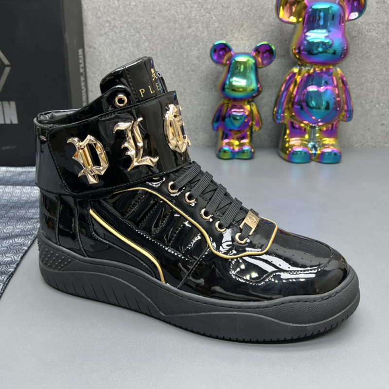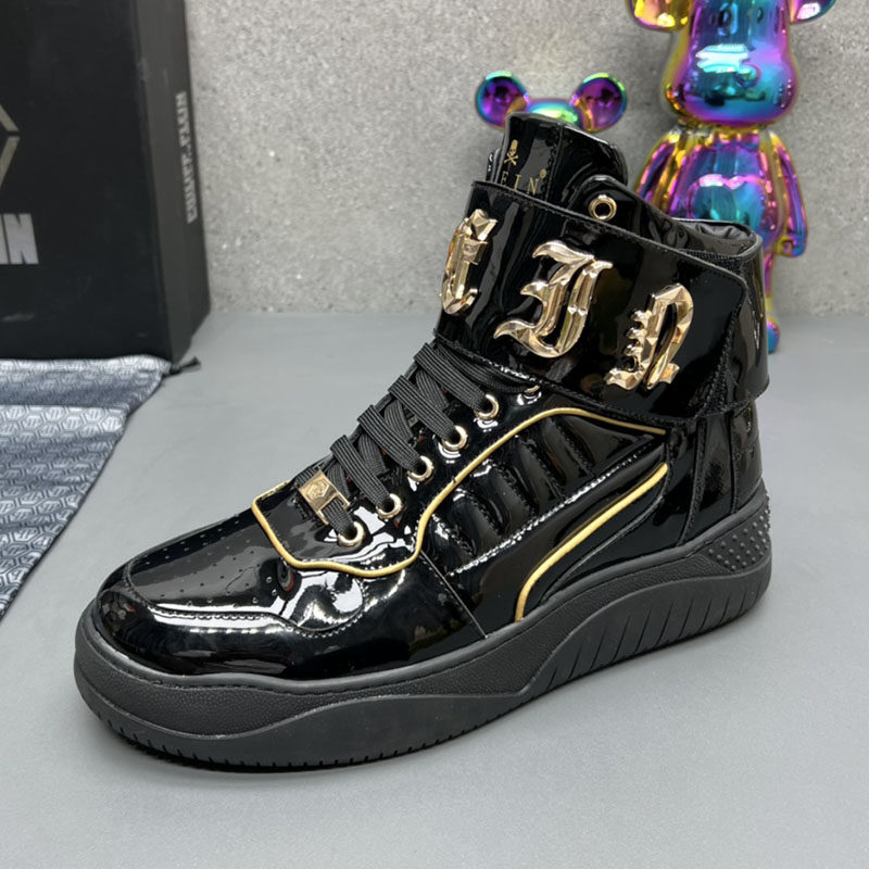 High-Top Men's Leather Shoes, Light Luxury Trendy Brand, Heavy Metal Fashion Casual Shoes, European Style New Autumn and Winter Sneakers for Men