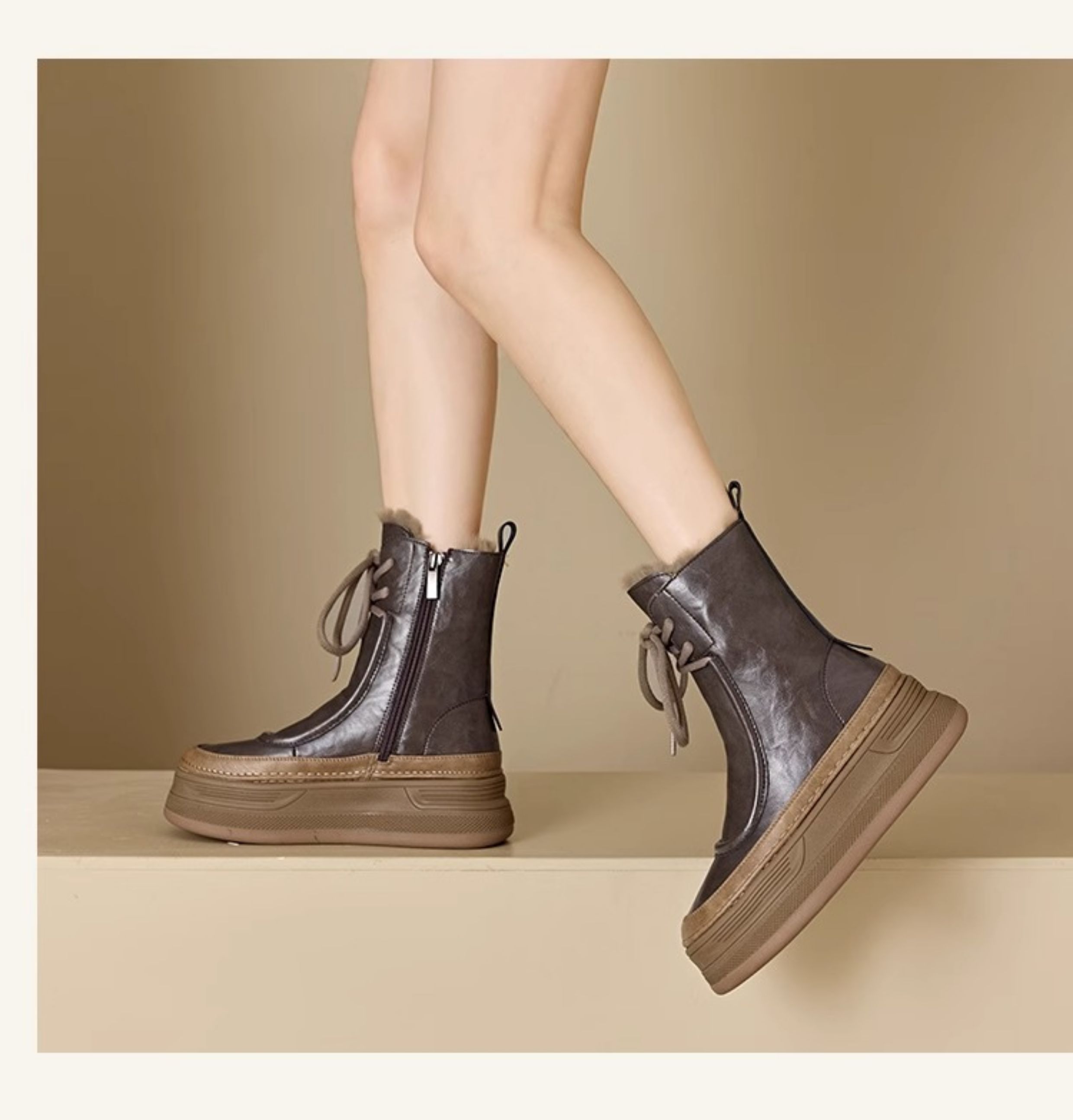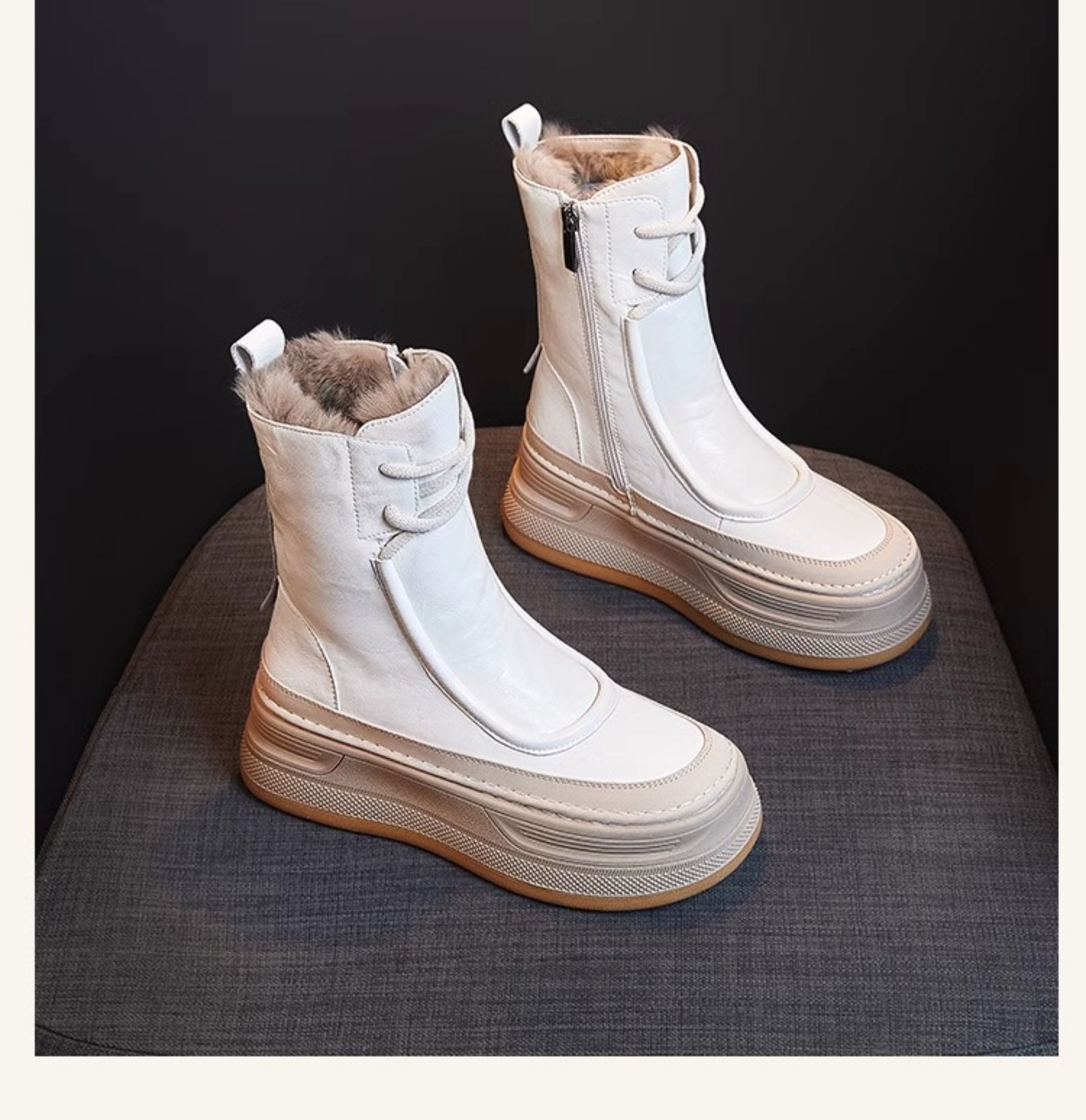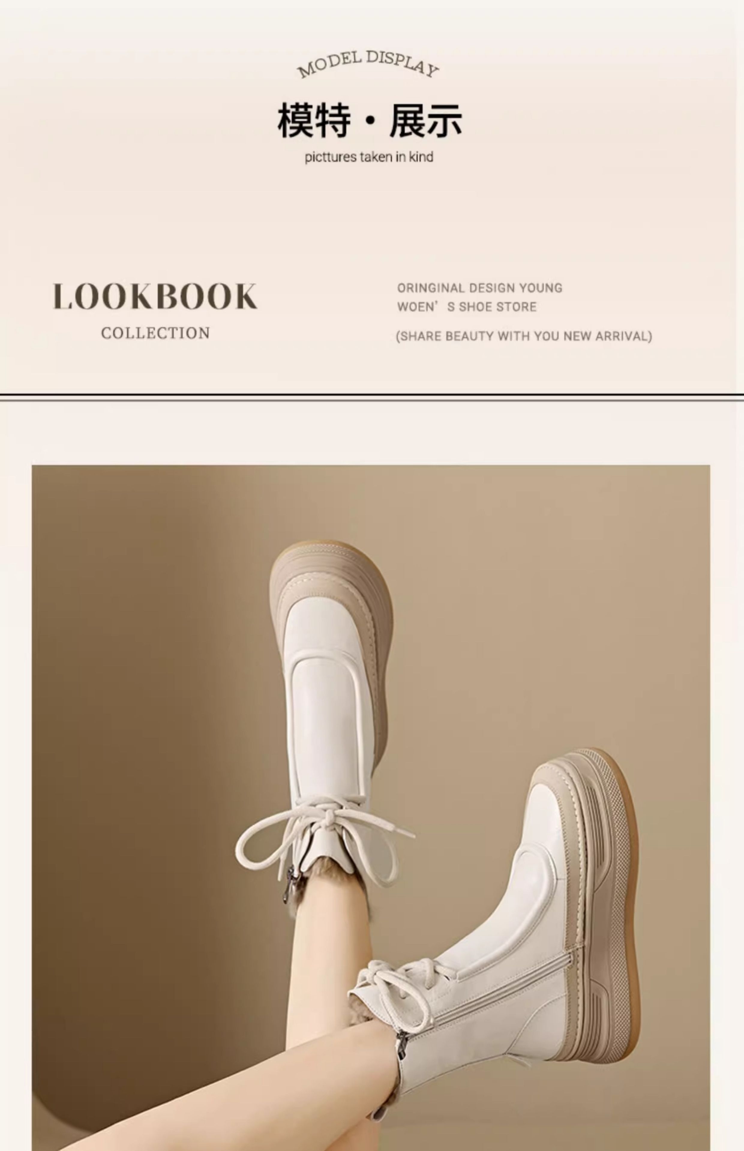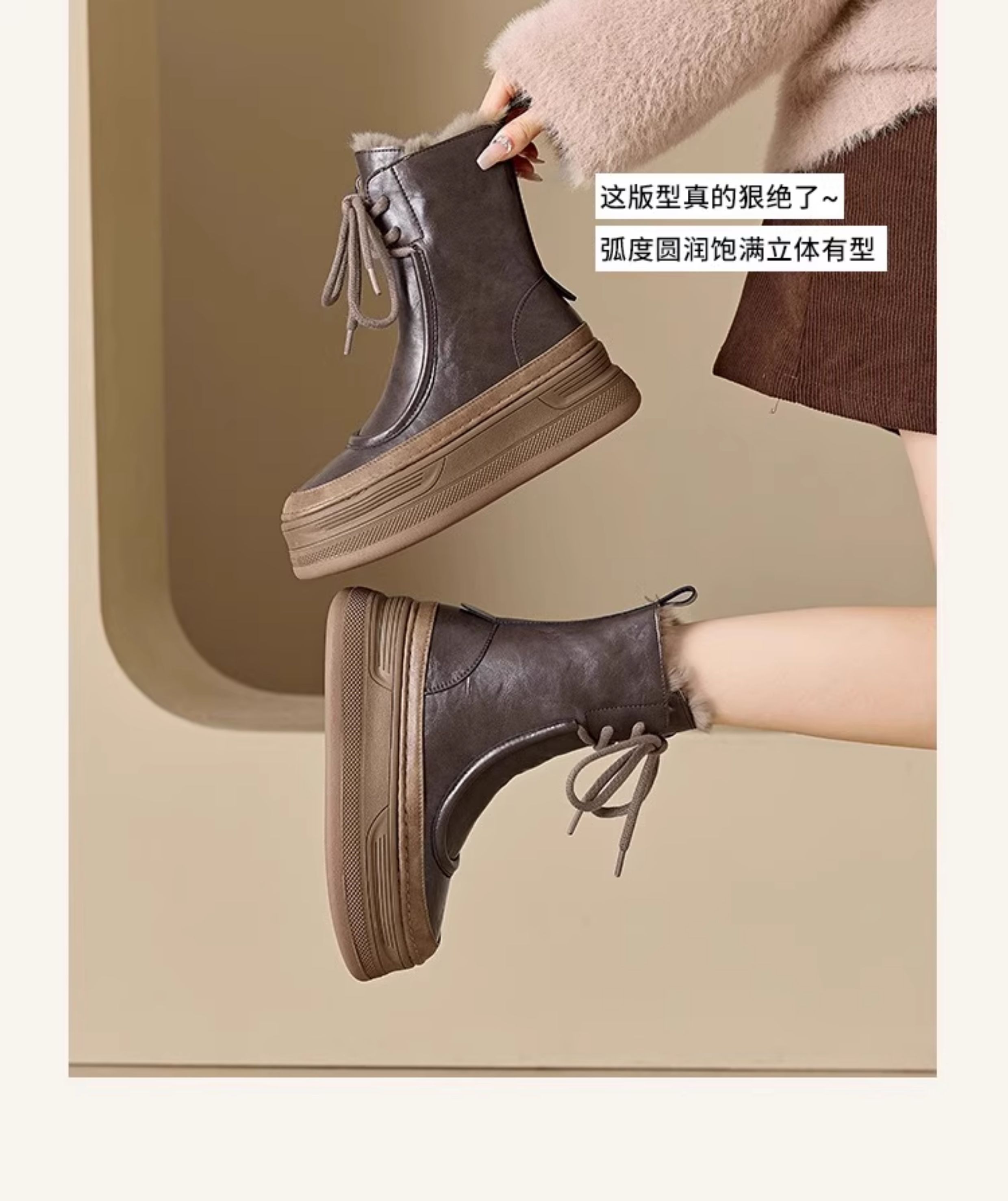Hong Kong Thick-Soled Short Boots with Fleece Lining for Women, 2025 Winter Non-Slip Height-Increasing Snow Boots, Versatile and Warm Winter Shoes for Mothers