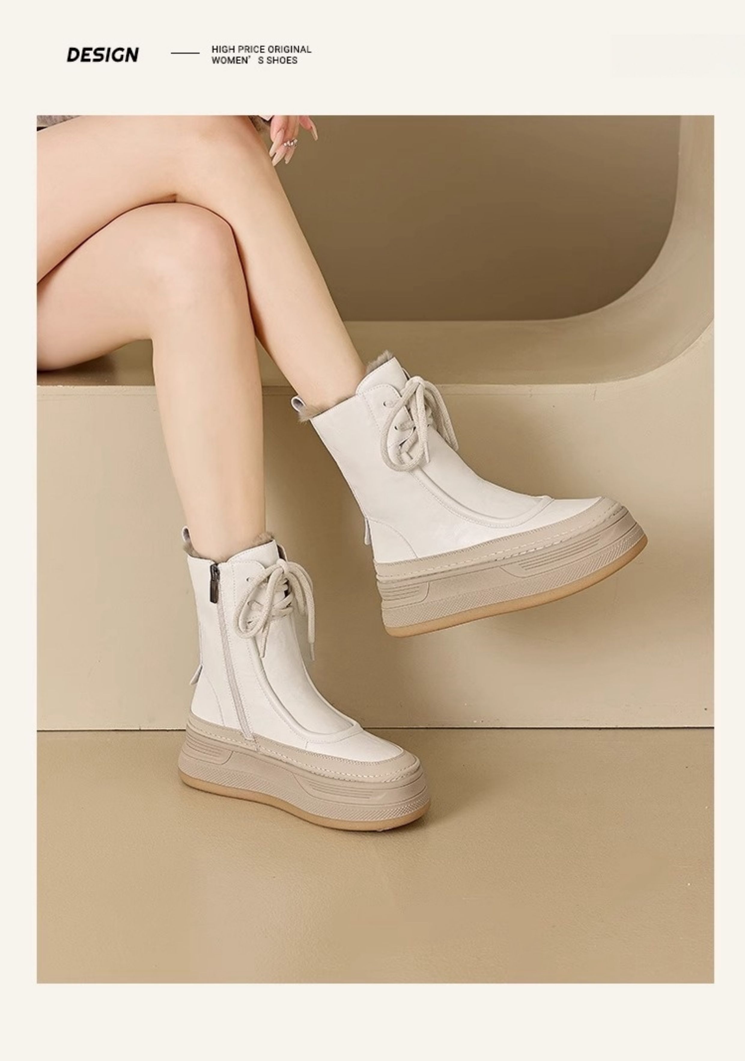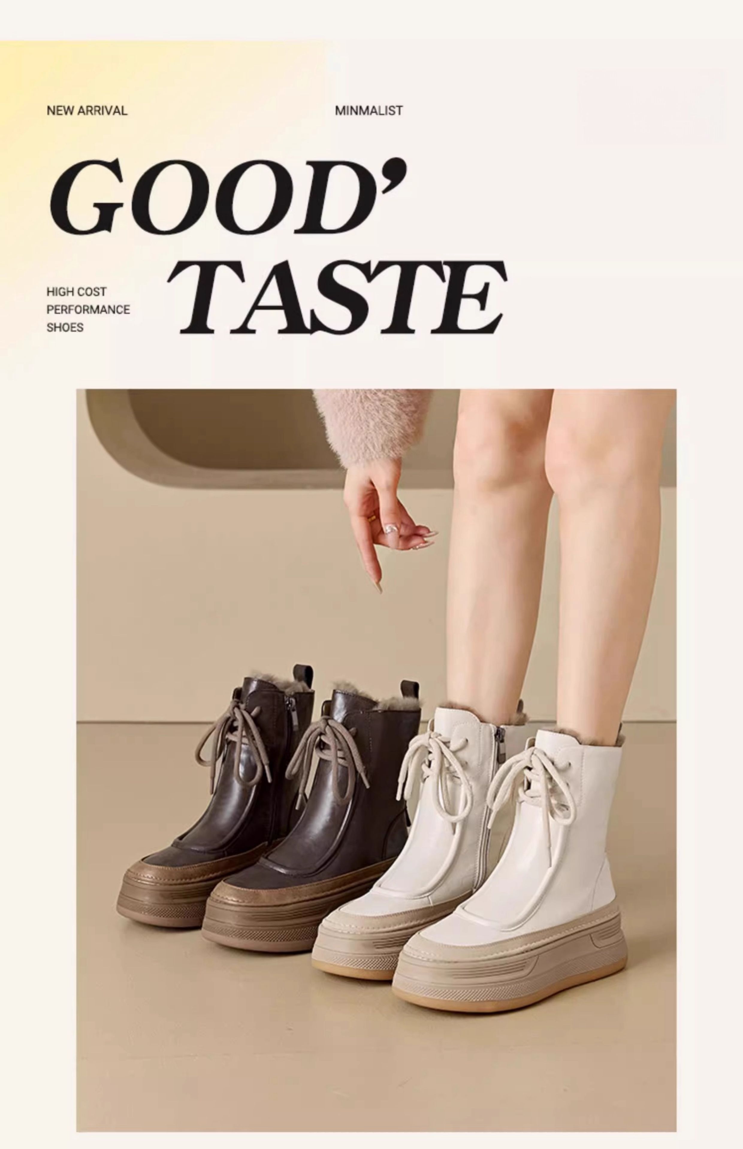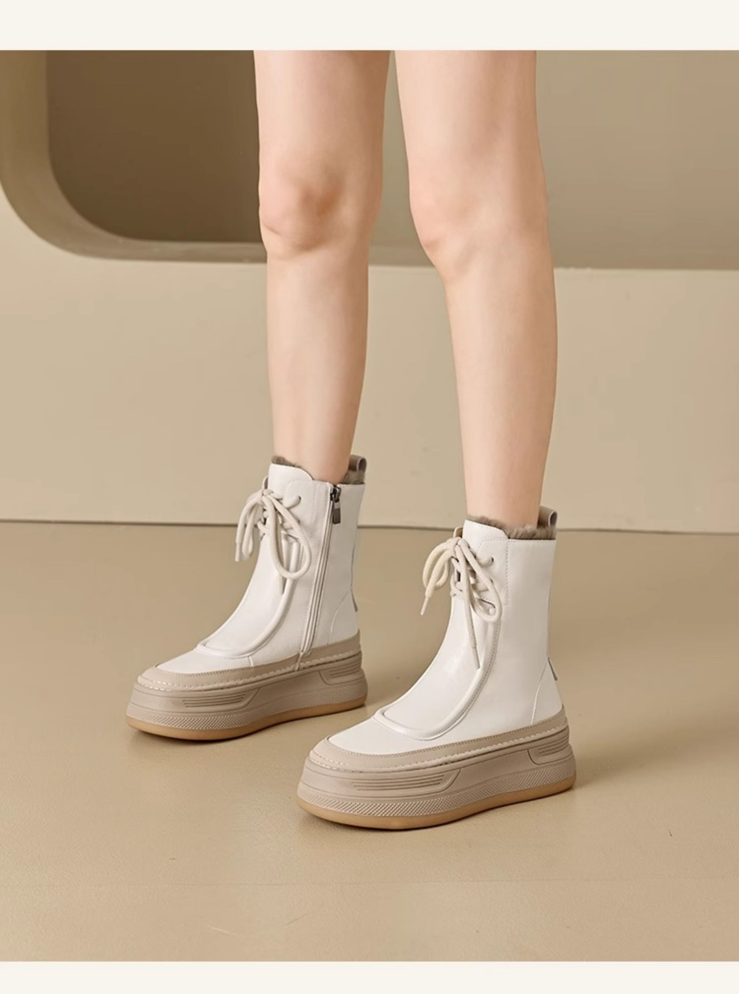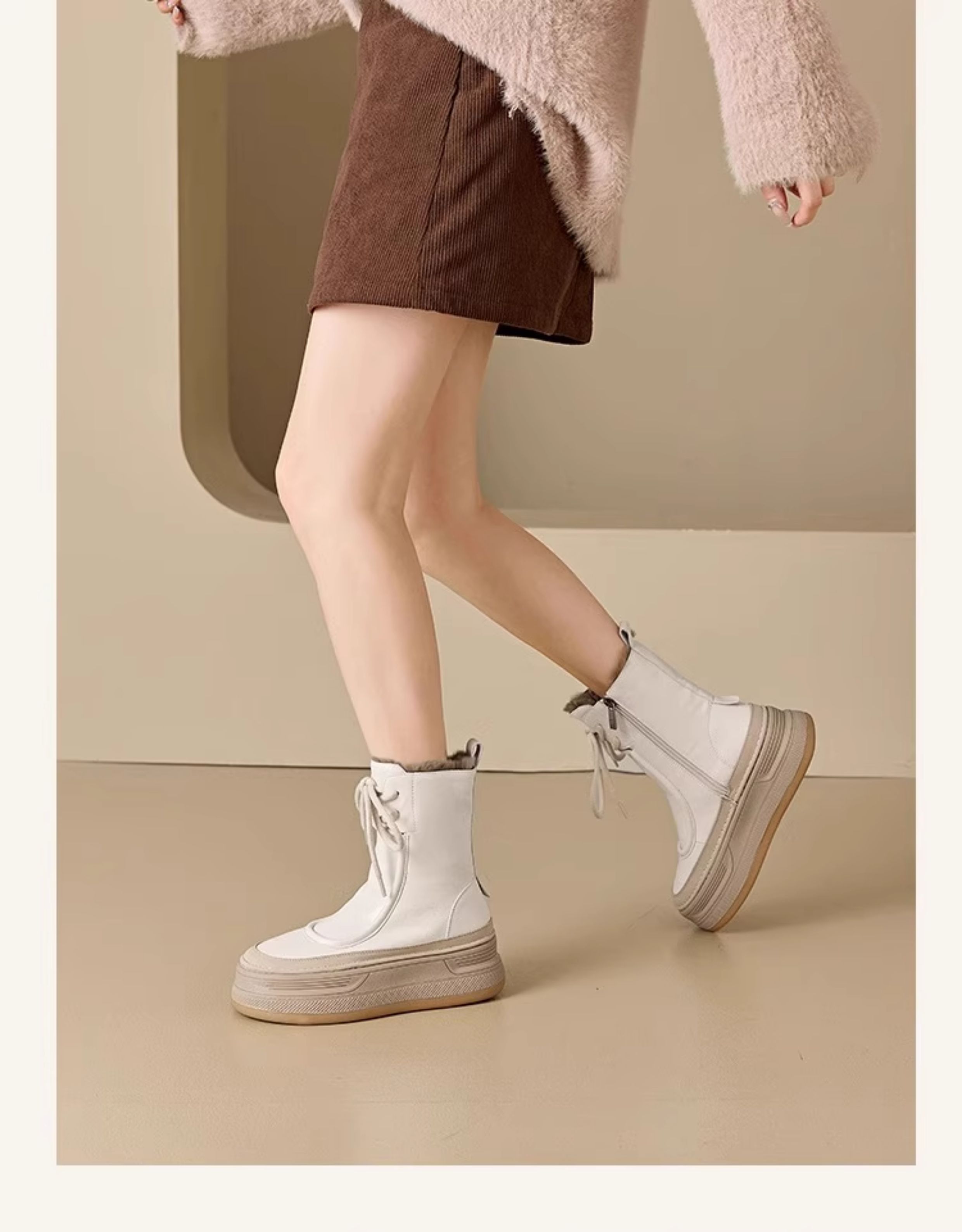 Hong Kong Thick-Soled Short Boots with Fleece Lining for Women, 2025 Winter Non-Slip Height-Increasing Snow Boots, Versatile and Warm Winter Shoes for Mothers