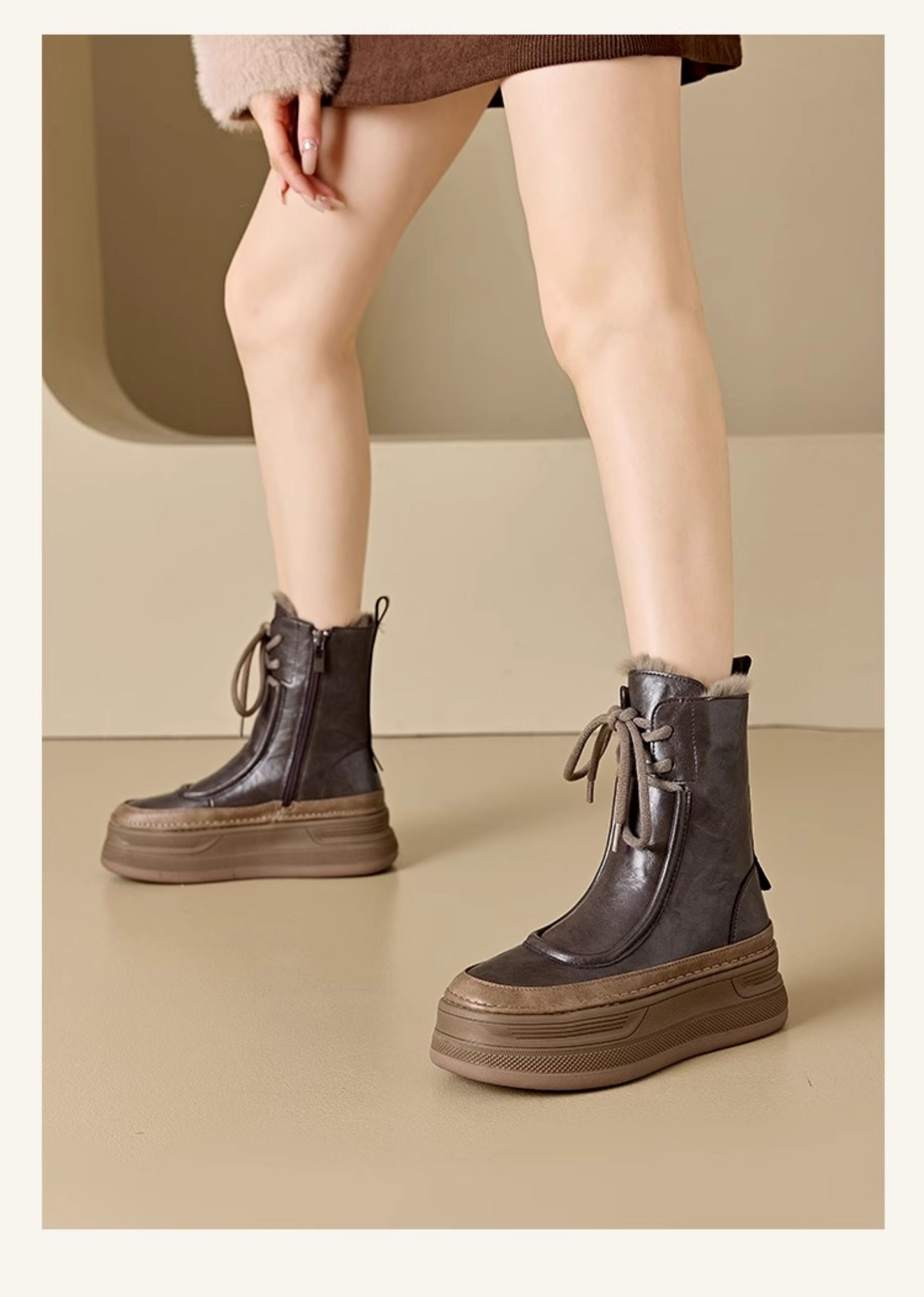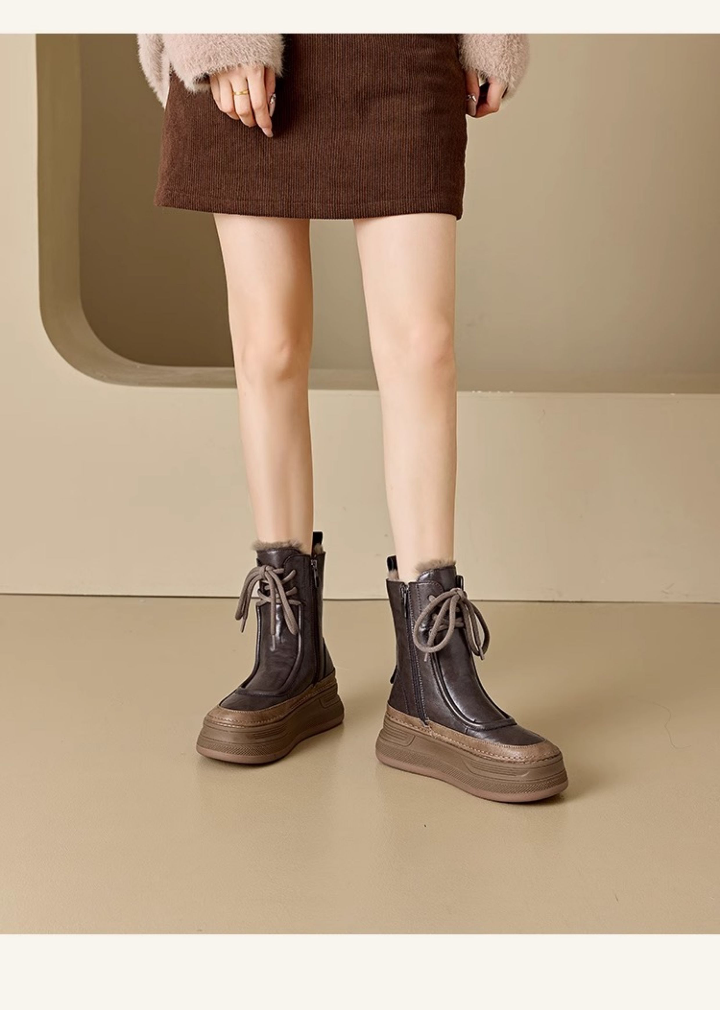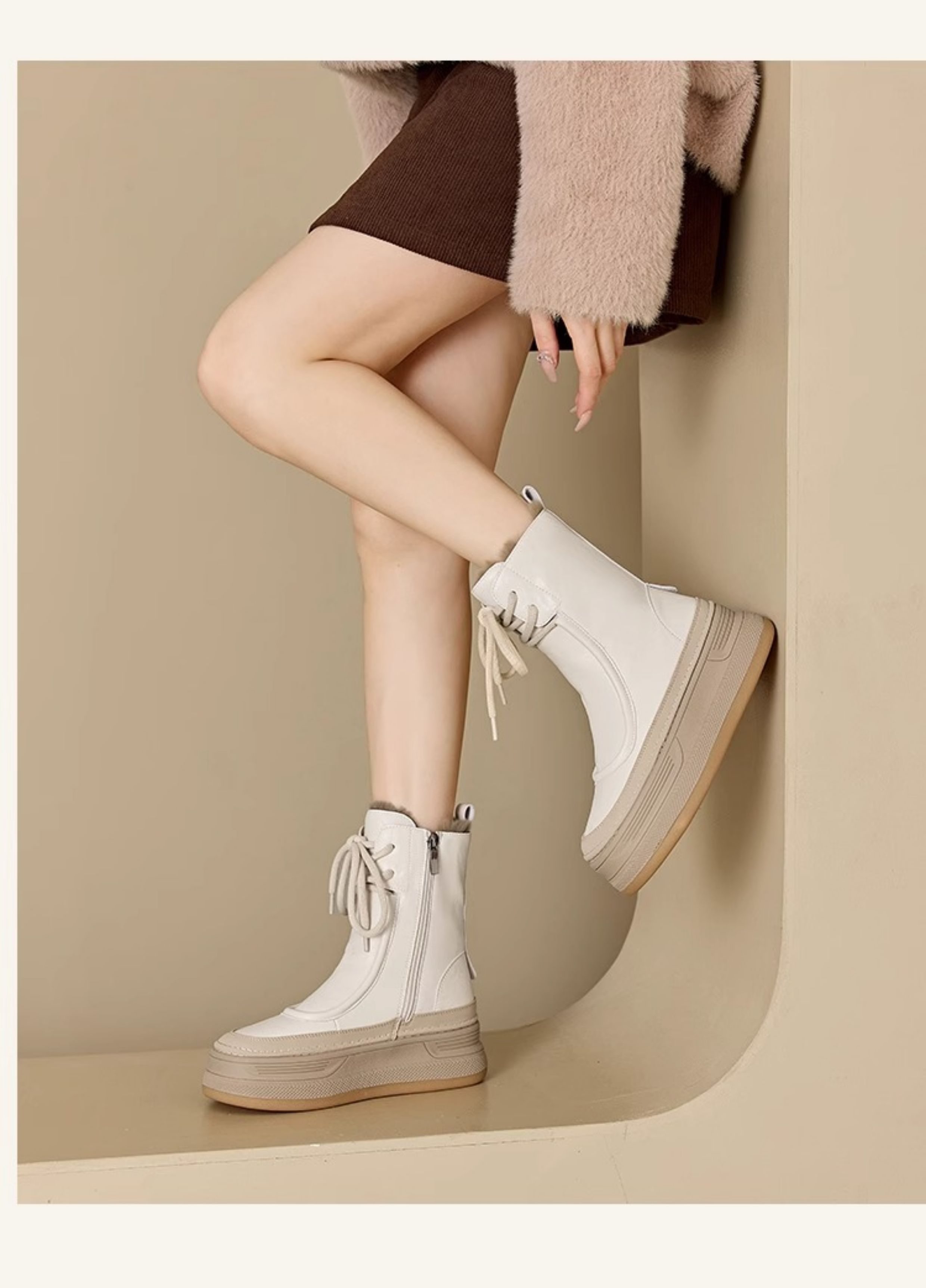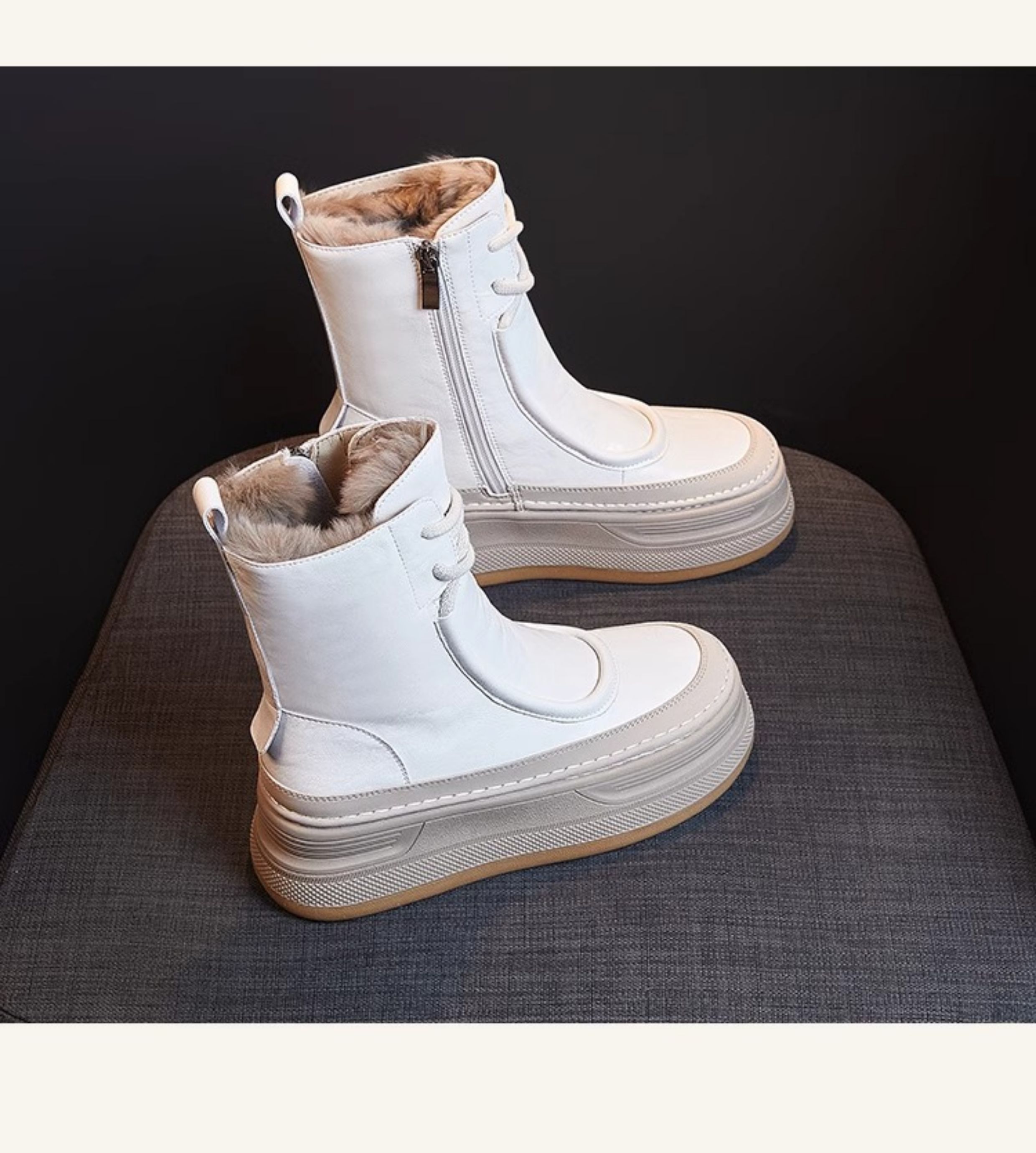 Hong Kong Thick-Soled Short Boots with Fleece Lining for Women, 2025 Winter Non-Slip Height-Increasing Snow Boots, Versatile and Warm Winter Shoes for Mothers