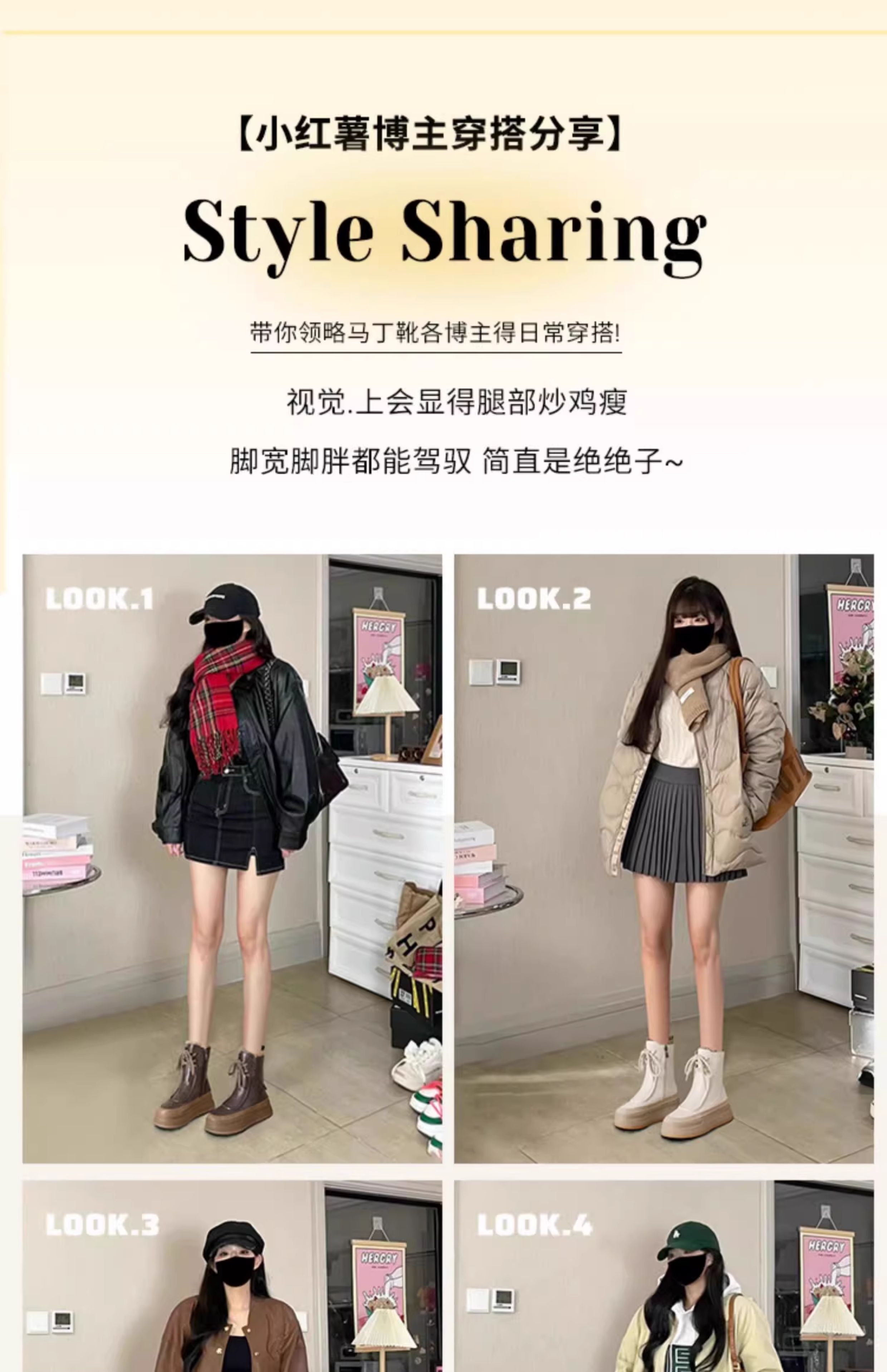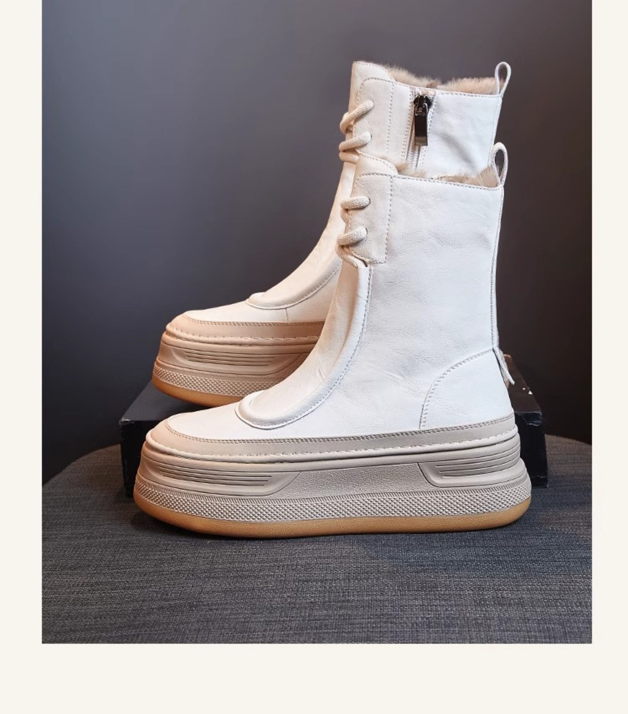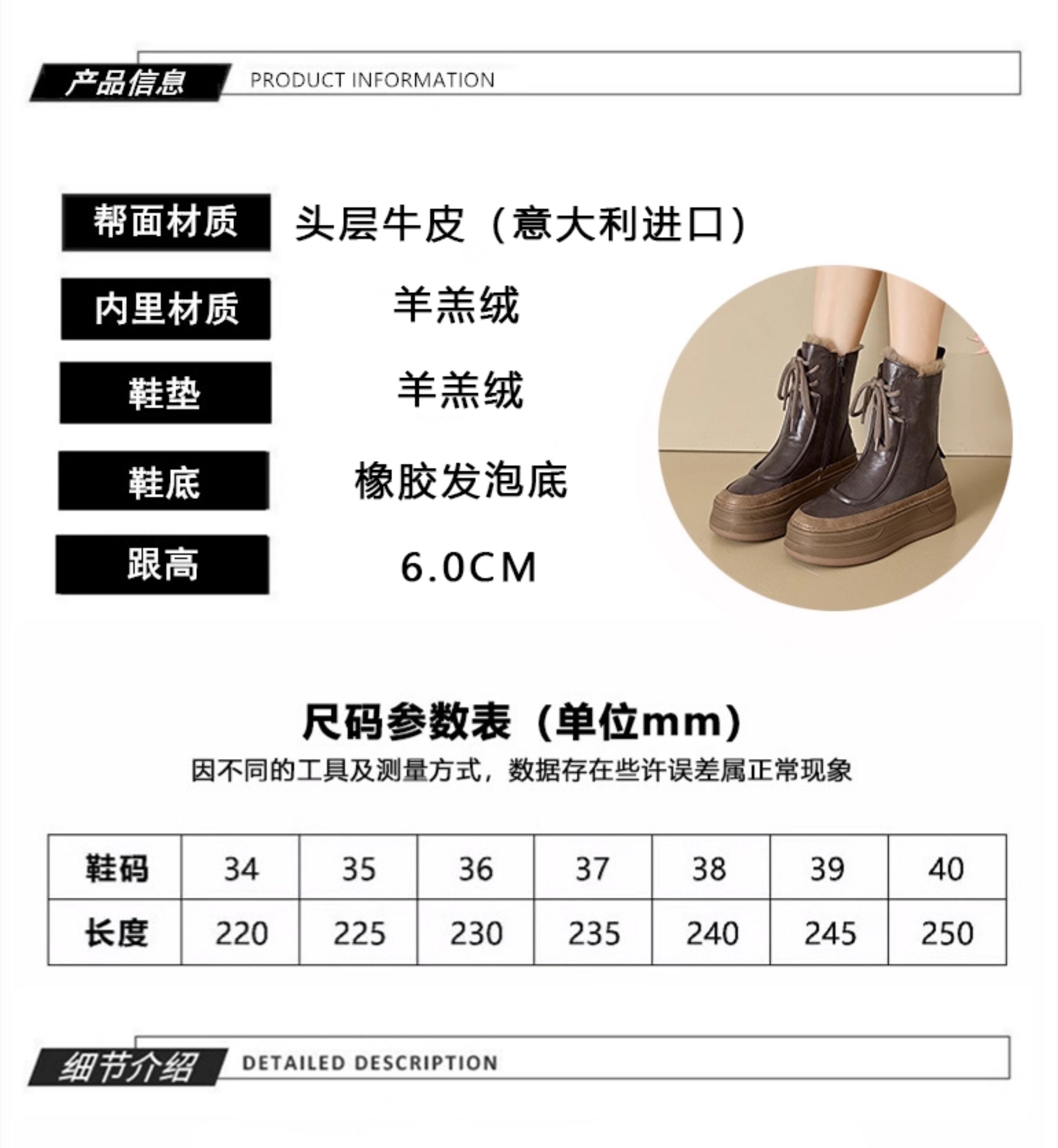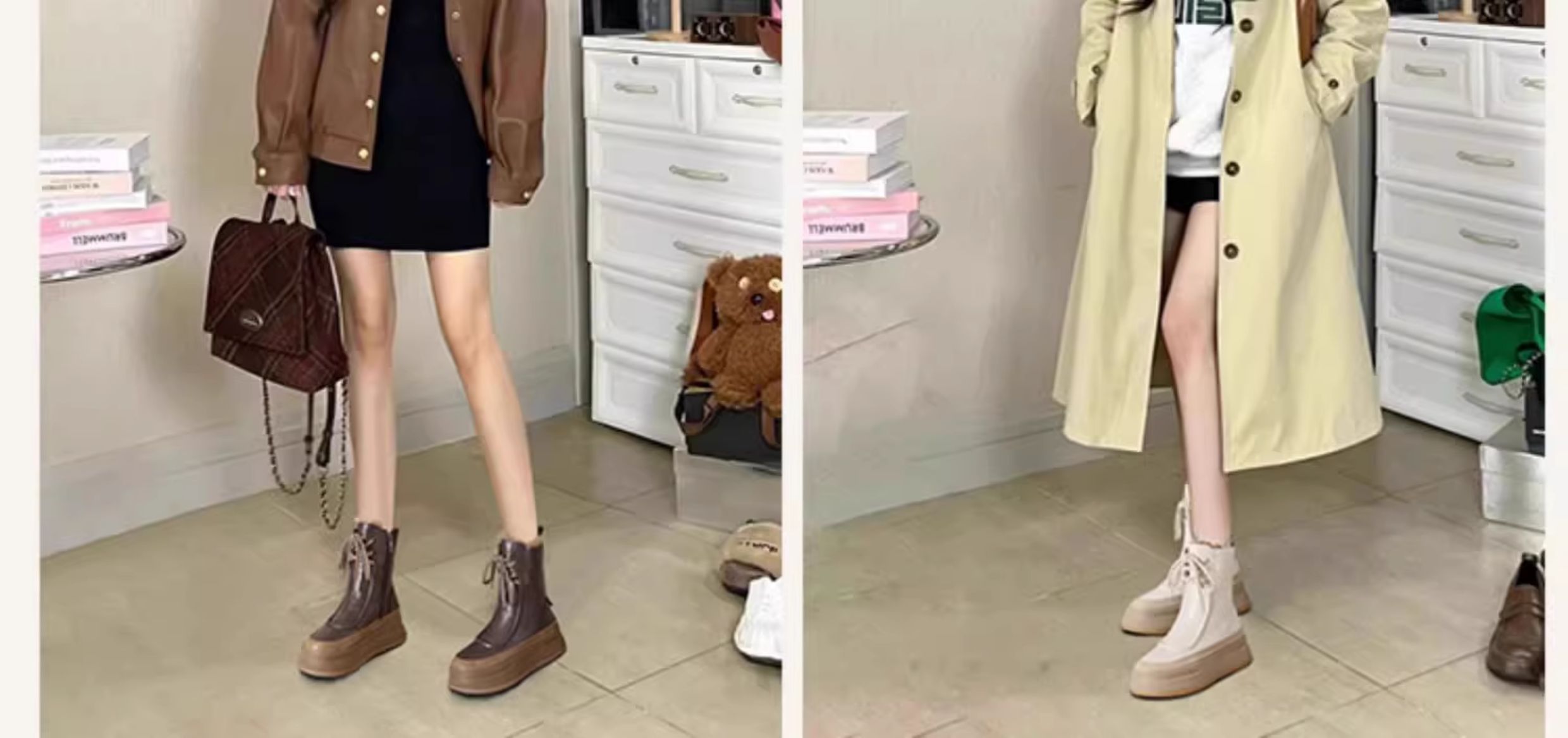Hong Kong Thick-Soled Short Boots with Fleece Lining for Women, 2025 Winter Non-Slip Height-Increasing Snow Boots, Versatile and Warm Winter Shoes for Mothers