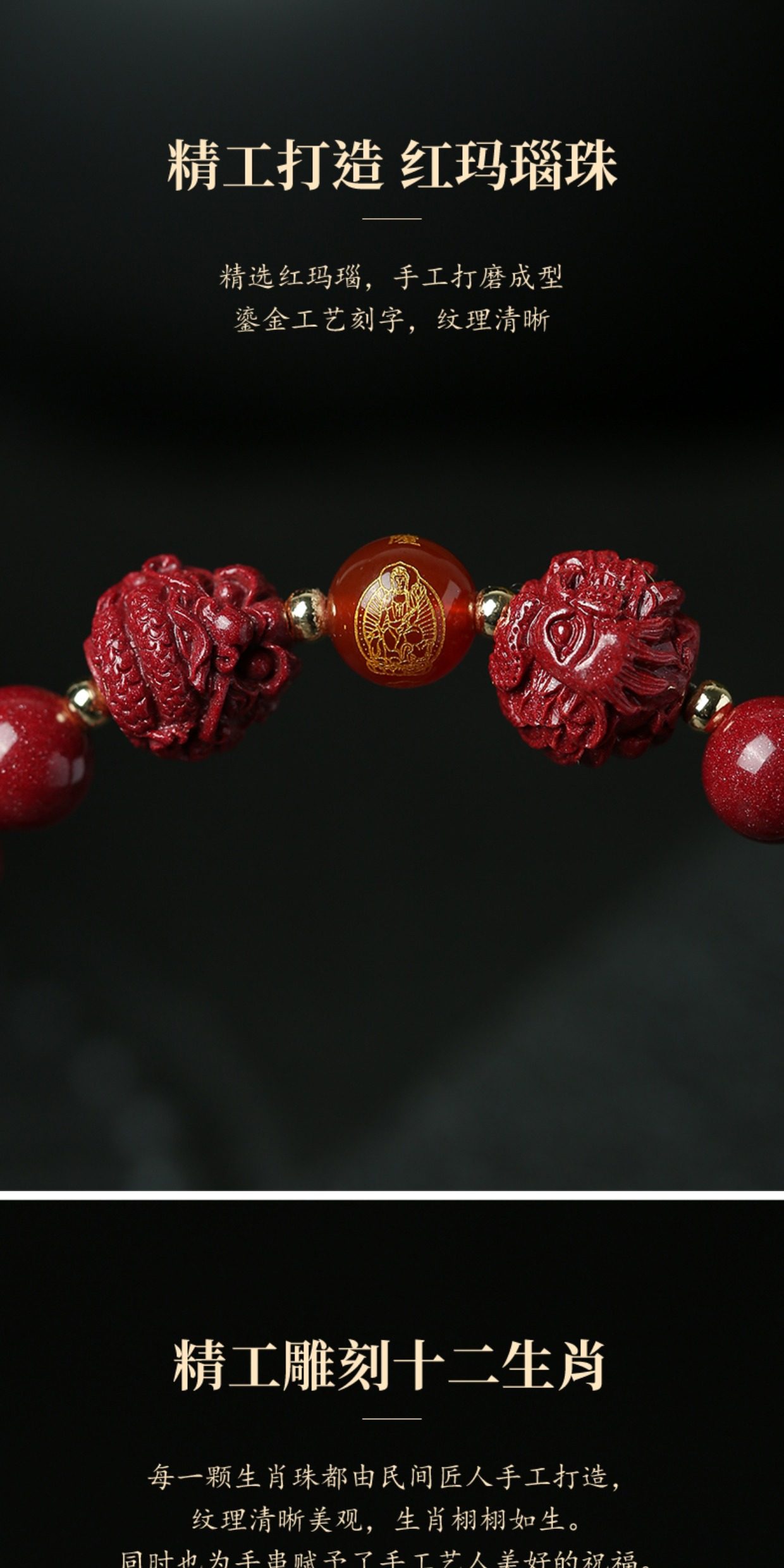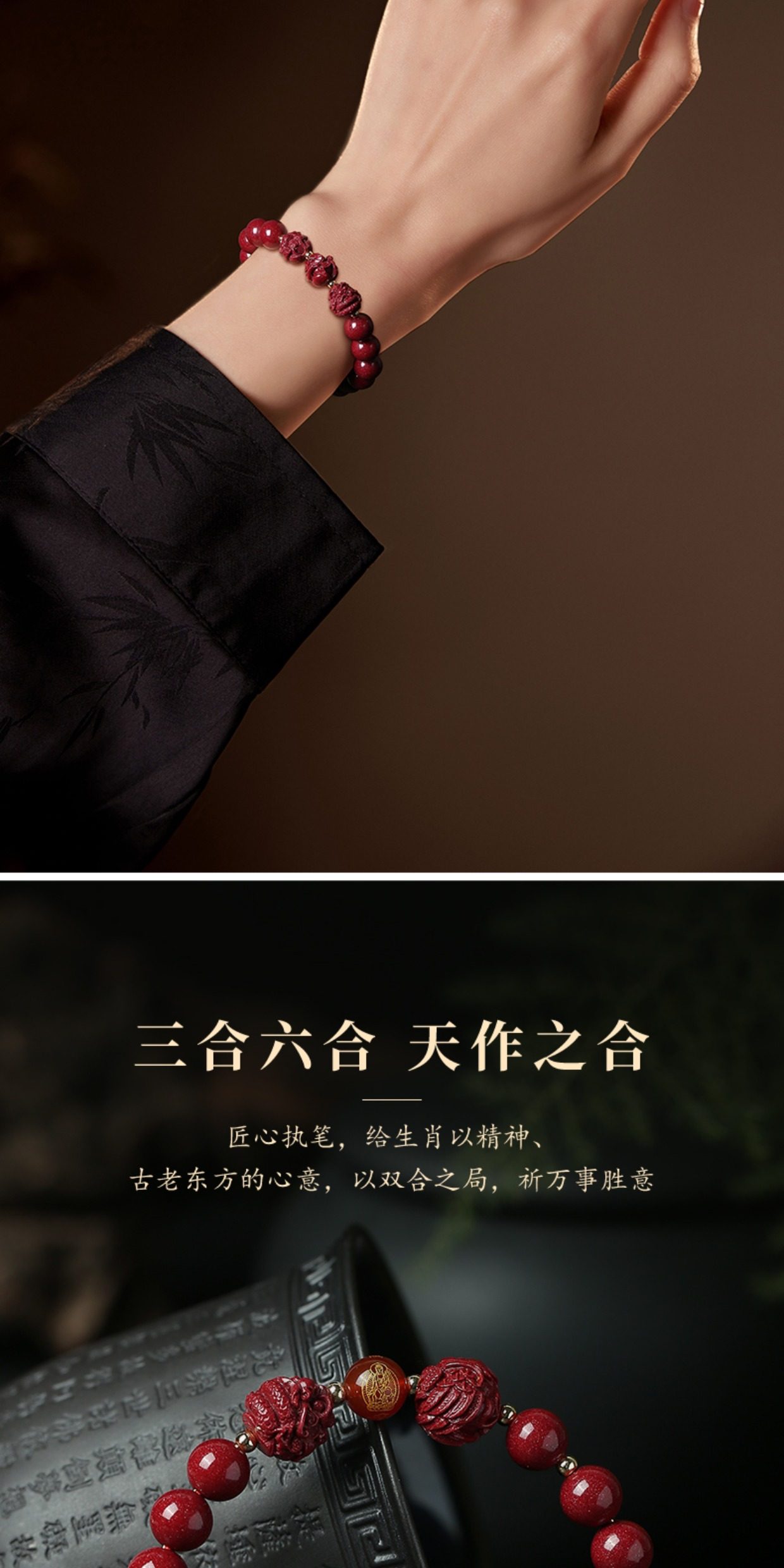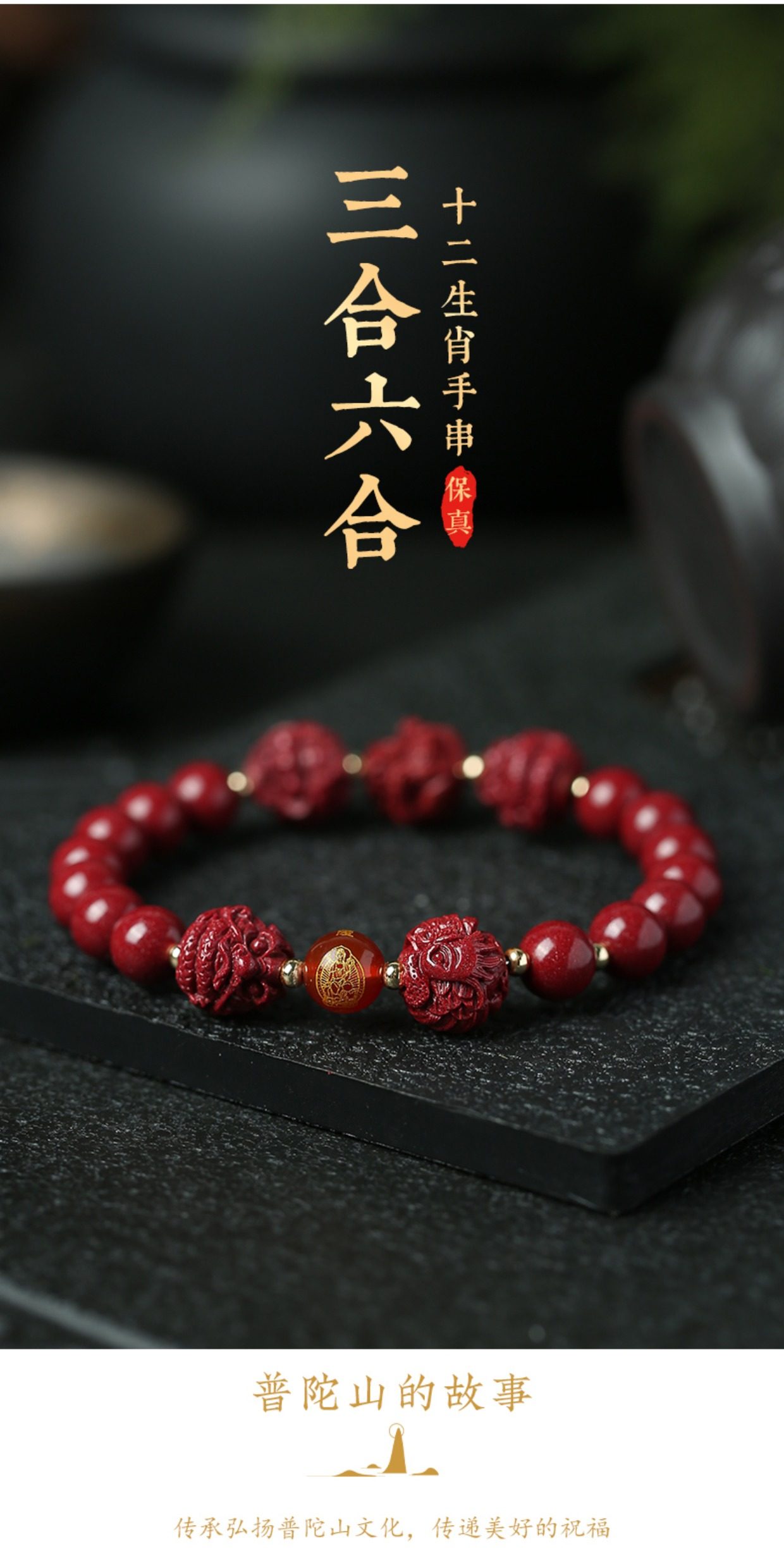 Putuo Mountain 2026 Year of the Horse Birth Year Cinnabar Bracelet Authentic Official Three Harmonies Six Harmonies Bracelet for Men and Women with Fortune Beads