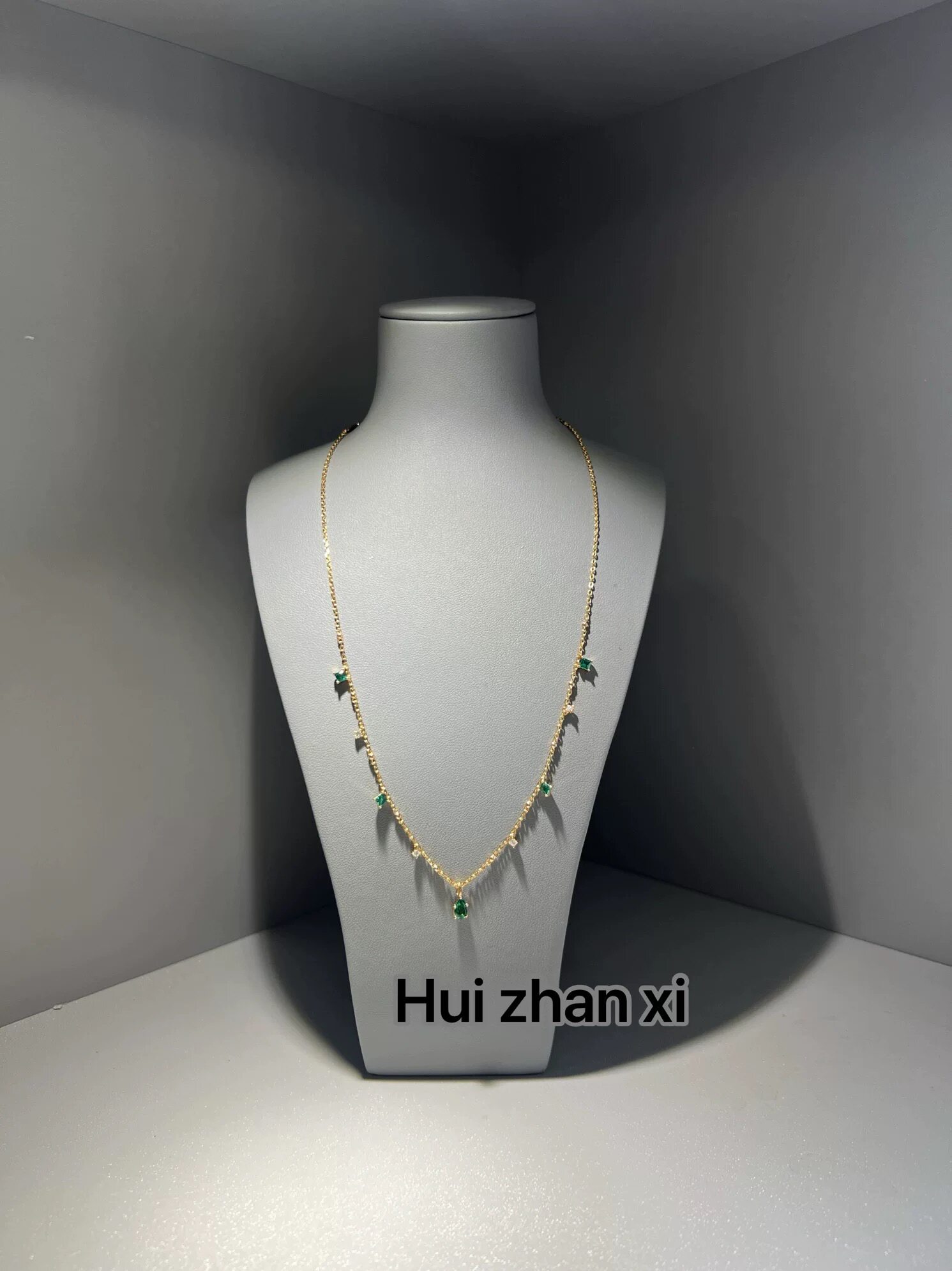 Hui Zhan Xi Cultivated Emerald Gypsophila Small Carat Vintage Elegant French Niche Clavicle Chain Necklace
