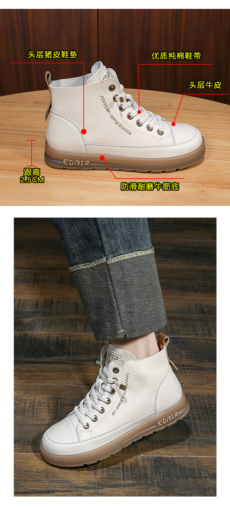 Women's first layer cowhide high-top White Shoes 2025 New arrival spring and summer Non Slip Casual tendon soft bottom Flats Retro boots