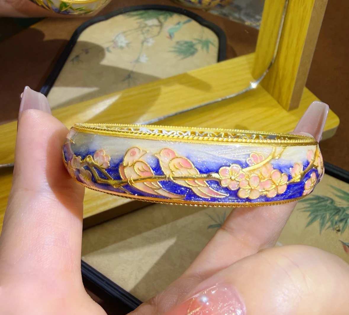 Bamboo Knot Plum Blossom Fine Enamel 999 Silver Bracelet New Palace Style Jewelry New Heavy Craftsmanship