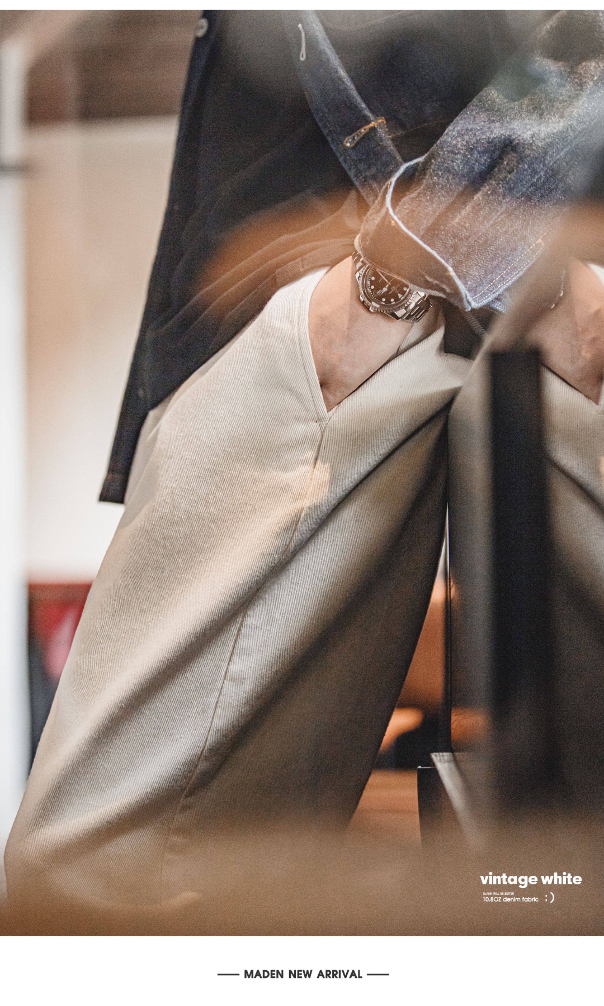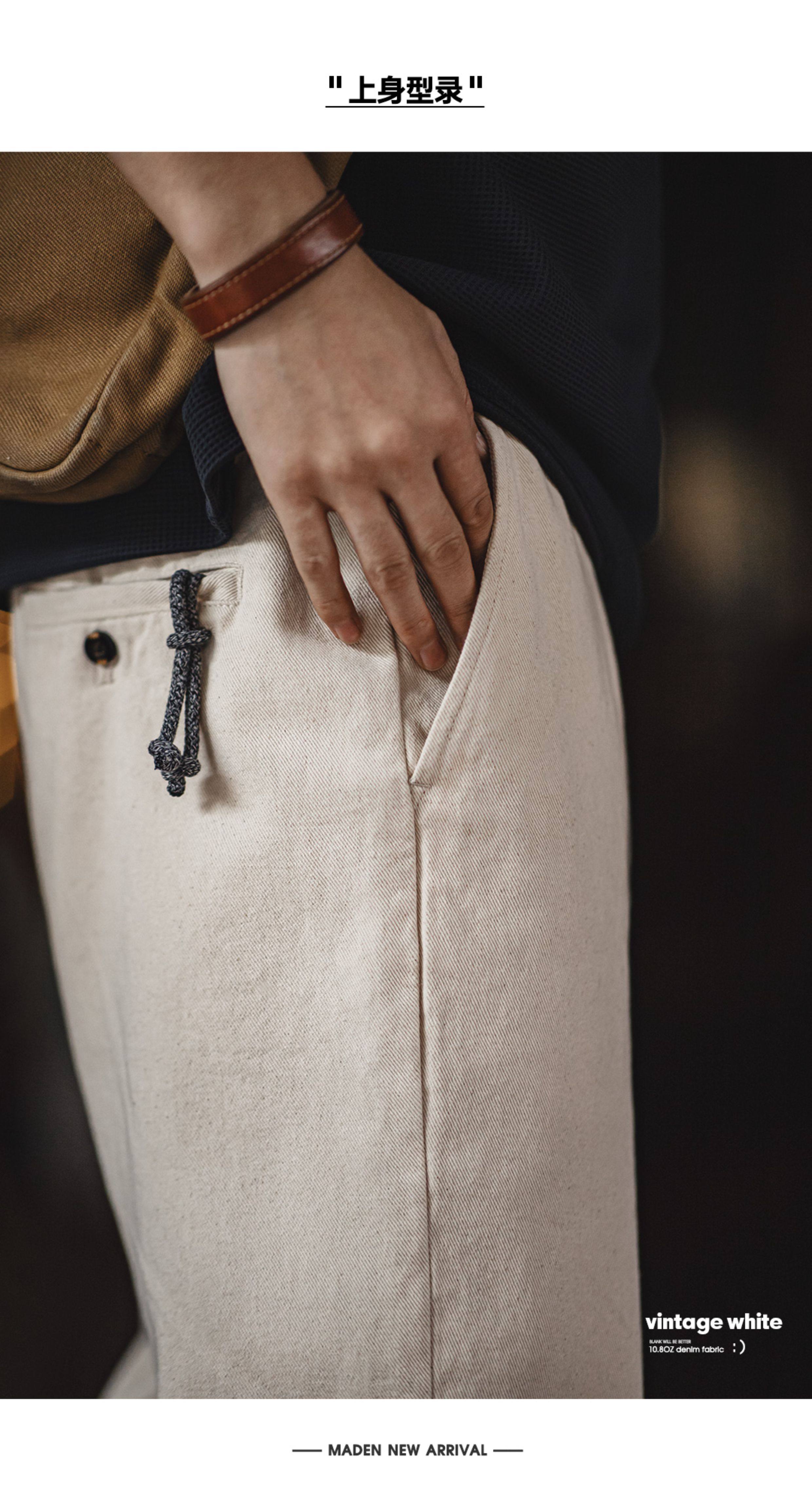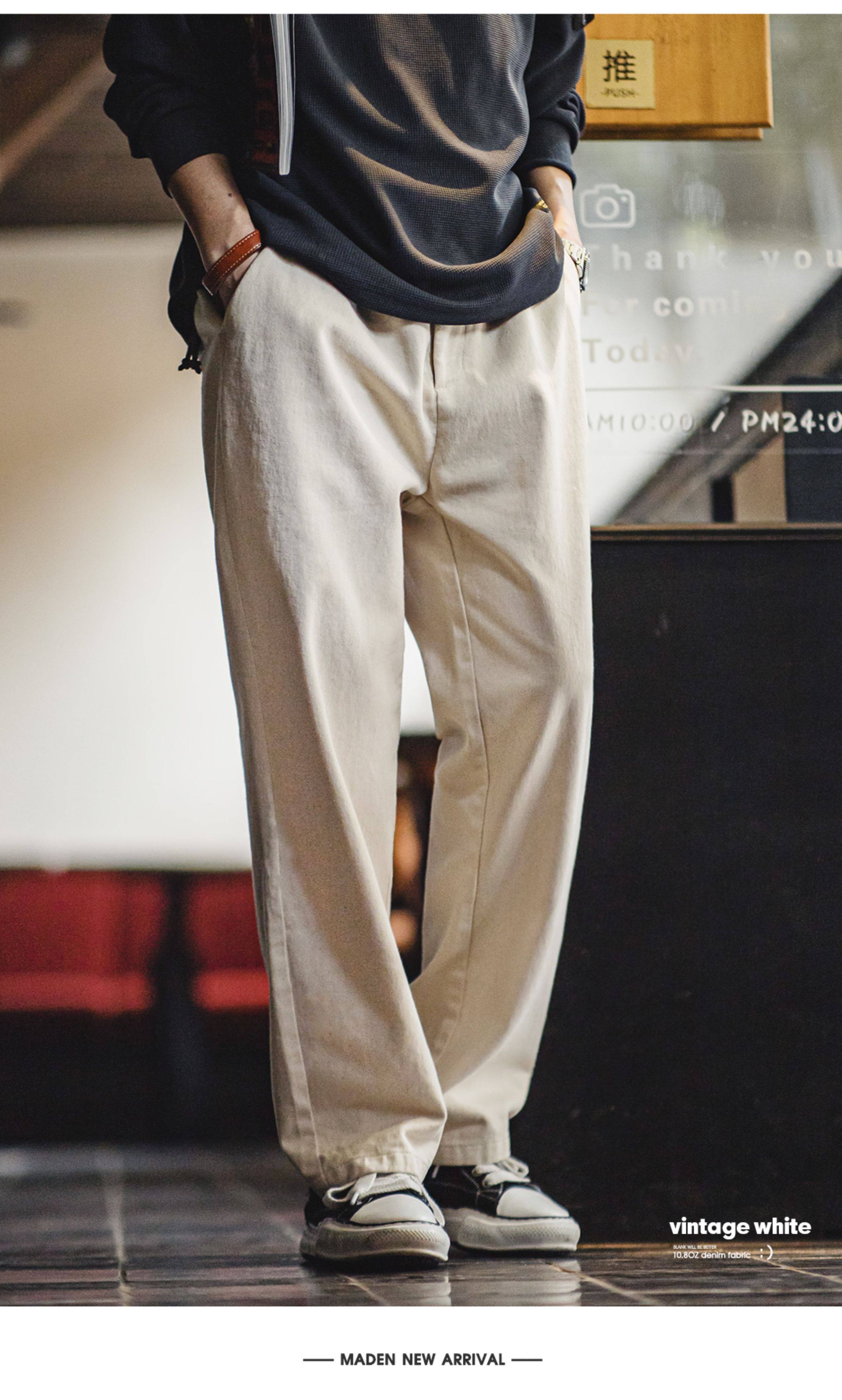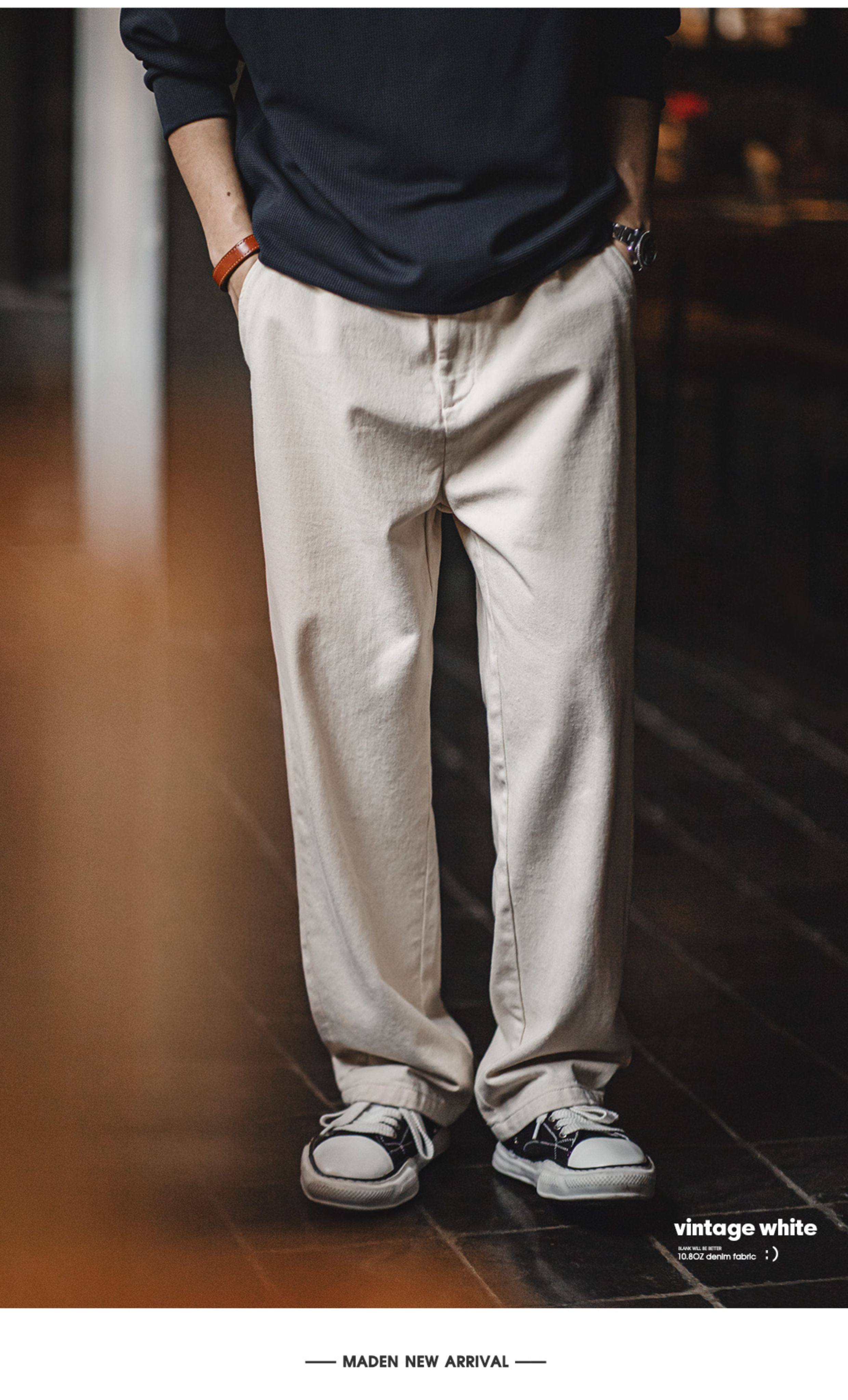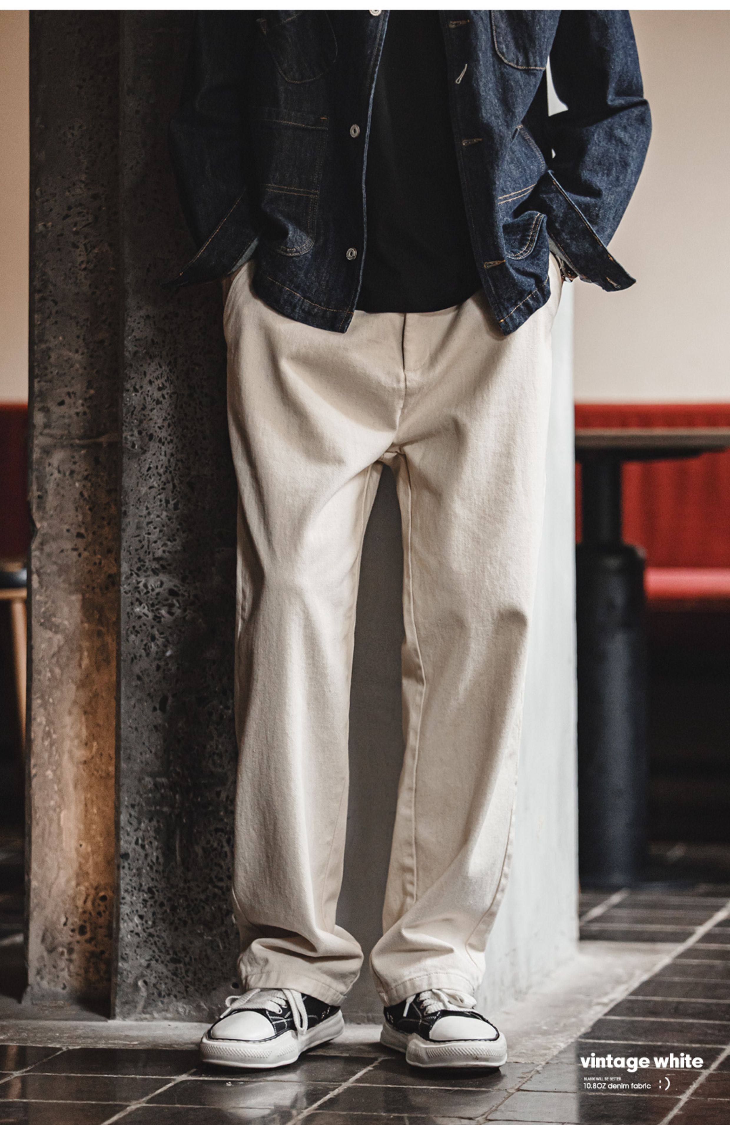 Madden Workwear Light American Retro White Jeans Cotton Seed Shell Cleanfit Loose Straight Casual Pants Men's Spring