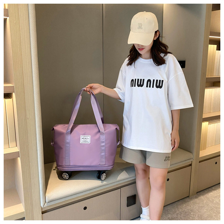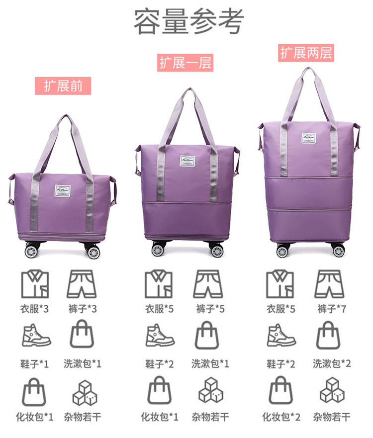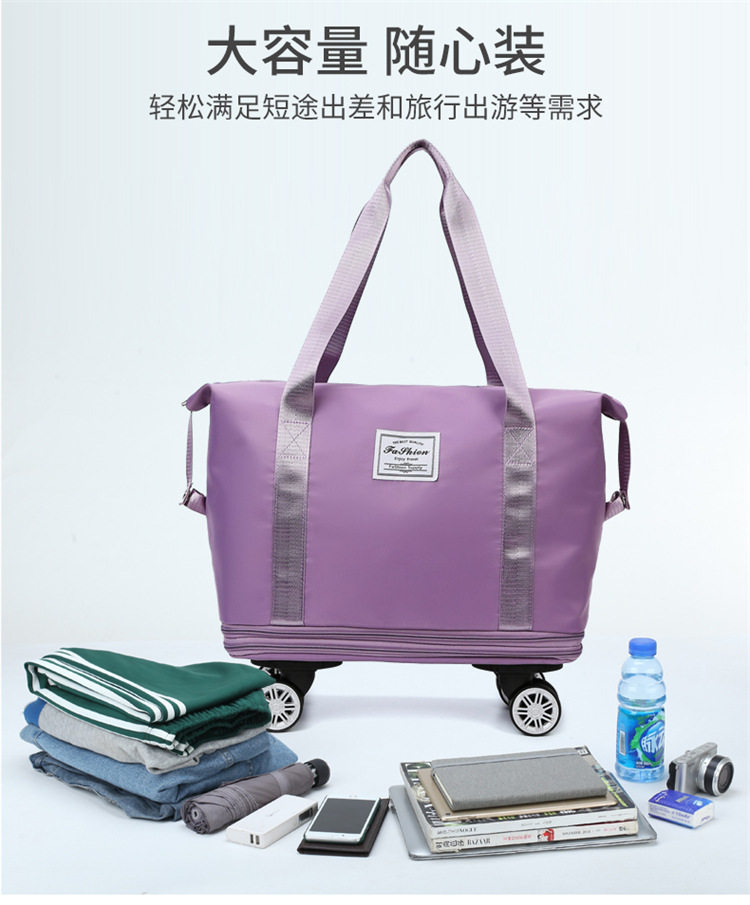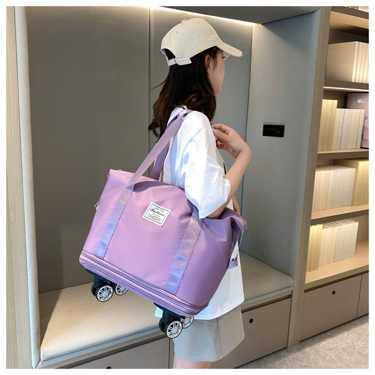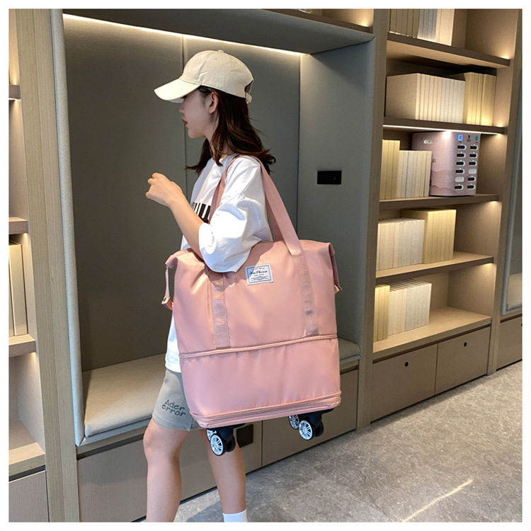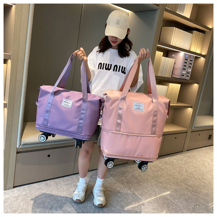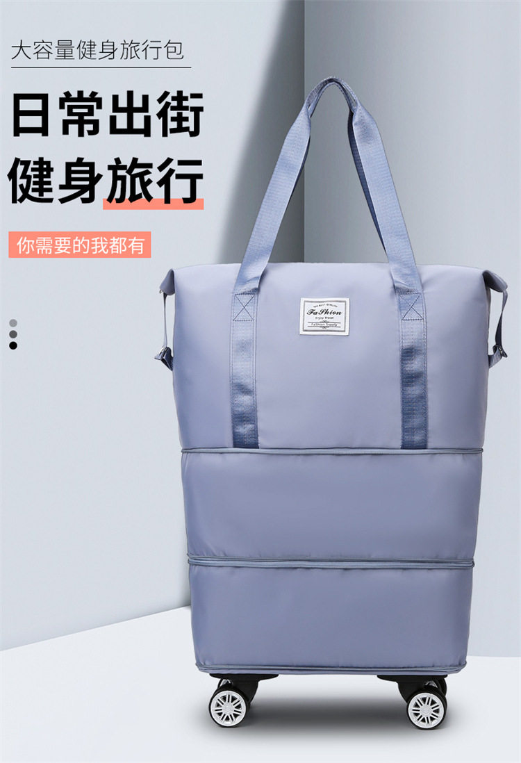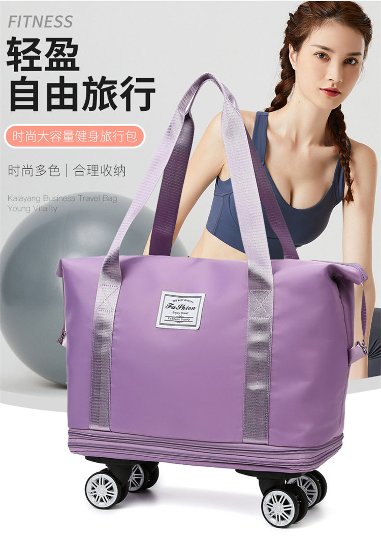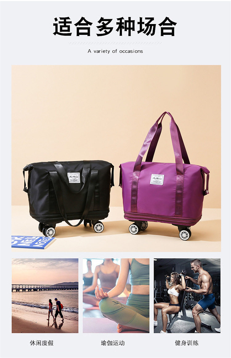 Zhuote Foldable Travel Bag, Double-Layer Expandable, Universal Wheels, Silent, Fitness Travel Bag, Large Capacity, Dry and Wet Separation
