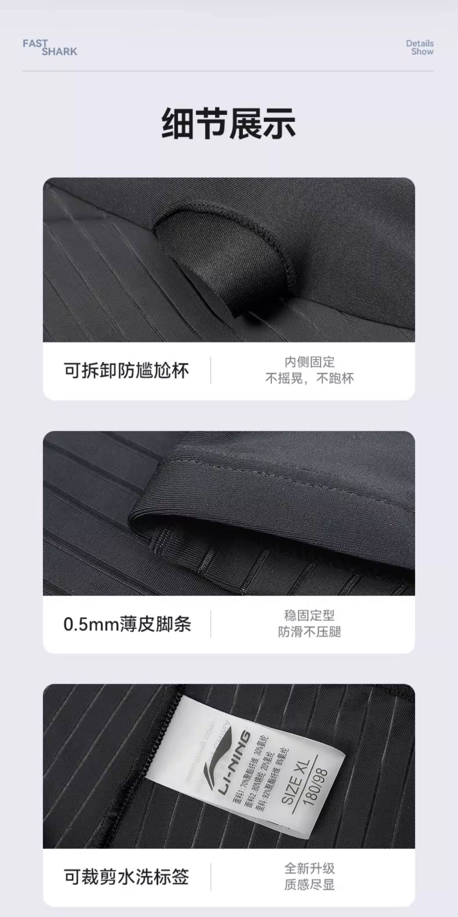 Li-Ning Men's Swim Trunks, Professional Racing Five-Point Style, New Swimming Trunks for Teenagers and Adults, Training Sharkskin, Anti-Embarrassment
