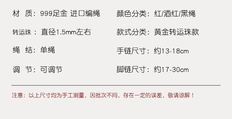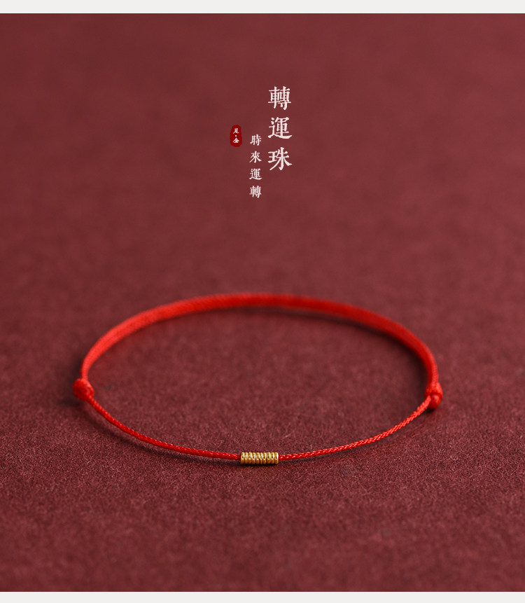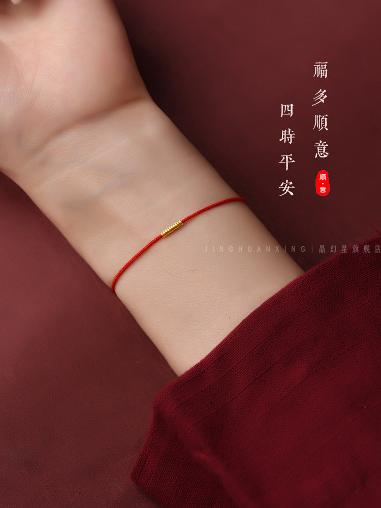 Gold Transfer Beads Red String Bracelet Anklet for Men and Women, Ultra-Thin Simple Woven Bracelet, Birth Year Safety Transfer Beads