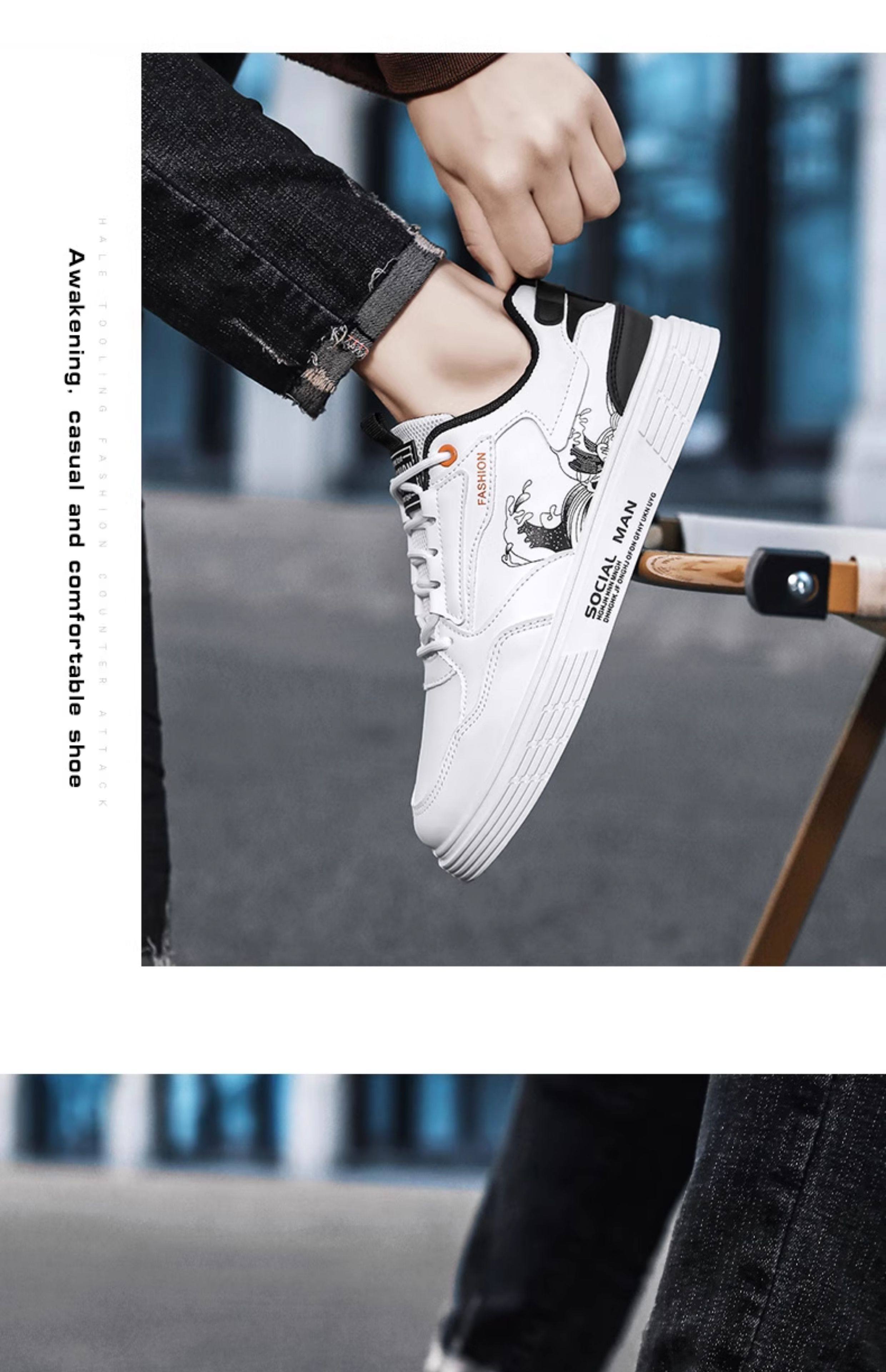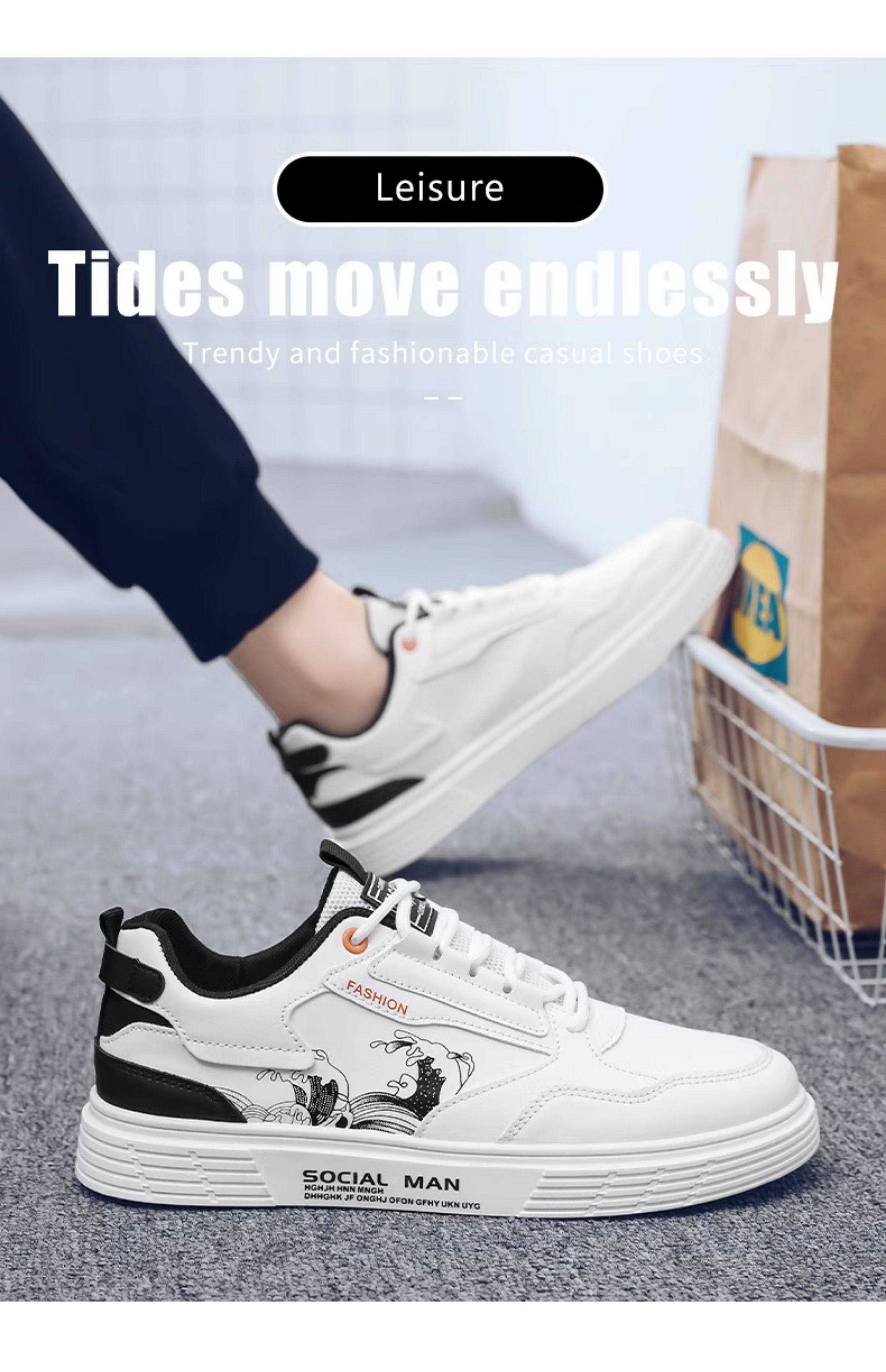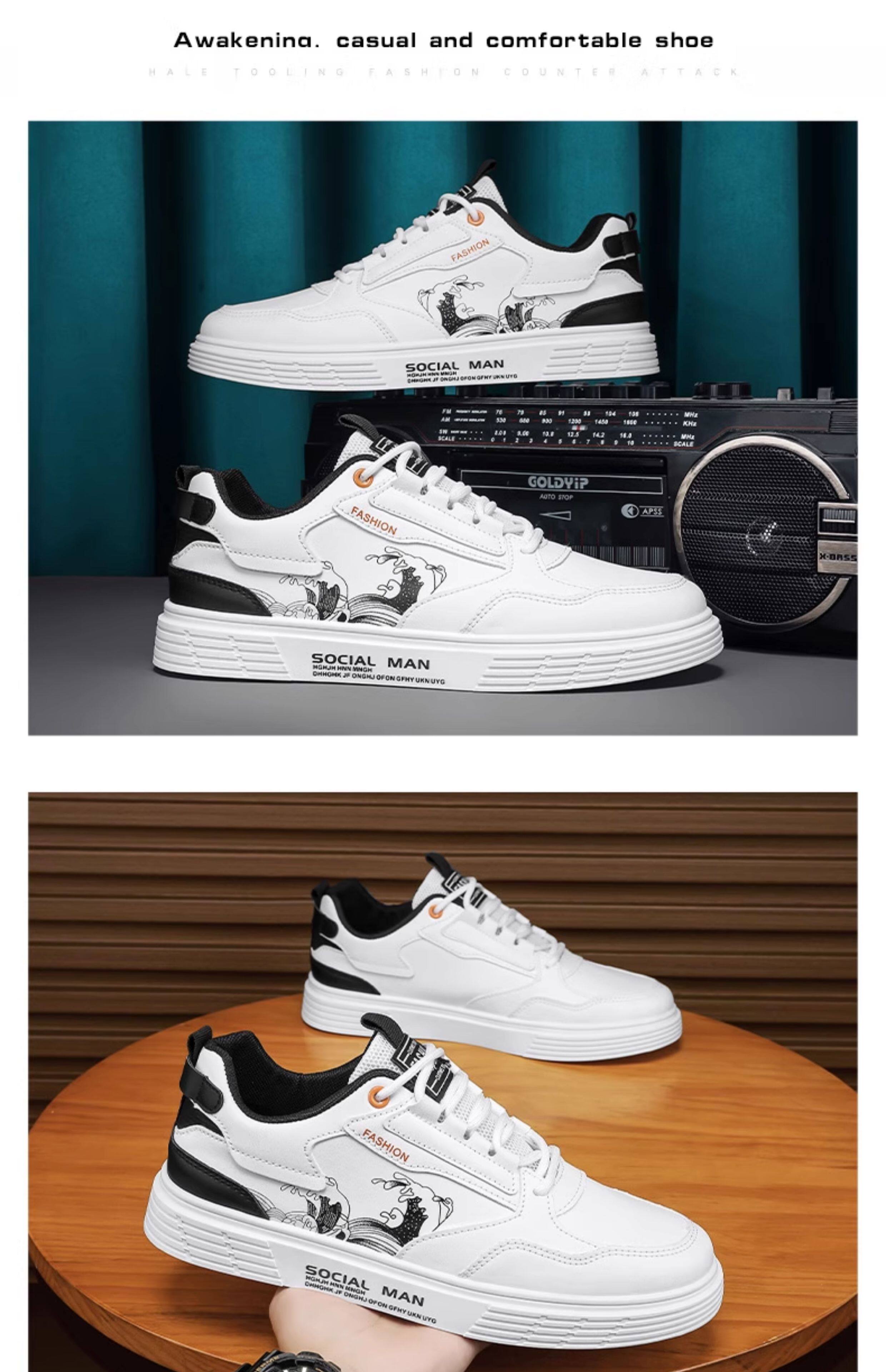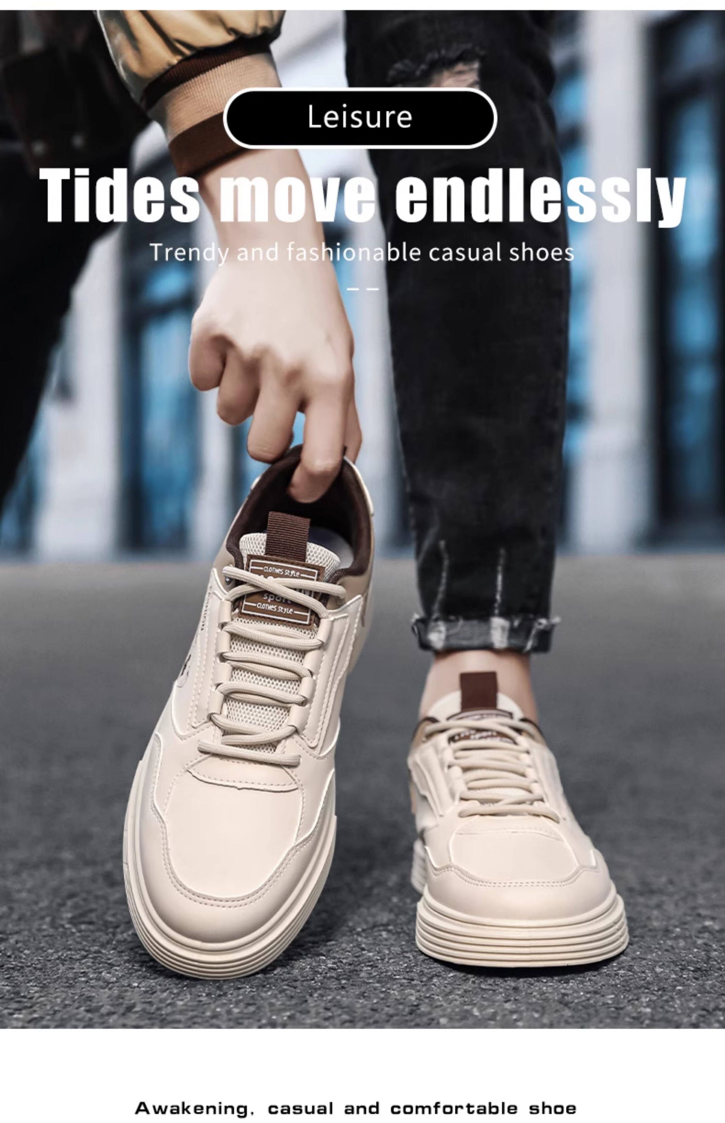 Summer New Men's Versatile Sports Casual Leather Shoes, White Sneakers, Trendy Breathable Canvas Men's Flat Shoes