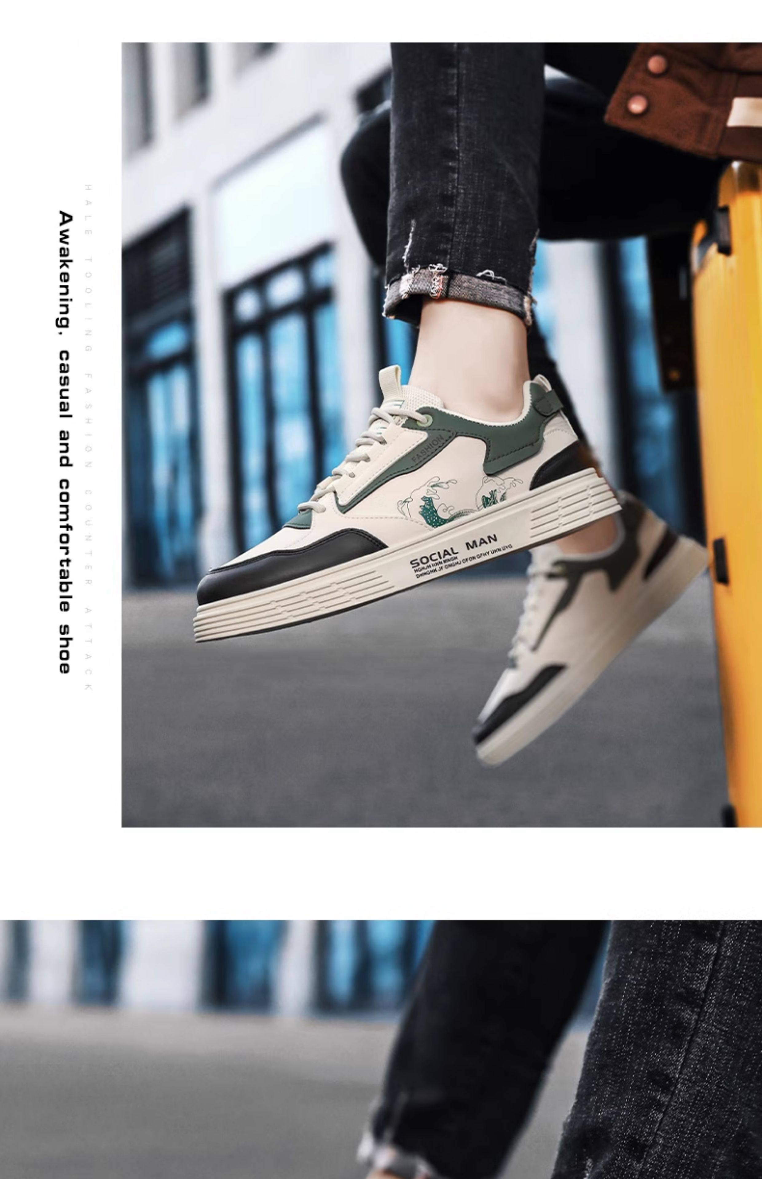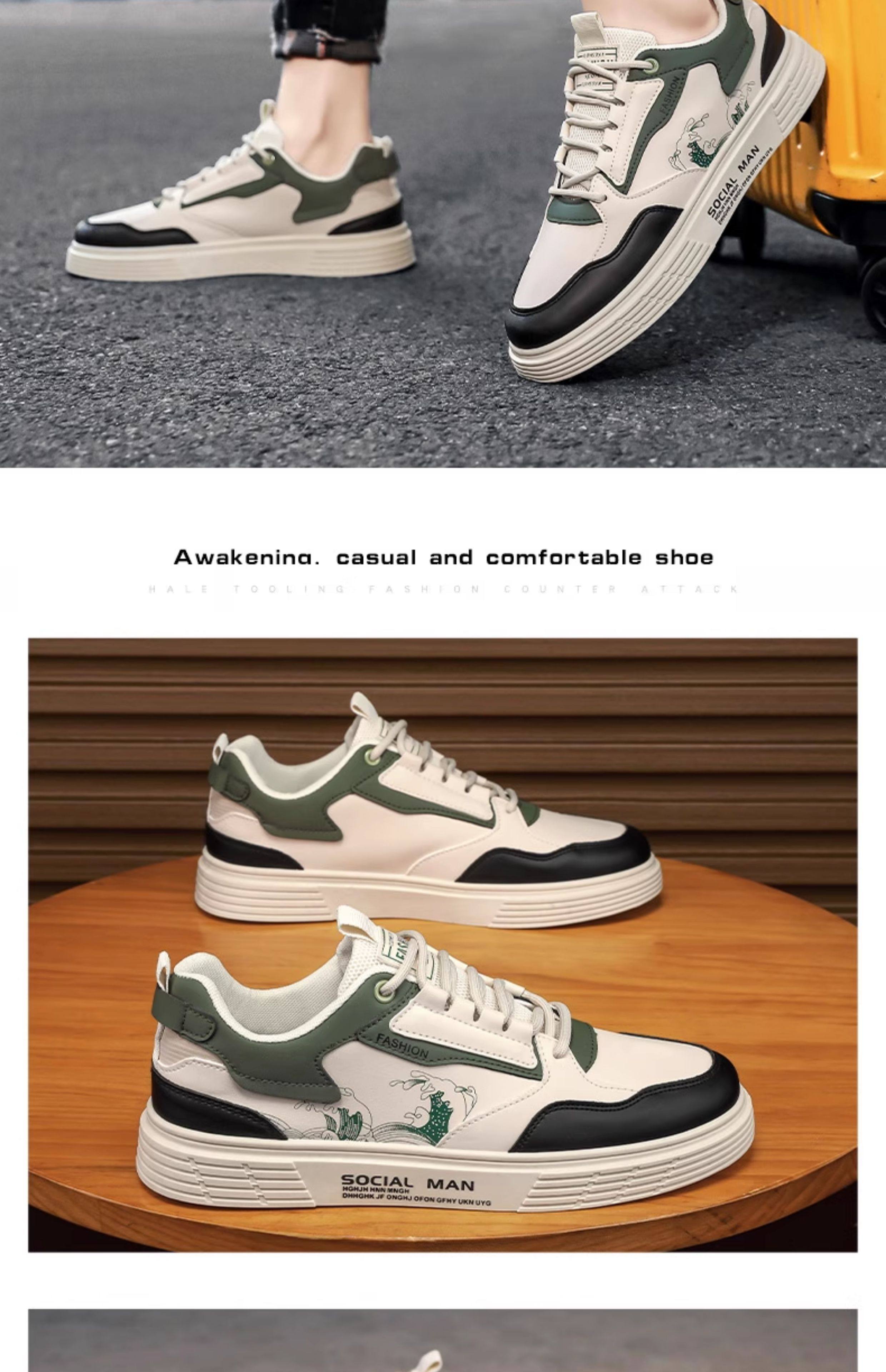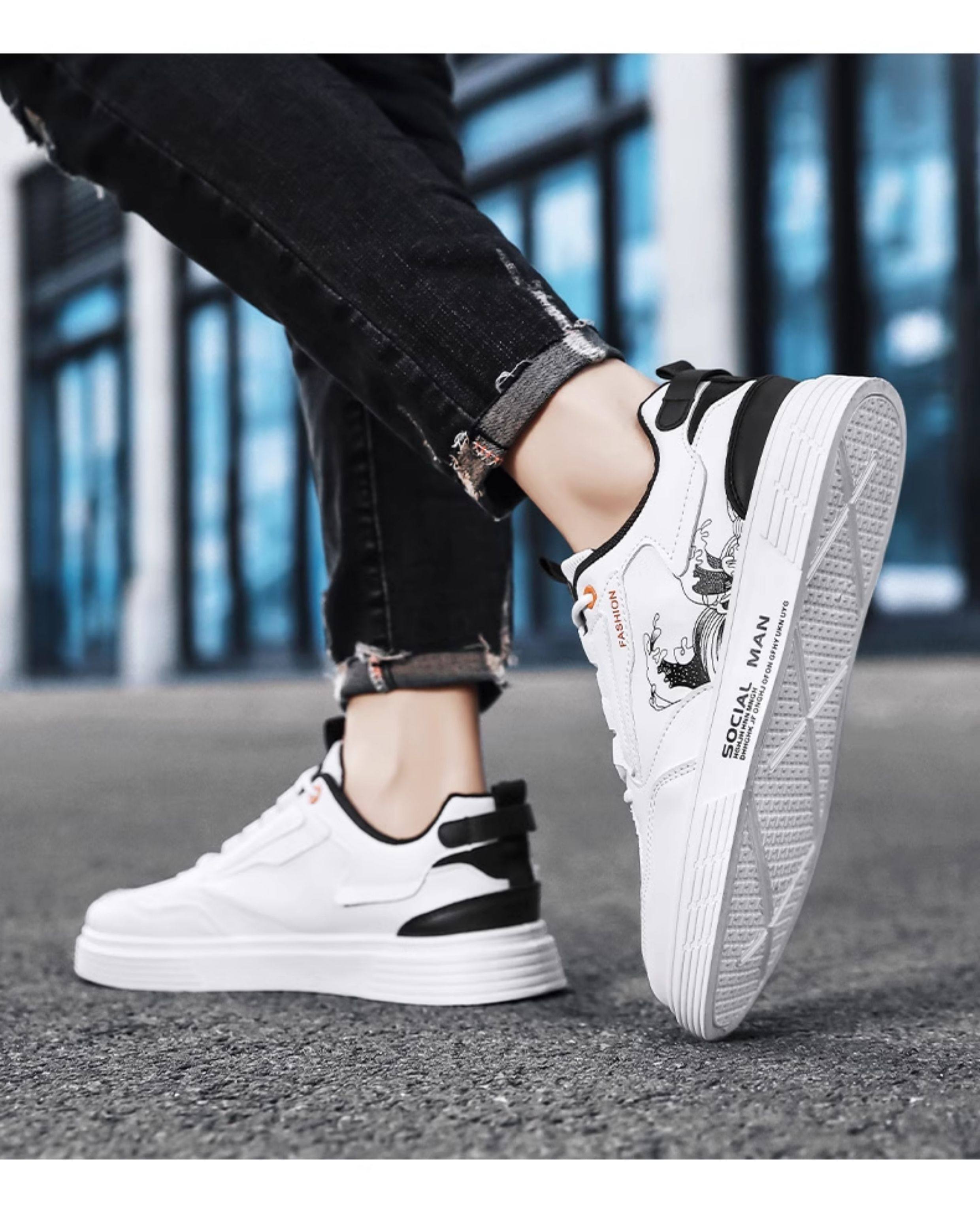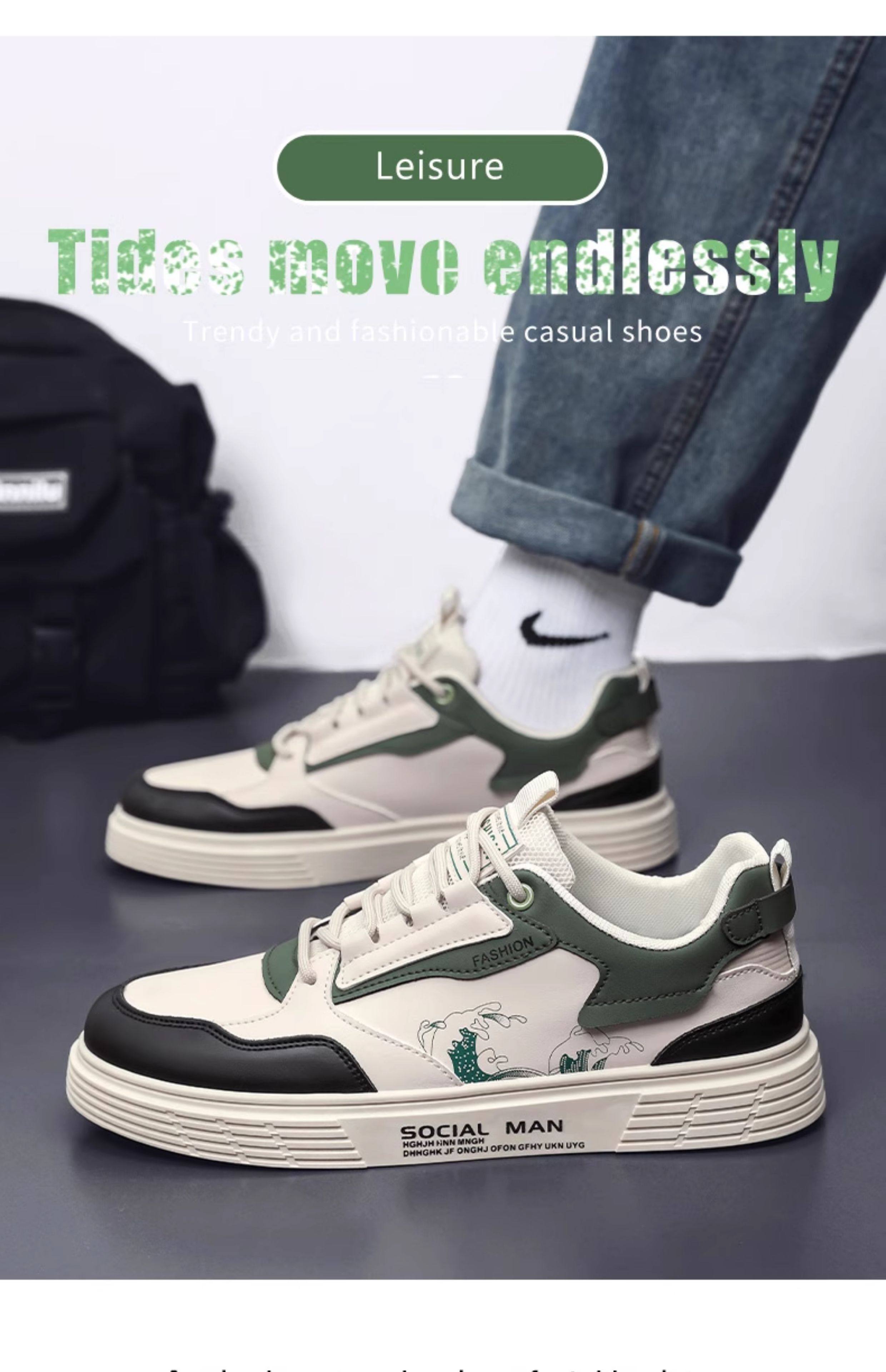 Summer New Men's Versatile Sports Casual Leather Shoes, White Sneakers, Trendy Breathable Canvas Men's Flat Shoes