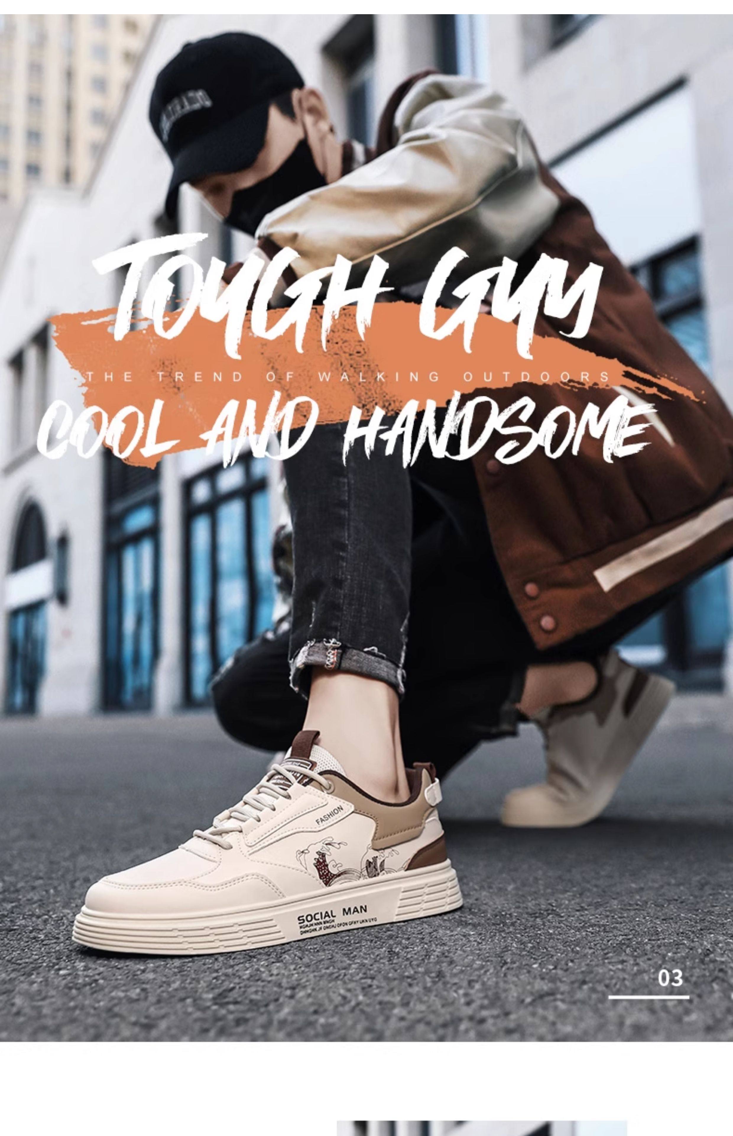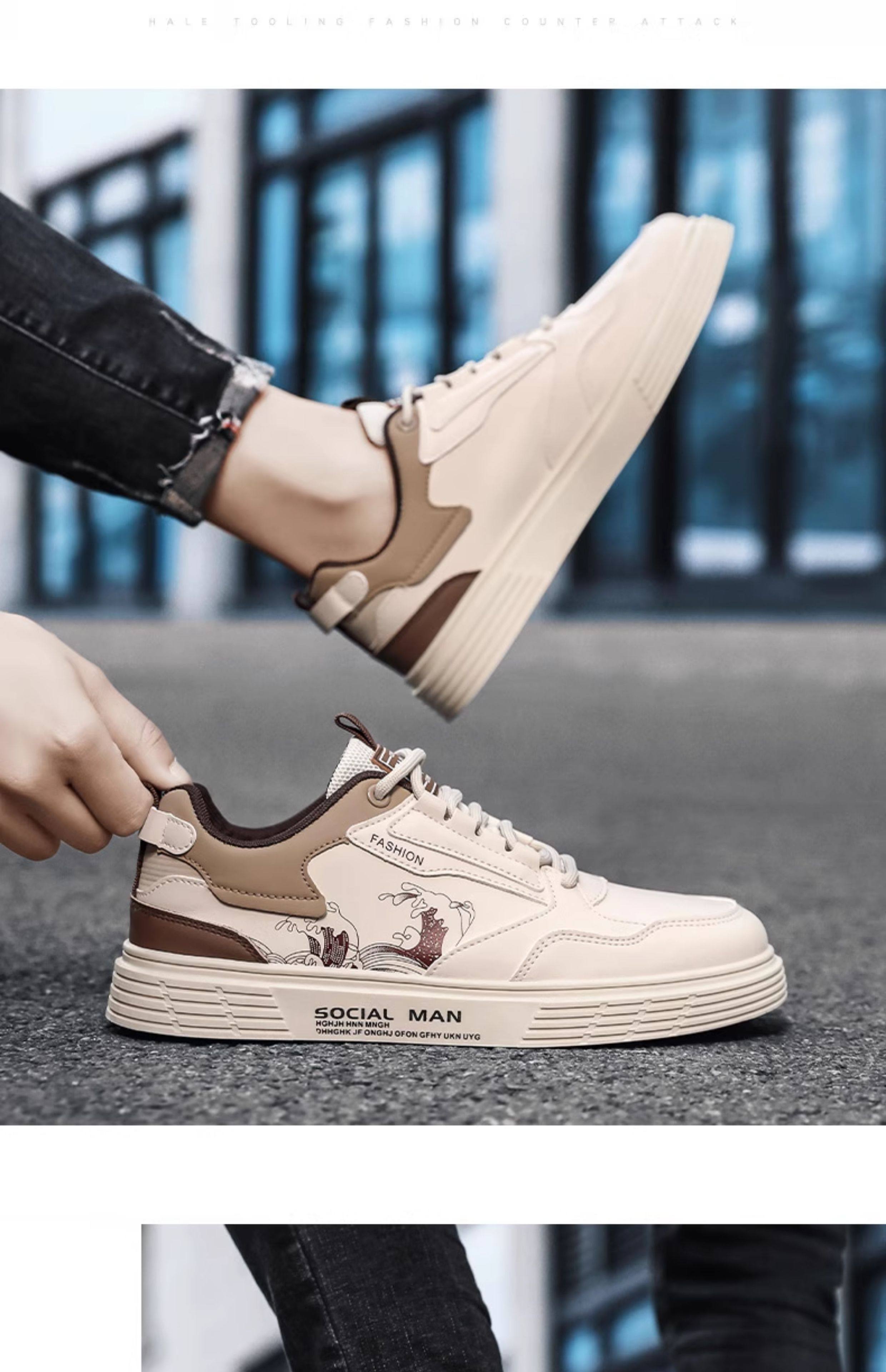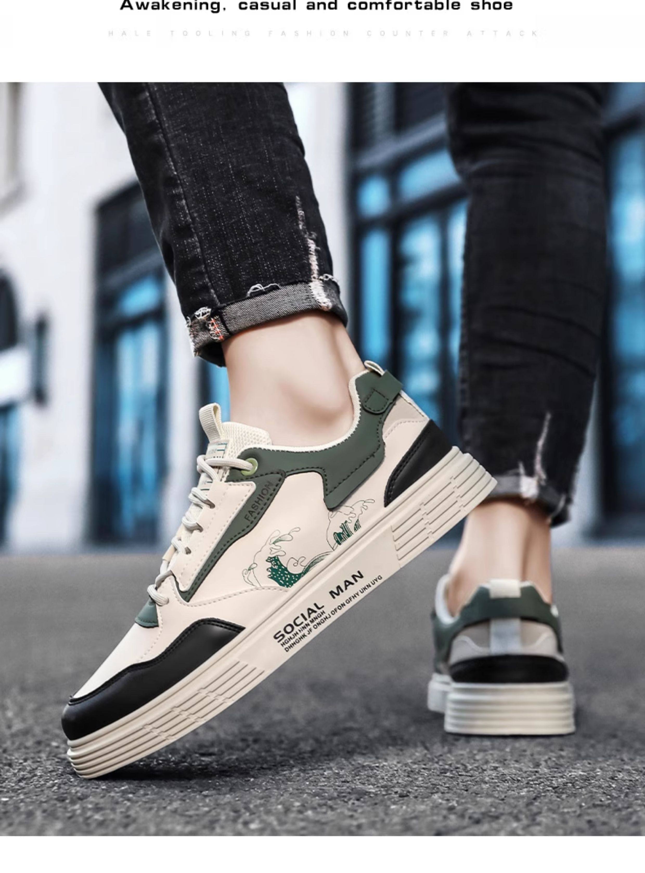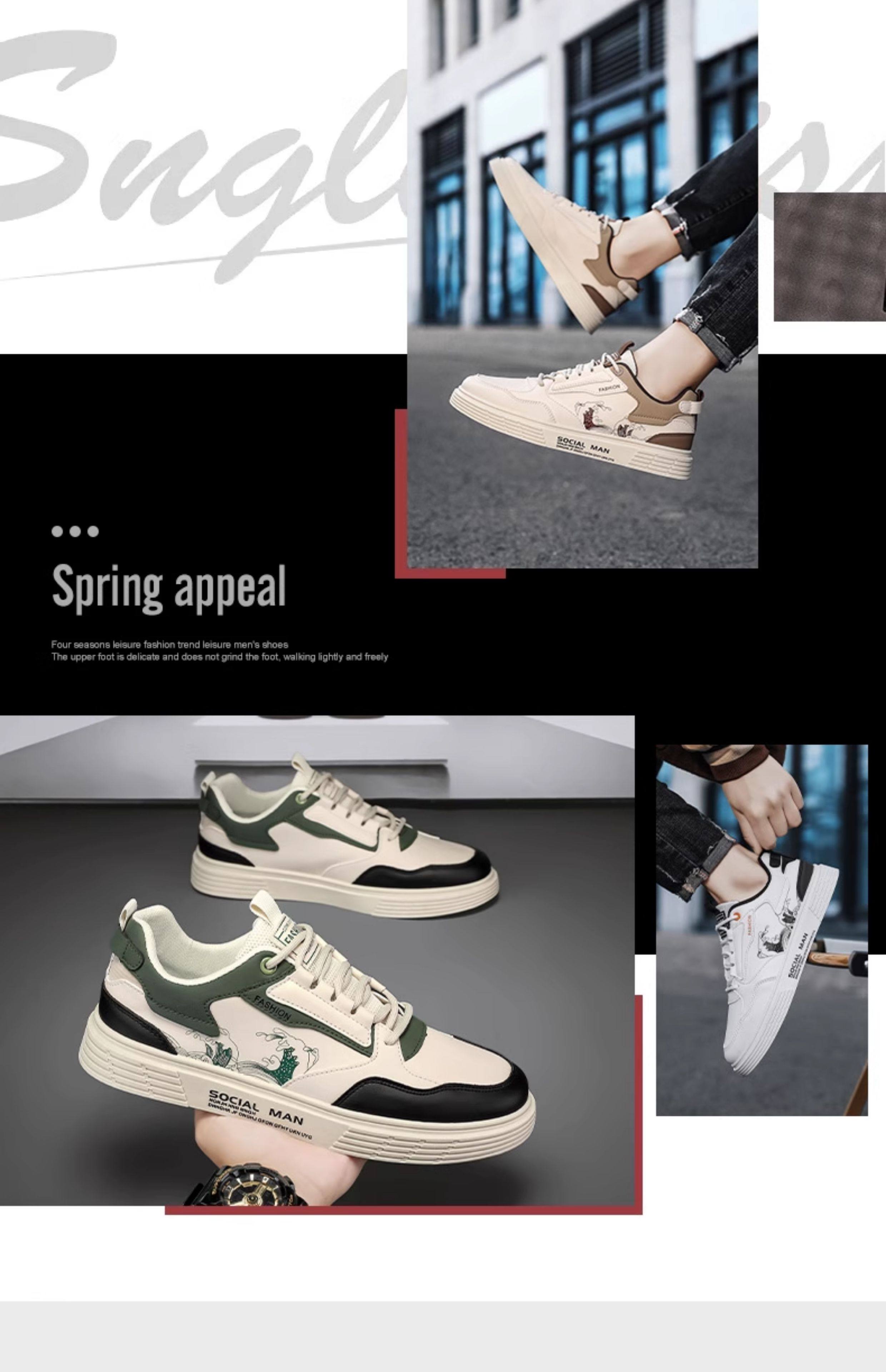 Summer New Men's Versatile Sports Casual Leather Shoes, White Sneakers, Trendy Breathable Canvas Men's Flat Shoes