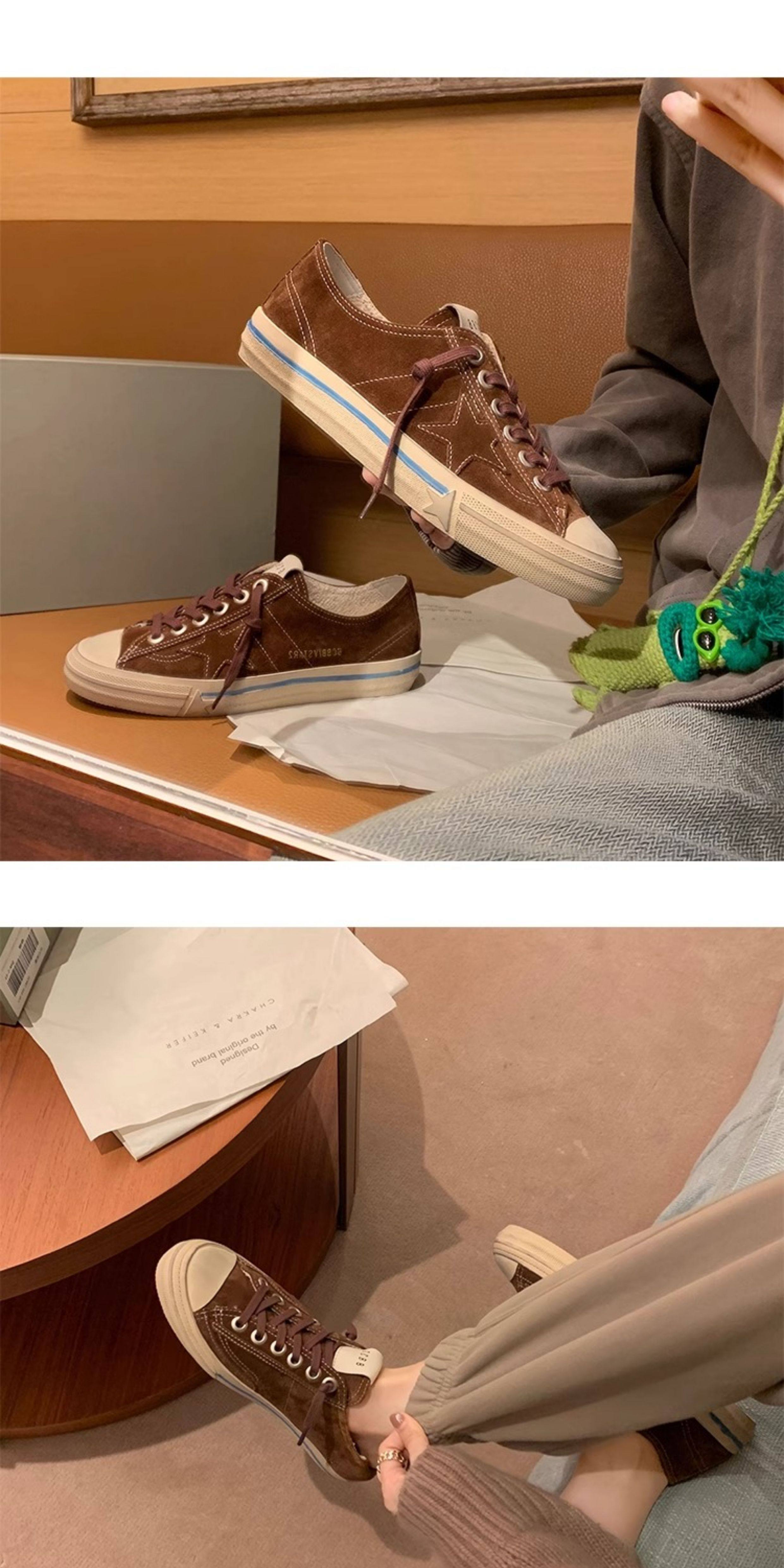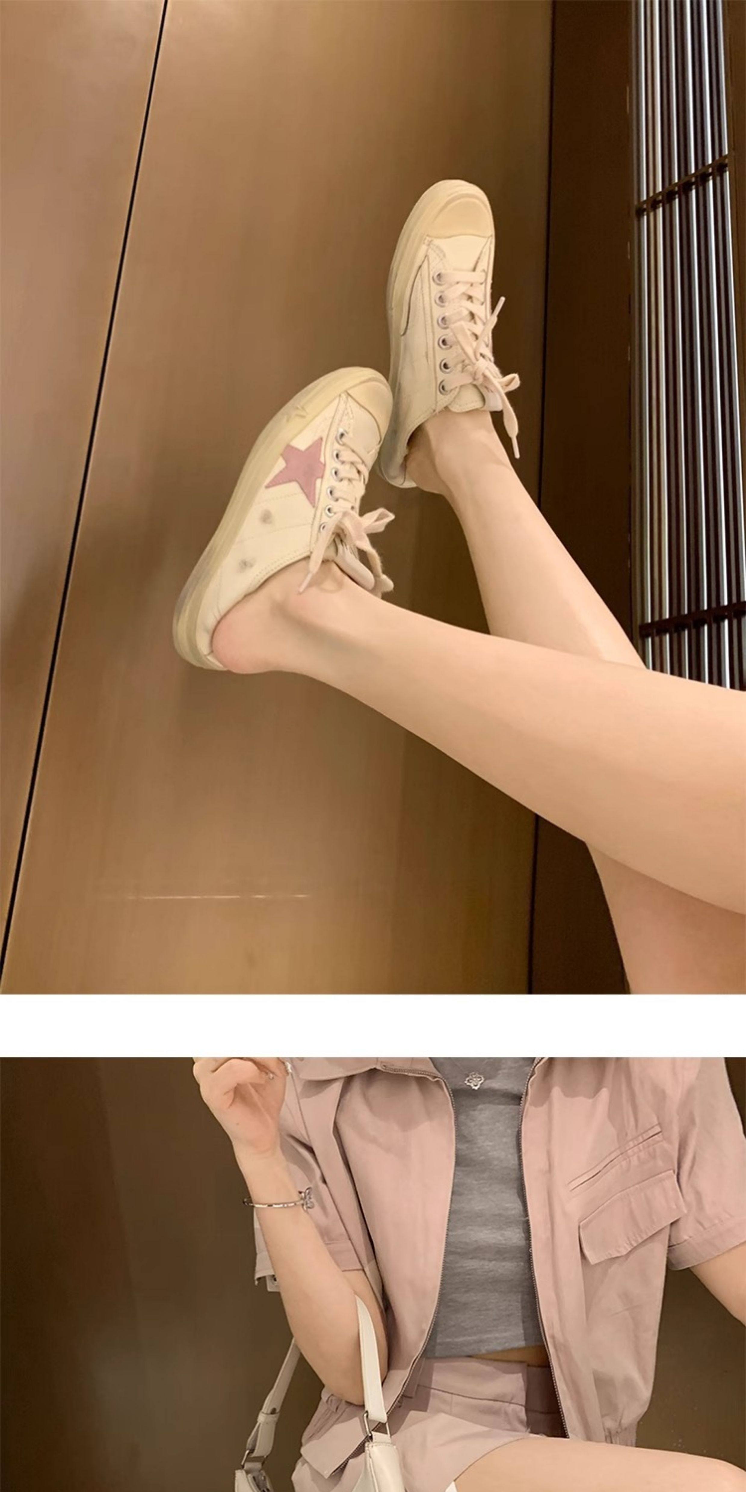 Hong Kong 2025 Genuine Leather Lace-Up Star Sneakers for Women, Distressed Dirty Shoes, Thick-Soled Versatile White Sneakers, Skate Shoes