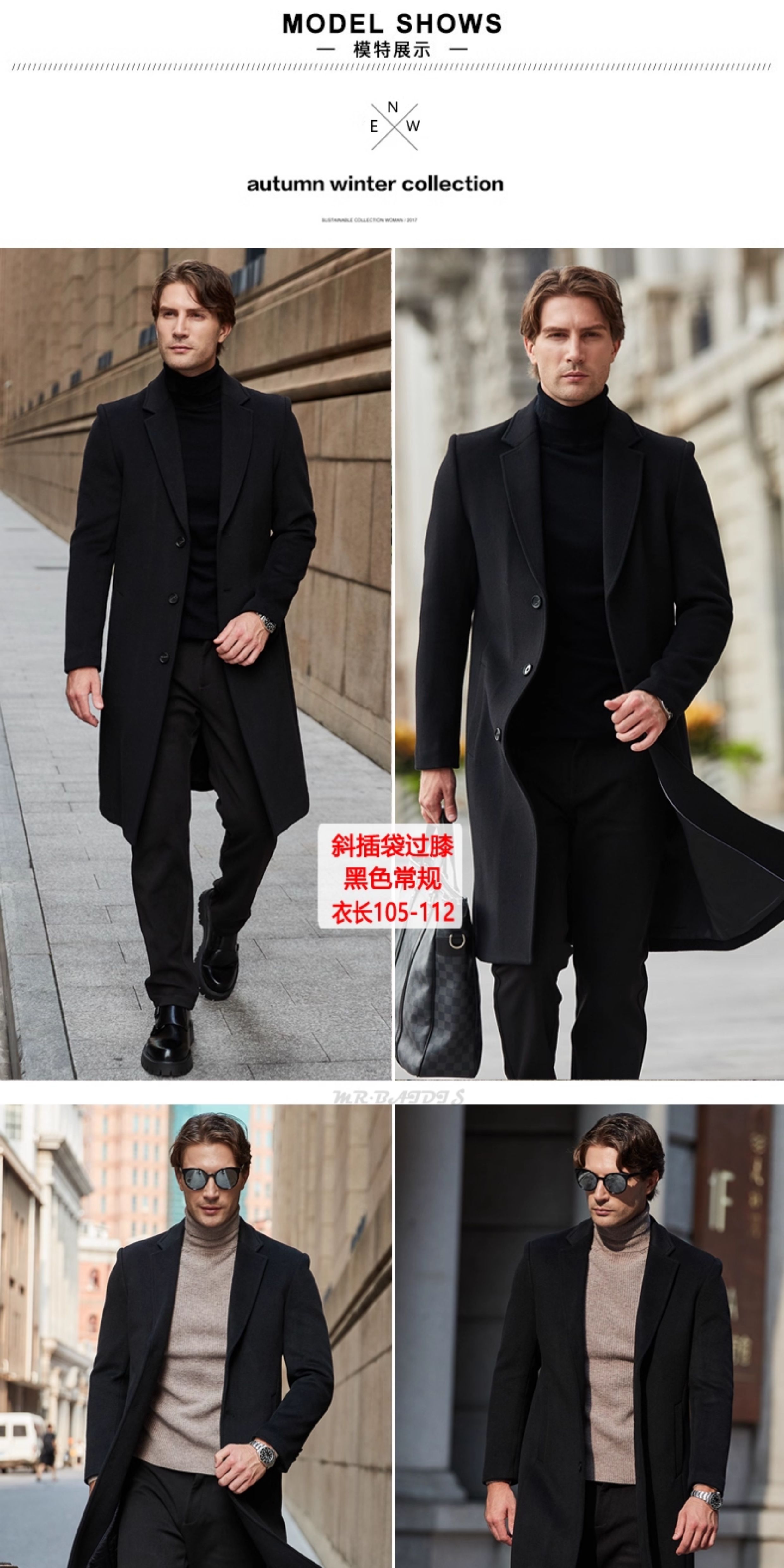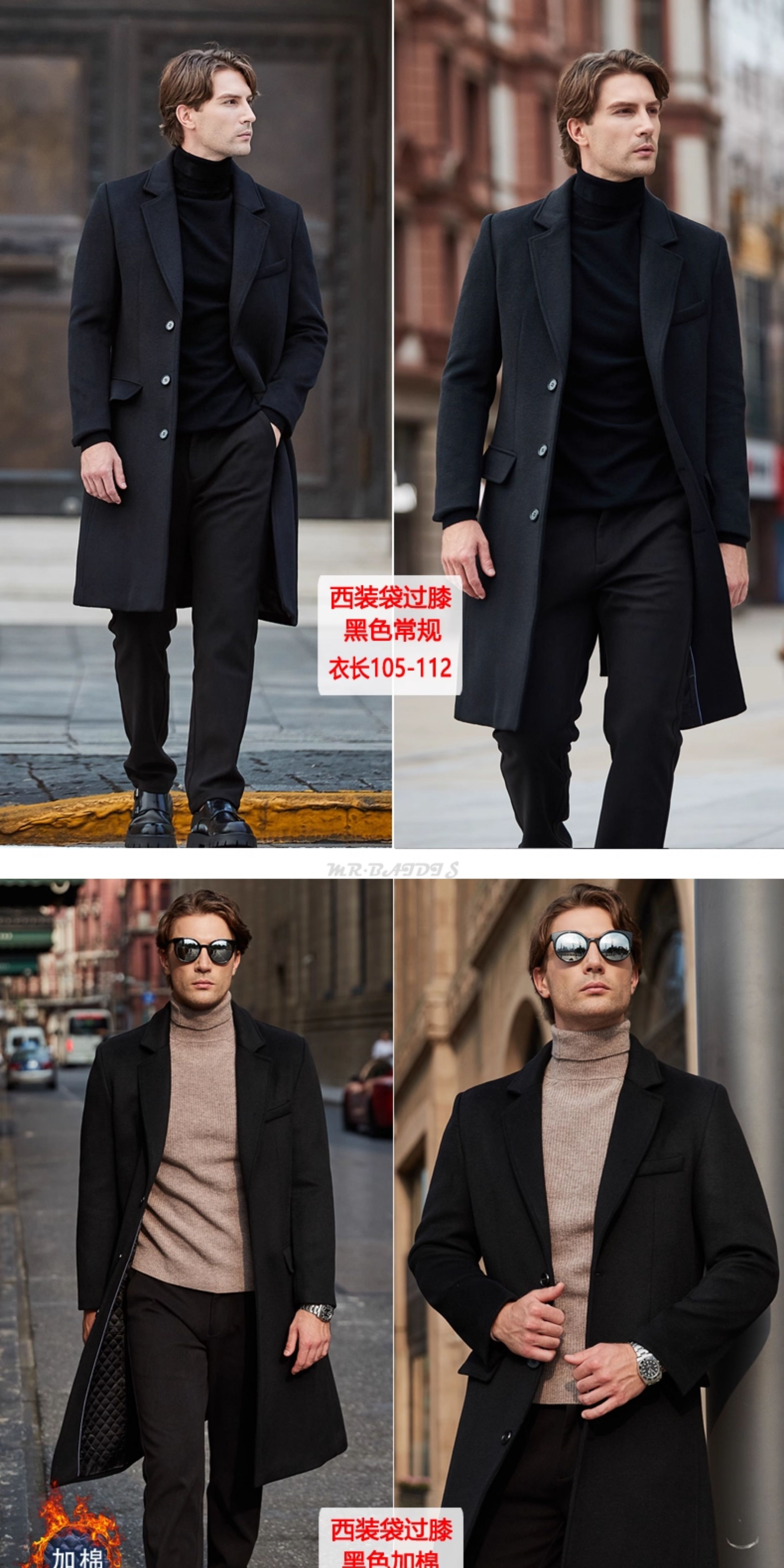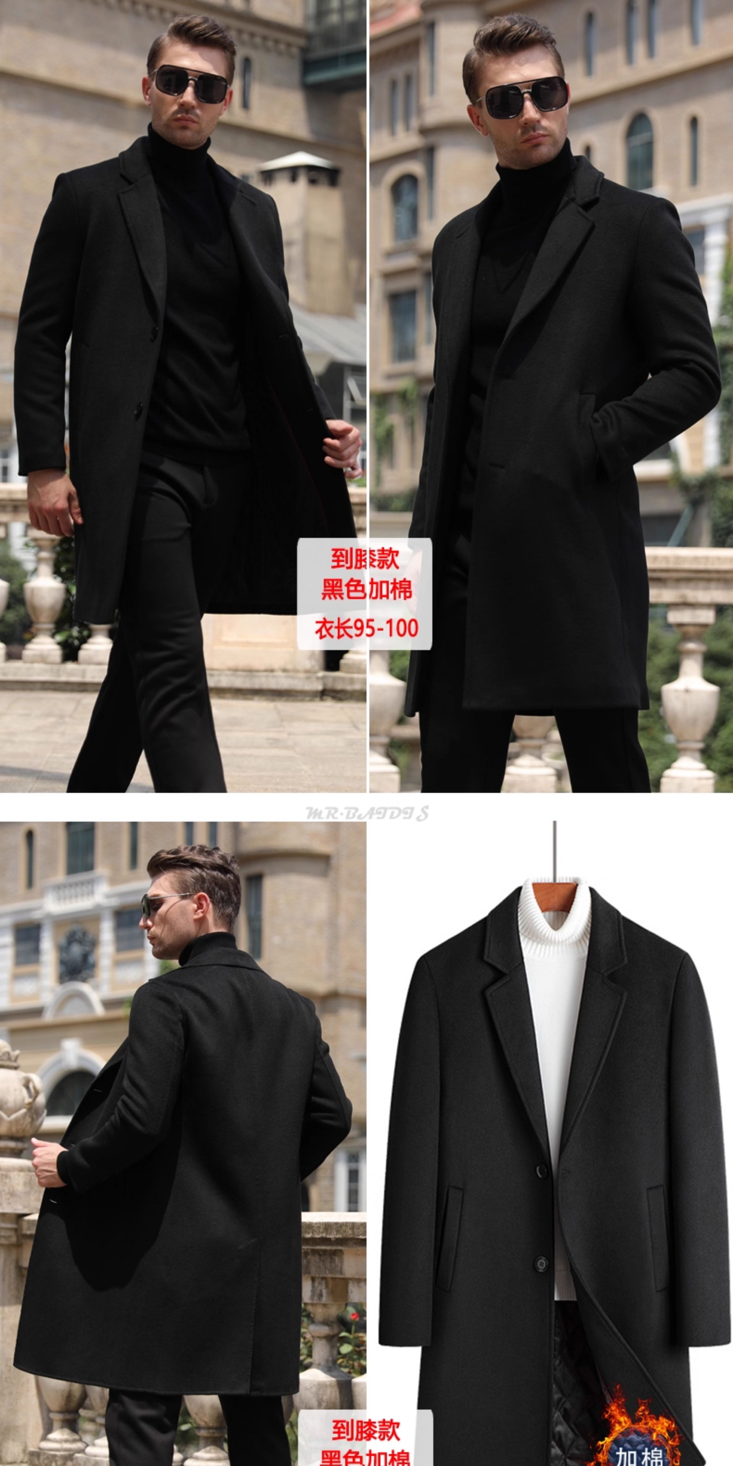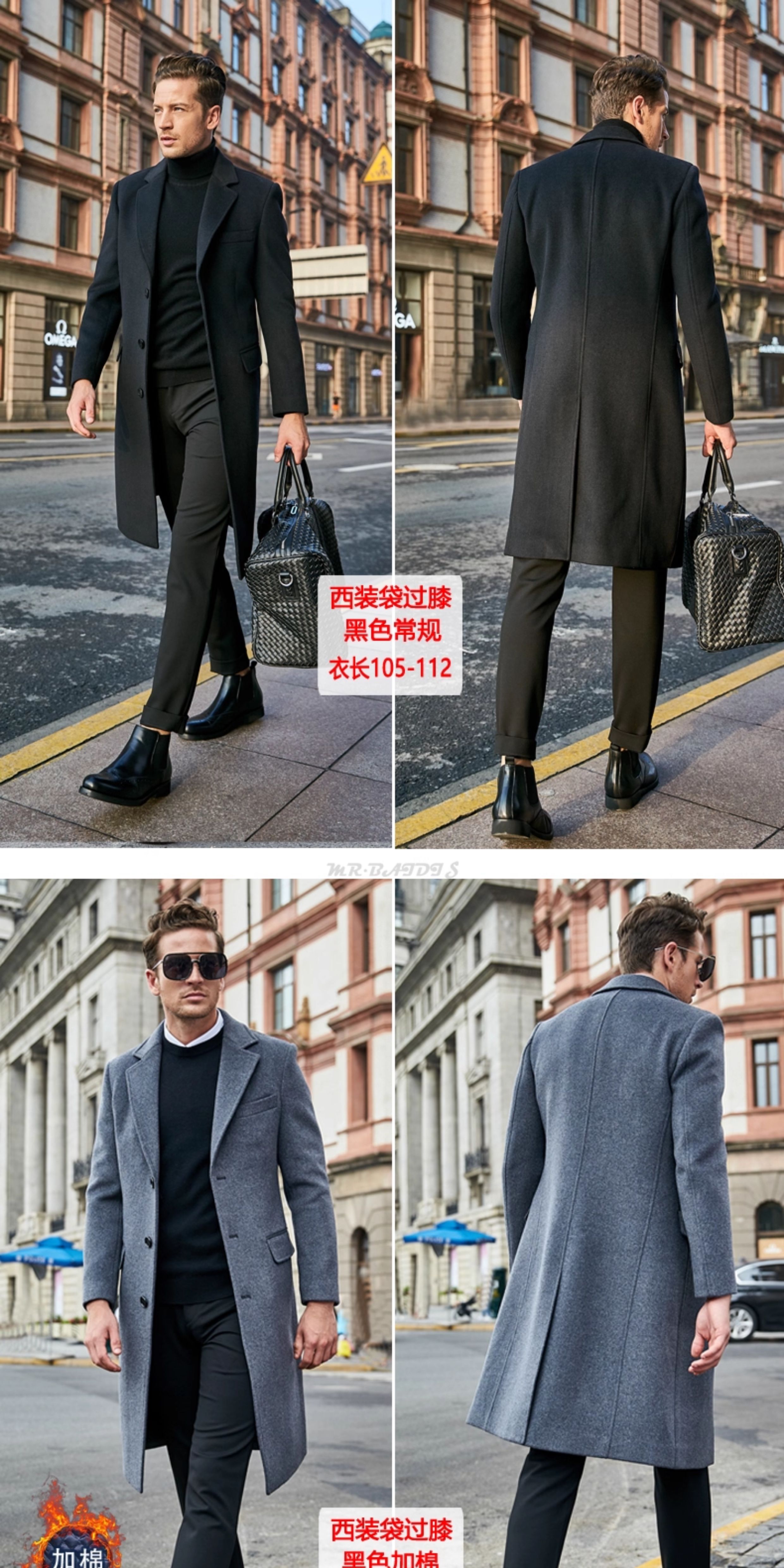 2025 Autumn and Winter Woolen Coat for Men, Long Trench Coat, Over-The-Knee Extra Long Woolen Mid-Length Thick Coat