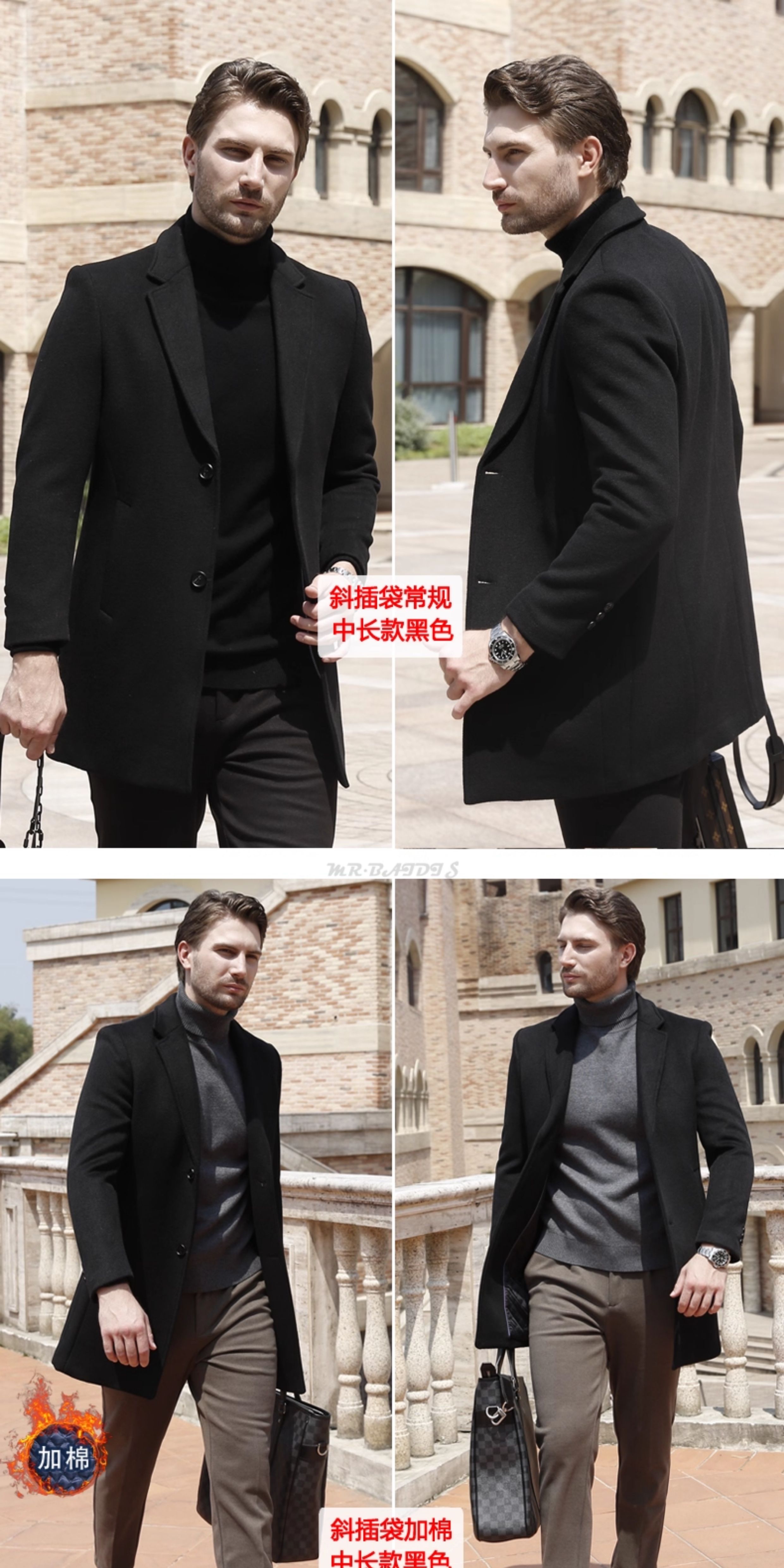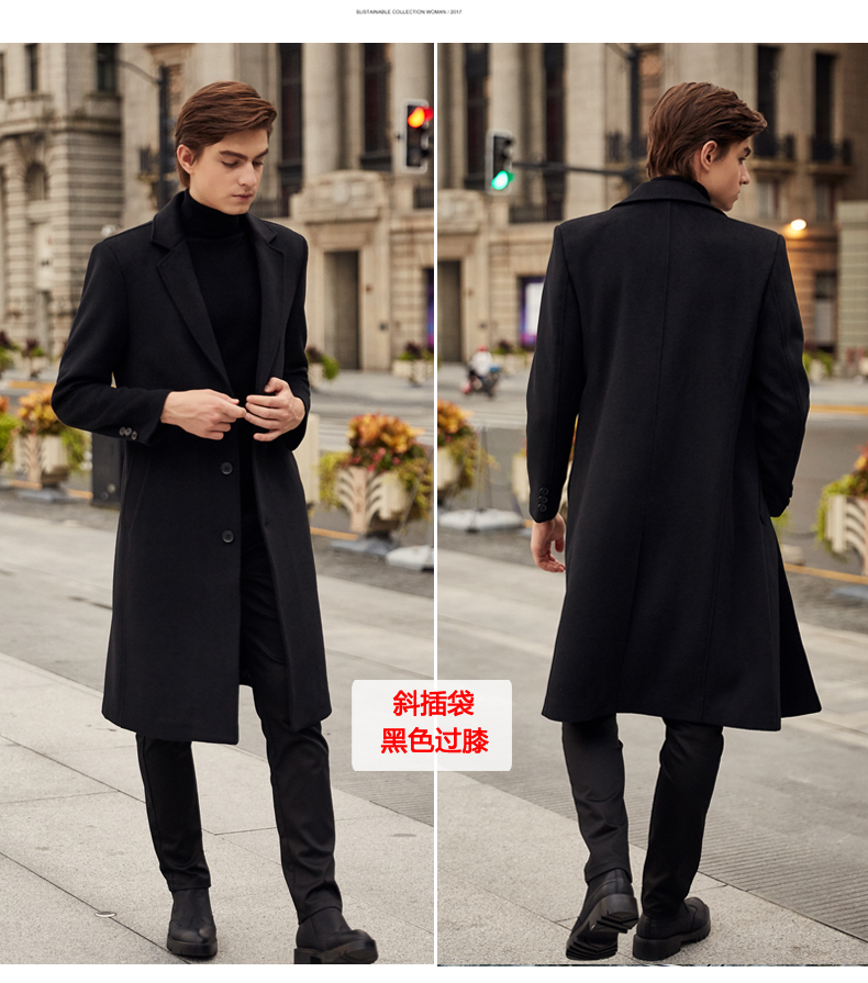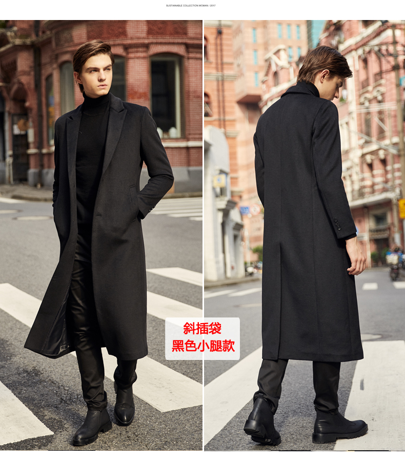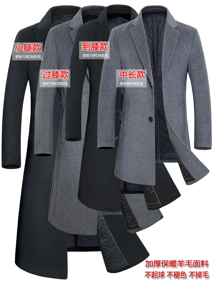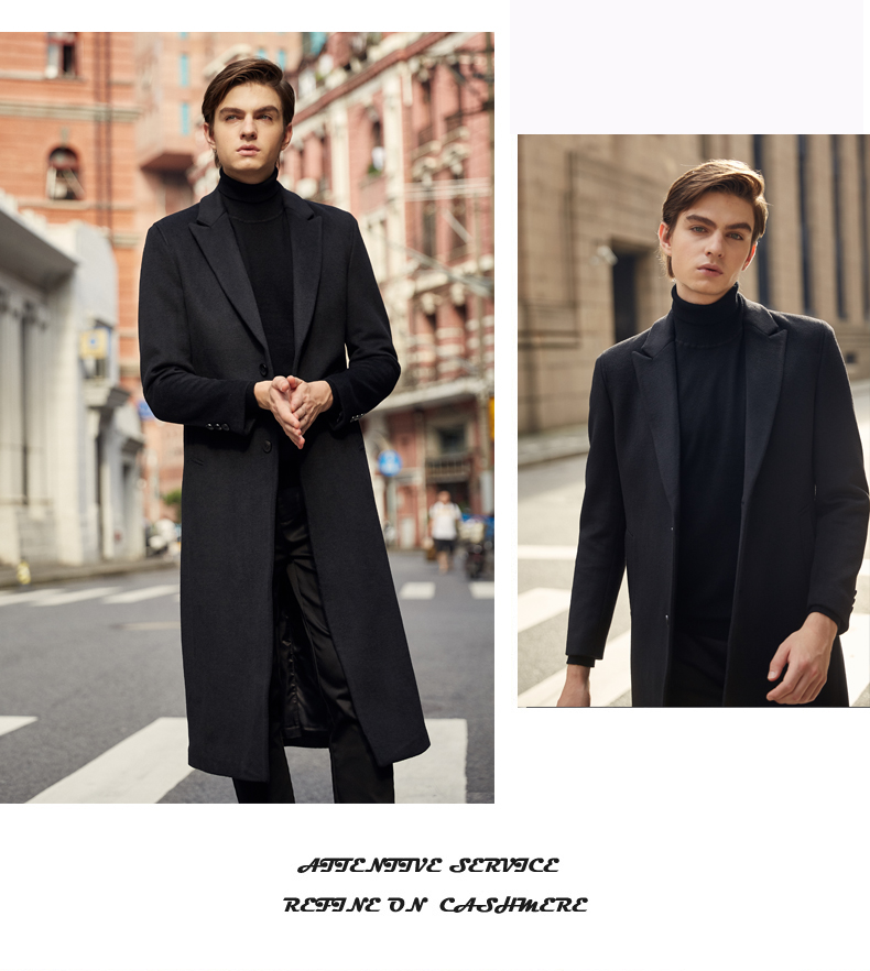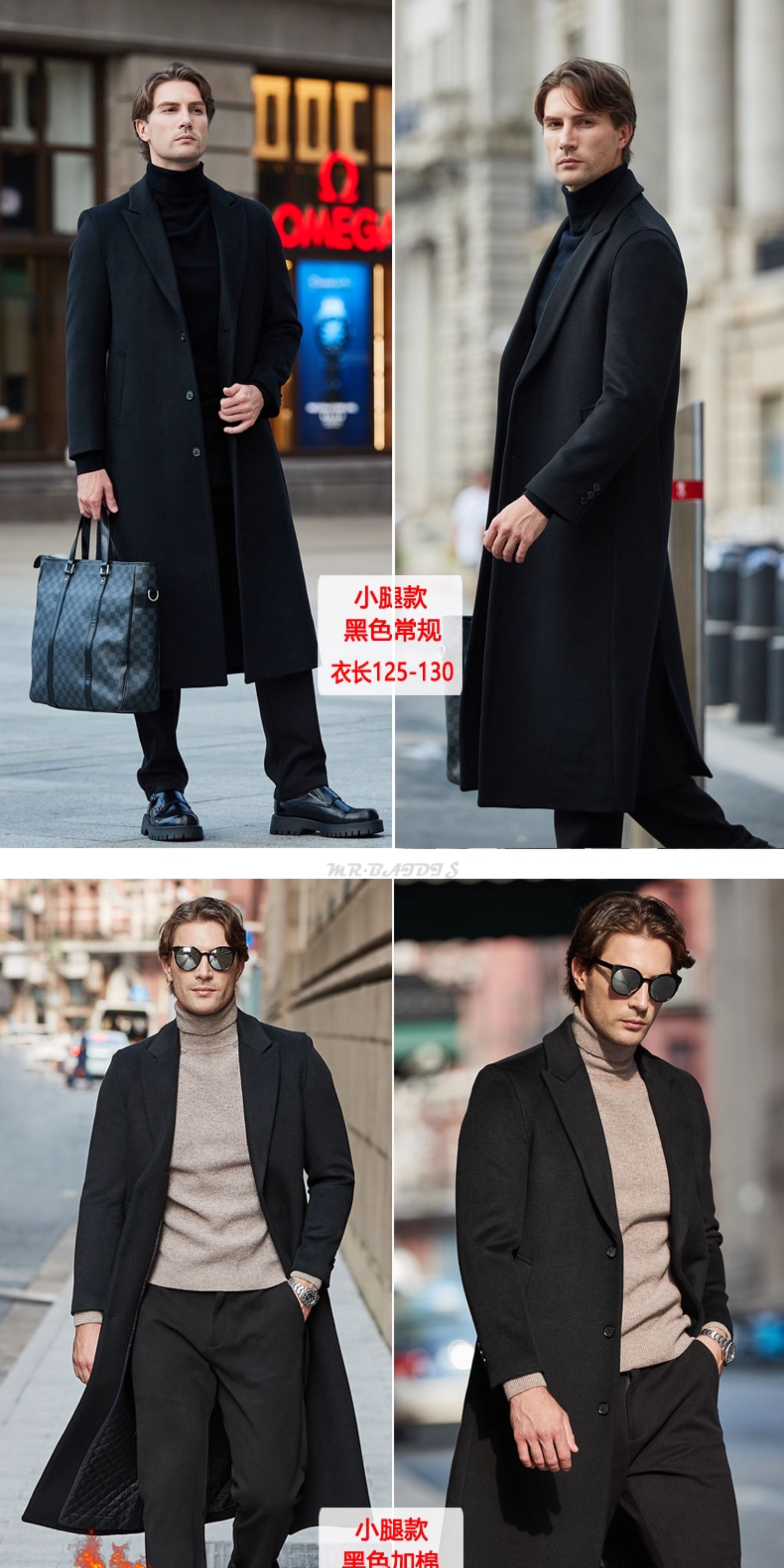 2025 Autumn and Winter Woolen Coat for Men, Long Trench Coat, Over-The-Knee Extra Long Woolen Mid-Length Thick Coat