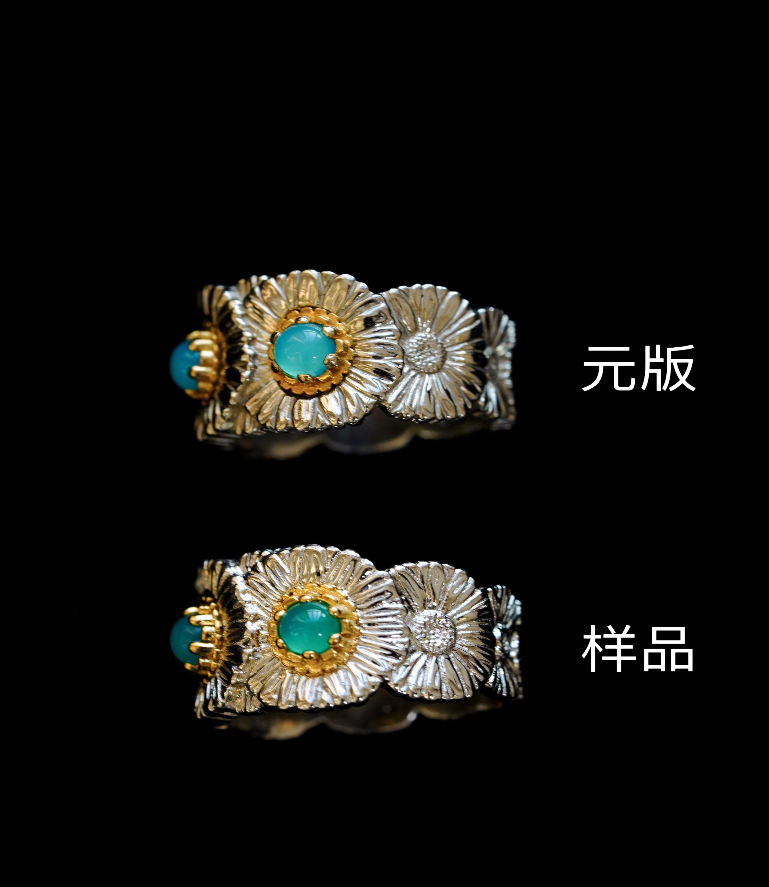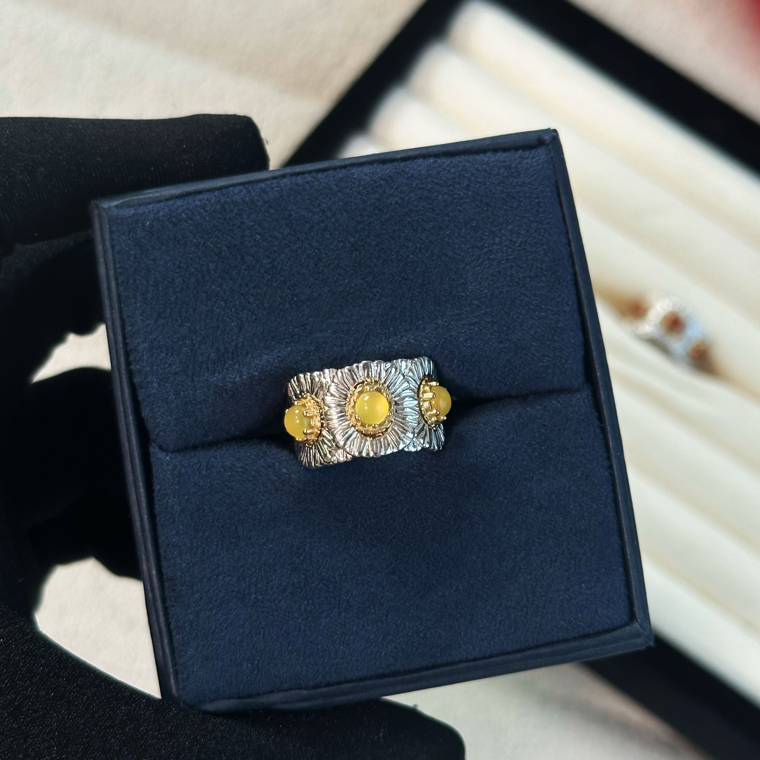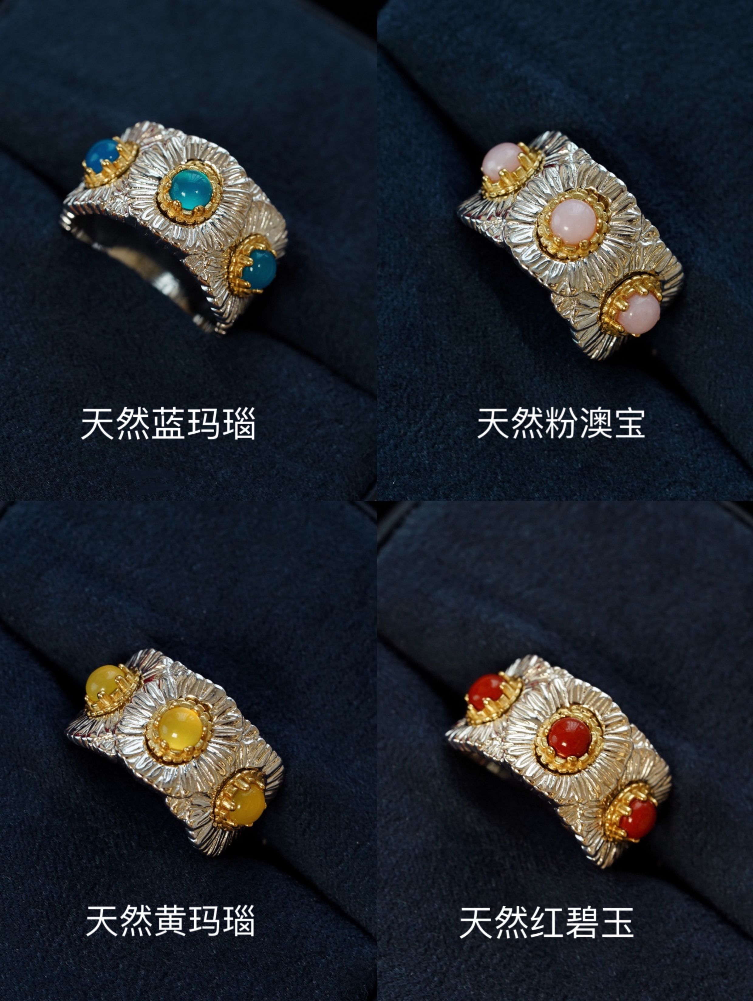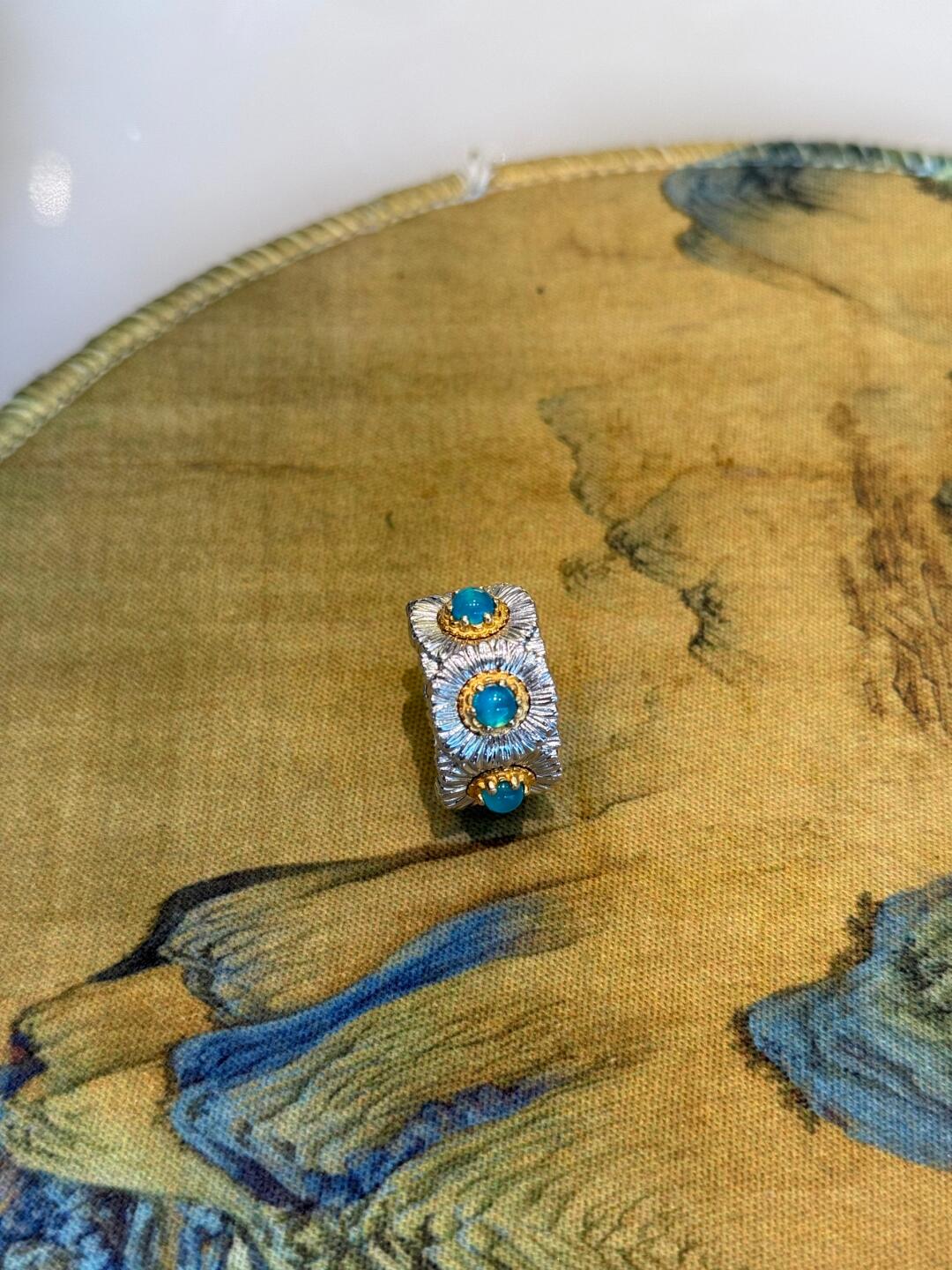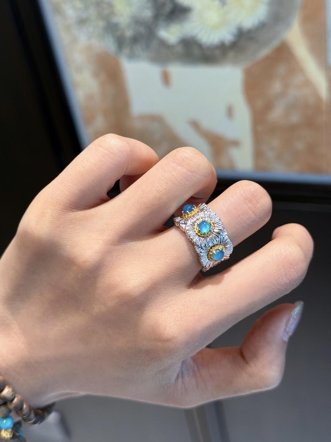 Italian Light Luxury High-End 925 Sterling Silver Colorful Gemstone Daisy Blue Agate Vintage Design Unique Ring for Women