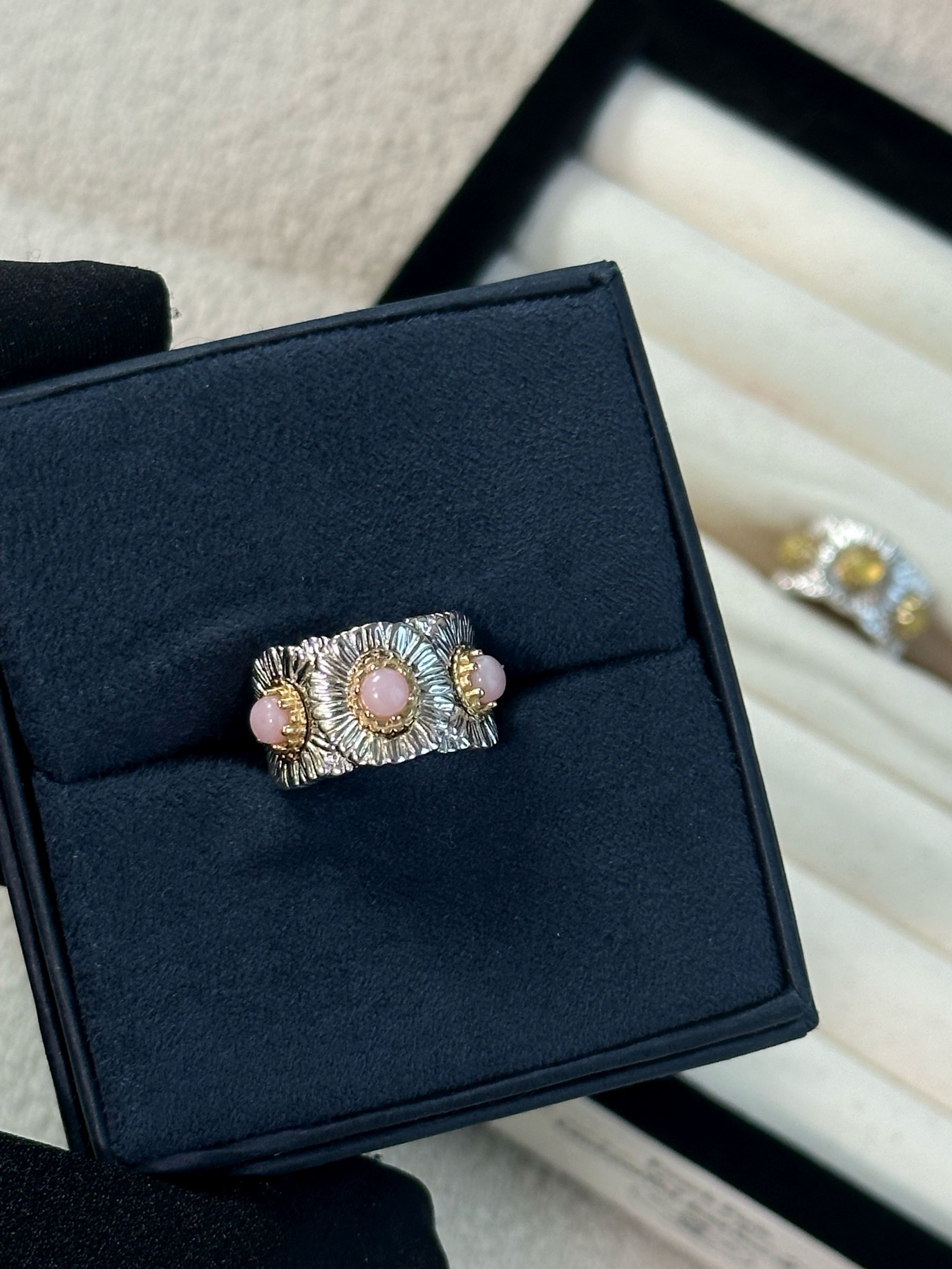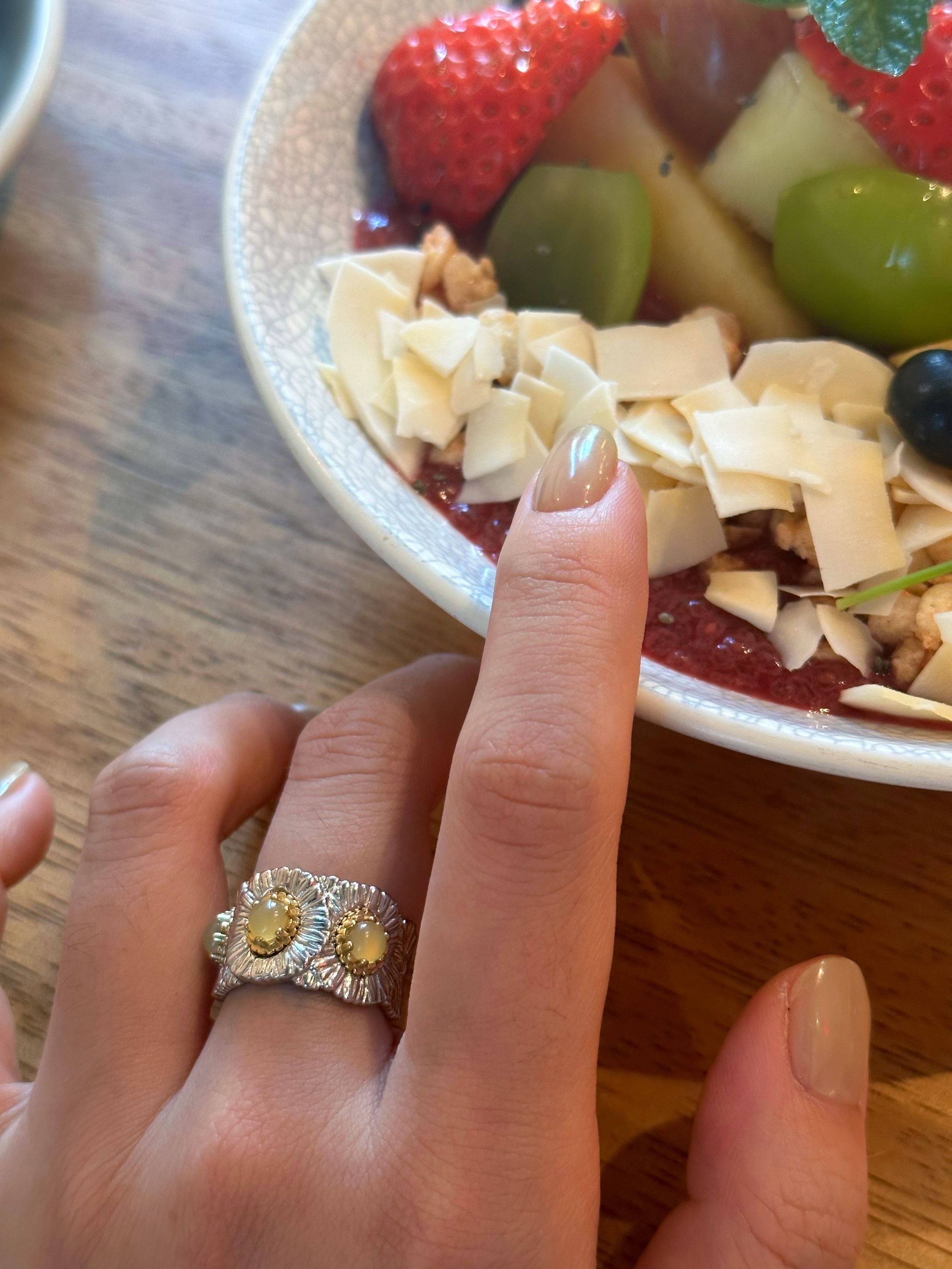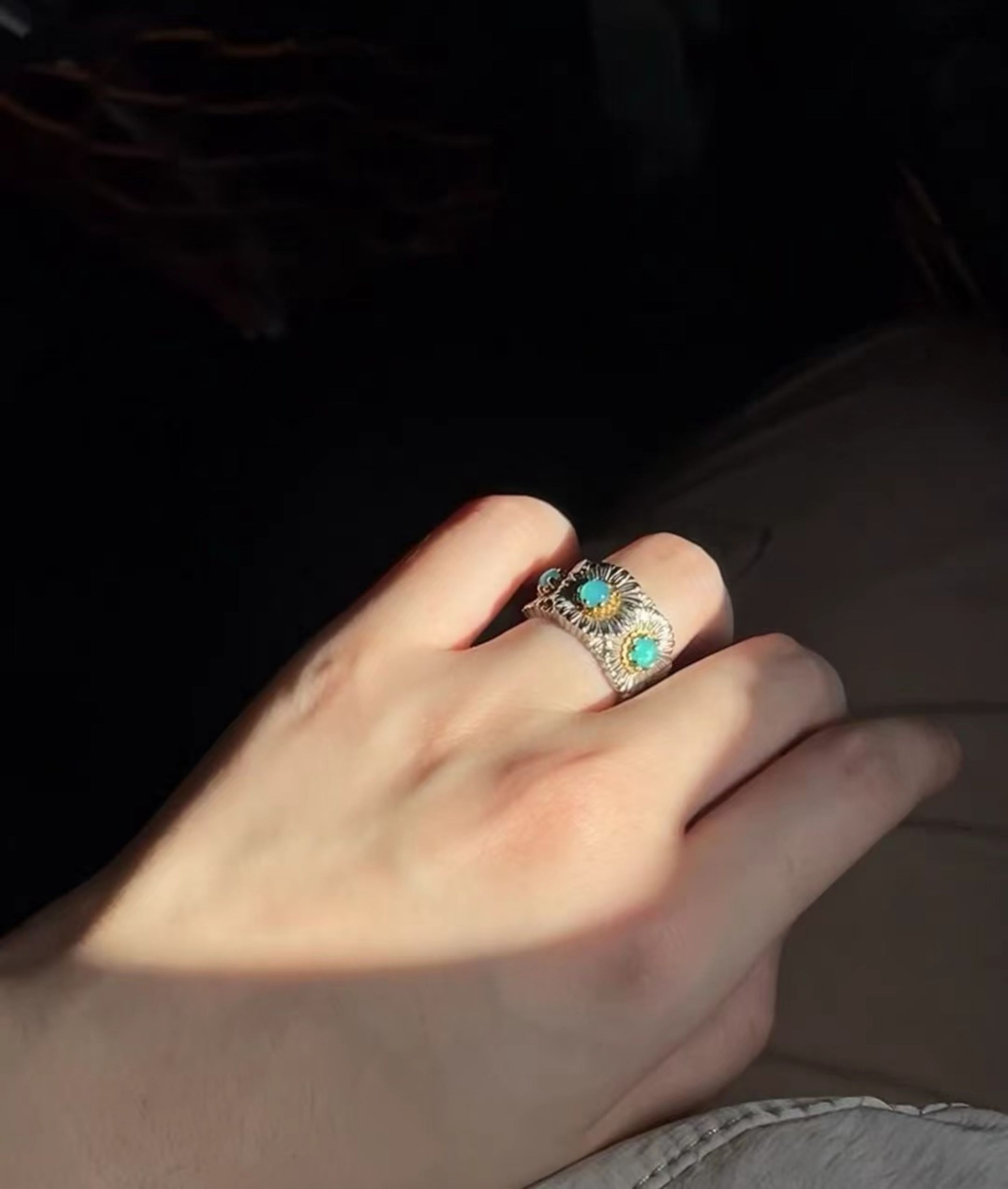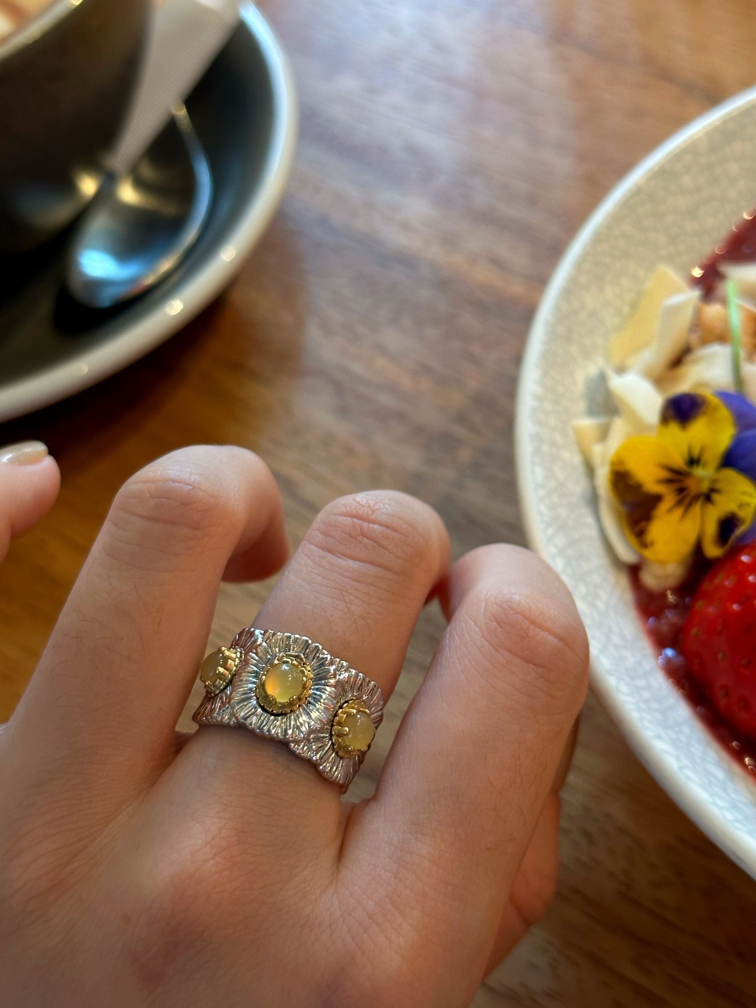 Italian Light Luxury High-End 925 Sterling Silver Colorful Gemstone Daisy Blue Agate Vintage Design Unique Ring for Women