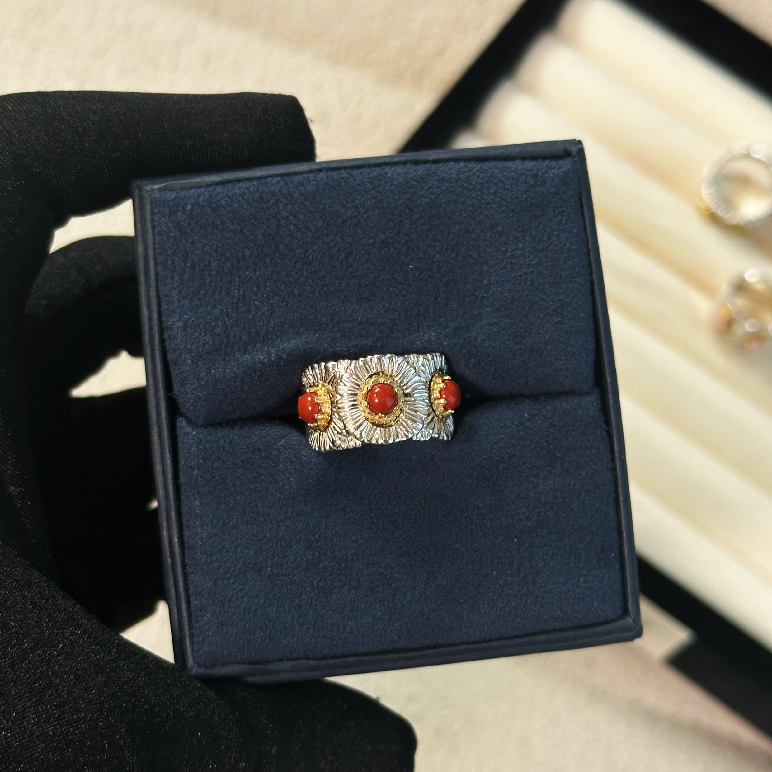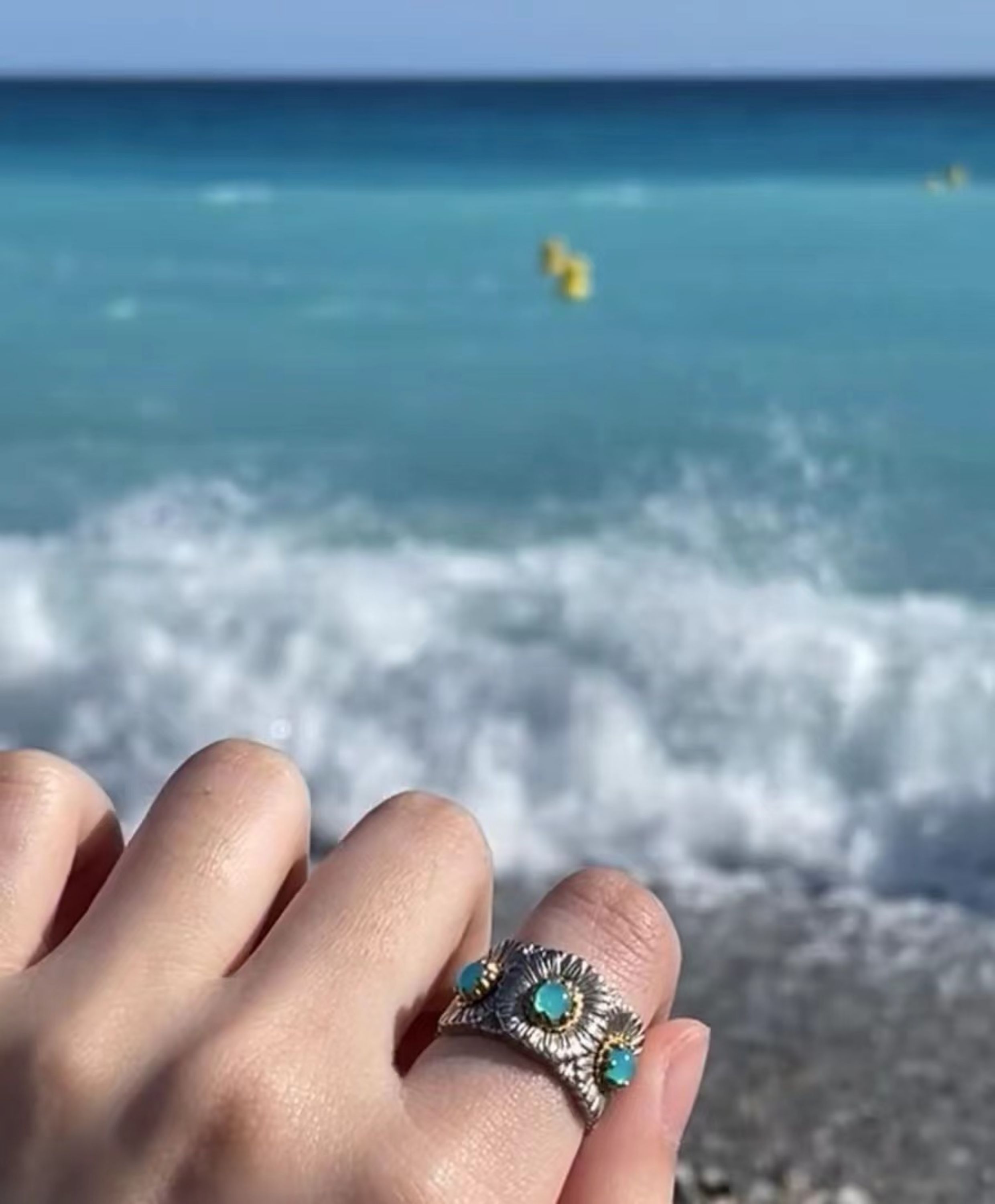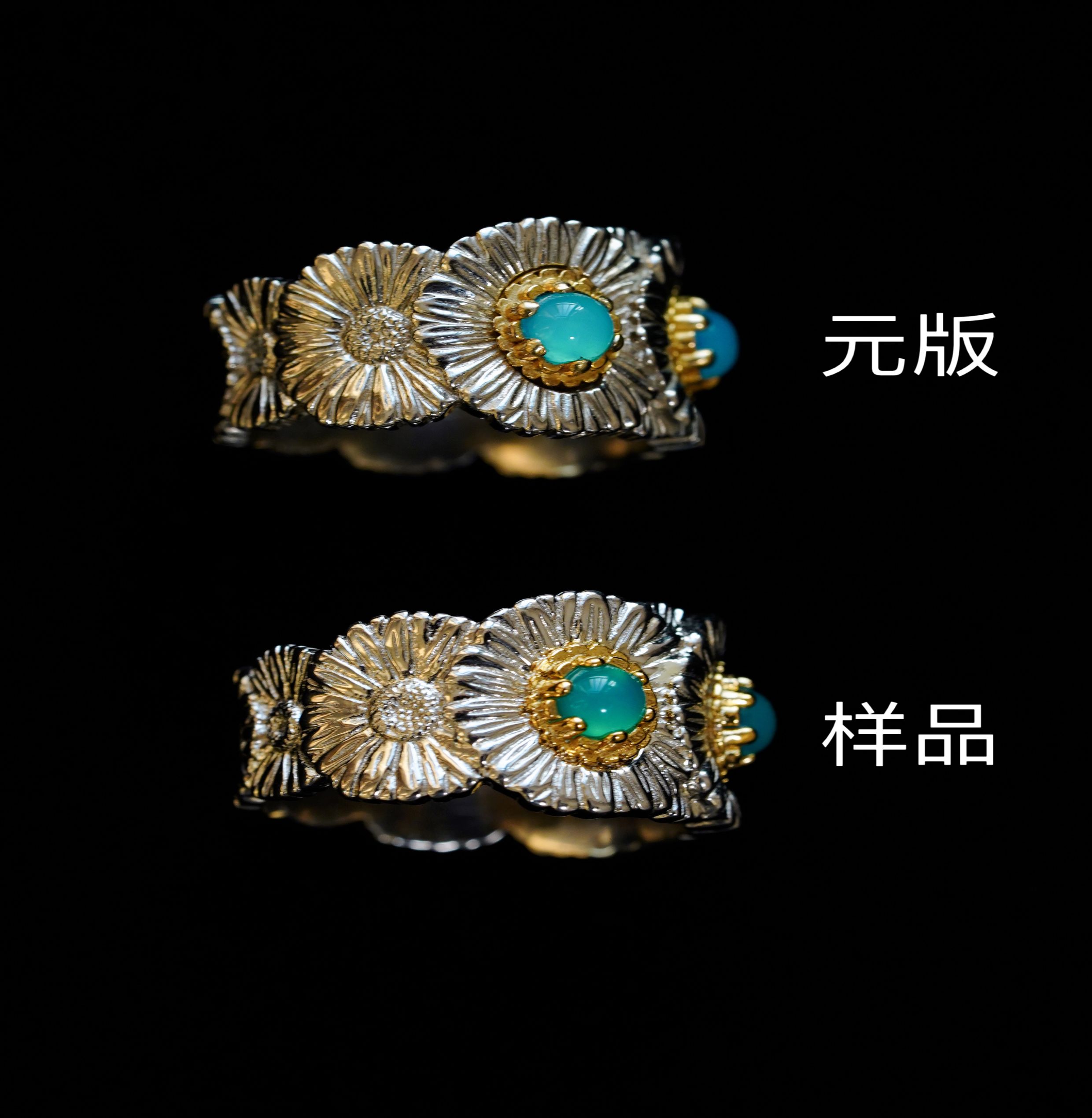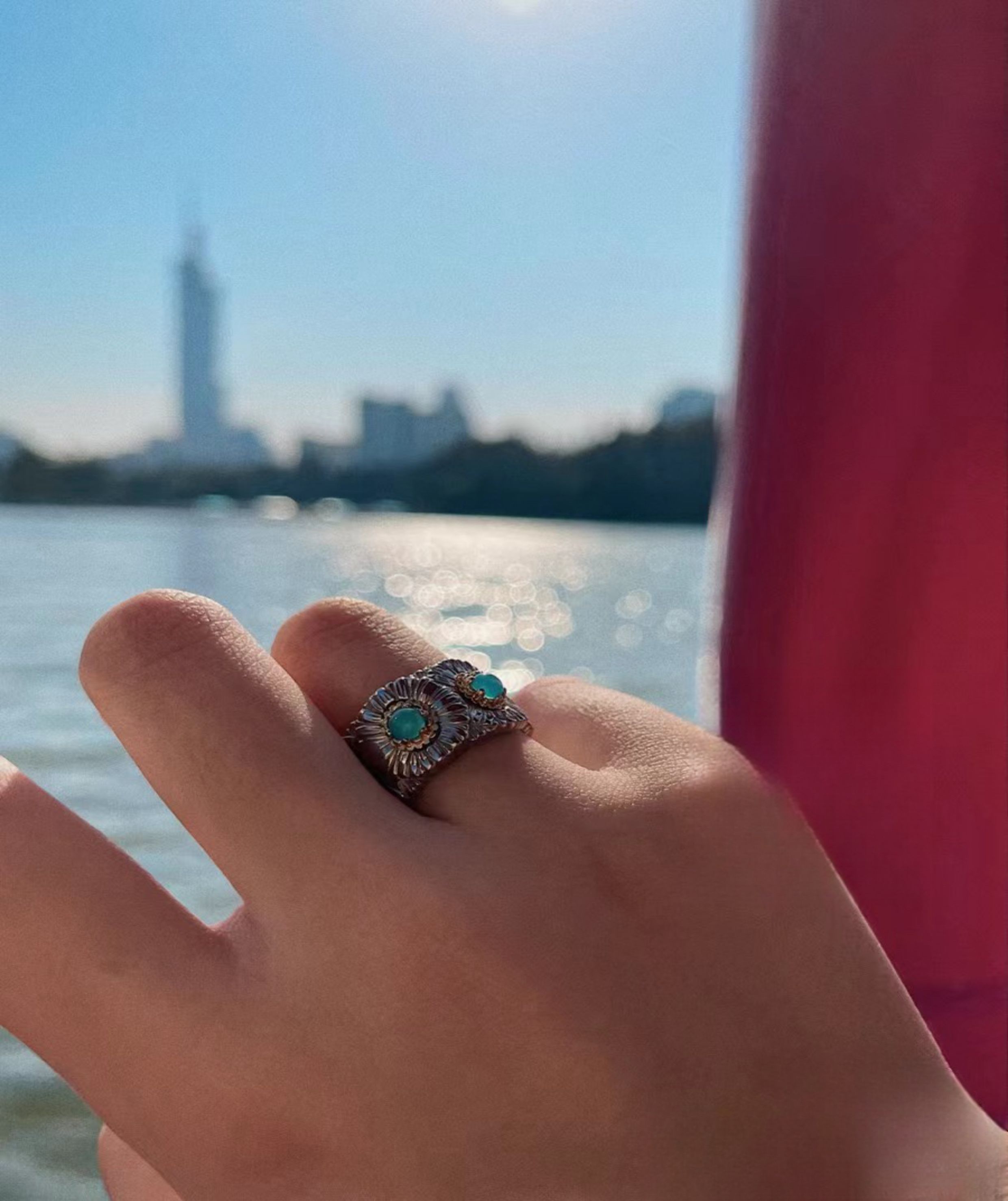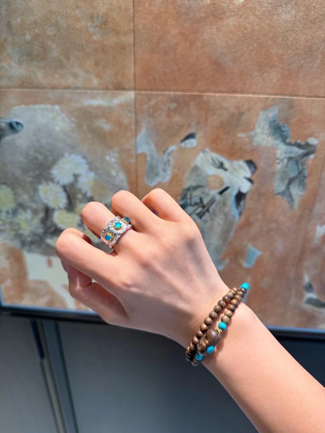 Italian Light Luxury High-End 925 Sterling Silver Colorful Gemstone Daisy Blue Agate Vintage Design Unique Ring for Women