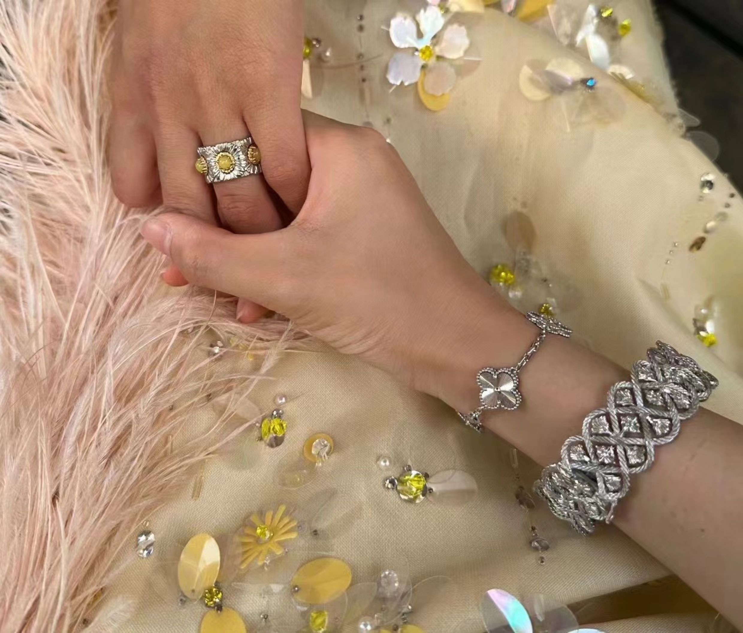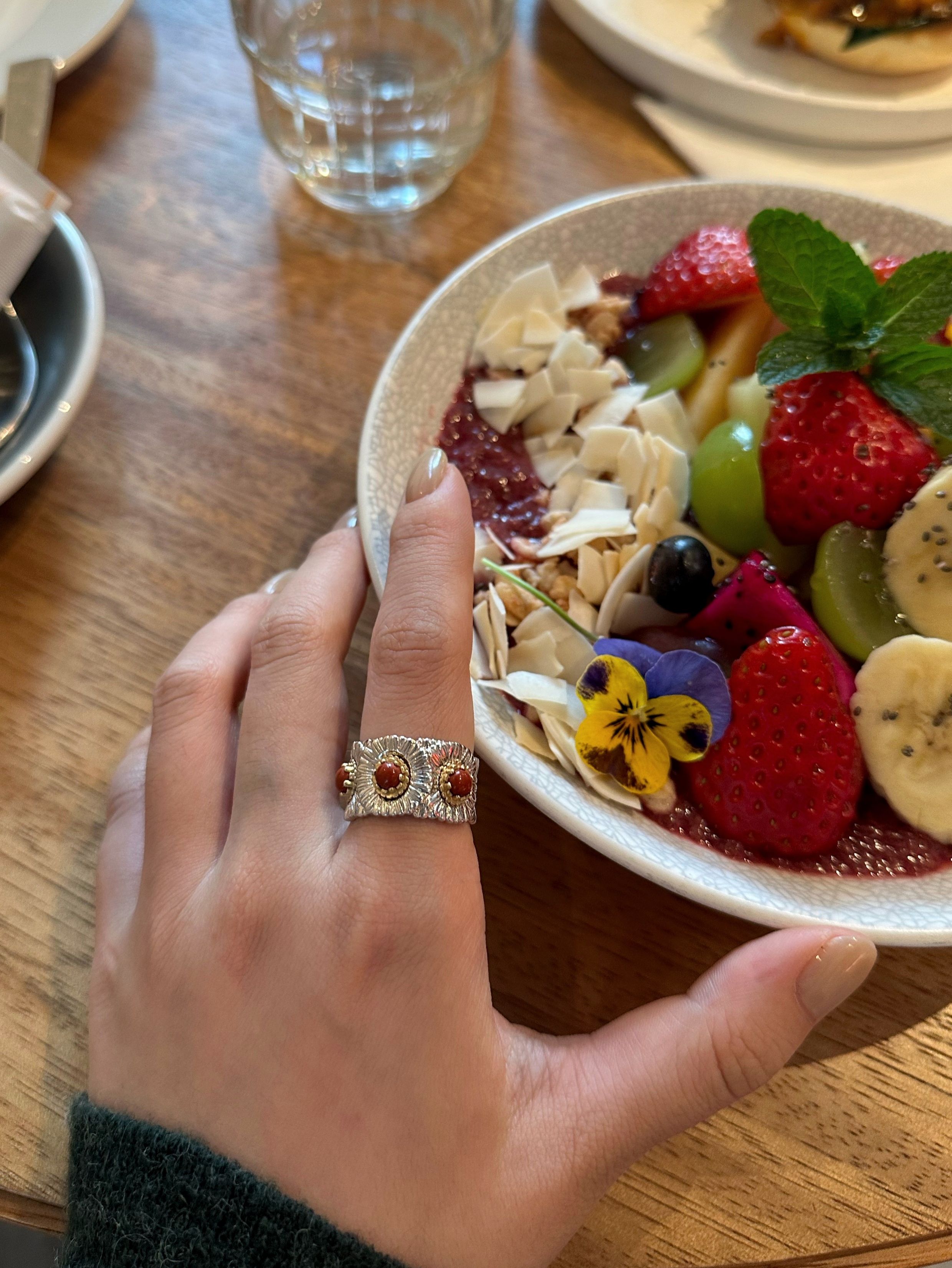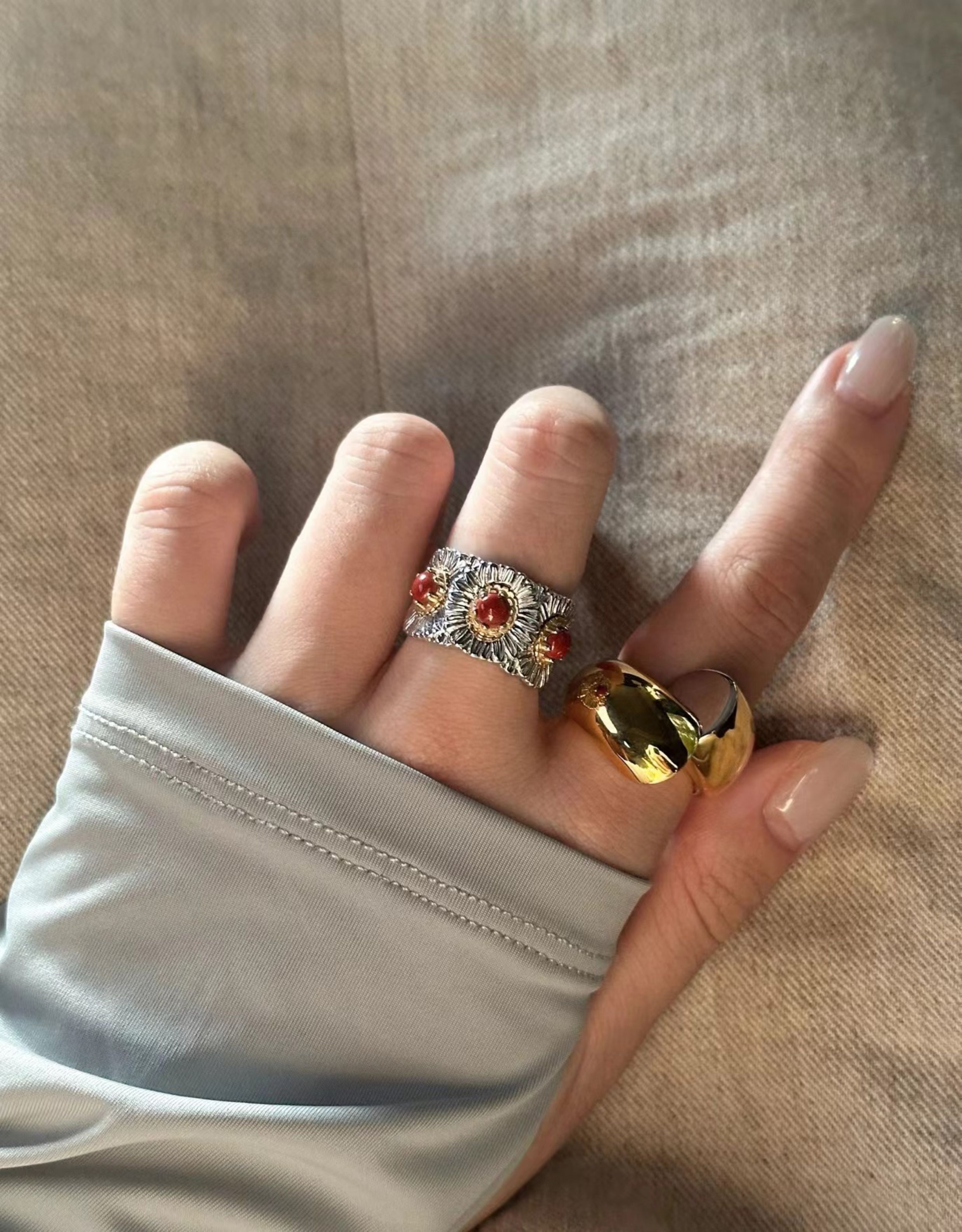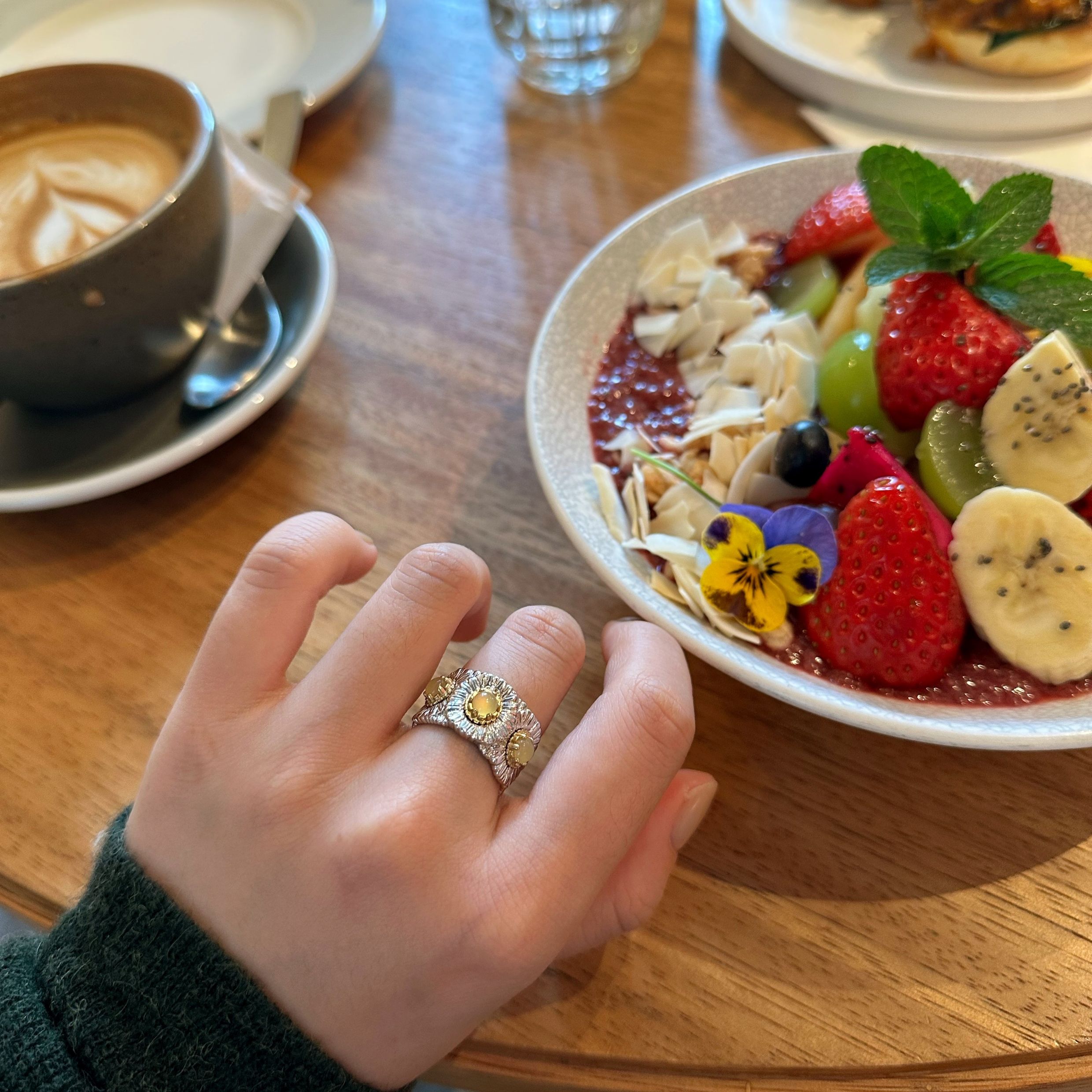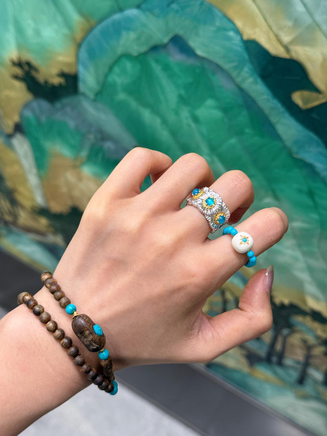 Italian Light Luxury High-End 925 Sterling Silver Colorful Gemstone Daisy Blue Agate Vintage Design Unique Ring for Women