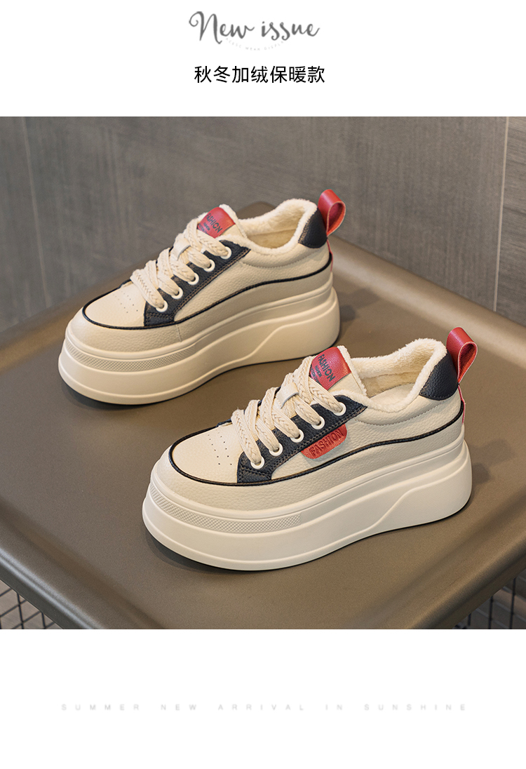 Hong Kong White Sneakers for Women, 2025 Autumn and Winter New Versatile Thick-Soled Height-Increasing Fleece-Lined Casual Stylish Sneakers