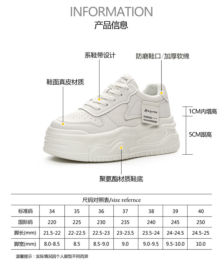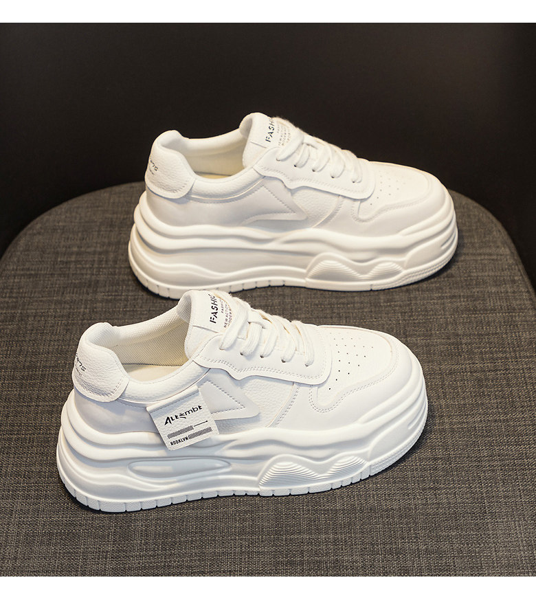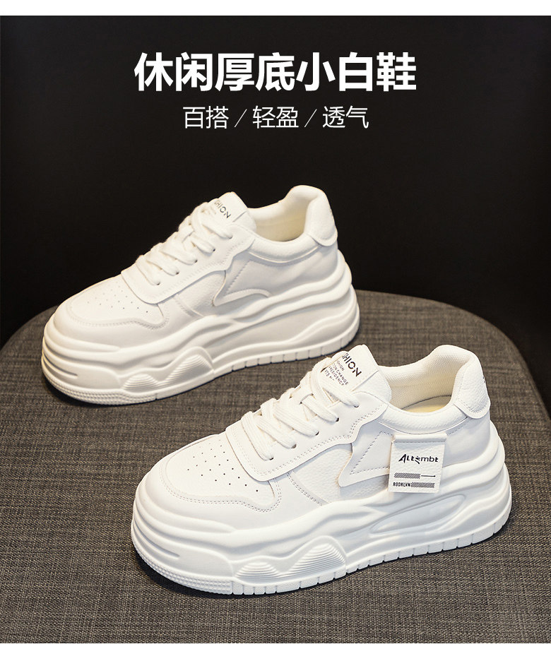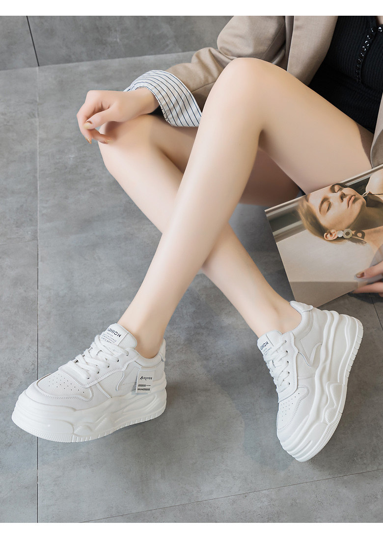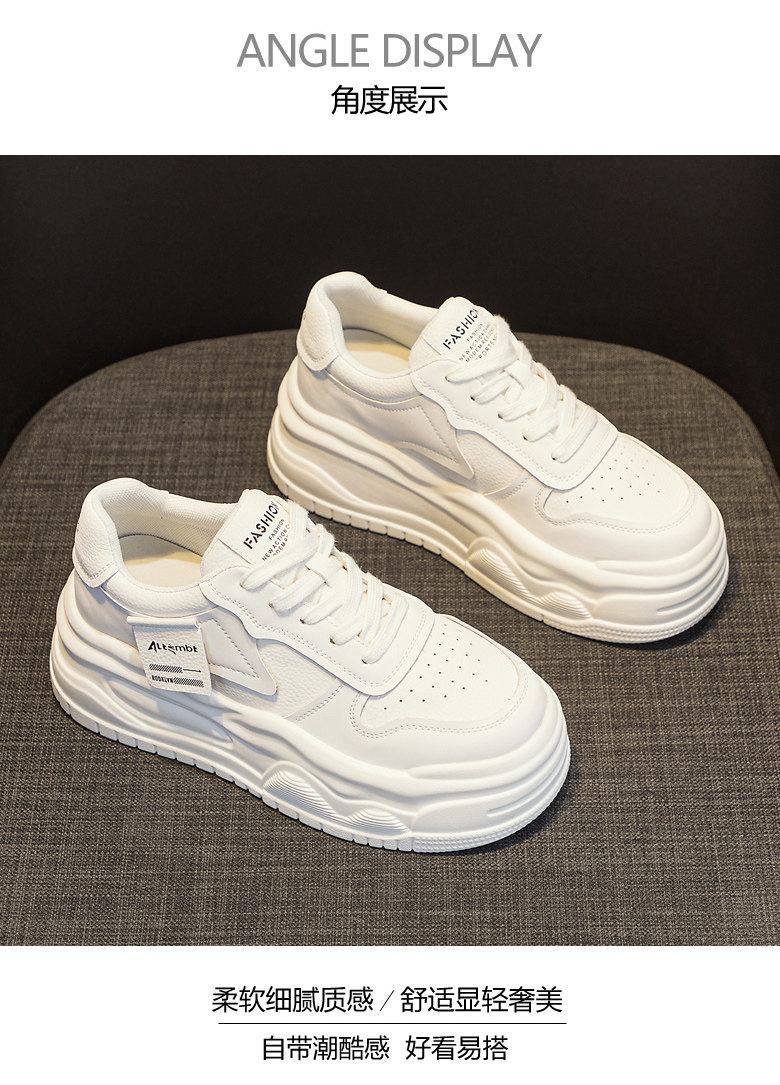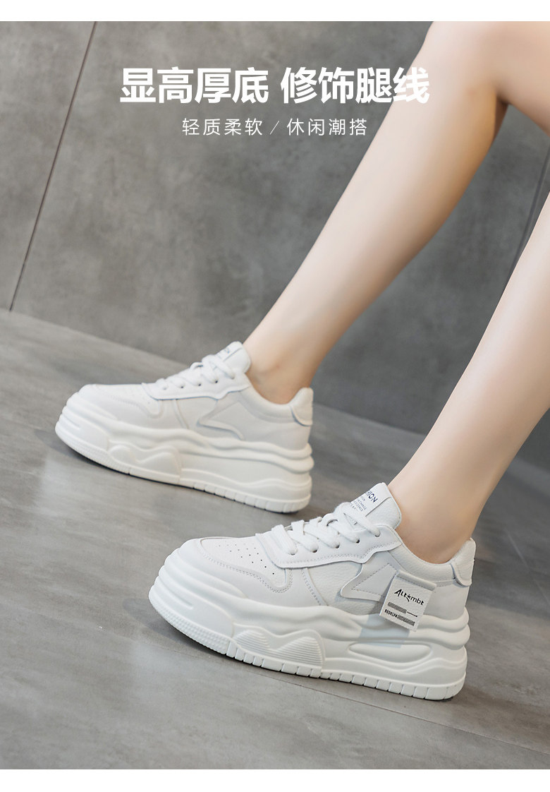 Platform Thick-Soled White Sneakers for Women 2026 New Popular Spring Versatile Genuine Leather Lightweight Height-Increasing Sports Casual Sneakers
