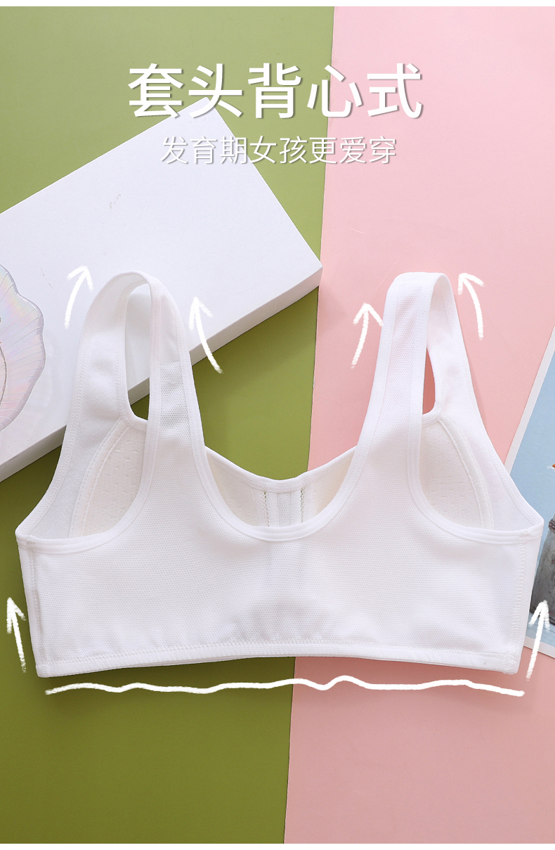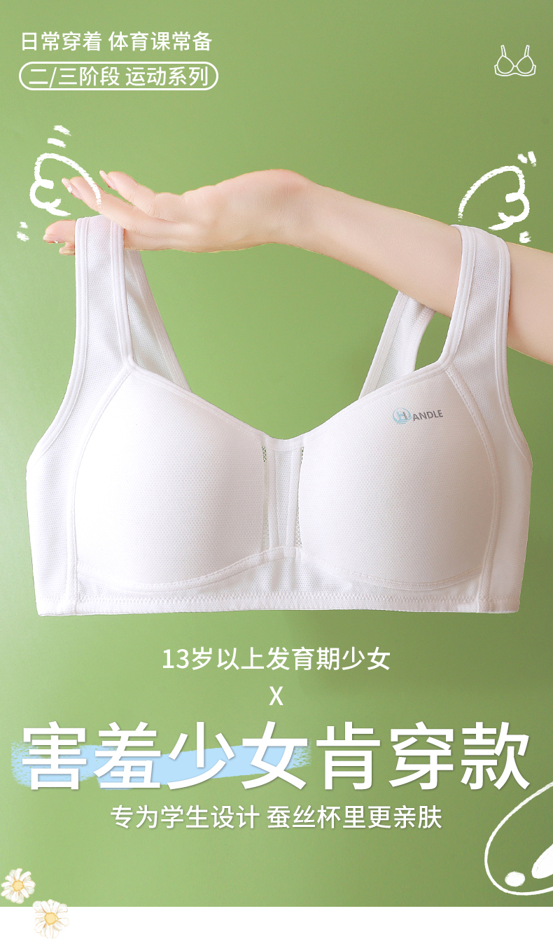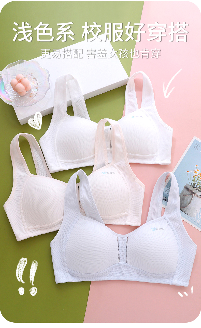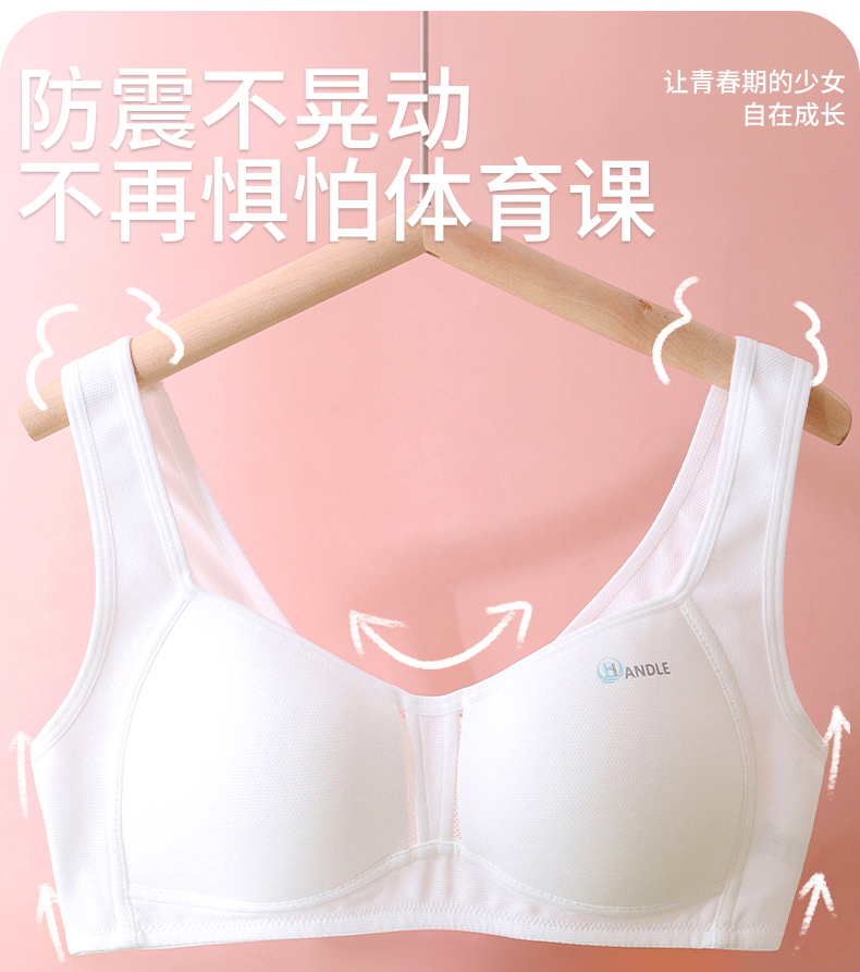Anfeiya High School Girls' Underwear for Puberty Development, Silk Molded Cup Sports Vest, Girls' Bra for Older Children