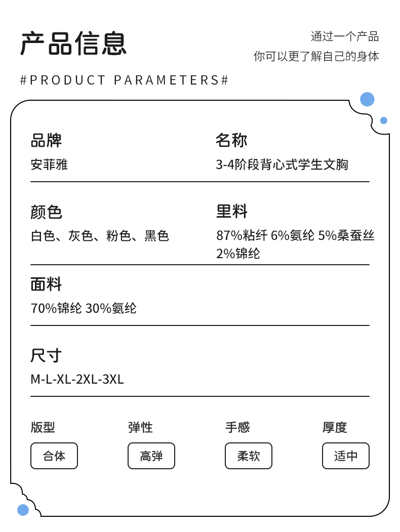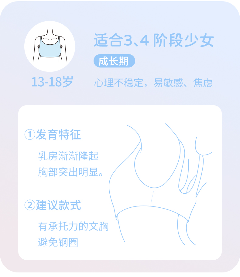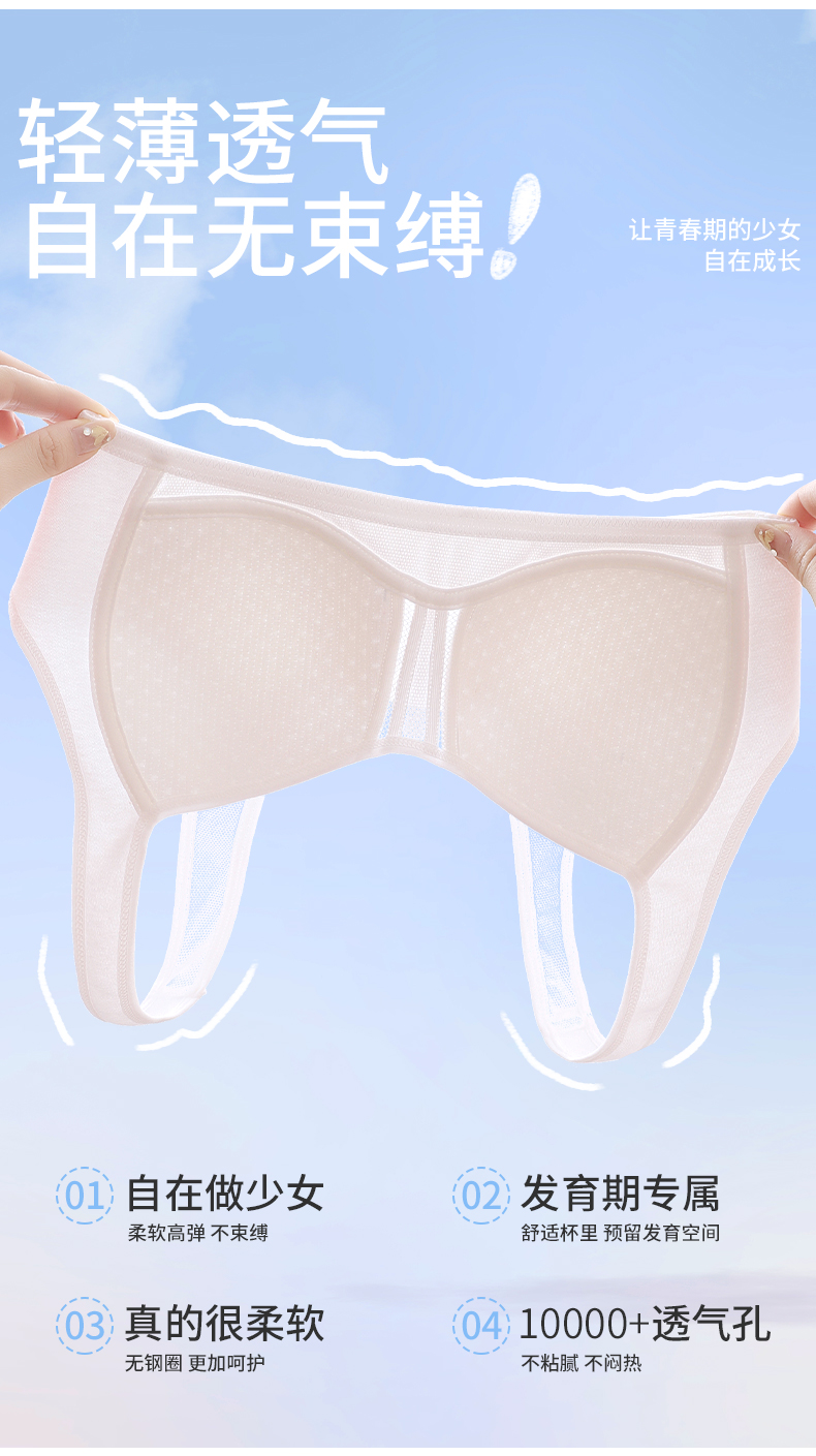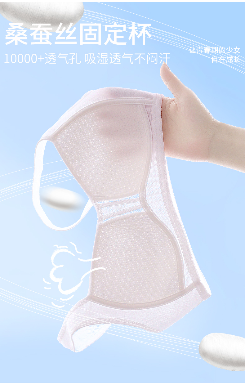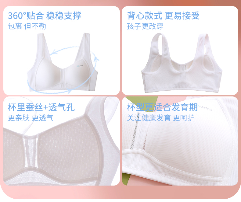 Anfeiya High School Girls' Underwear for Puberty Development, Silk Molded Cup Sports Vest, Girls' Bra for Older Children