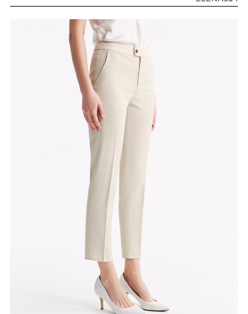 Tieforher Wool Slimming Straight-Leg Work Commute Women's Cropped Suit Pants | Founding Elena Series