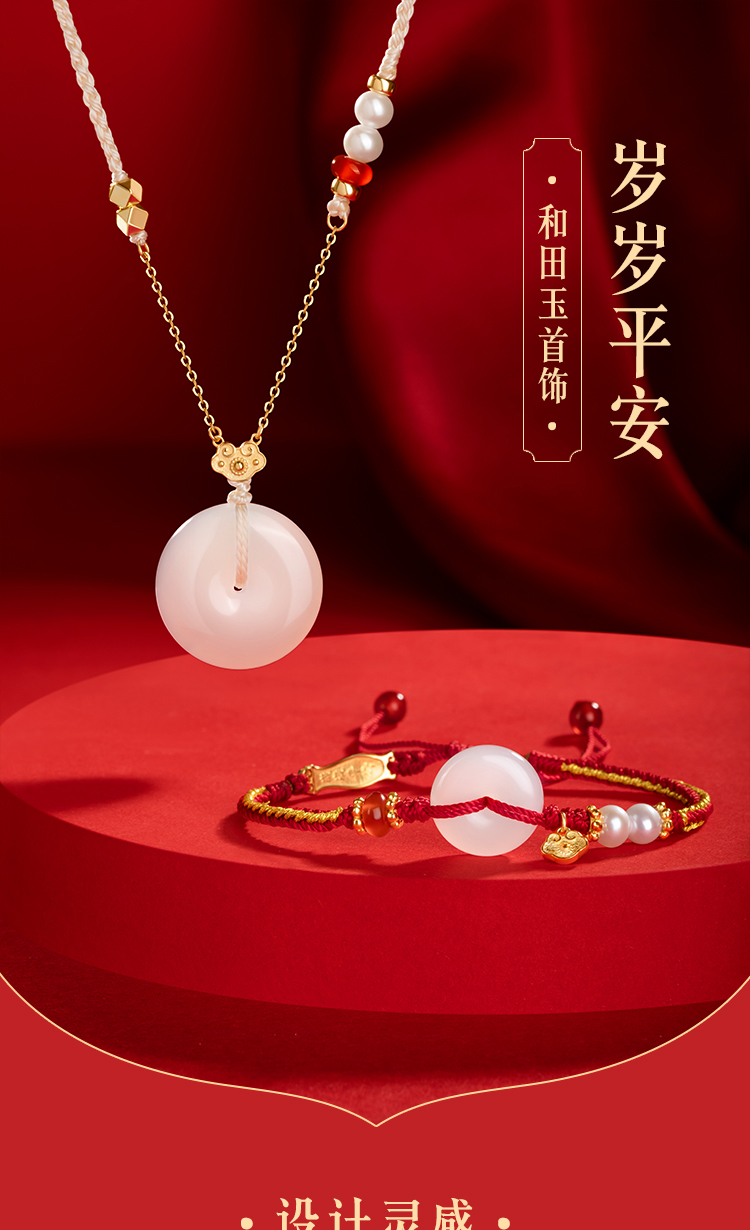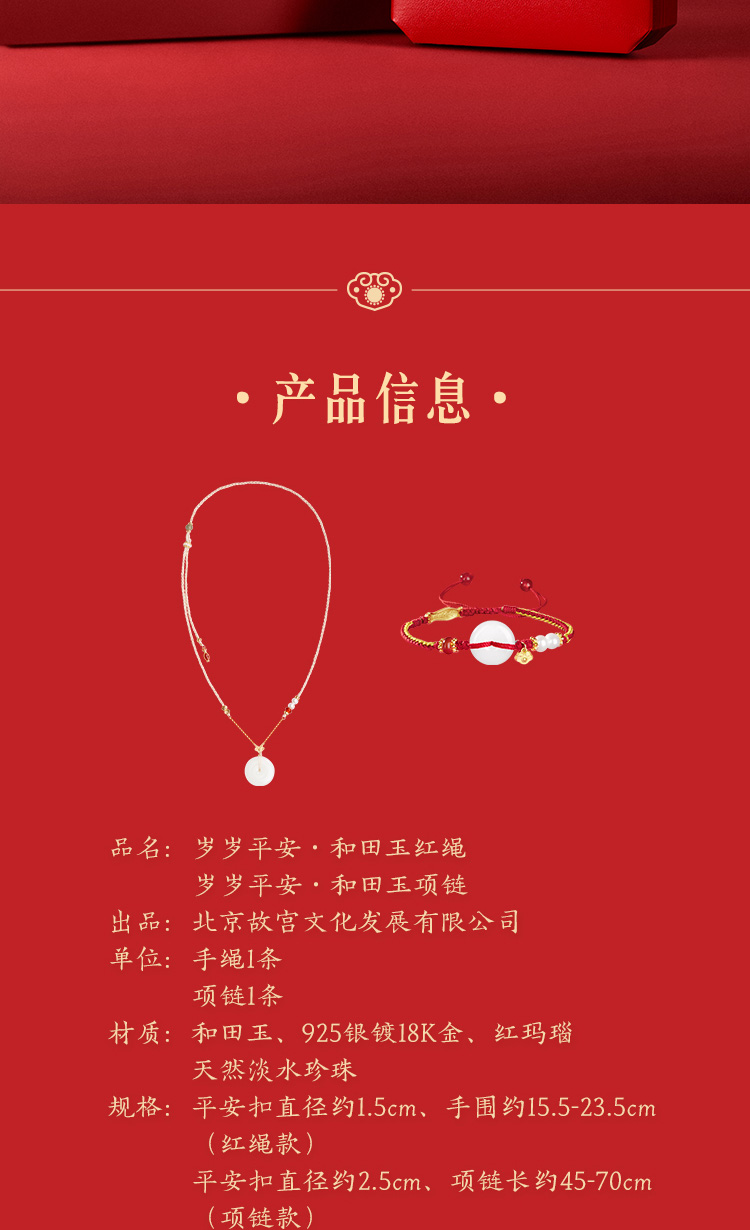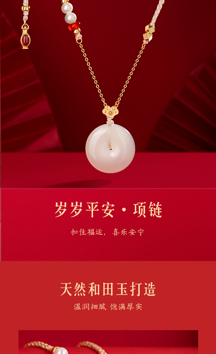 Forbidden City Taobao|Year after Year of Peace Hetian Jade Peace Pendant Bracelet Necklace Gift Box Cultural and Creative Mother's Birthday Gift for Women