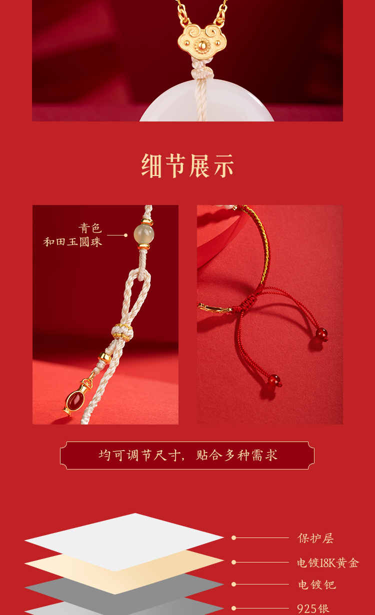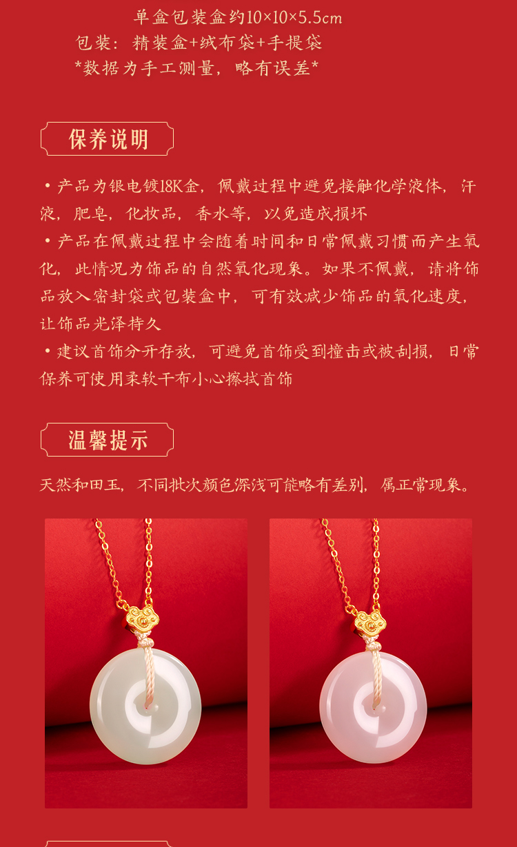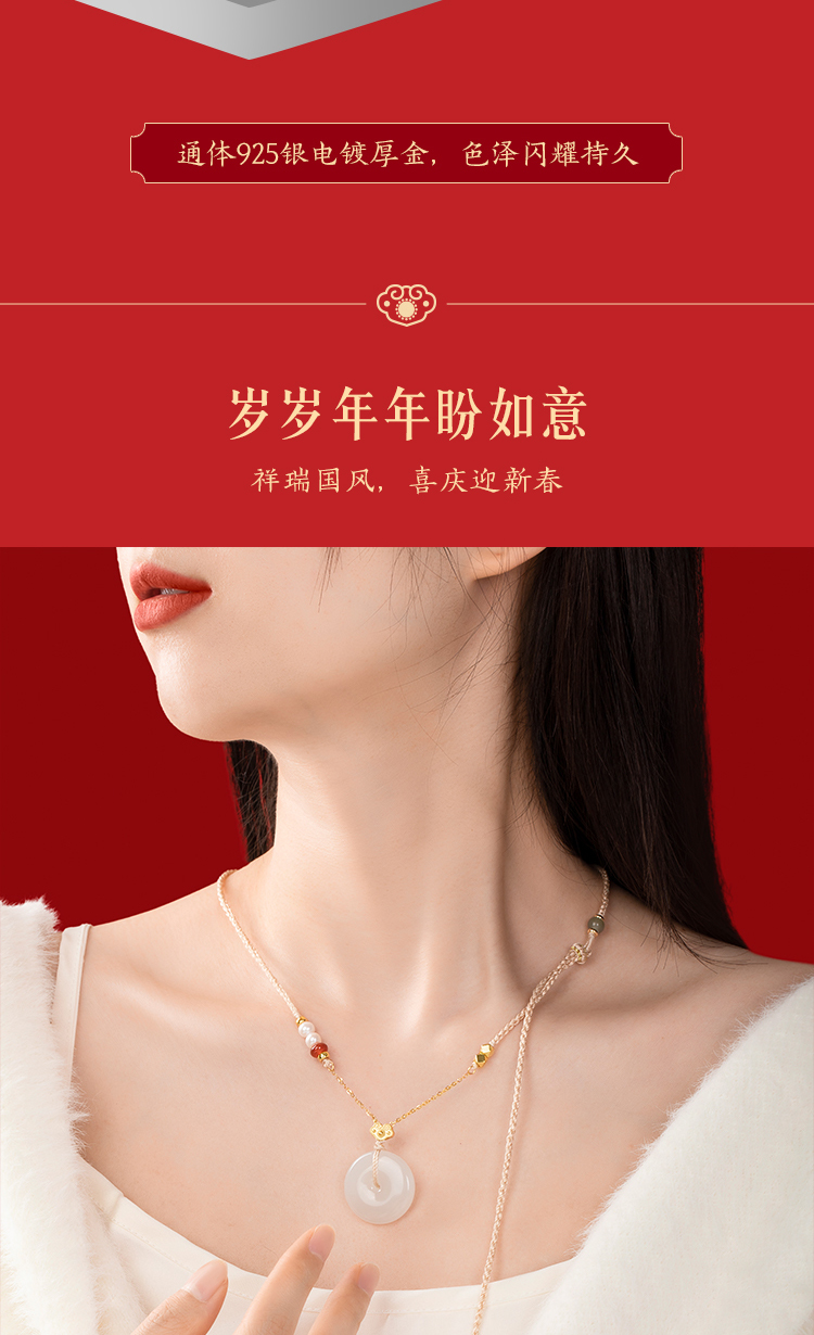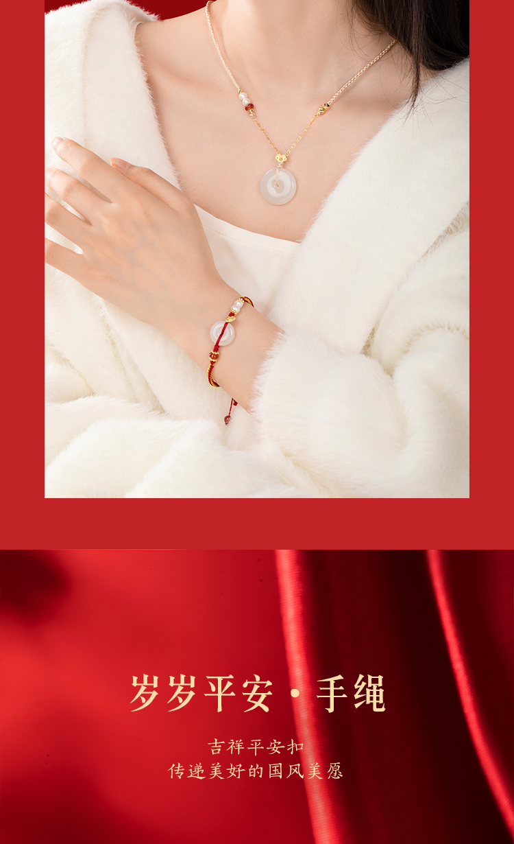 Forbidden City Taobao|Year after Year of Peace Hetian Jade Peace Pendant Bracelet Necklace Gift Box Cultural and Creative Mother's Birthday Gift for Women