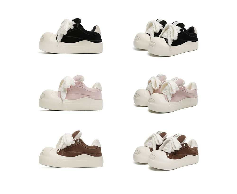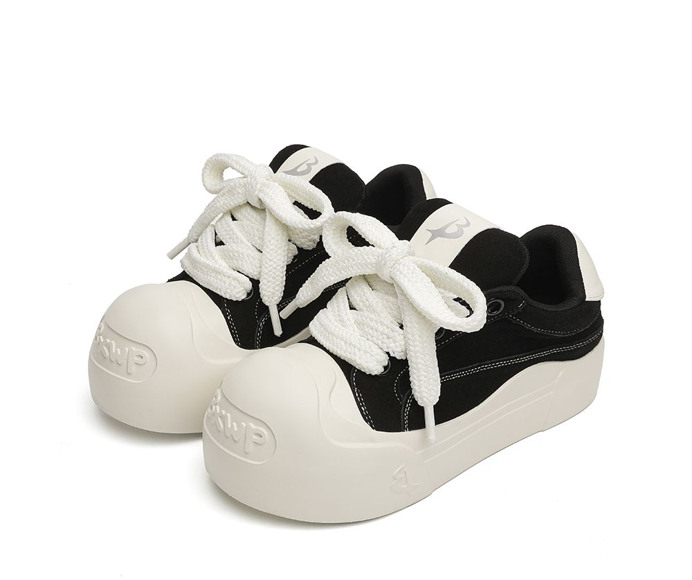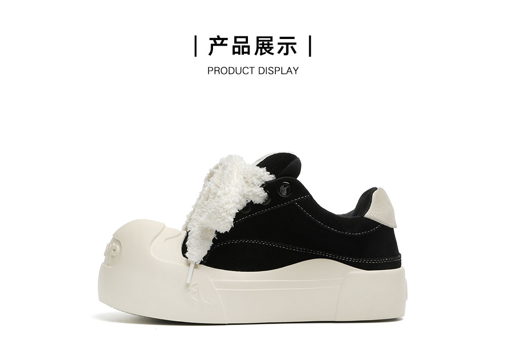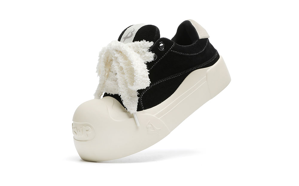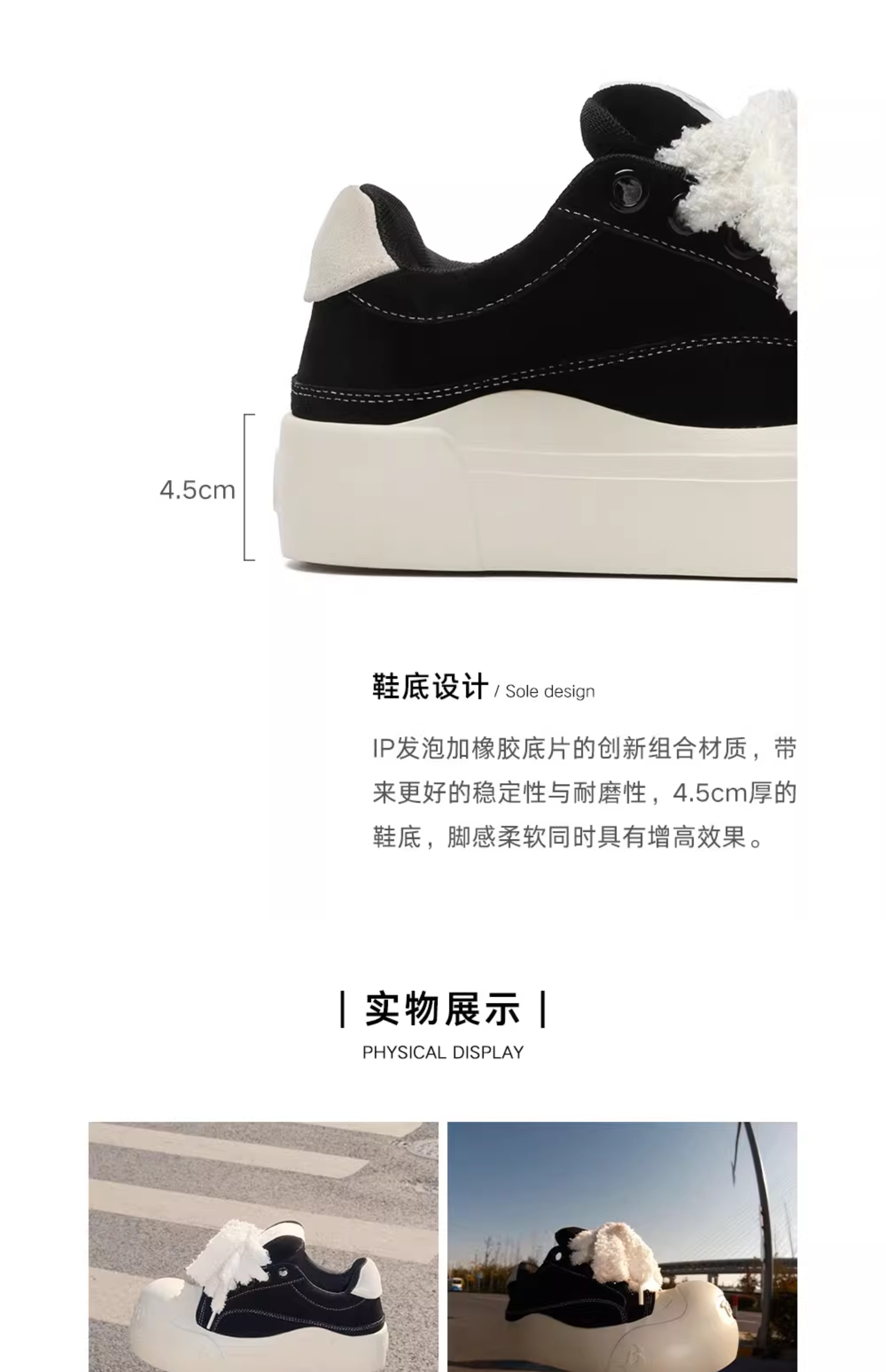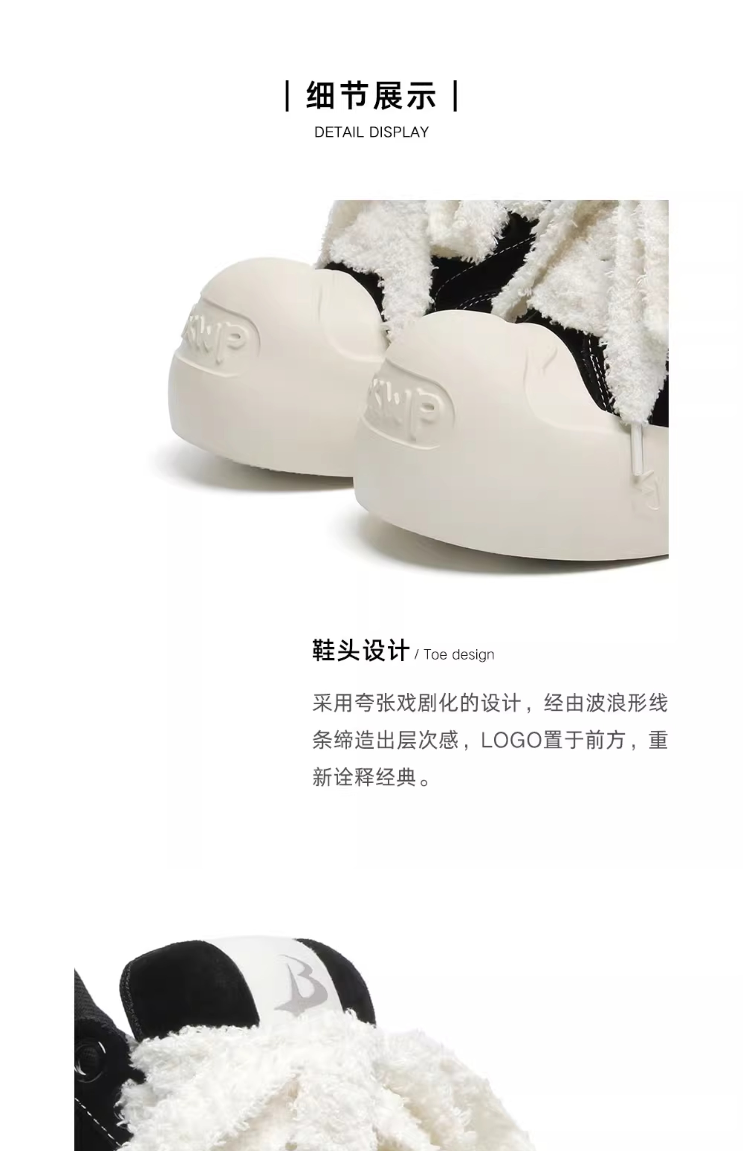 Bxwp Small Puff Shoes with Open Smile Design, Casual Thick-Soled Height-Increasing Shoes, Classic Black and White Suede Big-Toe Shoes, Unisex Sneakers