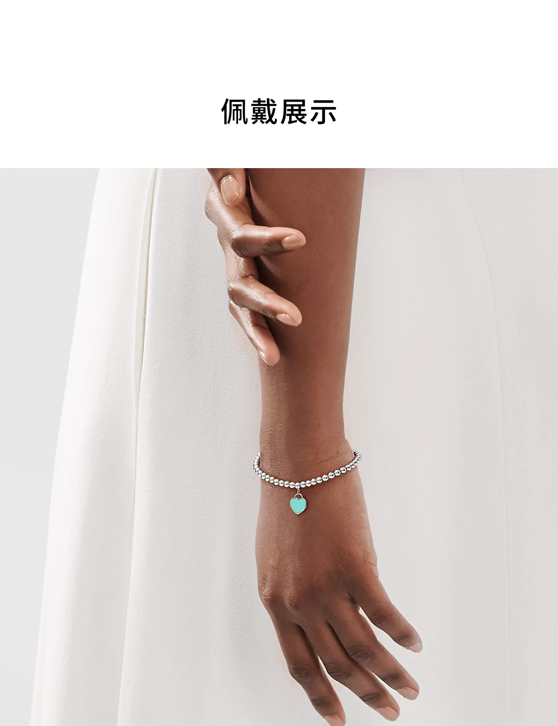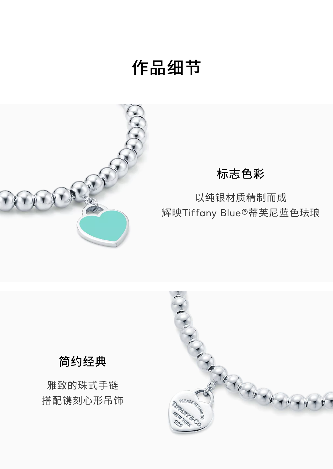 设计:Return to Tiffany™ 系列纯银 Tiffany Blue® 蒂芙尼蓝色 Heart Tag 珠式手链