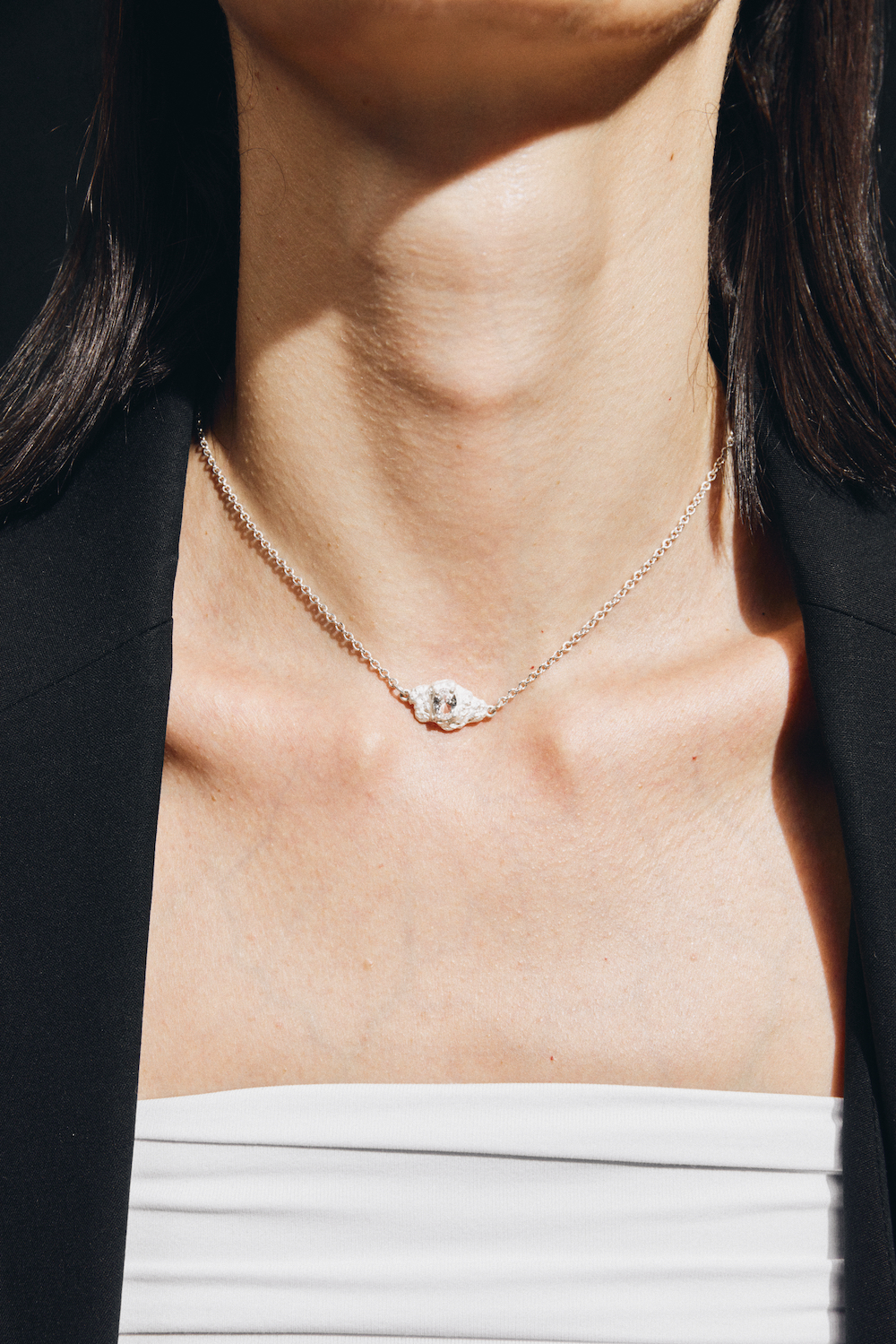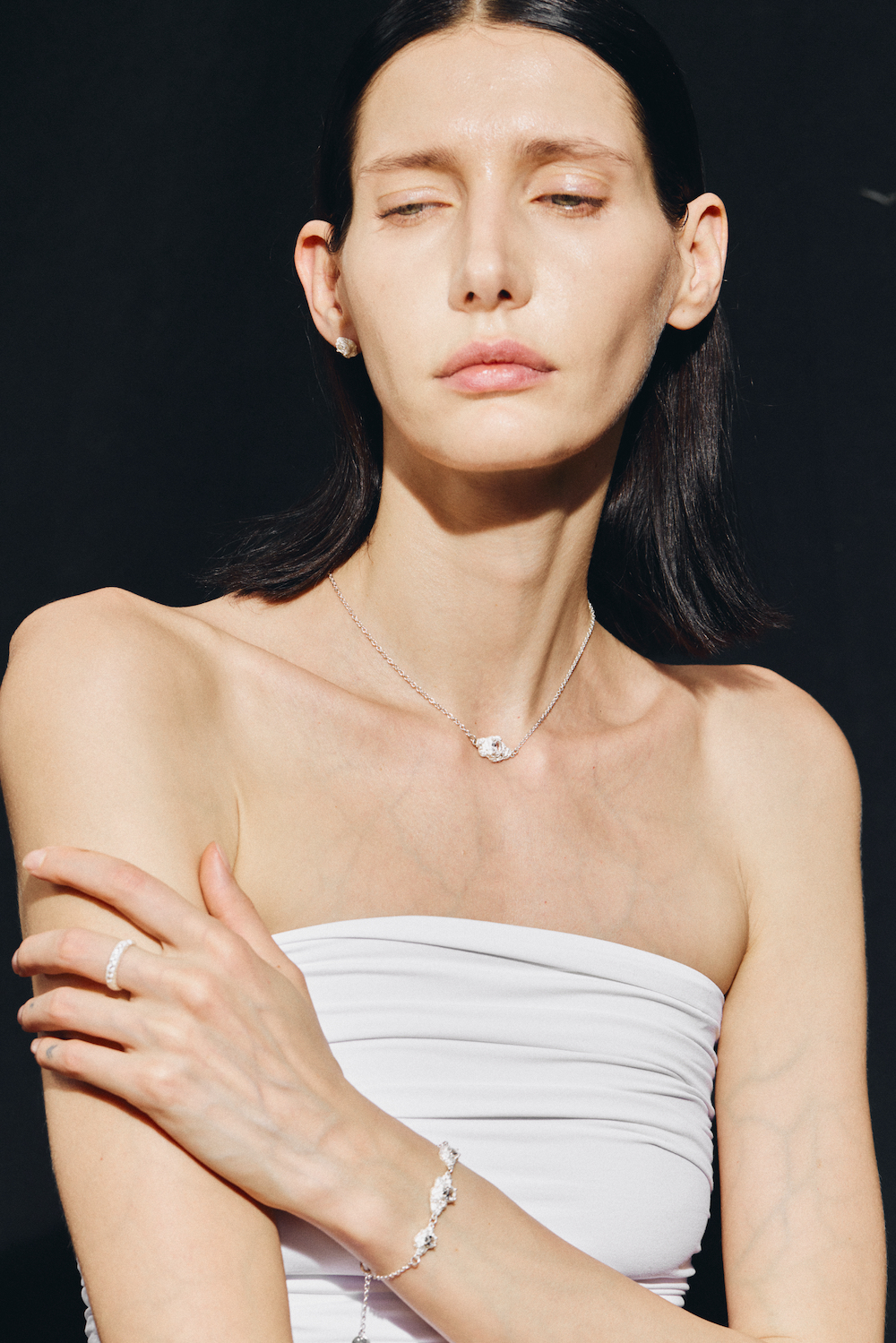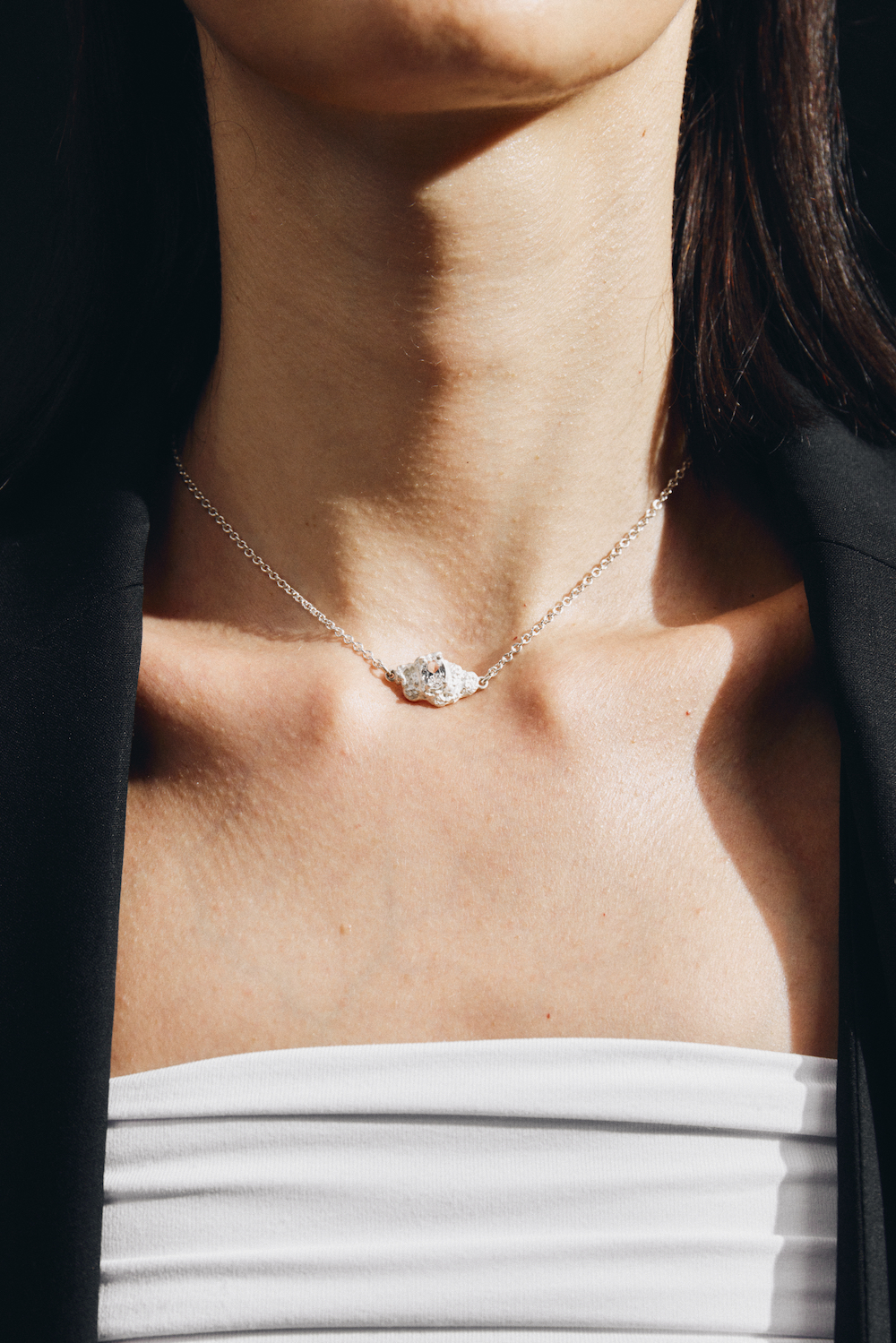 Empress47 Fluid Series Lava White Gemstone Necklace Original Design Niche 925 Silver Clavicle Necklace for Women
