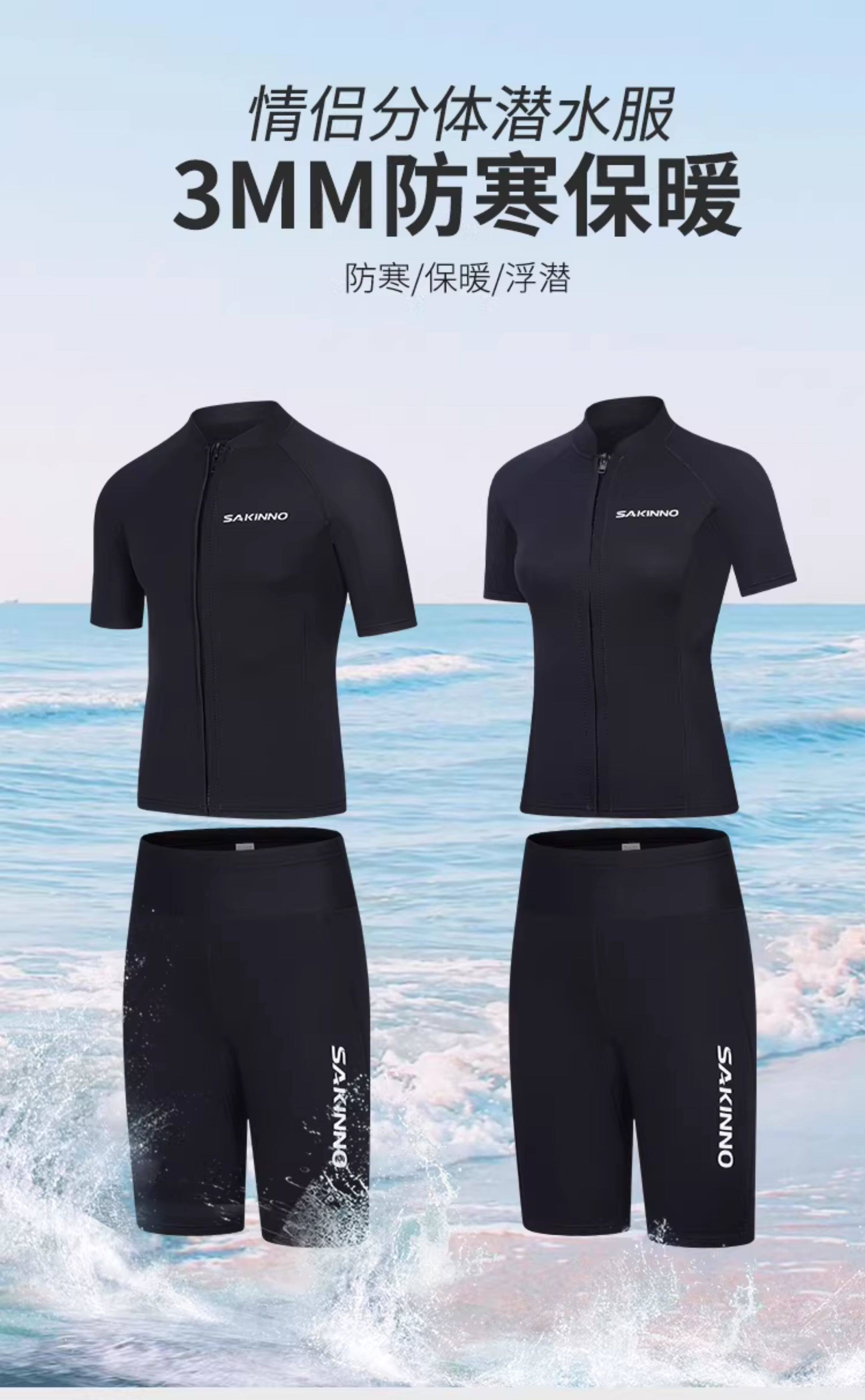 Wetsuits for Men and Women, Couple's Thermal Swimwear, 2mm Wetsuit, Short-Sleeved Shorts, Cold-Proof Swimwear, Jellyfish Wet Suit Set