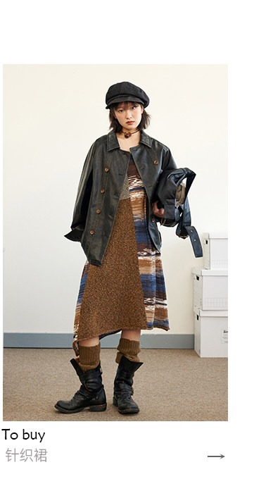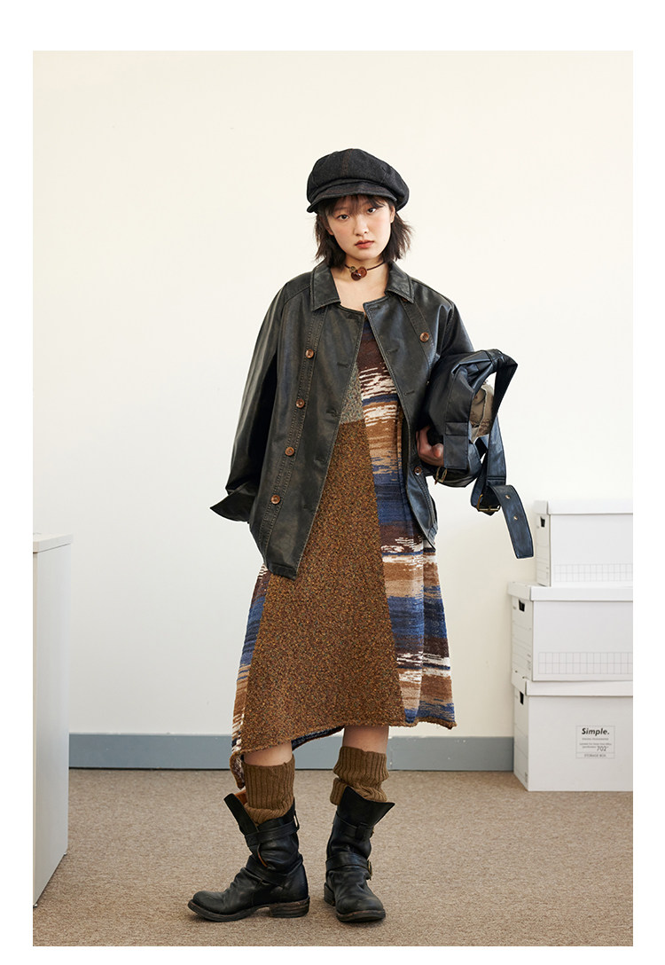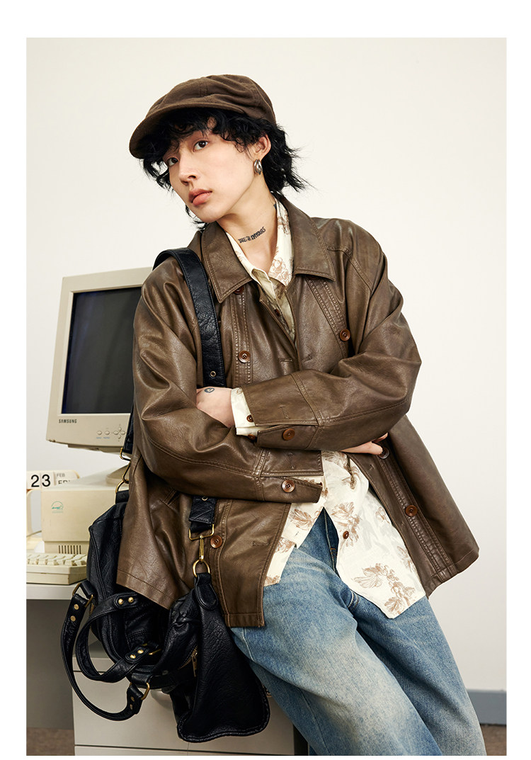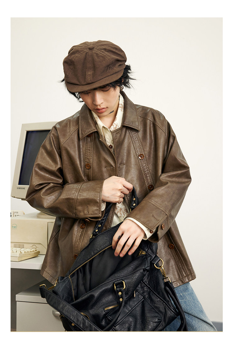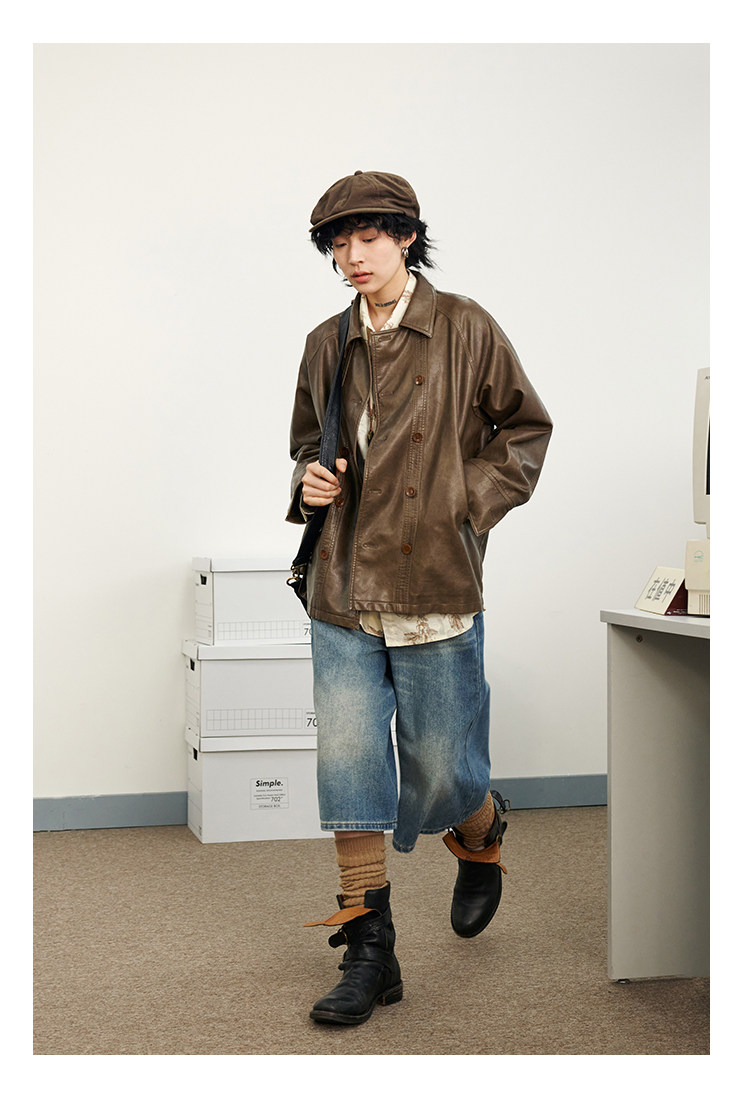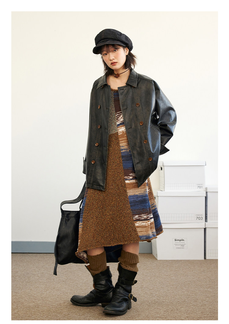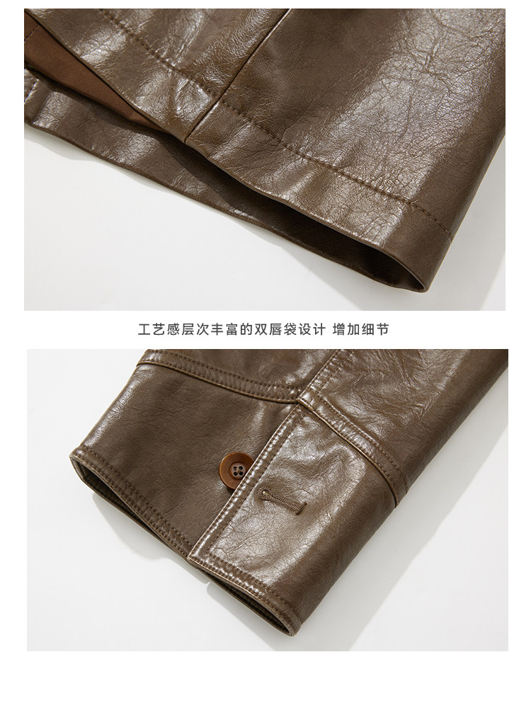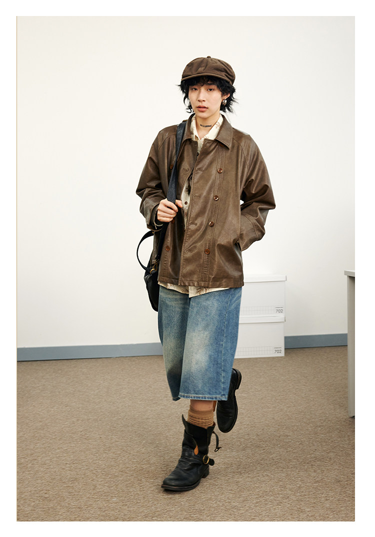 Octopusme Retro Distressed Black Leather Jacket for Women, Spring and Autumn Double-Breasted Biker Leather Jacket