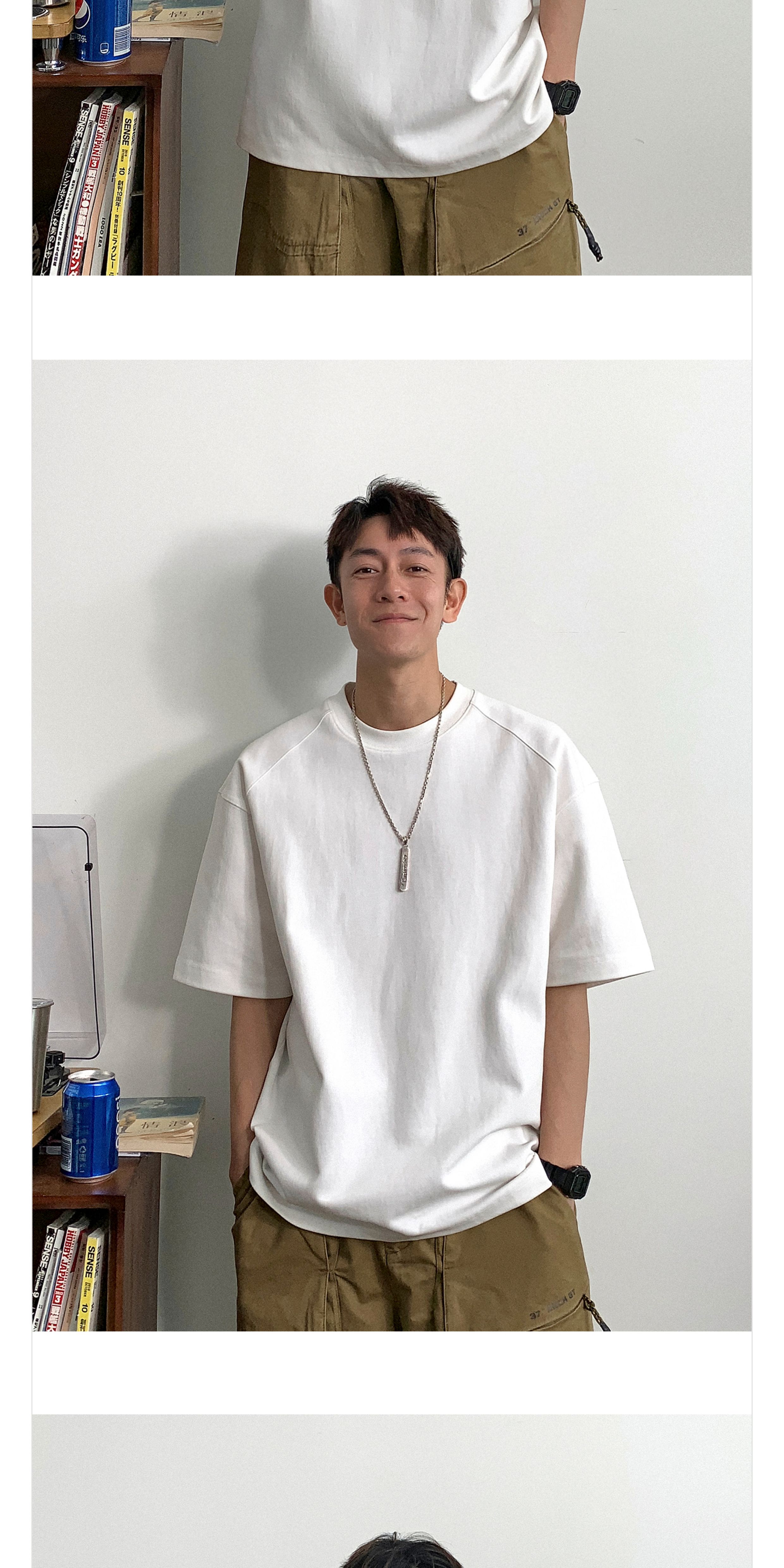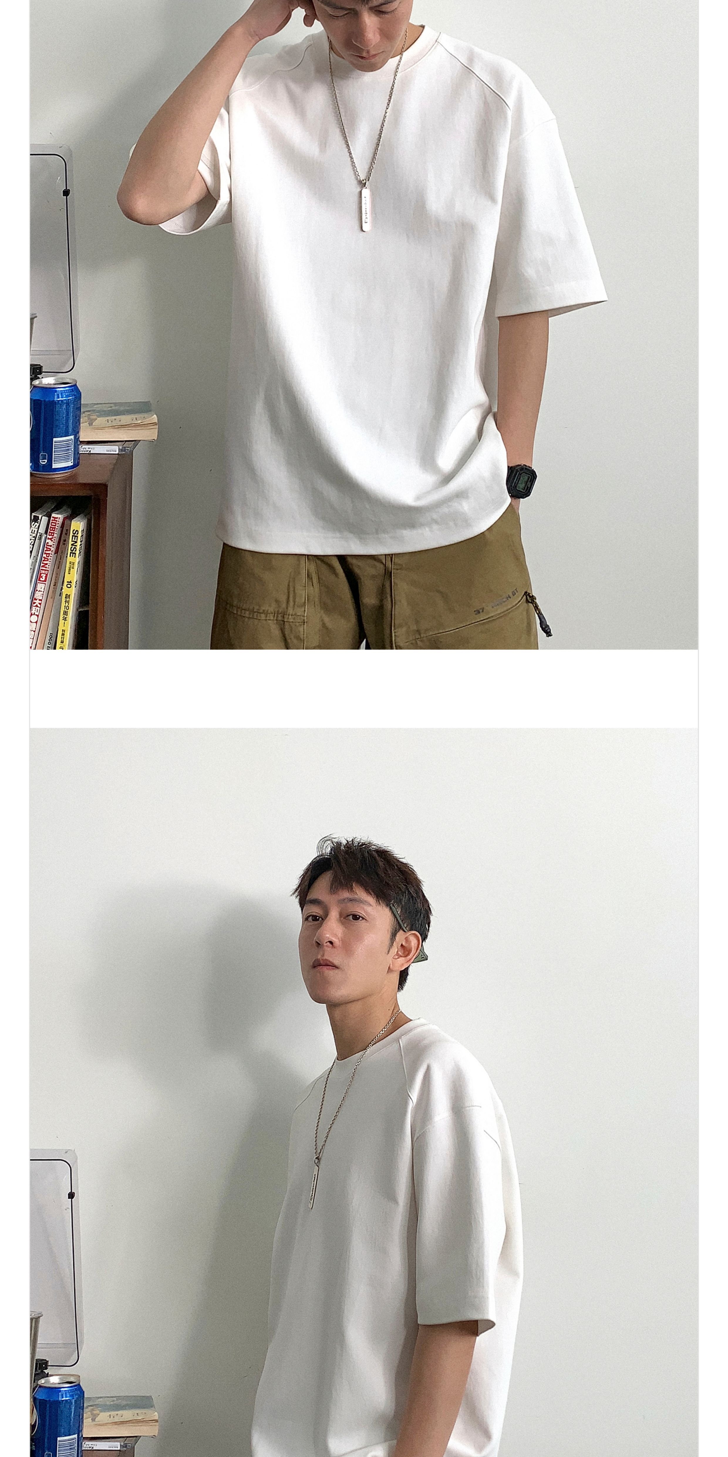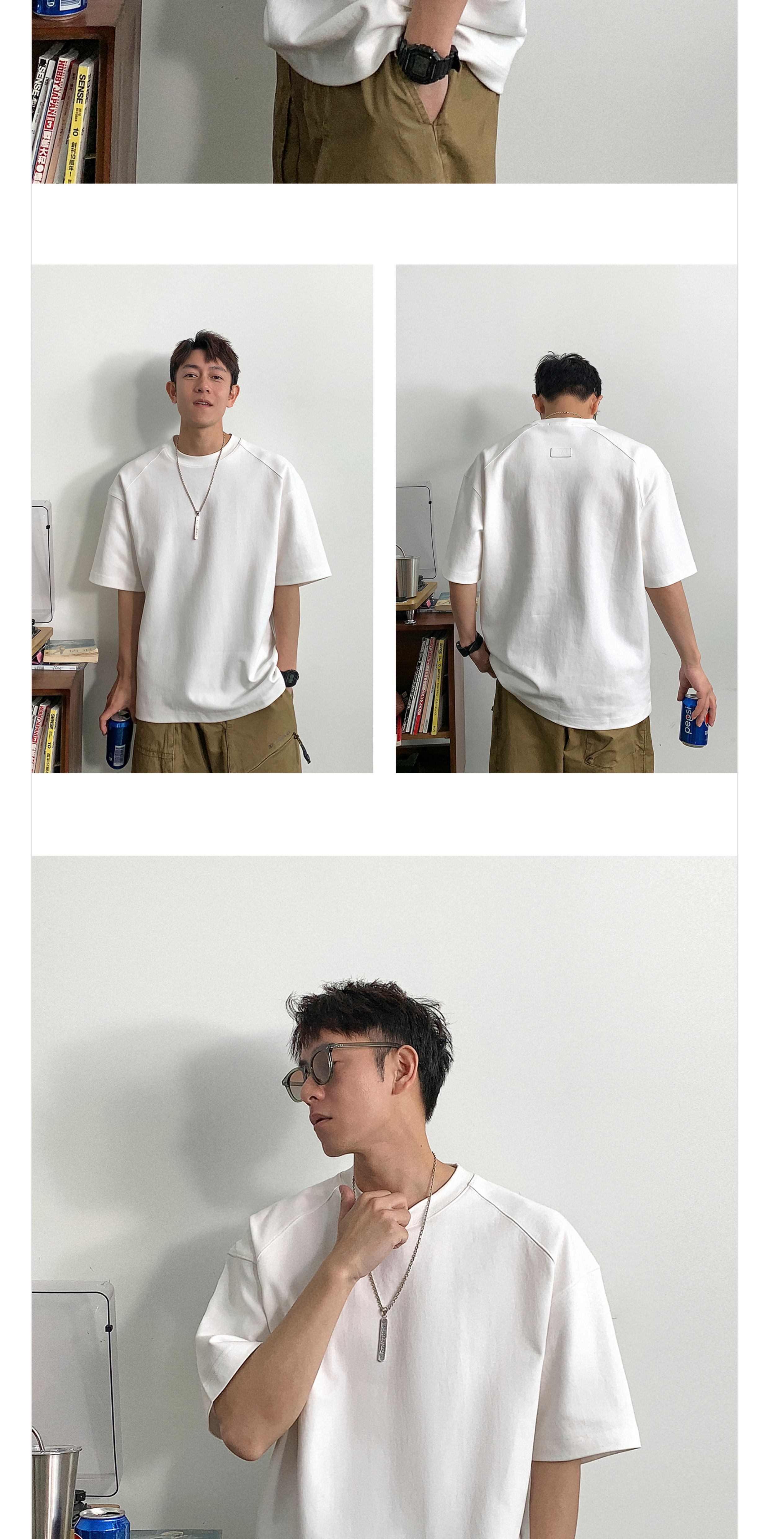 Xu Tai Lang 290g Heavyweight White Short-Sleeved T-Shirt for Men, Summer Large Size Men's Casual Solid Color Loose Half-Sleeve Top