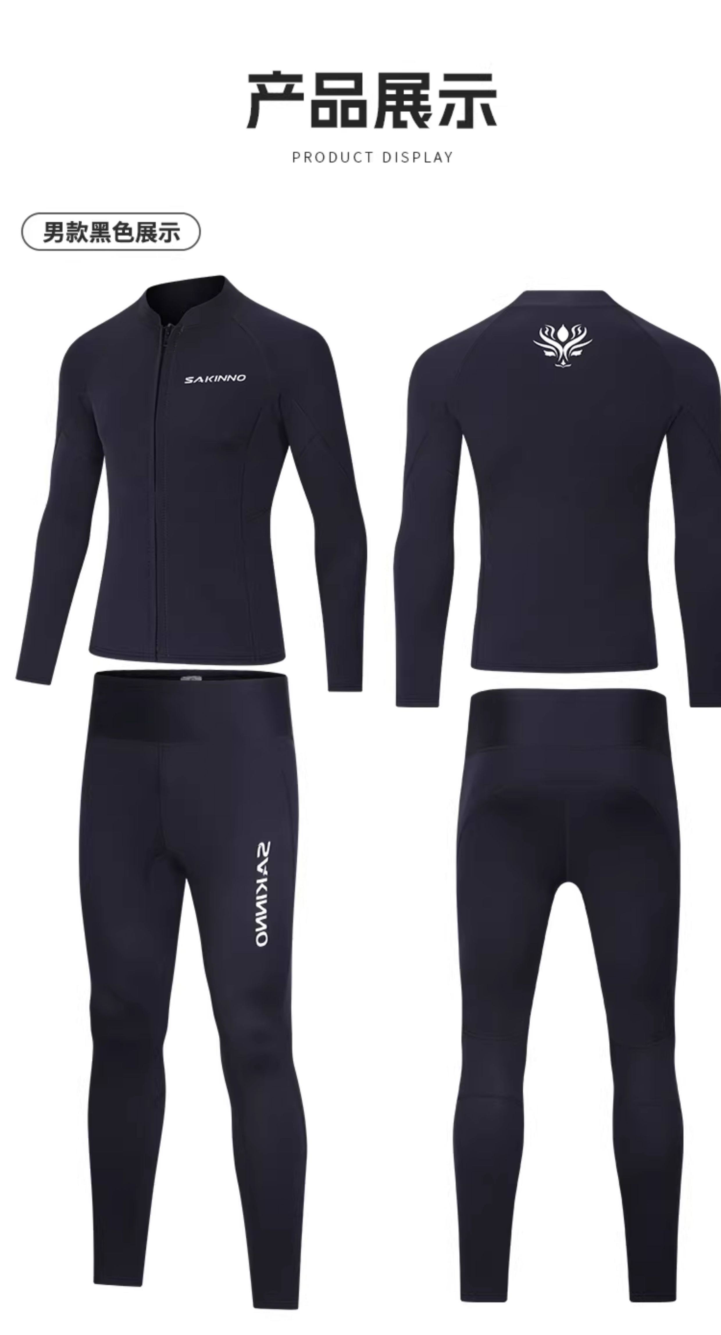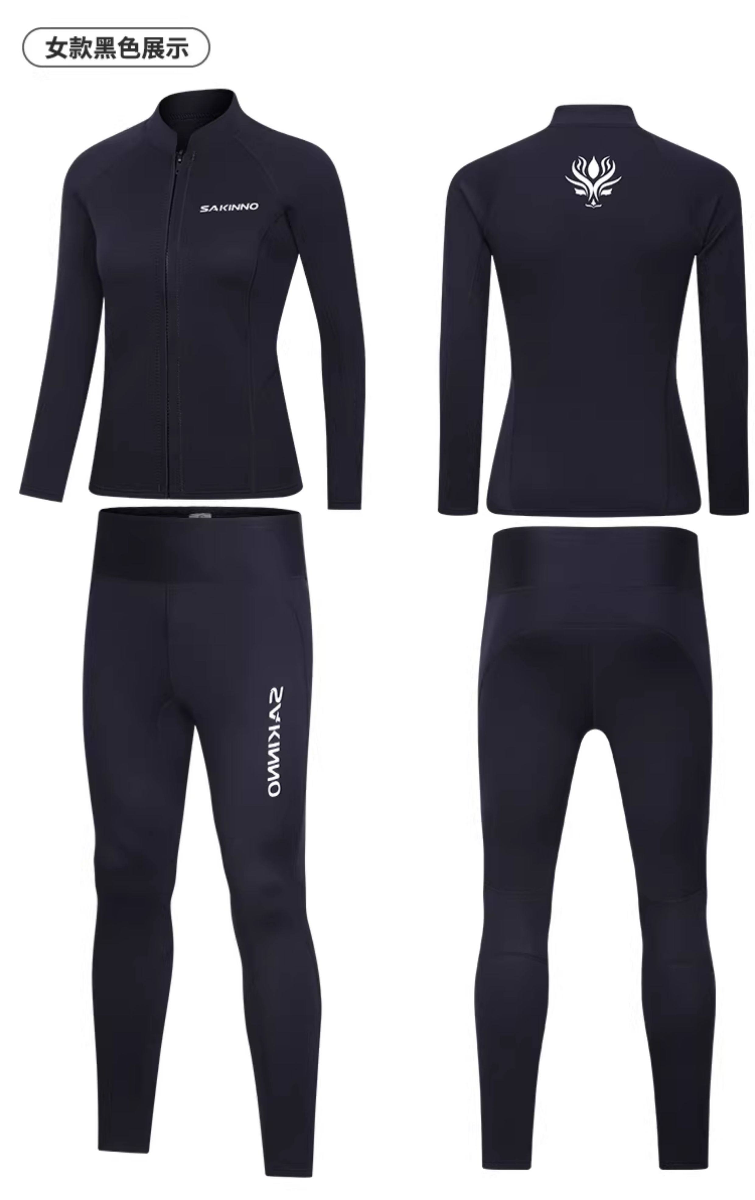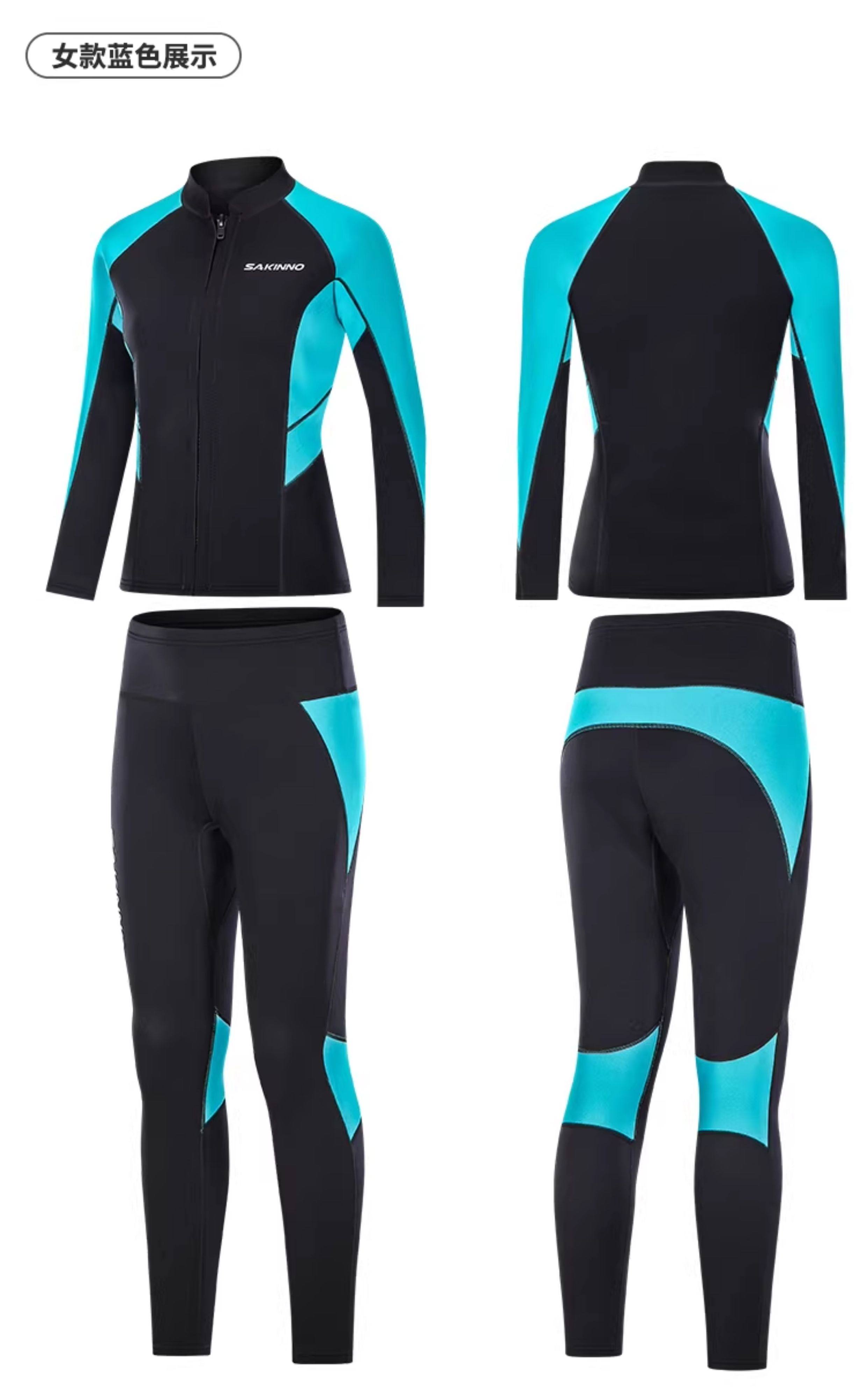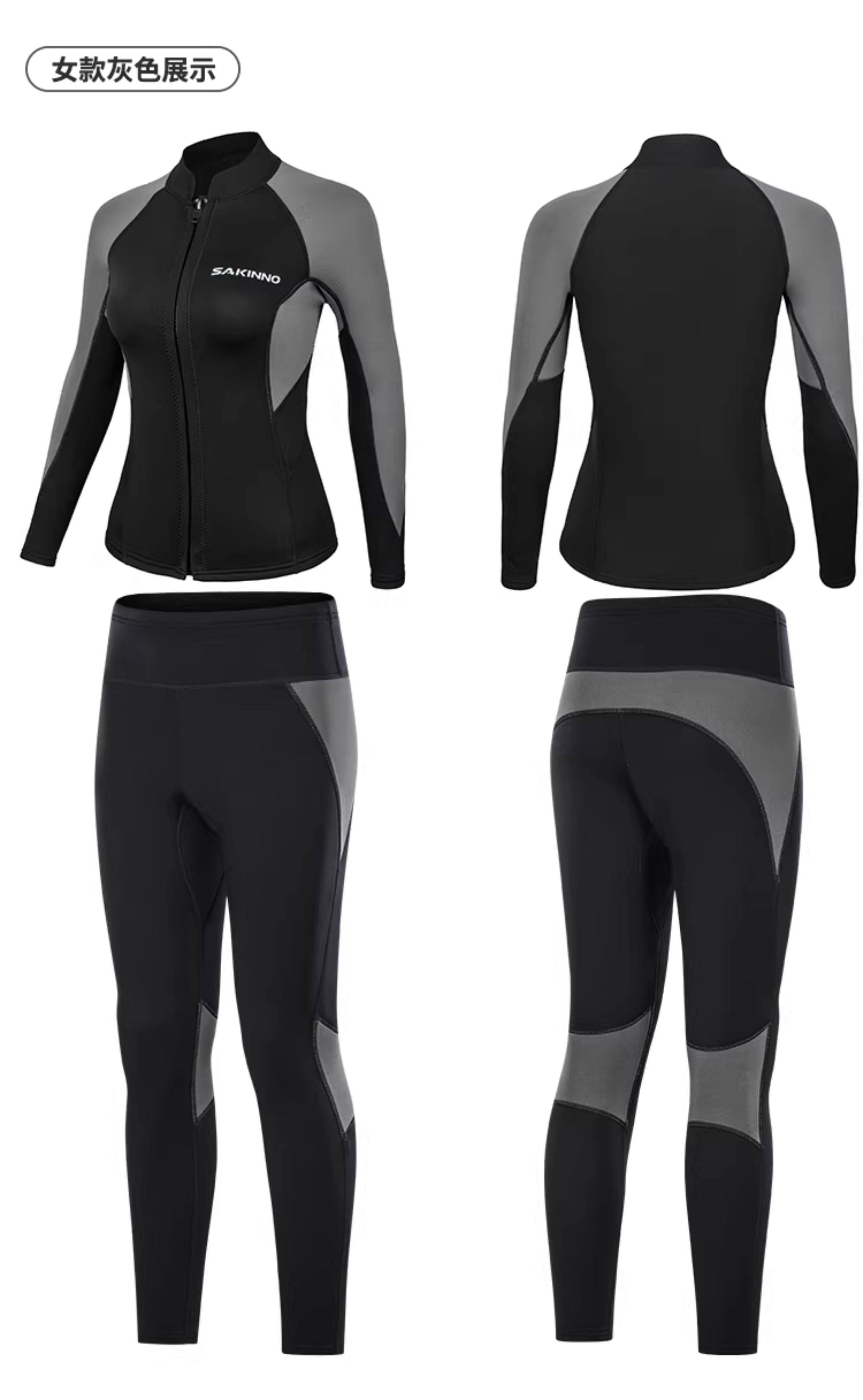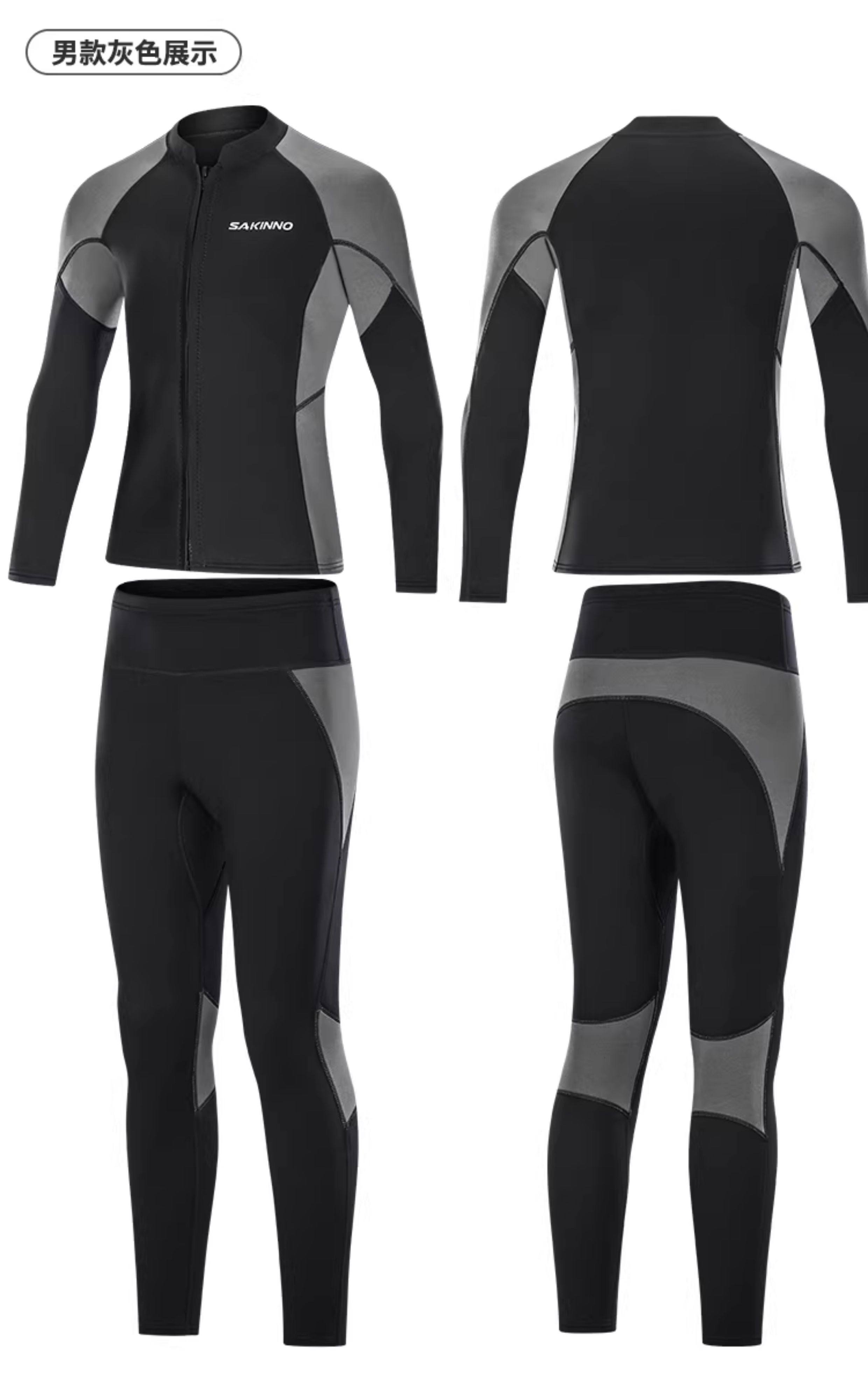 Snorkeling Wetsuit, Cold-Proof, Sun-Proof, Quick-Drying Diving Suit, Couple's Two-Piece Long-Sleeve Long Pants, Jellyfish Protection, Men's and Women's Thermal Wet Suit 3mm