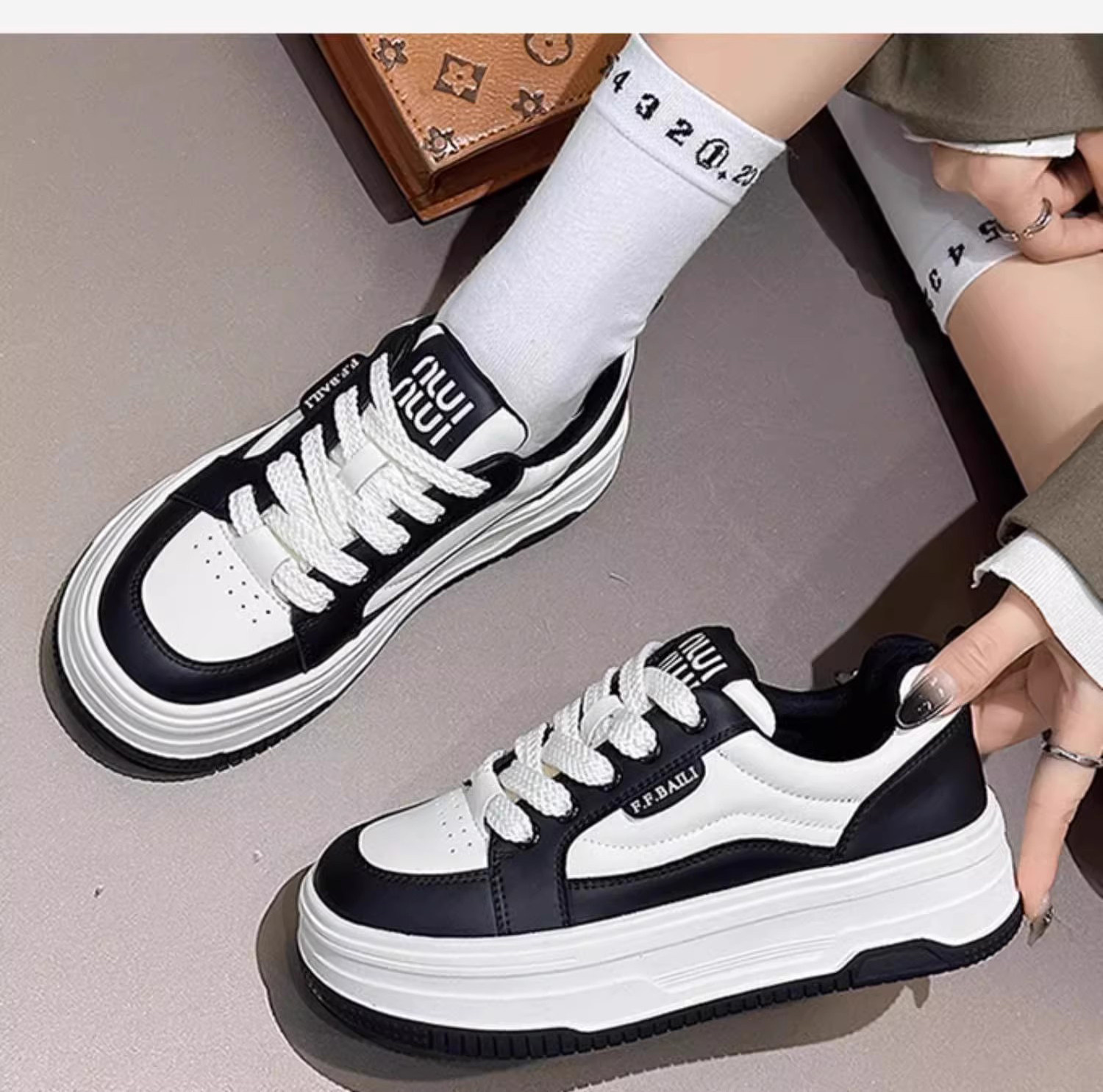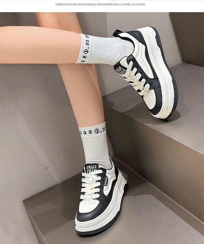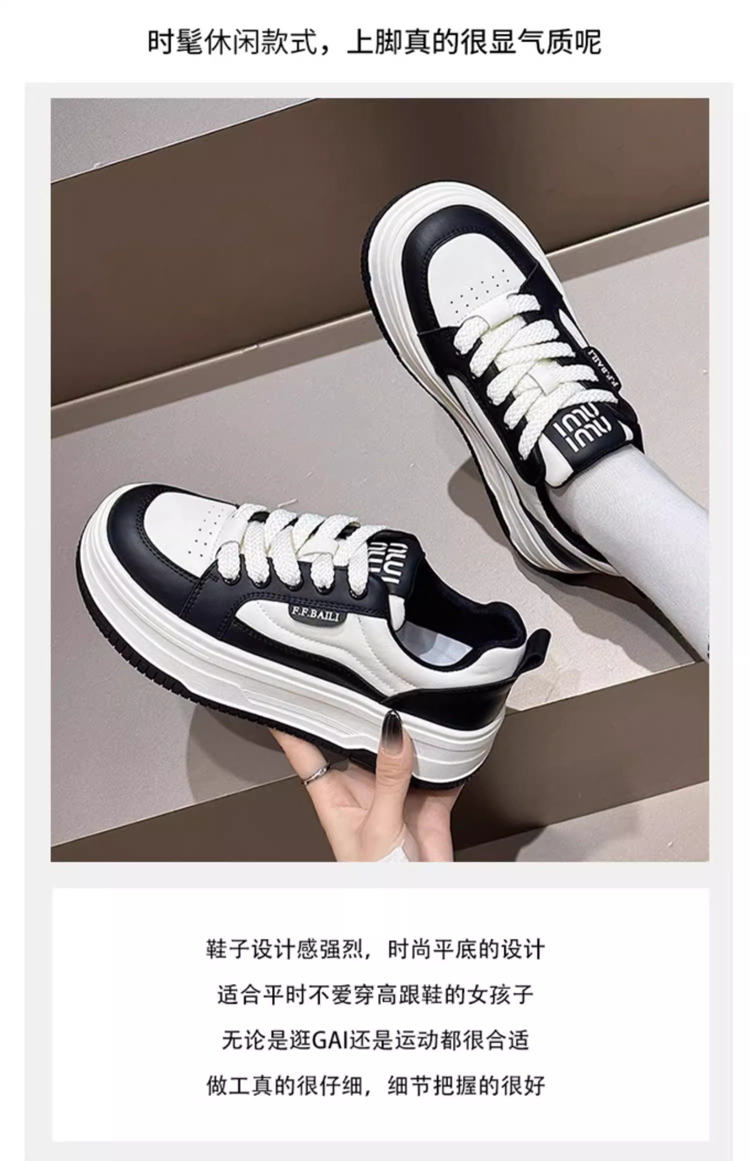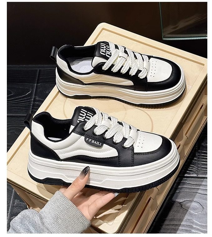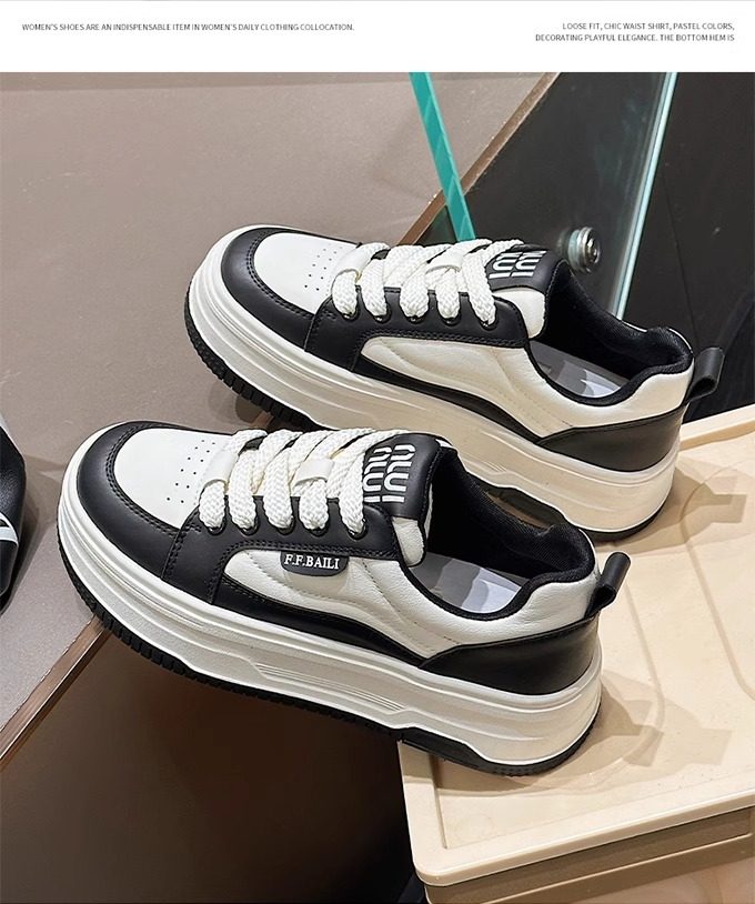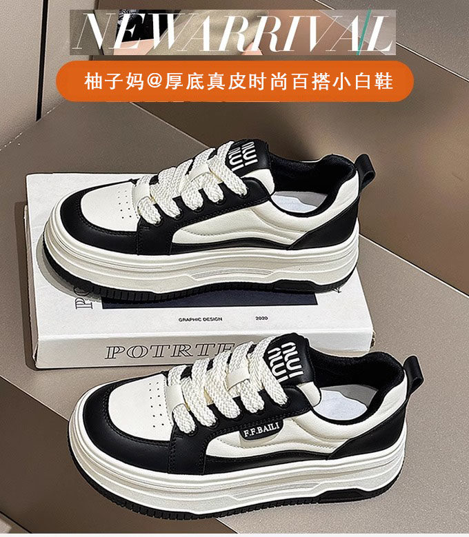 Hong Kong Genuine Leather Thick-Soled White Sneakers for Women 2025 New Popular Black and White Shoes Korean Style Versatile Sports Casual Sneakers