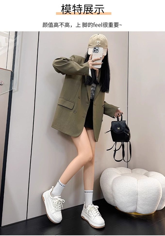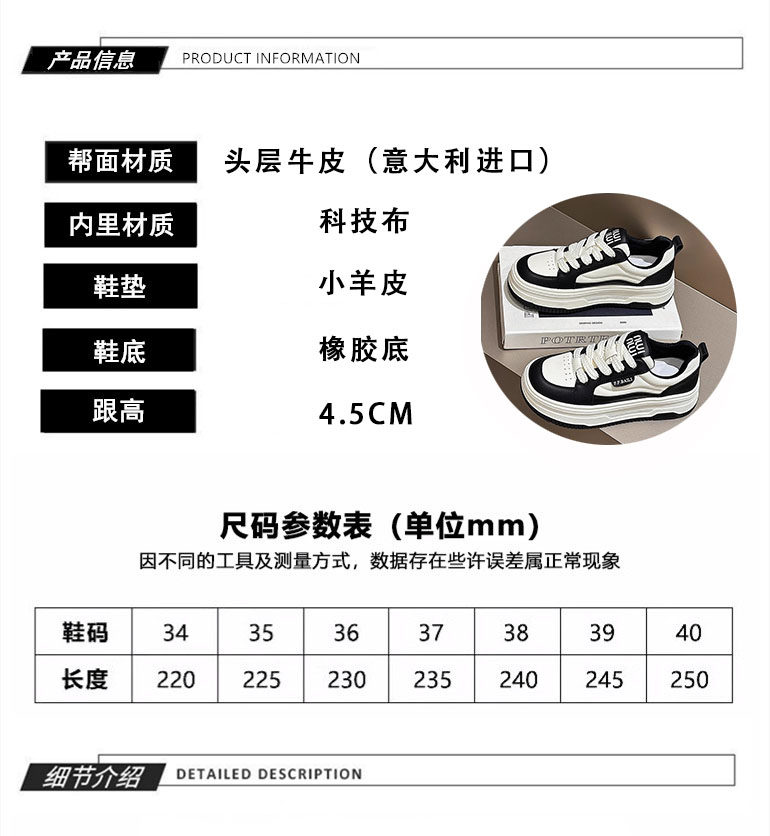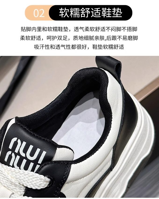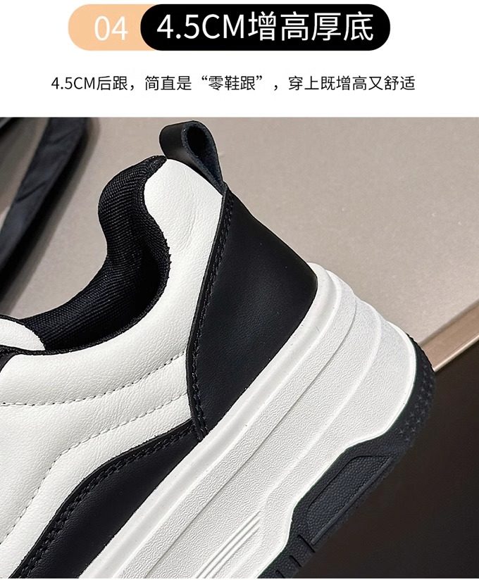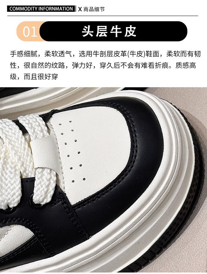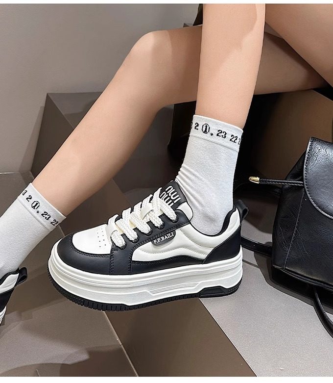 Hong Kong Genuine Leather Thick-Soled White Sneakers for Women 2025 New Popular Black and White Shoes Korean Style Versatile Sports Casual Sneakers