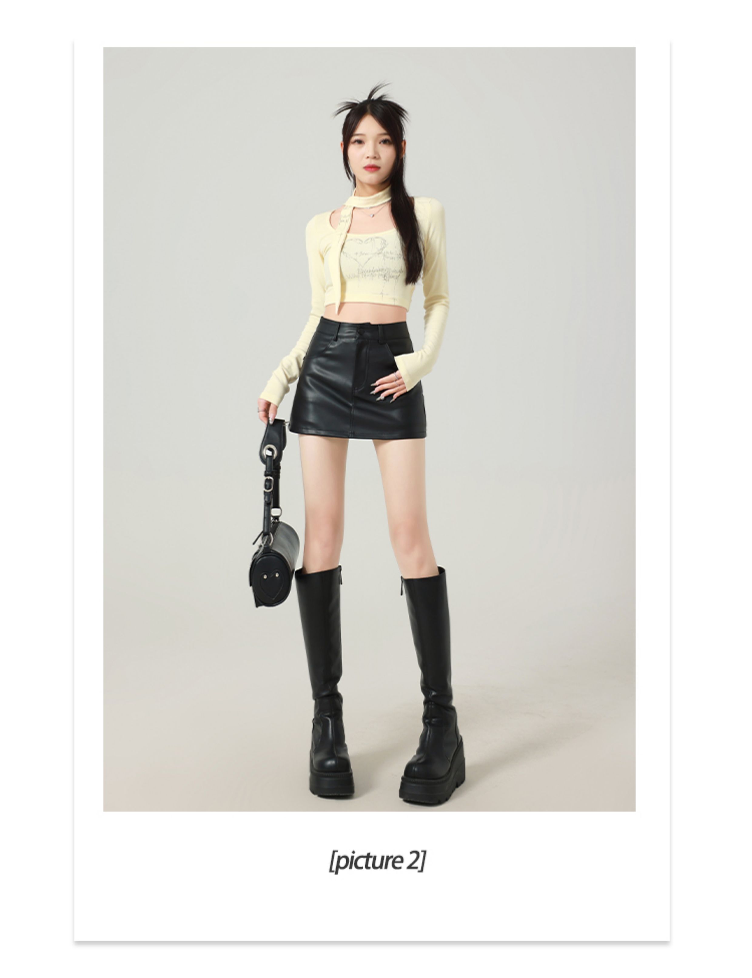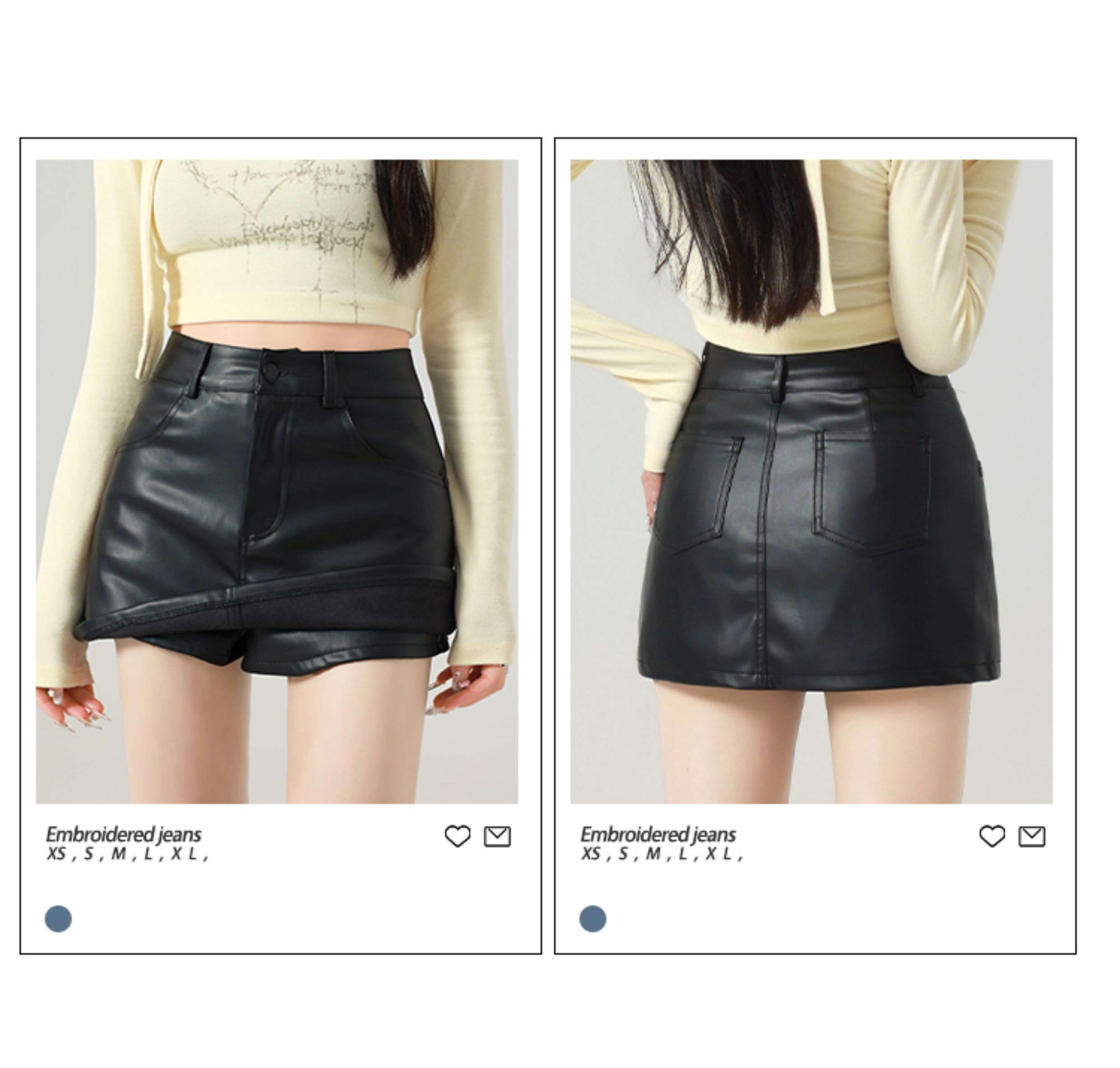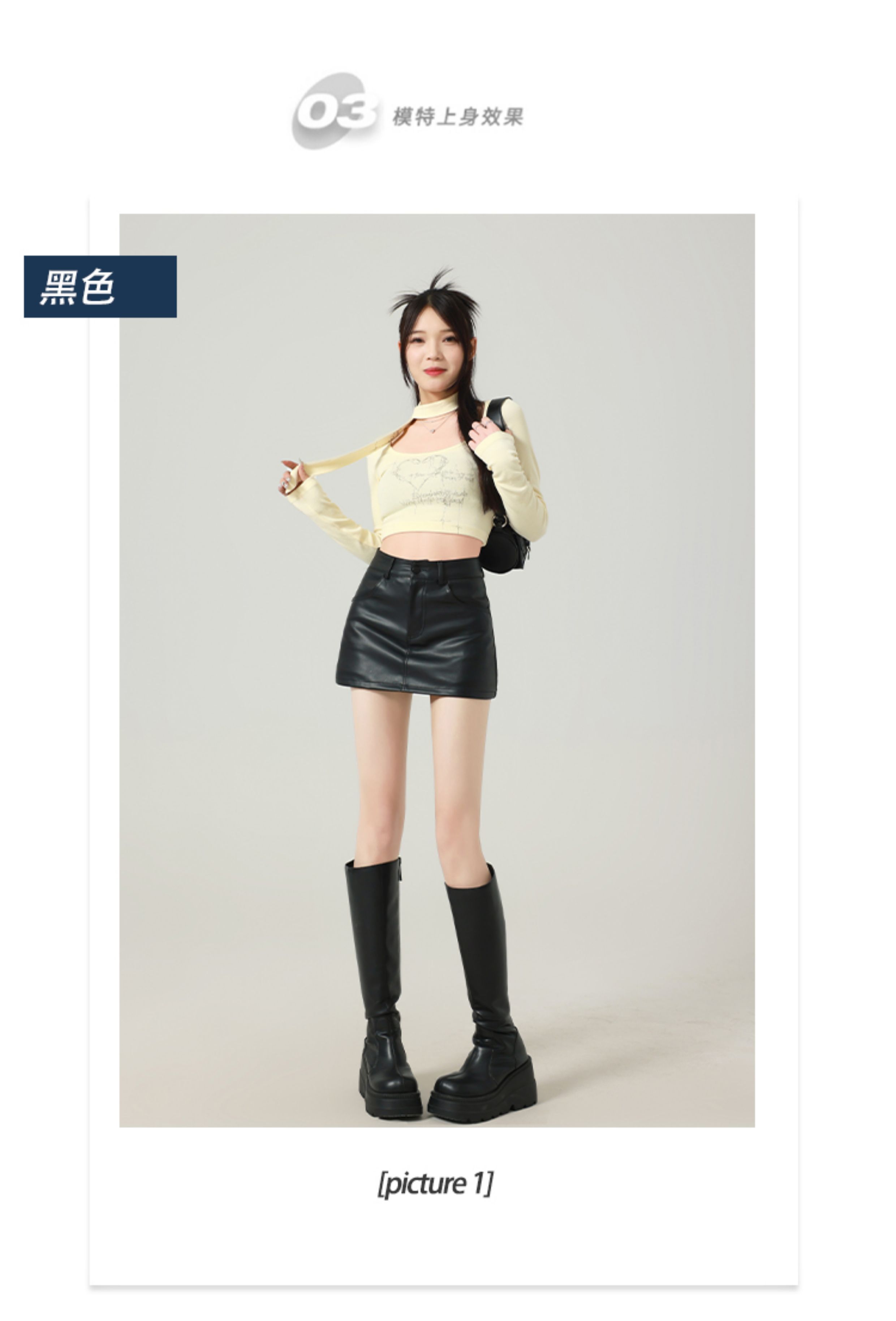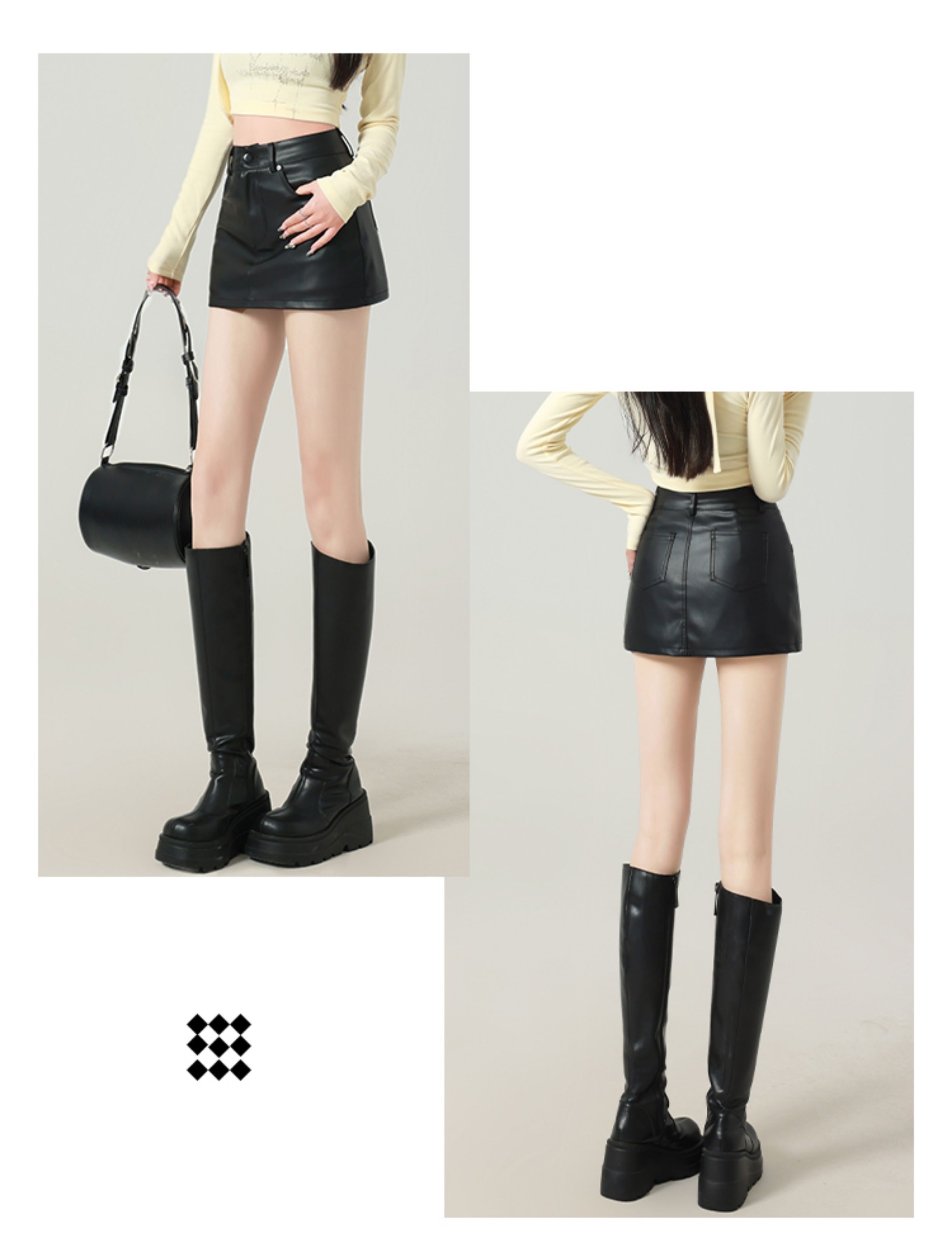 Black Pu Leather Skirt High-Waisted Half Skirt for Women 2025 Autumn New A-Line Lined Petite Hip-Hugging Short Skirt Pants