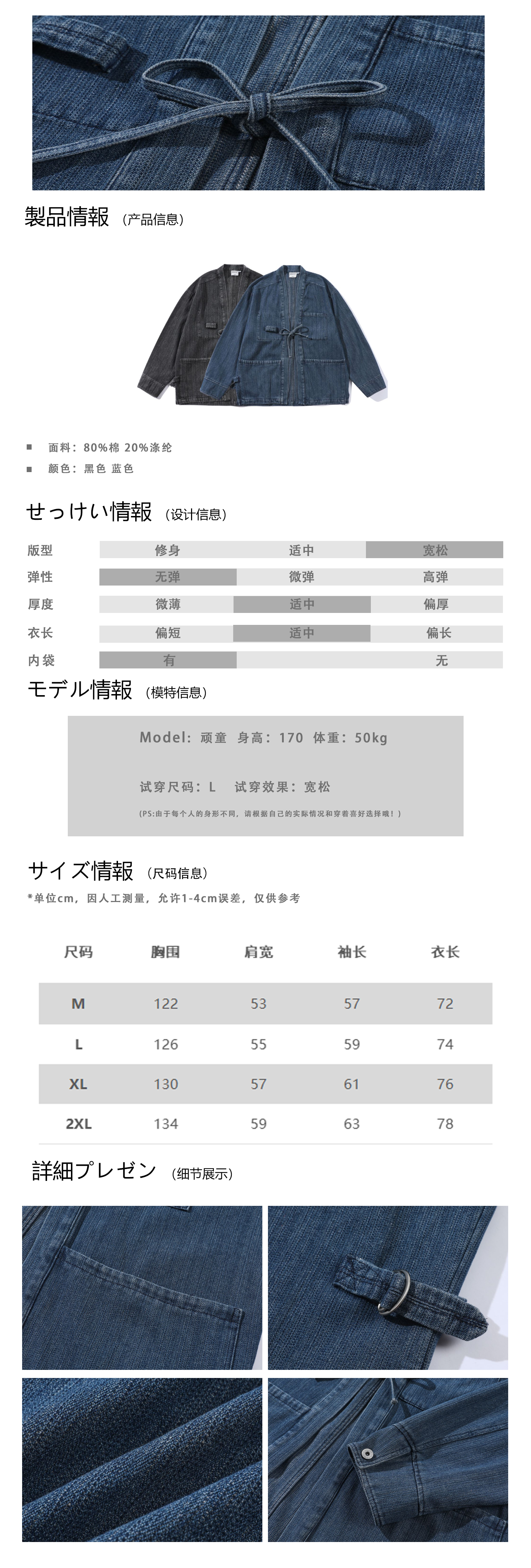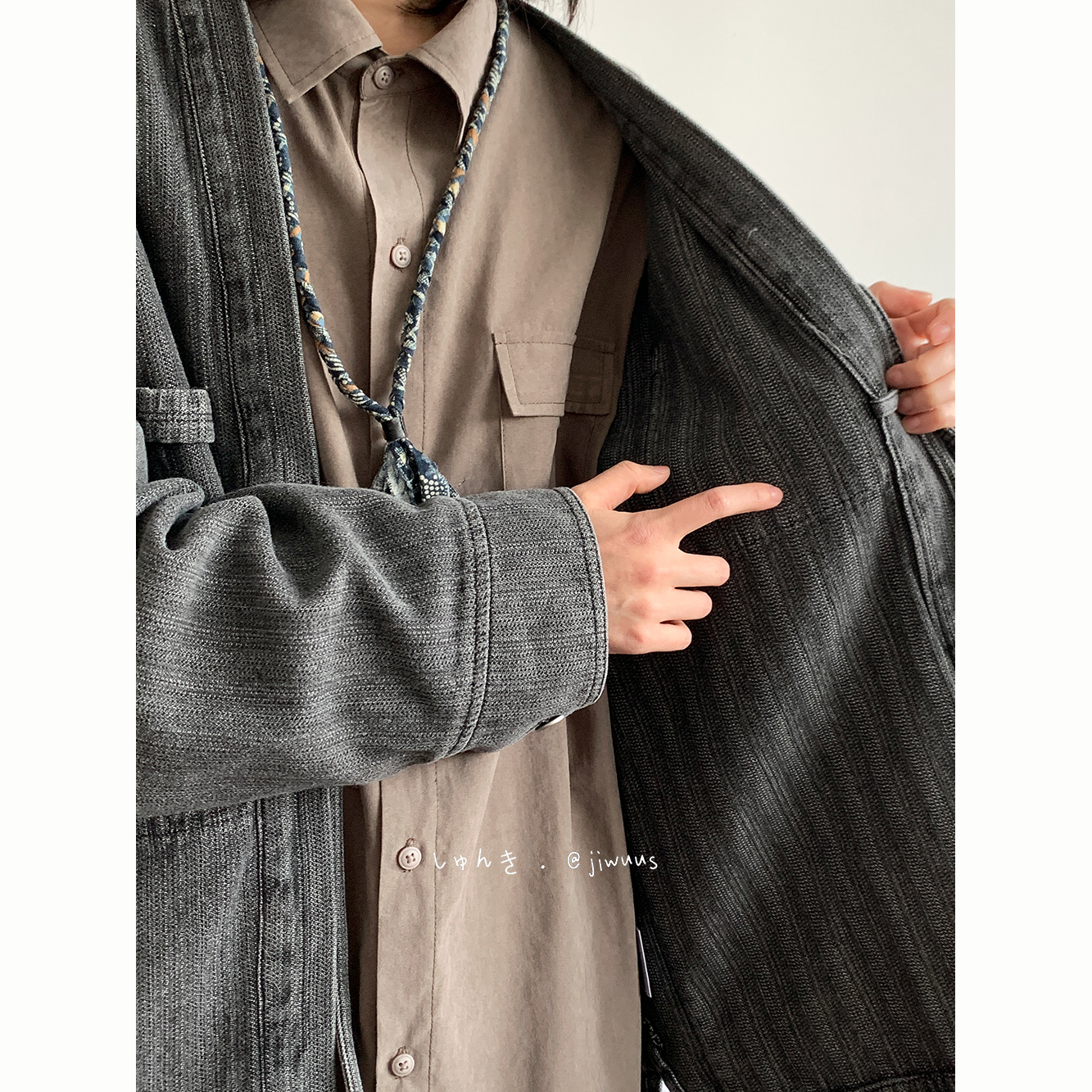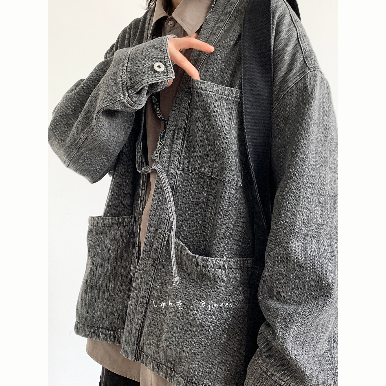Jiwuus Spring New Chinese Style Retro National Style Improved Cardigan Robe Unisex Loose Black Denim Jacket Trendy